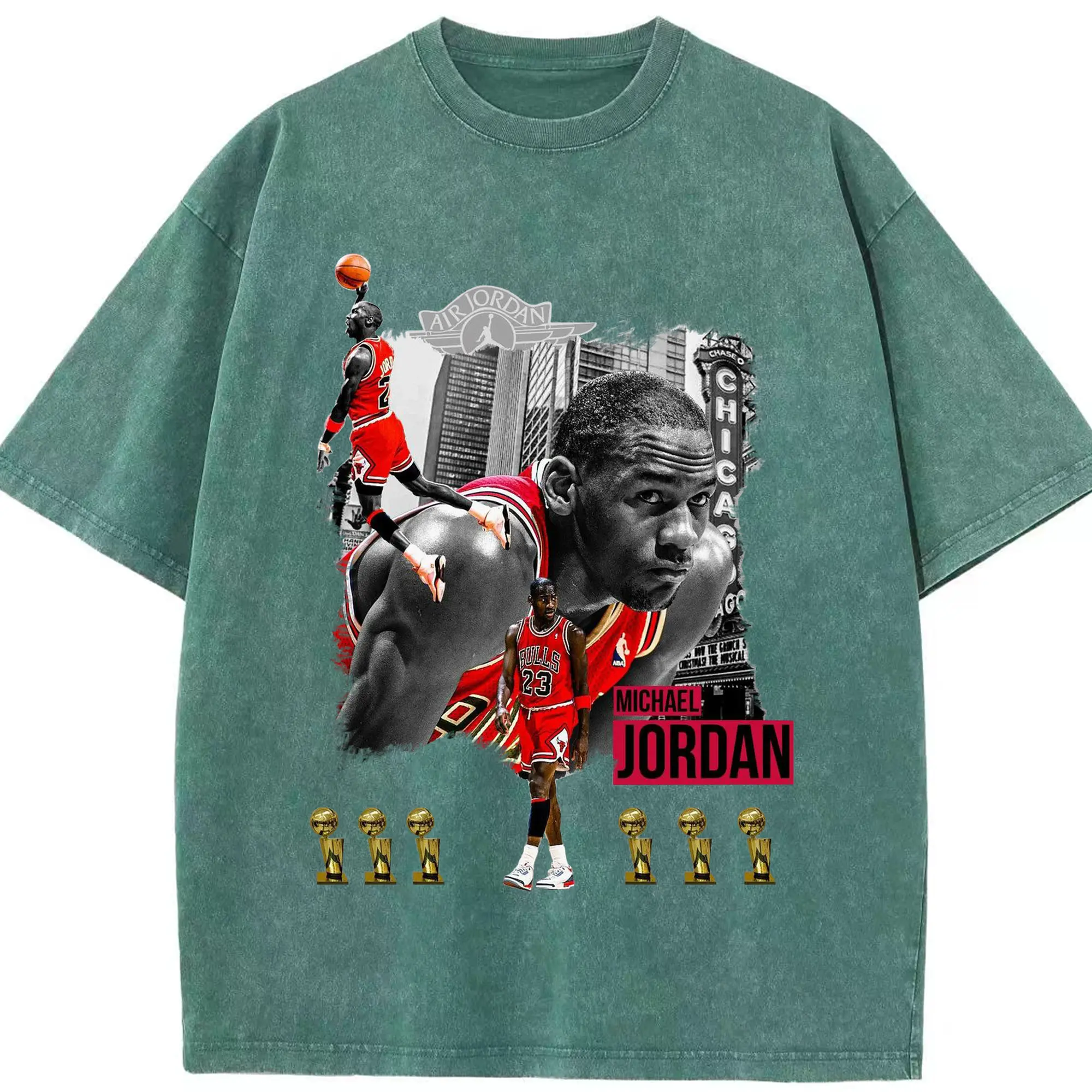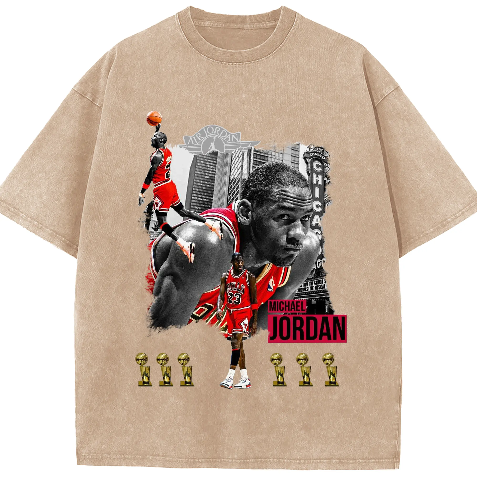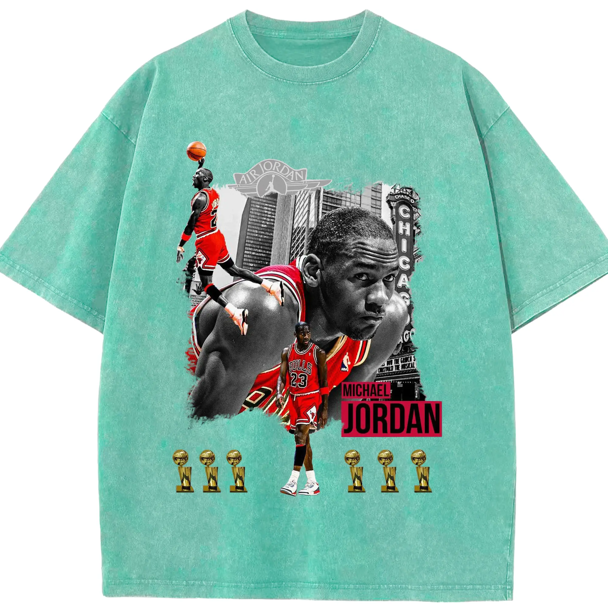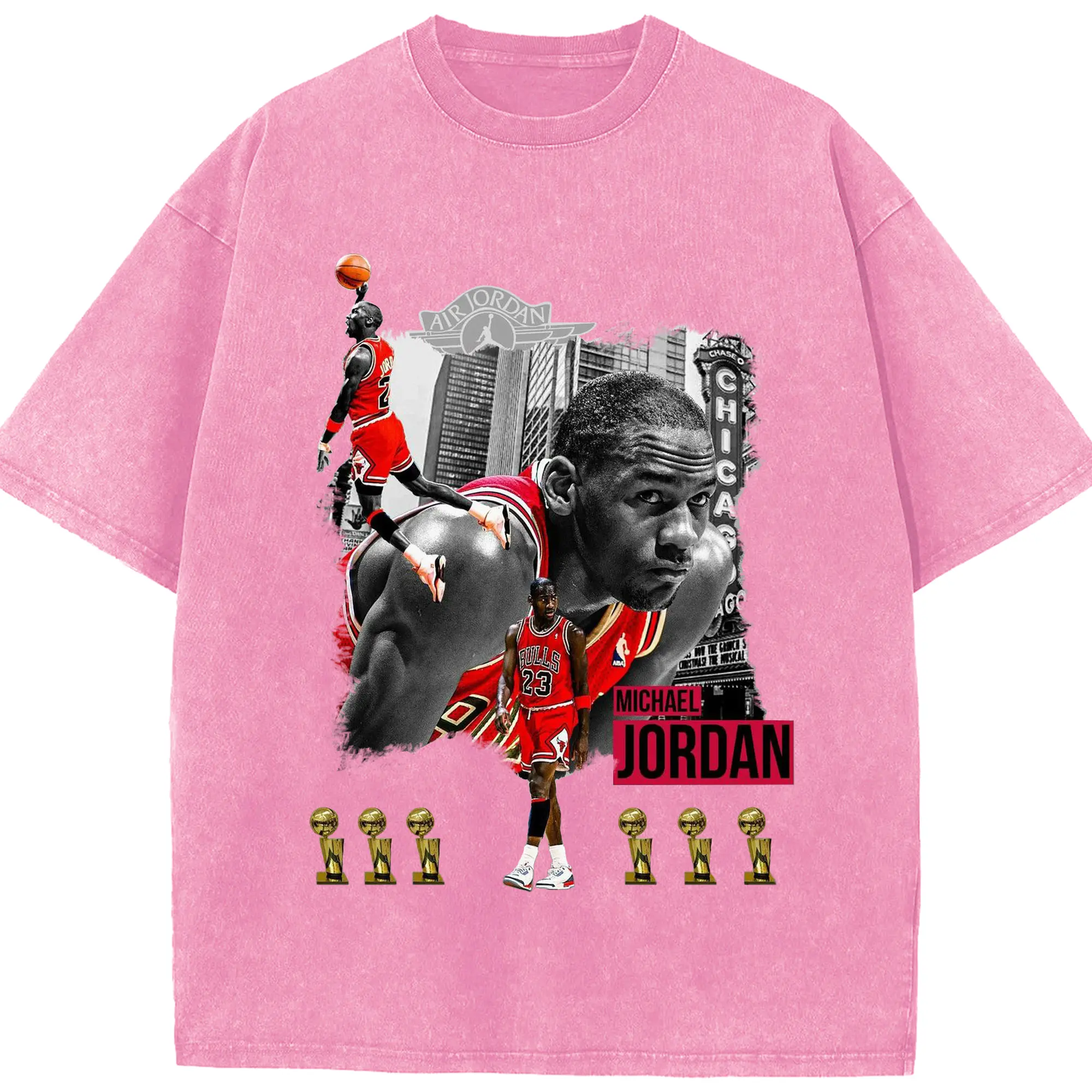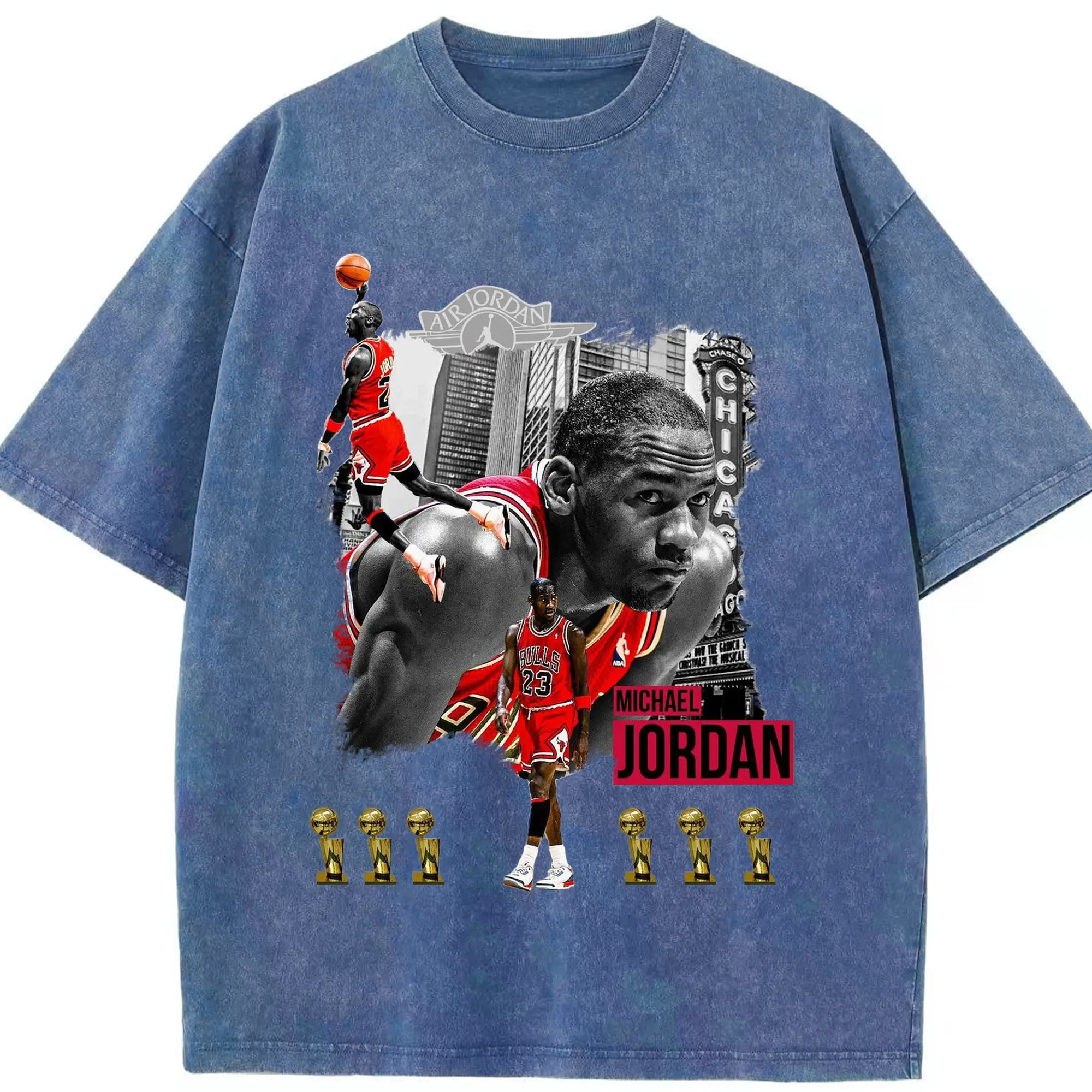 Michael Jordan 6x NBA Champion Shirt - Washed Vintage Look 230g Cotton Oversized T-Shirt With Front Heat Transfer Print – Soft, Lightweight, Stylish Fit – Comfortable Casual Wear For Sports & Everyday Use