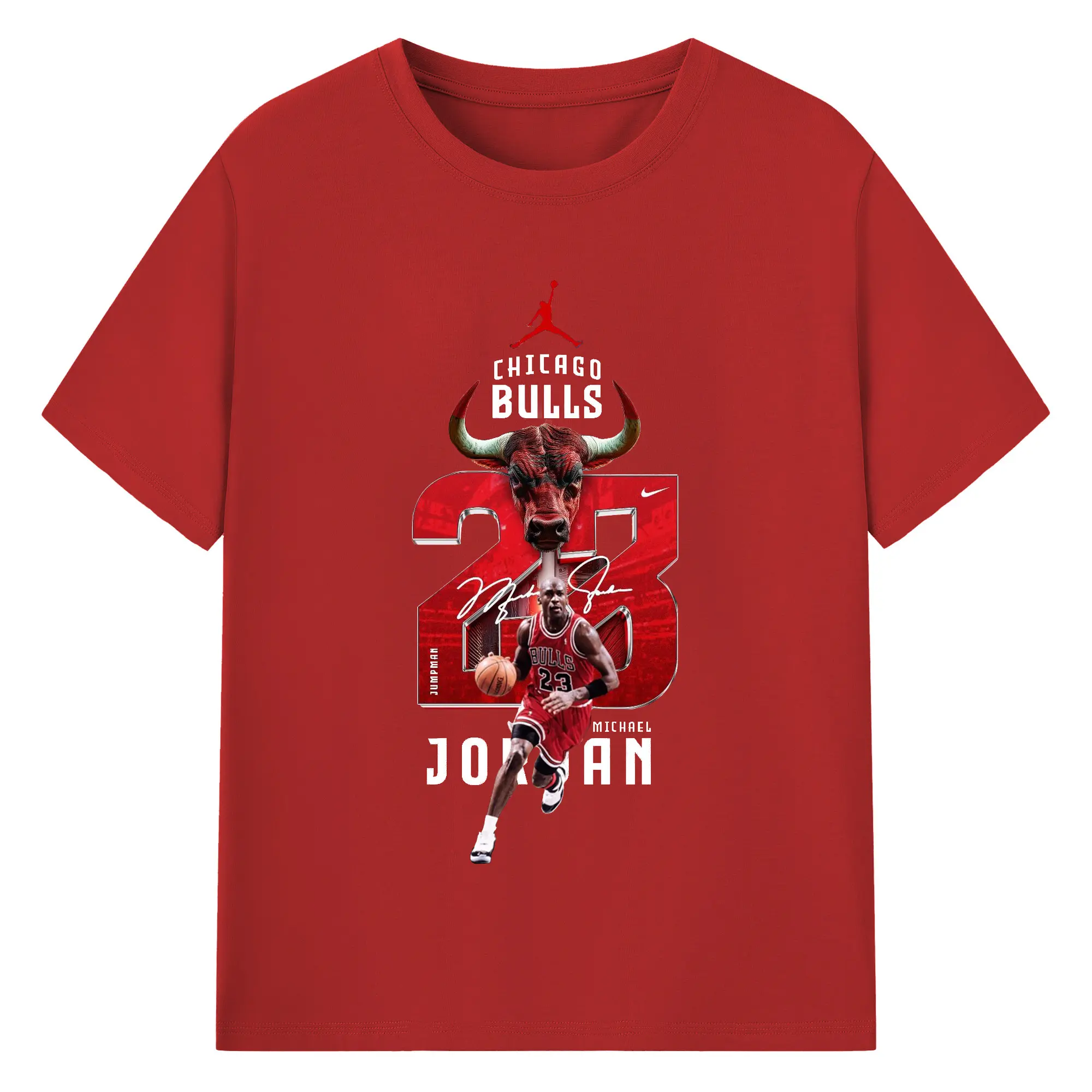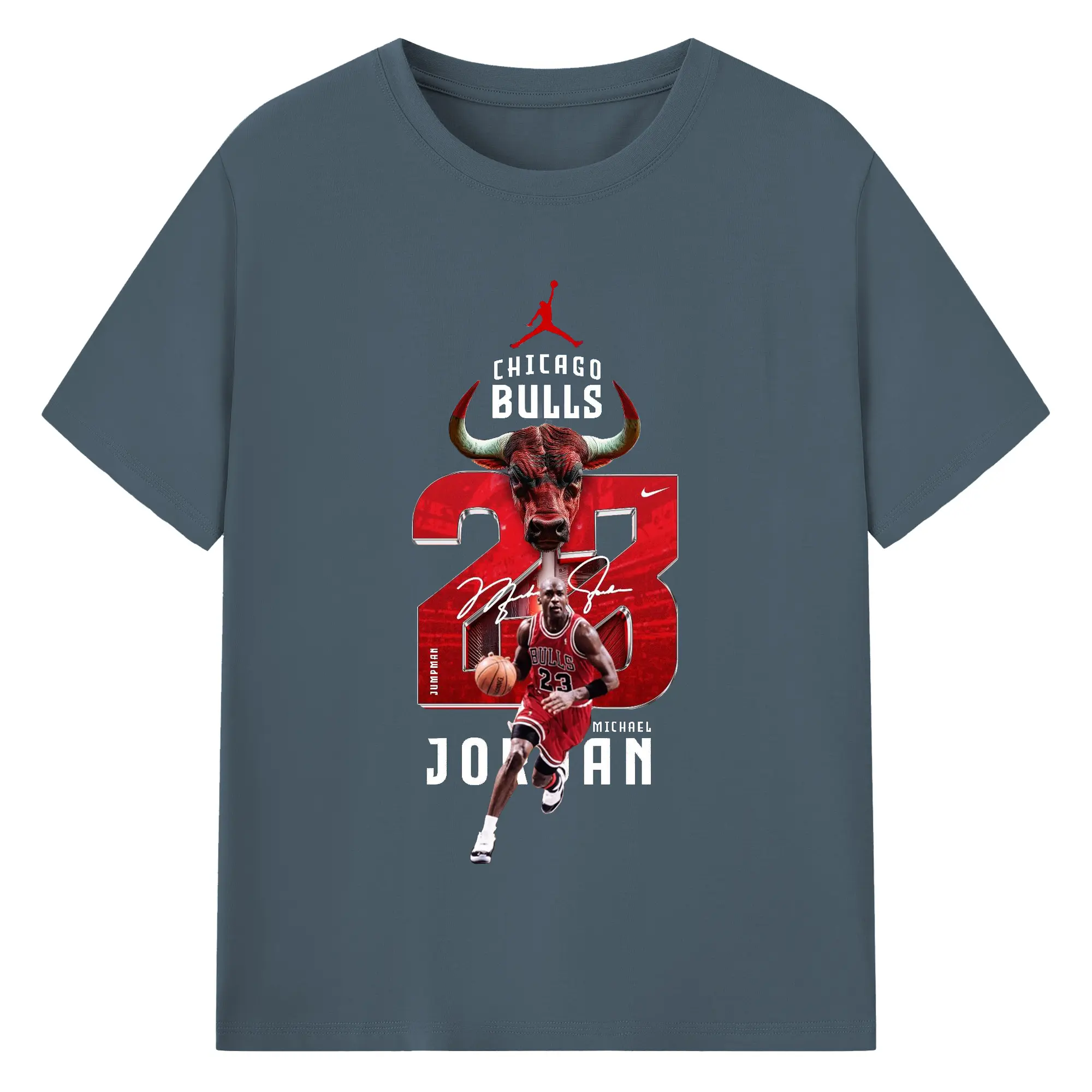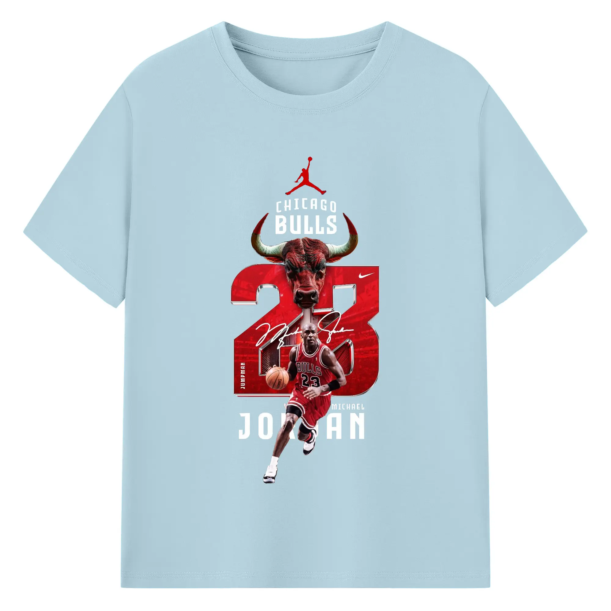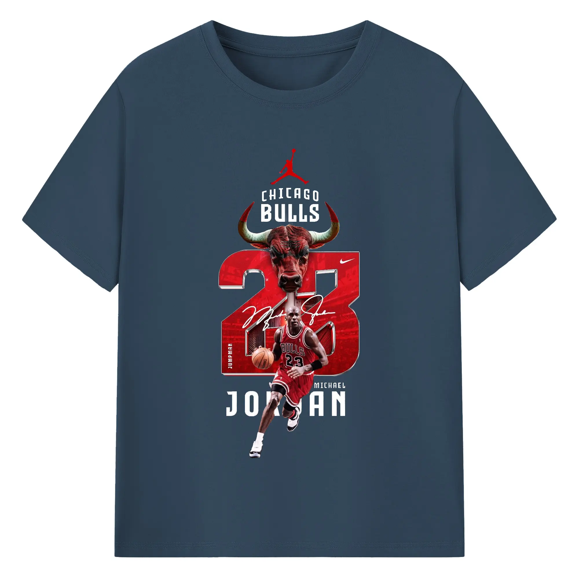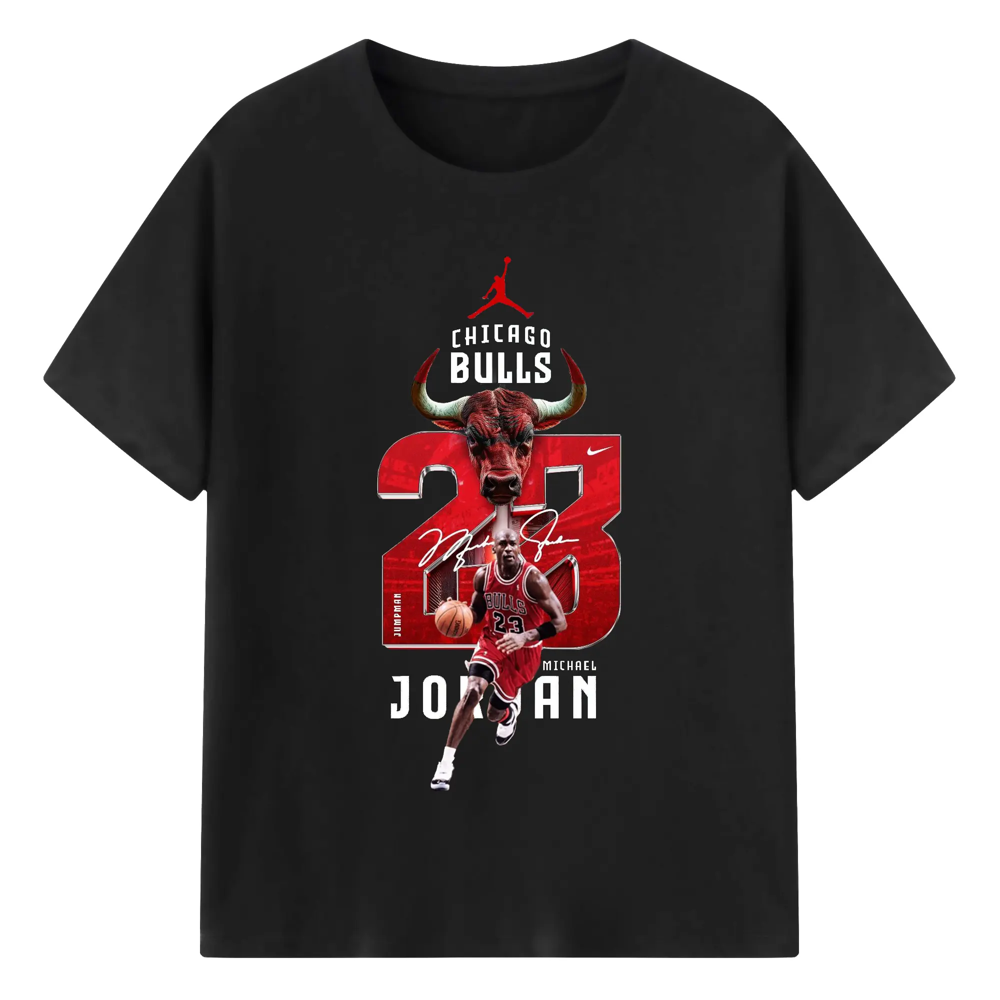 Michael Jordan No. 23 close-up - 180g Cotton T-Shirt With Front Heat Transfer Print – Soft, Lightweight, Fitted Design – Comfortable Casual Wear For Sports & Everyday Use