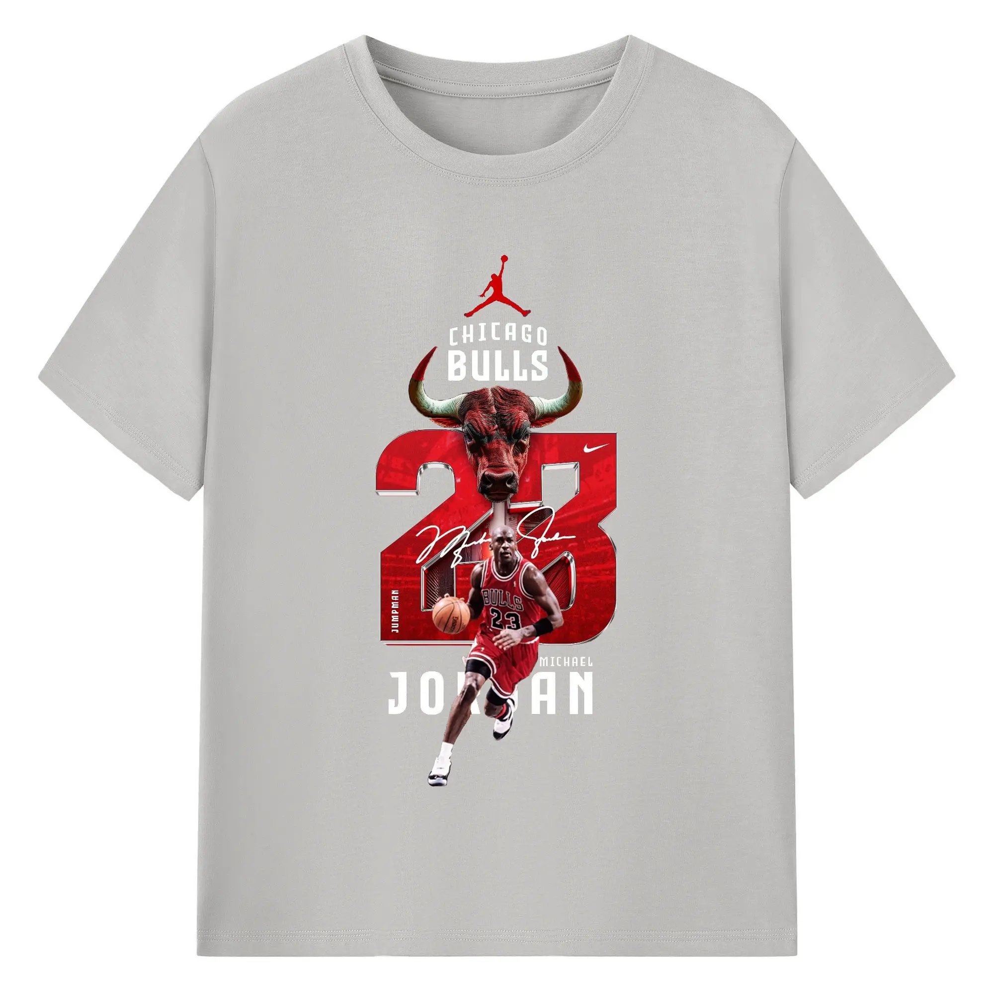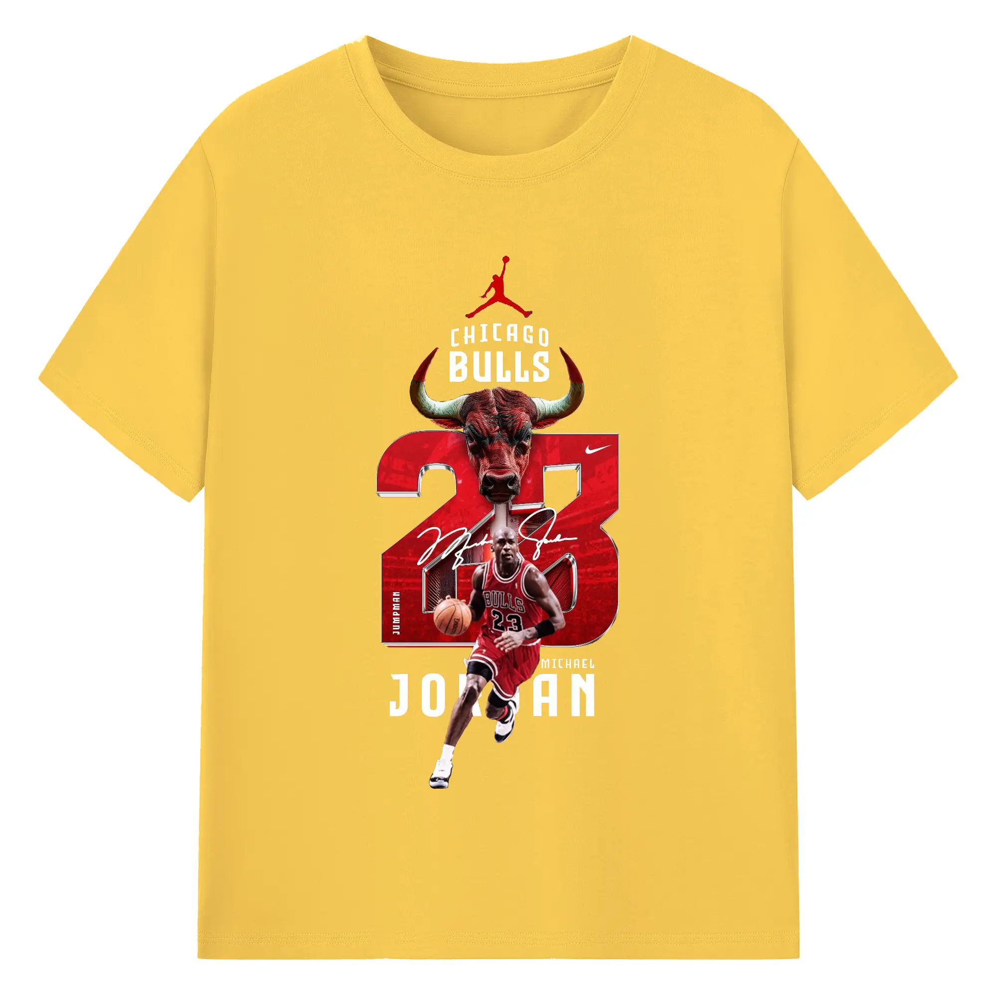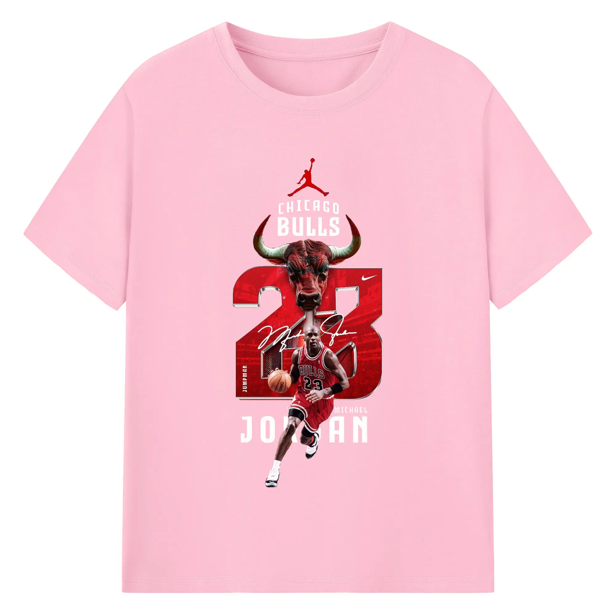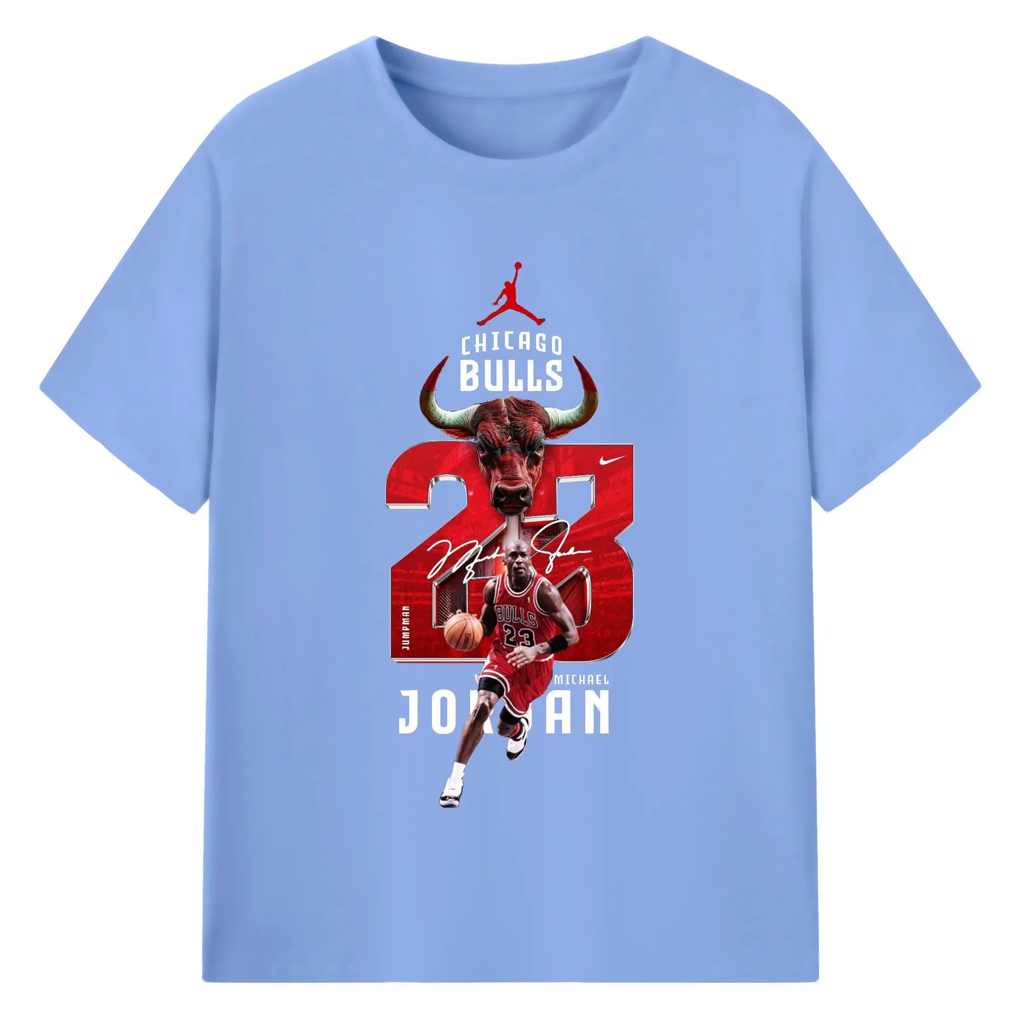 Michael Jordan No. 23 close-up - 180g Cotton T-Shirt With Front Heat Transfer Print – Soft, Lightweight, Fitted Design – Comfortable Casual Wear For Sports & Everyday Use