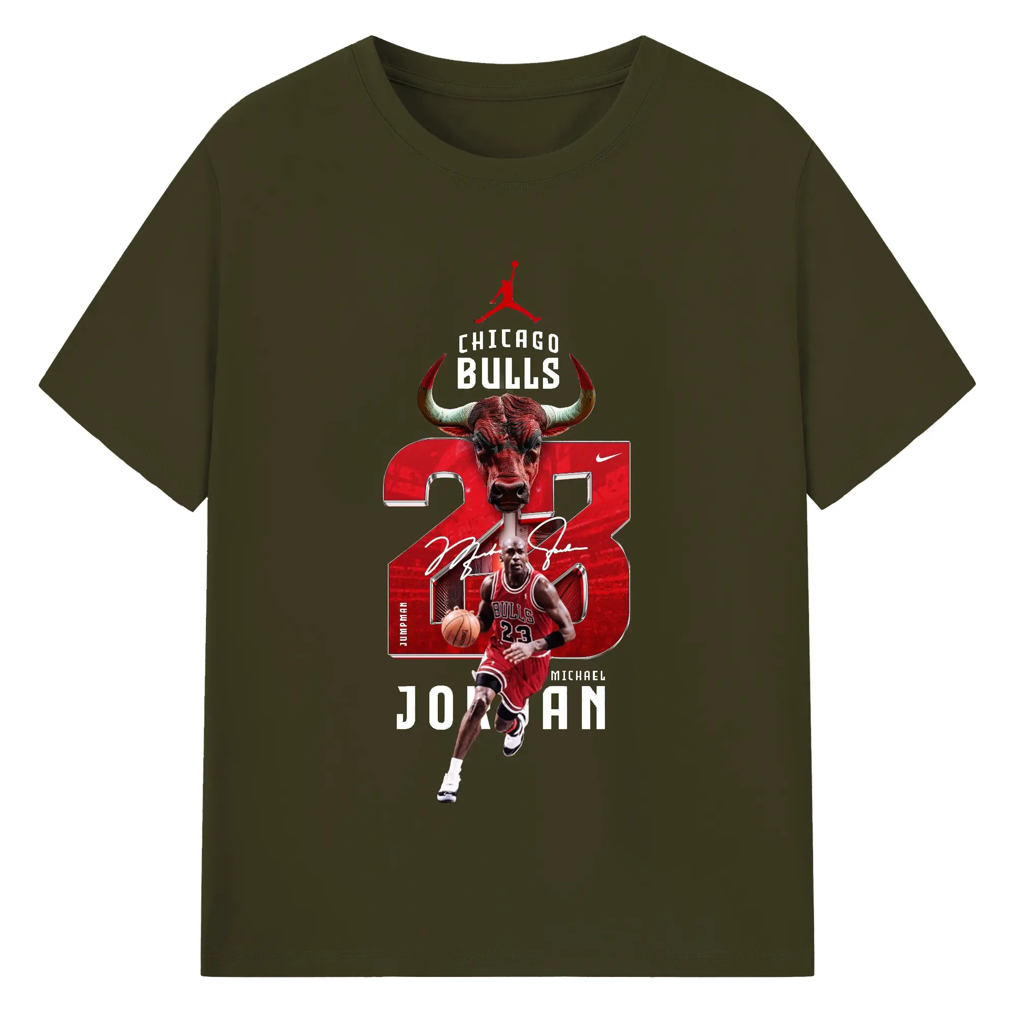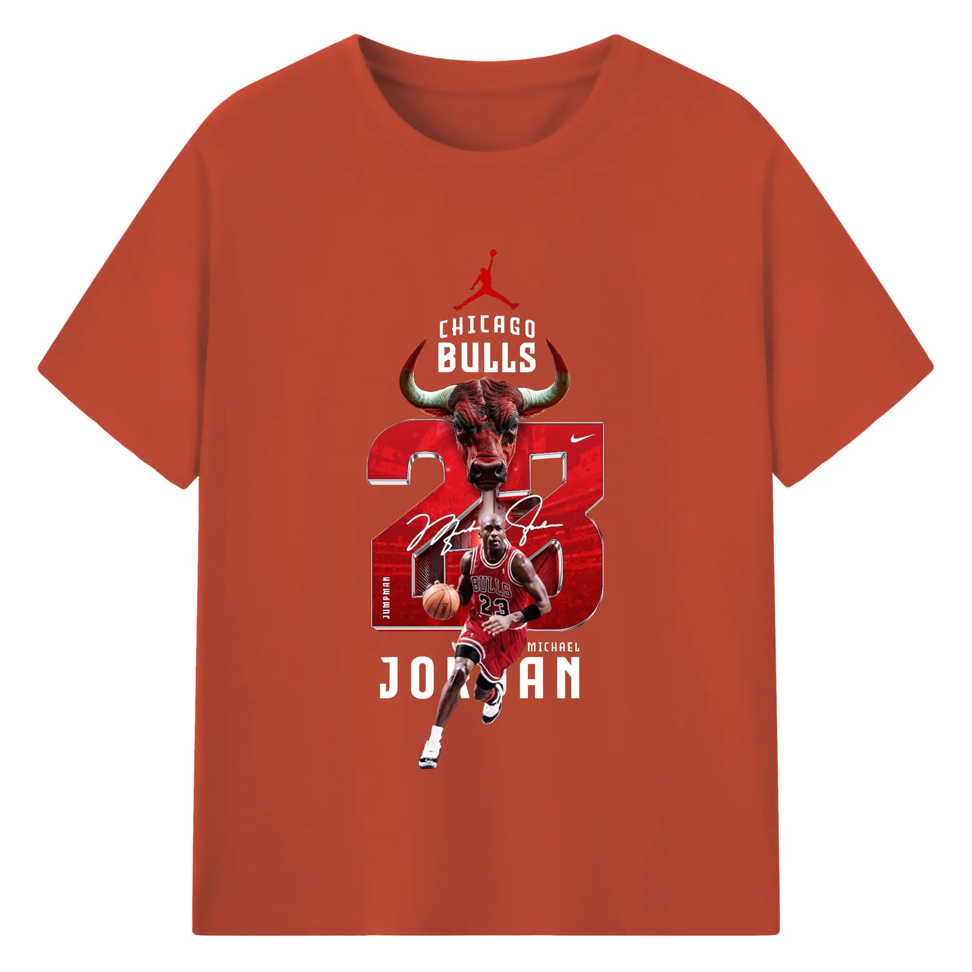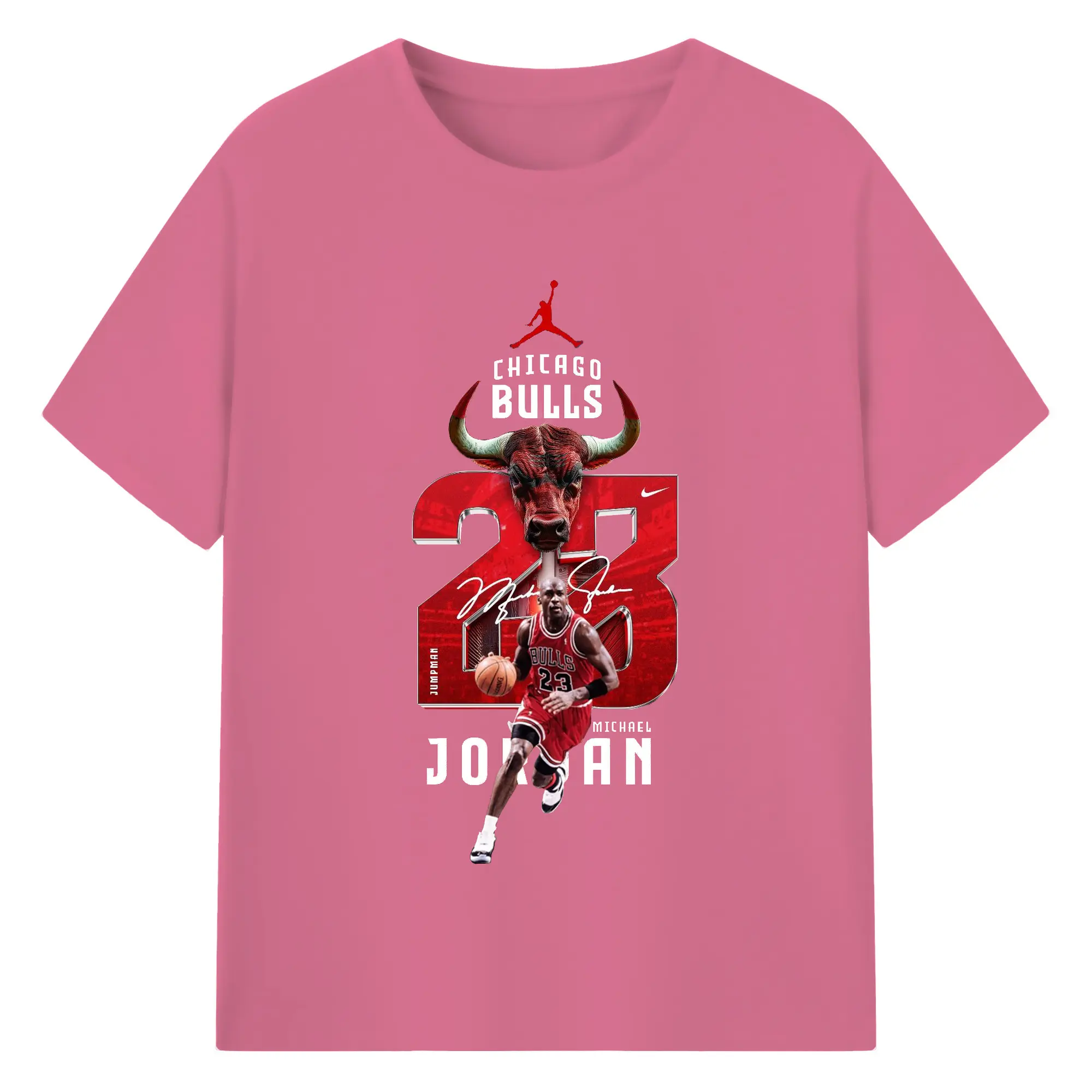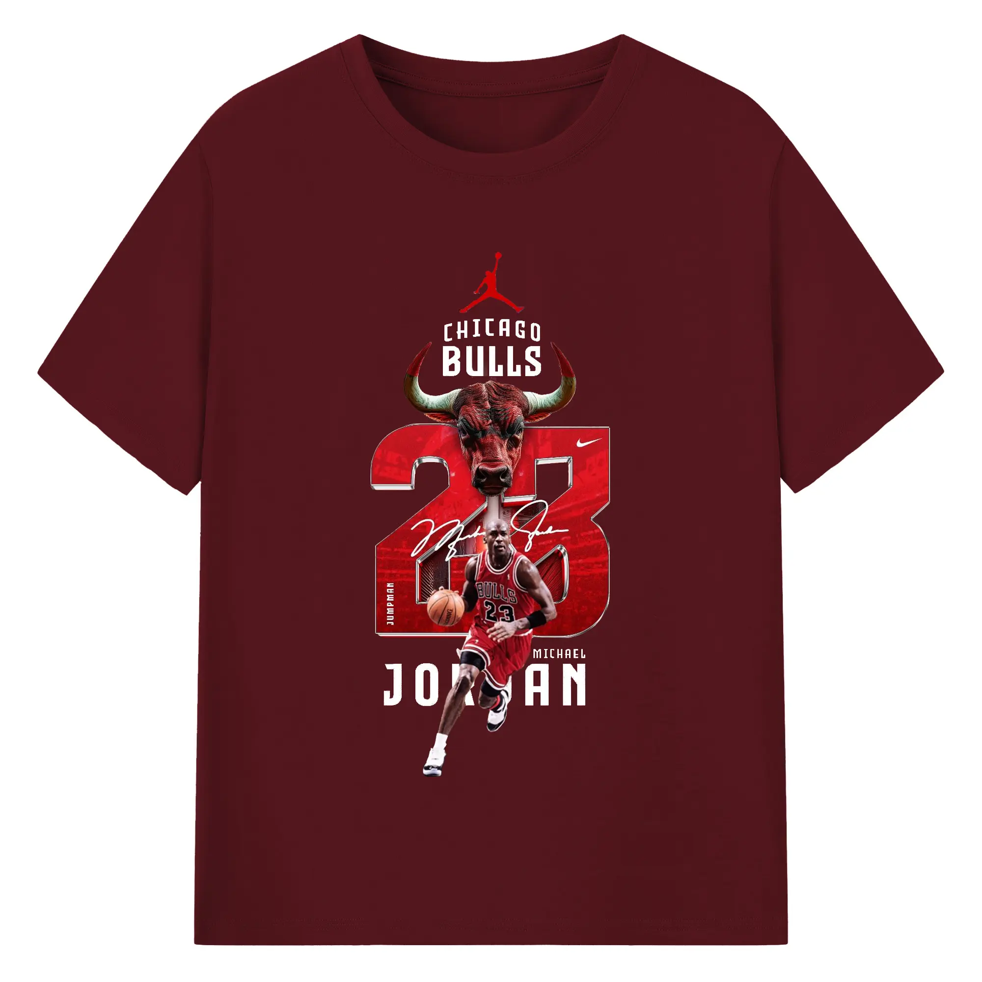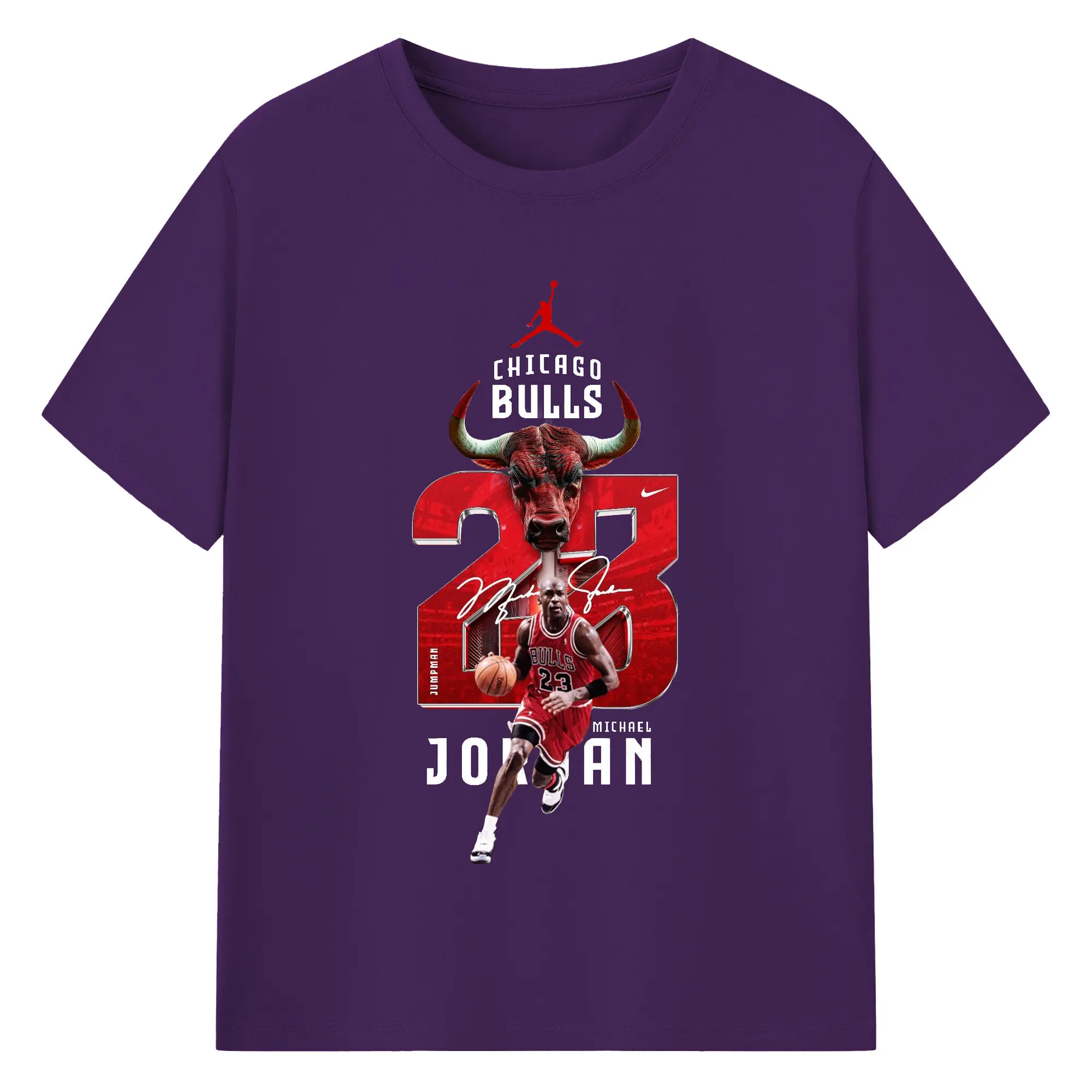 Michael Jordan No. 23 close-up - 180g Cotton T-Shirt With Front Heat Transfer Print – Soft, Lightweight, Fitted Design – Comfortable Casual Wear For Sports & Everyday Use