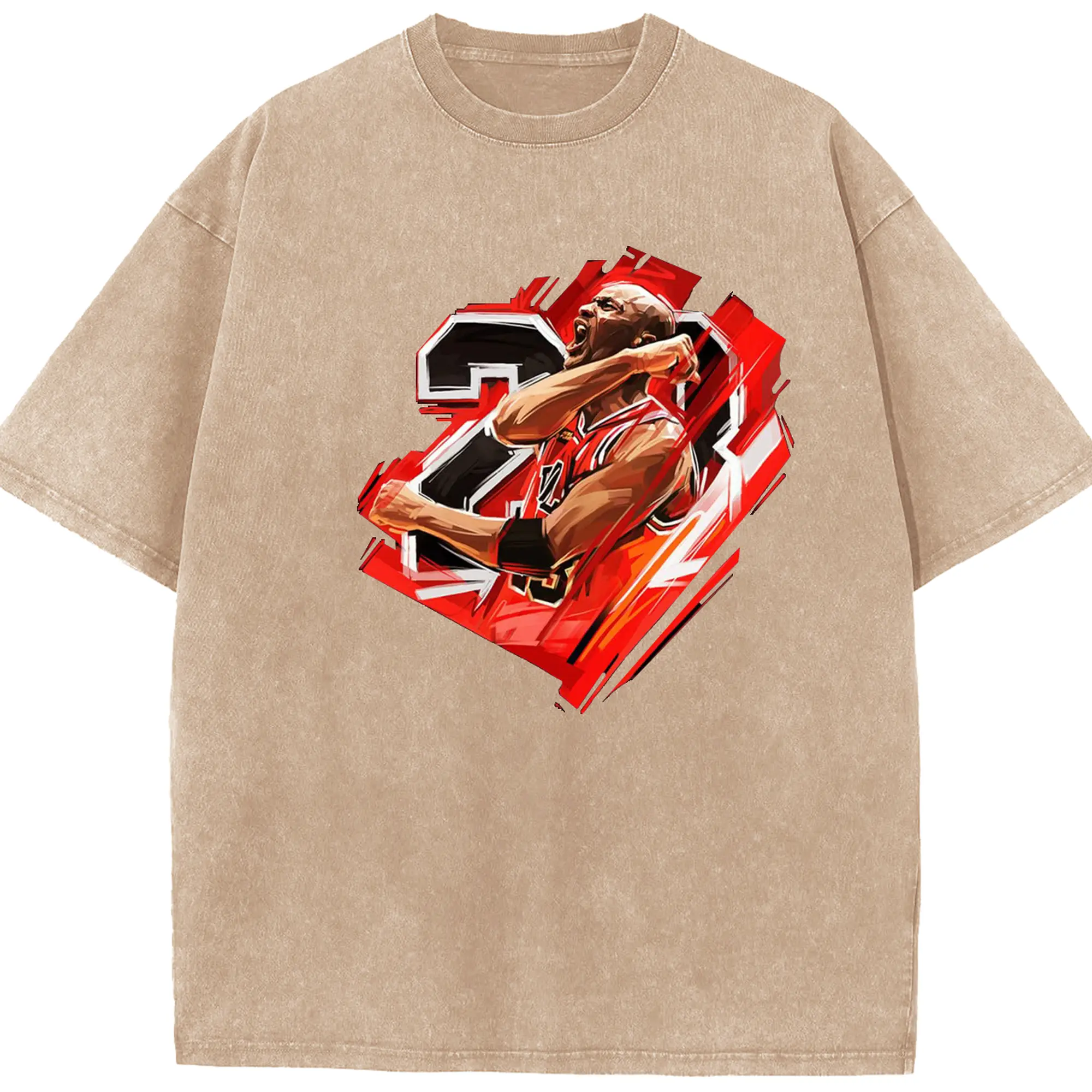 Michael Jordan punches to vent his anger - Washed Vintage Look 230g Cotton Oversized T-Shirt With Front Heat Transfer Print – Soft, Lightweight, Stylish Fit – Comfortable Casual Wear For Sports & Everyday Use