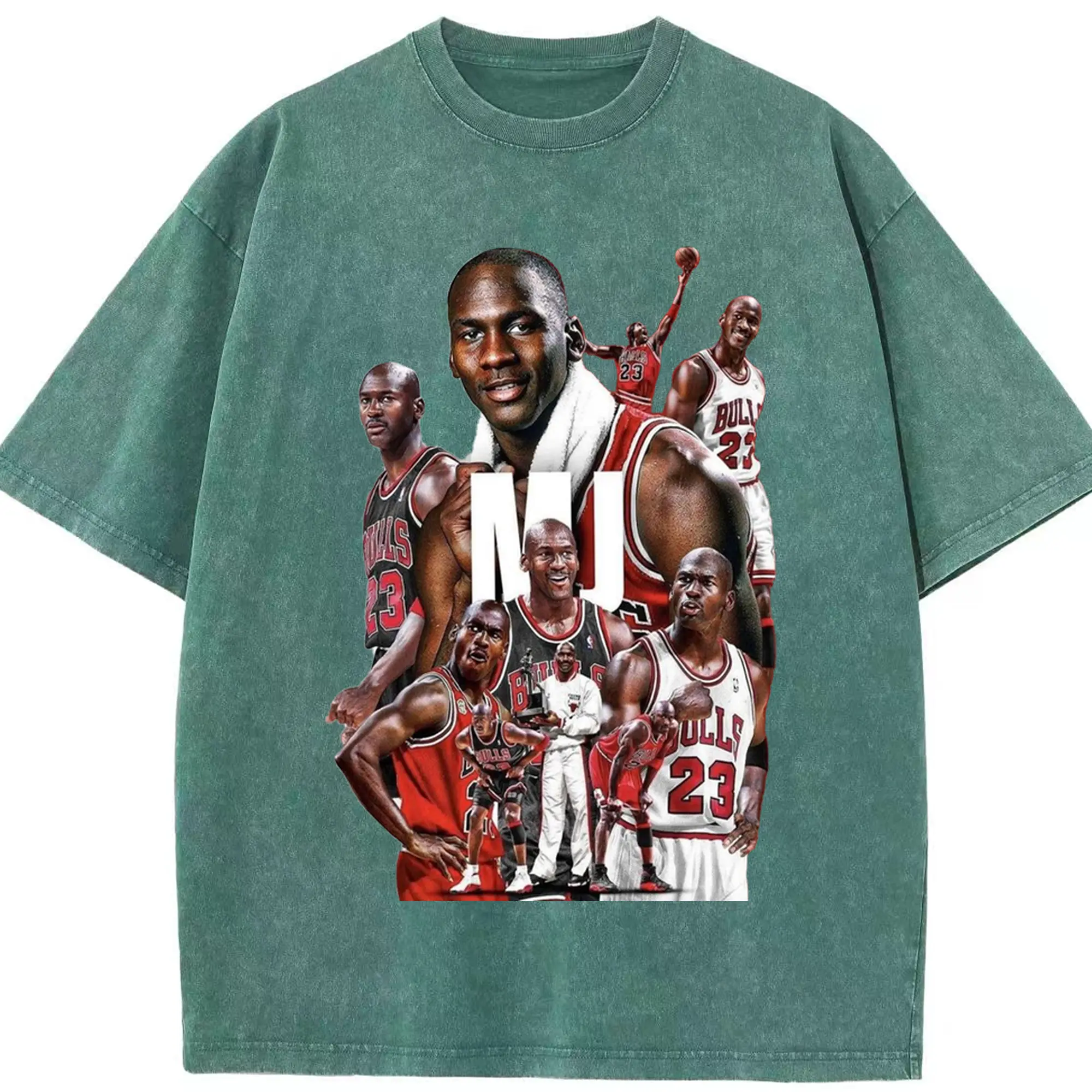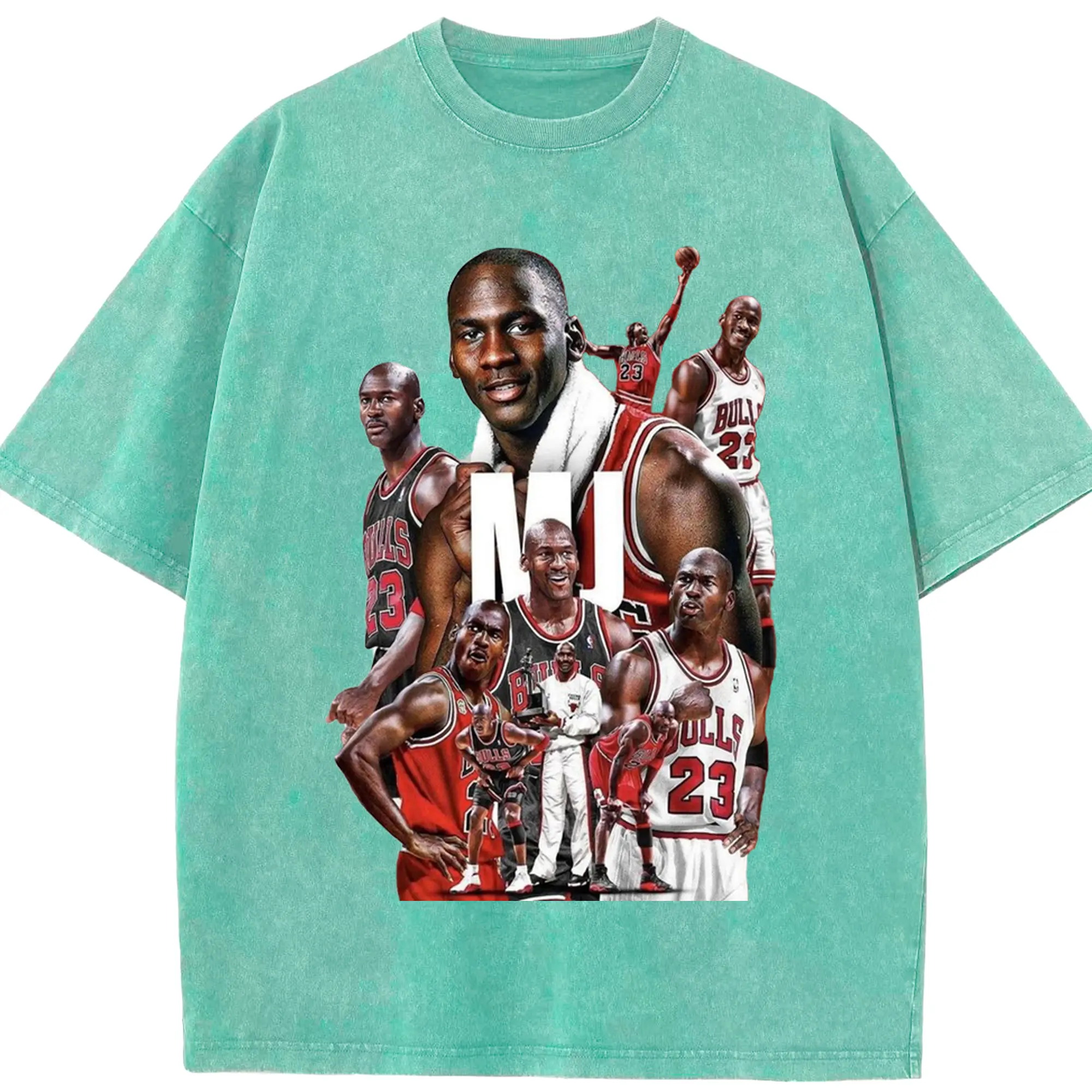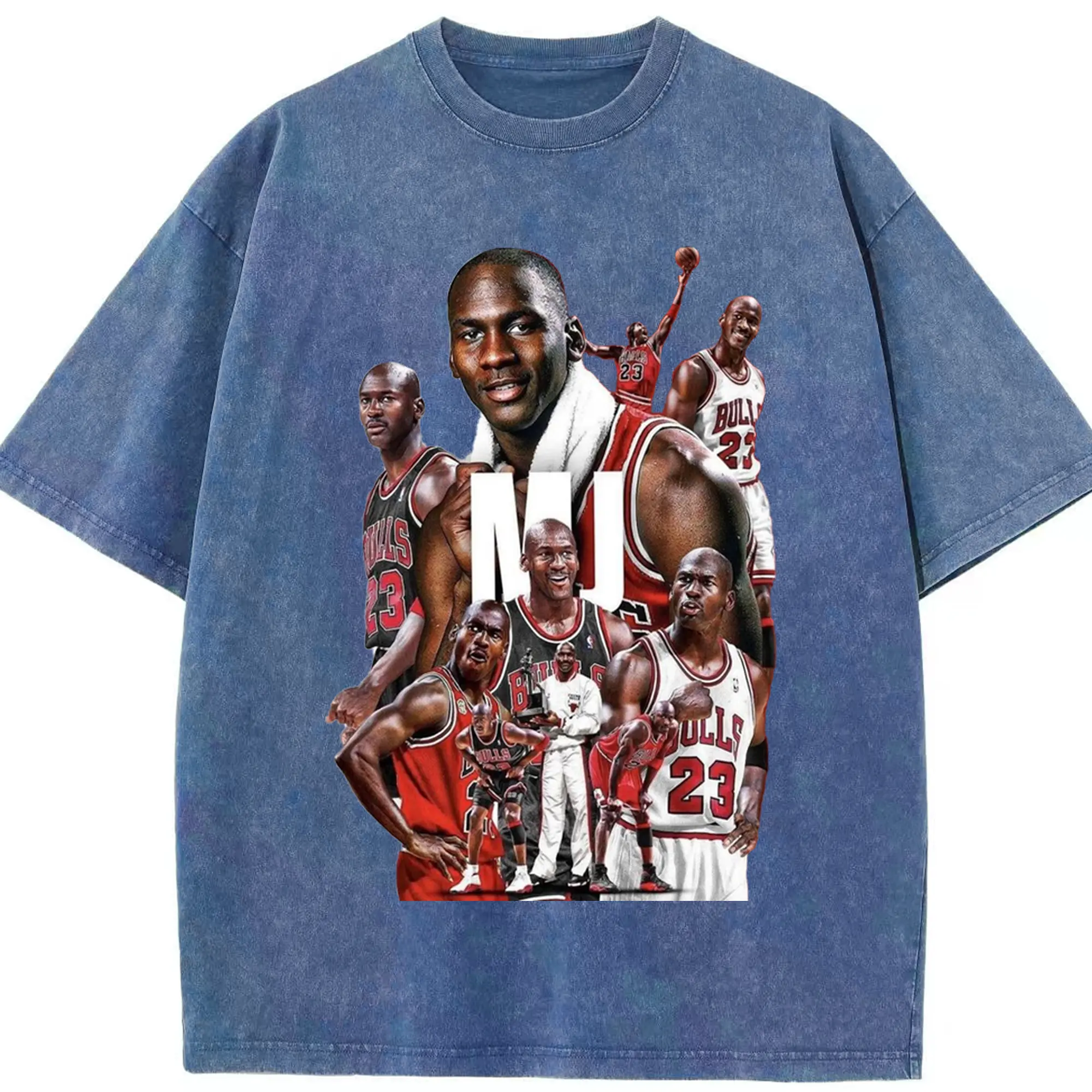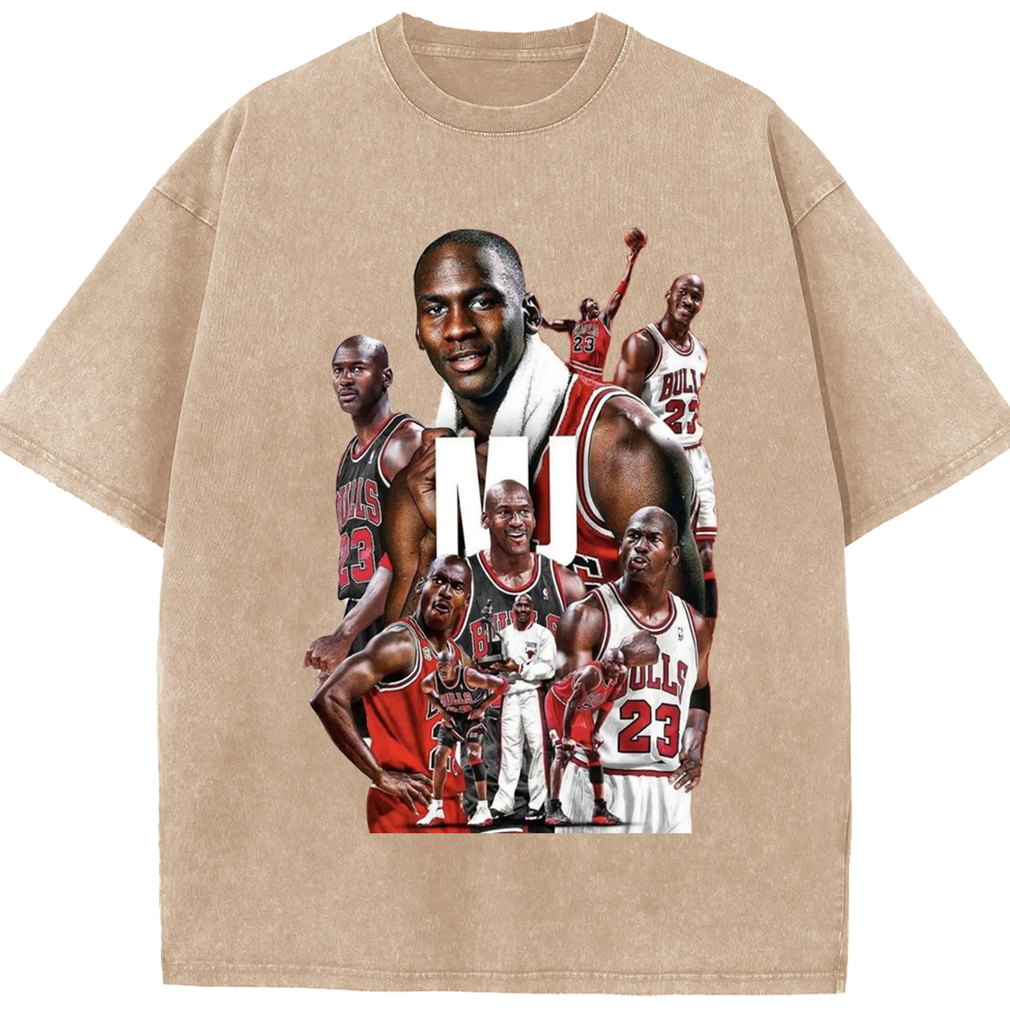 MJ Career Collage Tribute Shirt - Washed Vintage Look 230g Cotton Oversized T-Shirt With Front Heat Transfer Print – Soft, Lightweight, Stylish Fit – Comfortable Casual Wear For Sports & Everyday Use