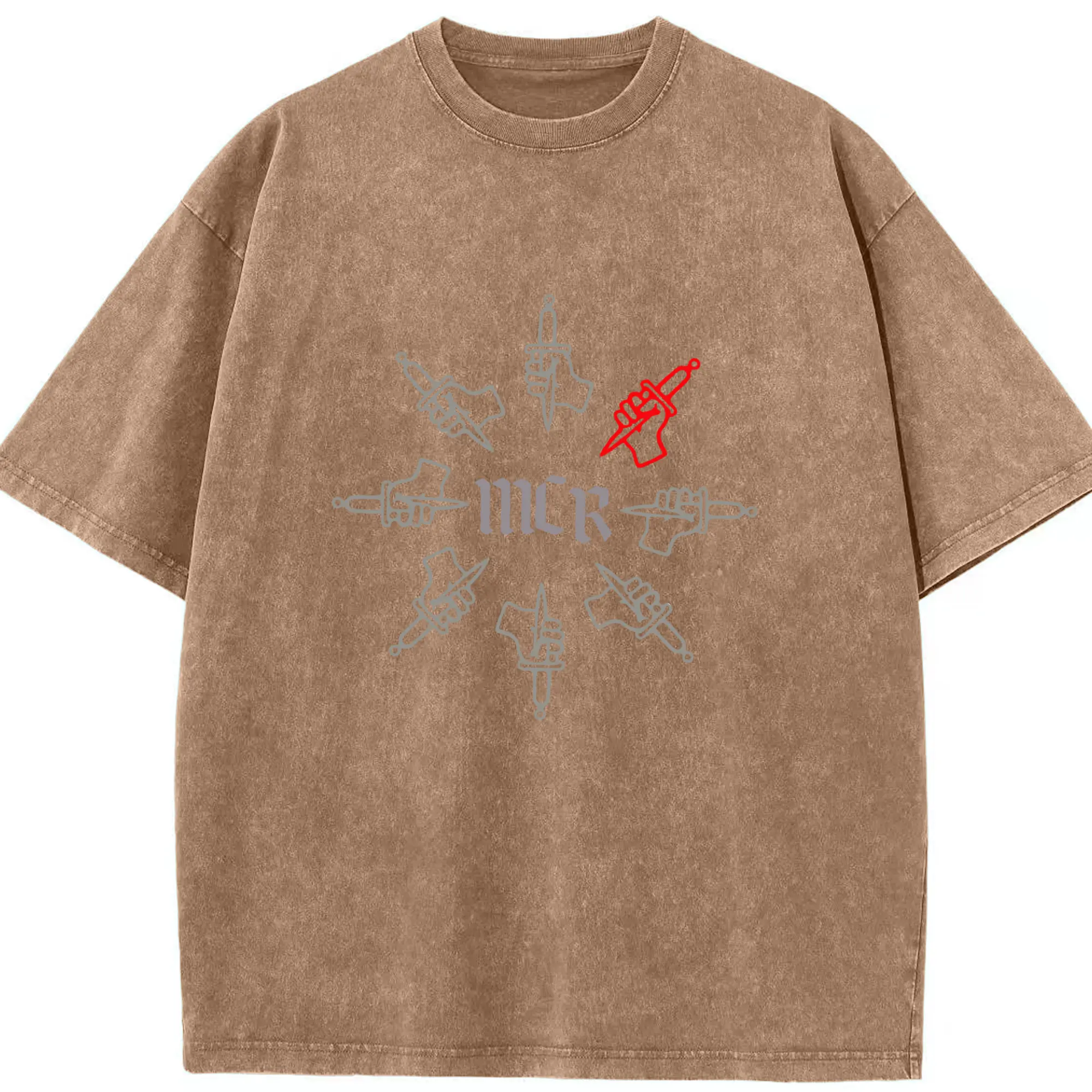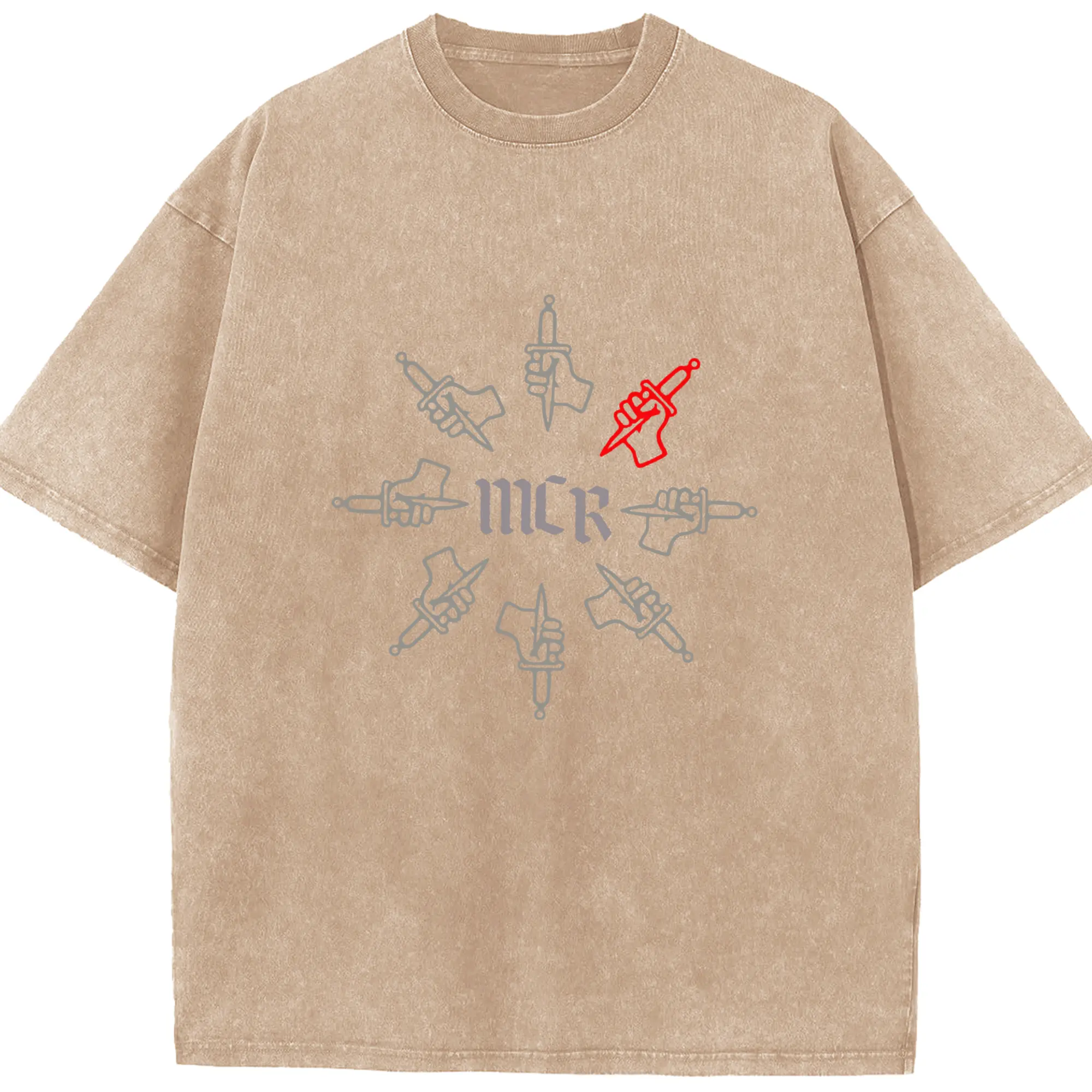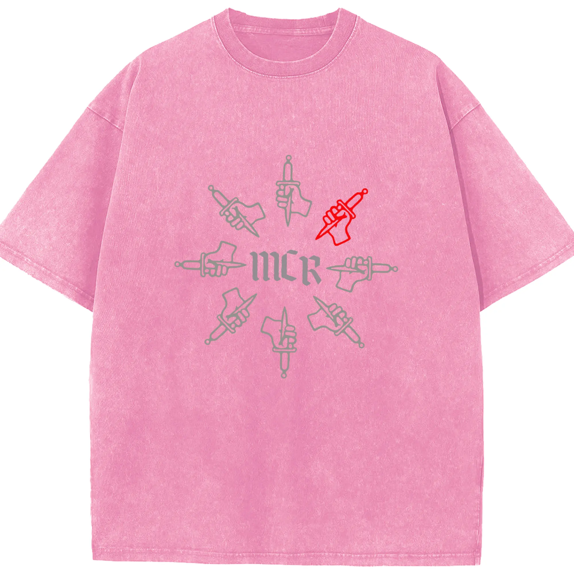 My Chemical Romance Emo Rock Dagger Logo DIY - Washed Vintage Look 230g Cotton Oversized T-Shirt With Front Heat Transfer Print – Soft, Lightweight, Stylish Fit – Comfortable Casual Wear For Sports & Everyday Use