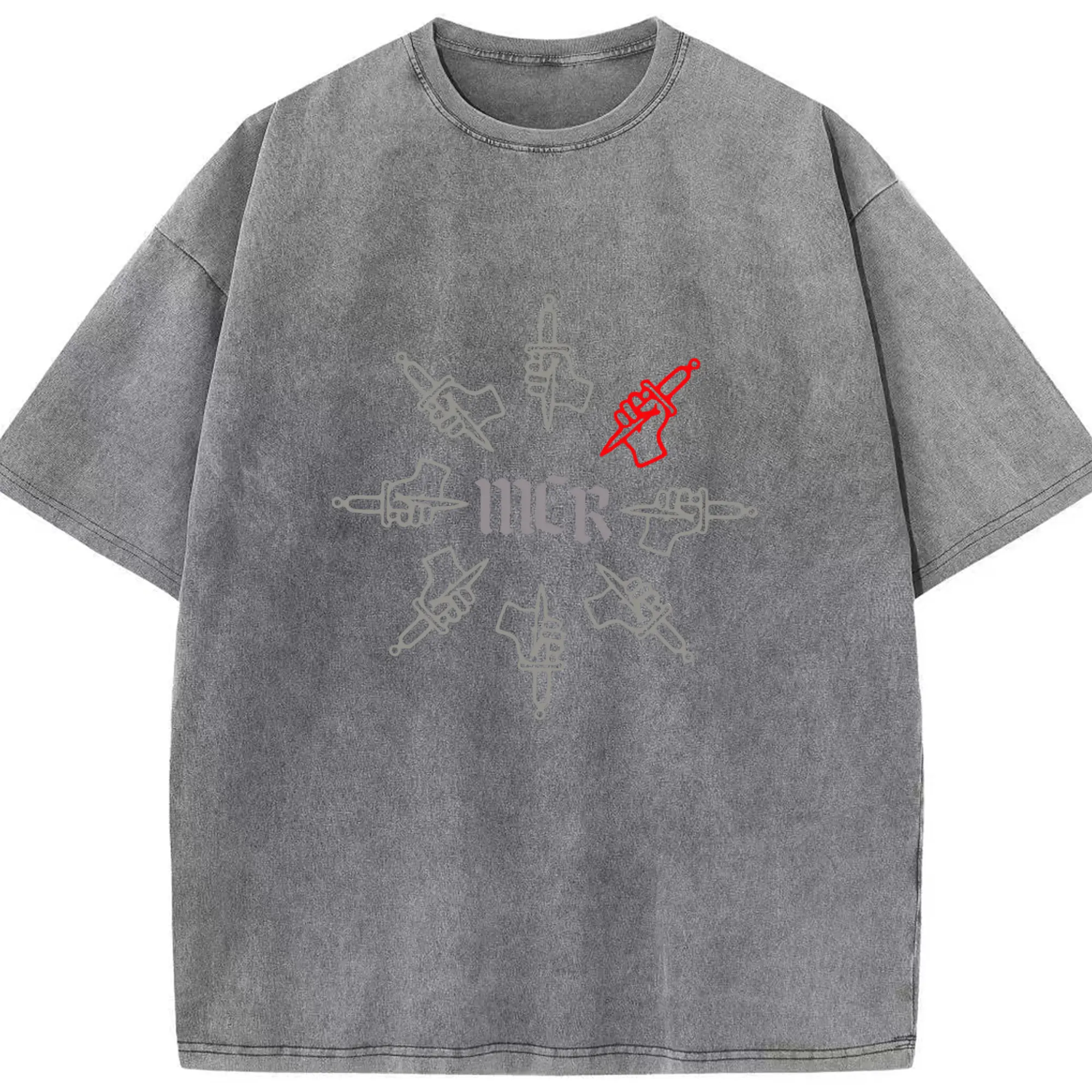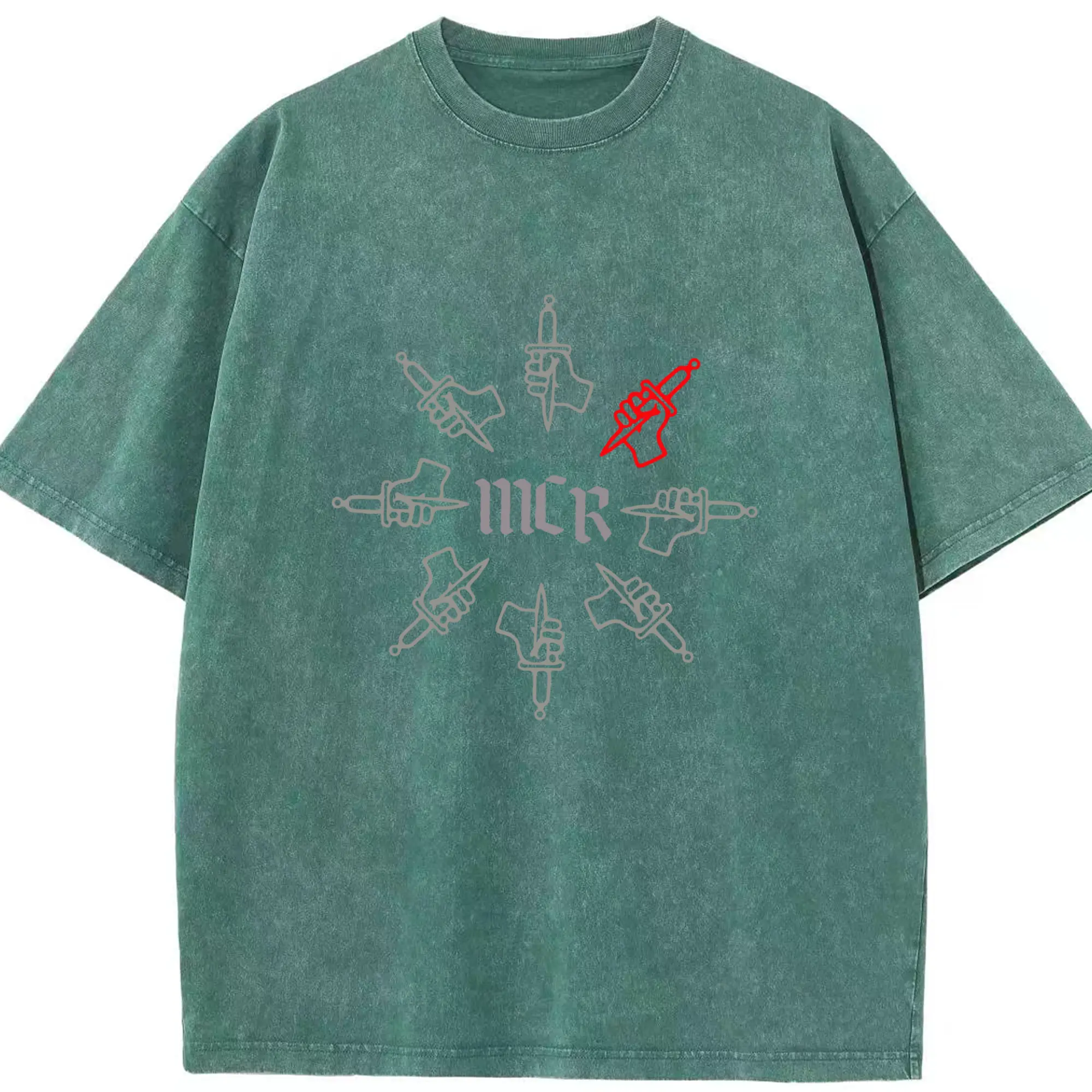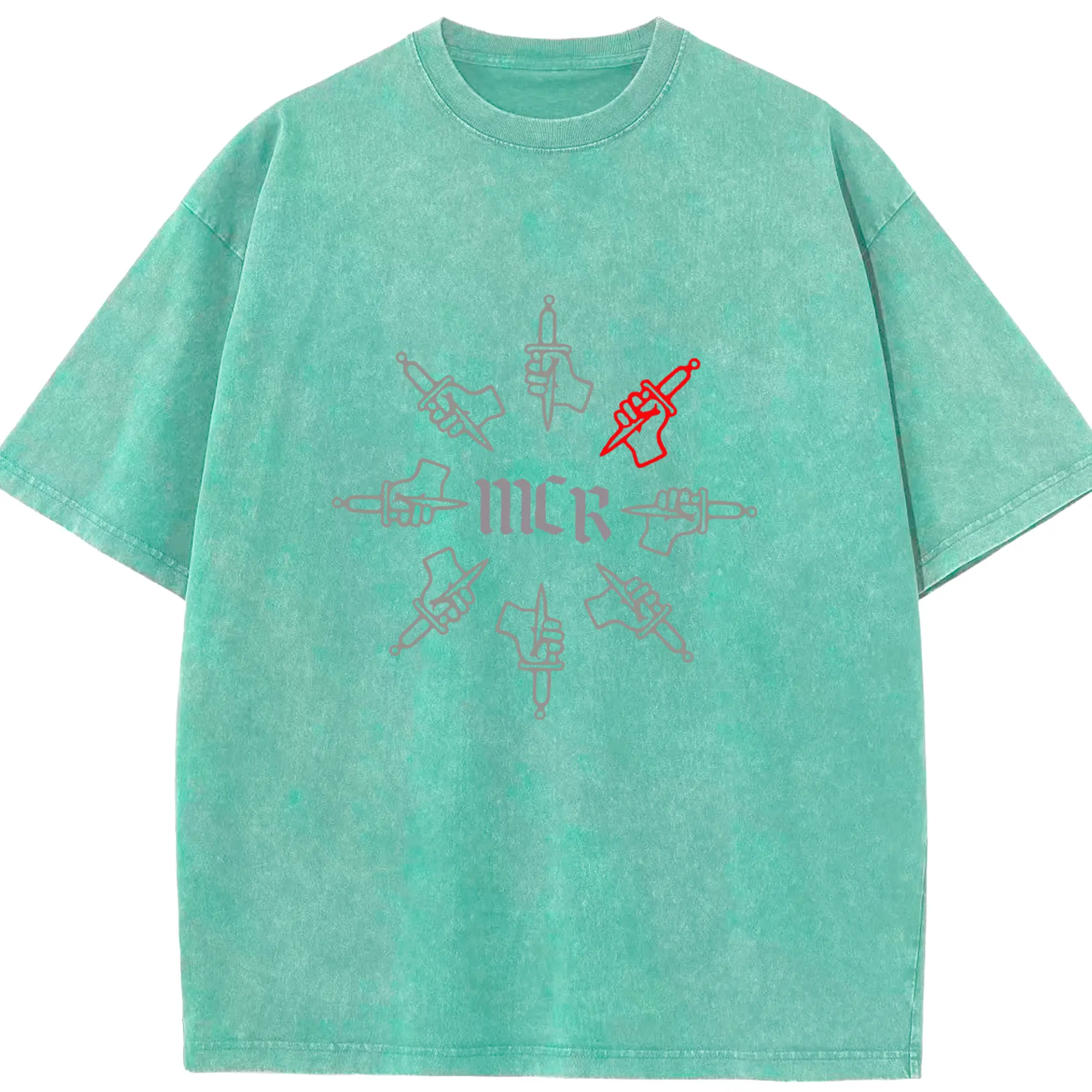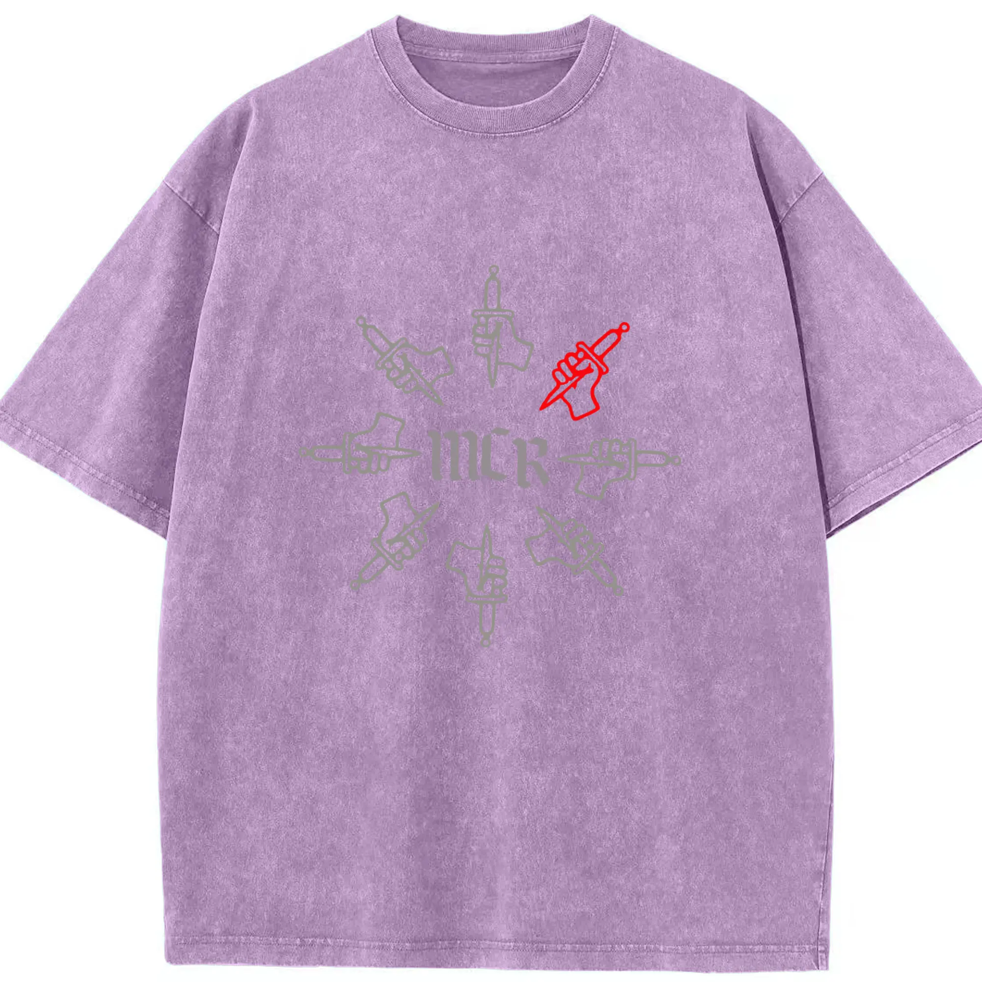 My Chemical Romance Emo Rock Dagger Logo DIY - Washed Vintage Look 230g Cotton Oversized T-Shirt With Front Heat Transfer Print – Soft, Lightweight, Stylish Fit – Comfortable Casual Wear For Sports & Everyday Use