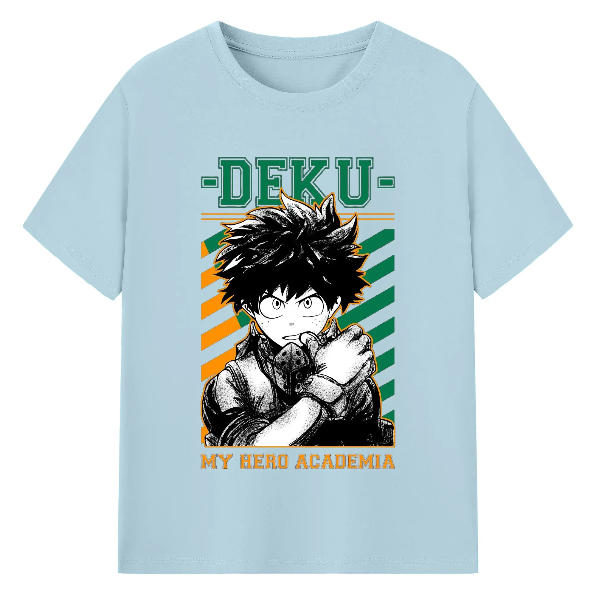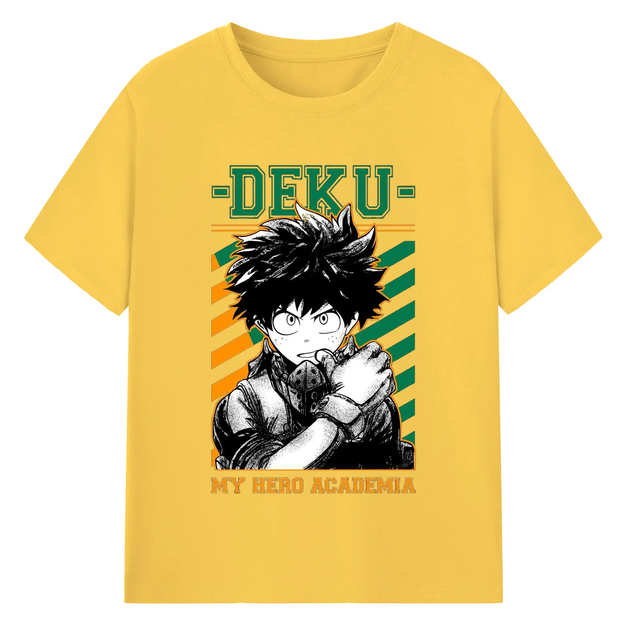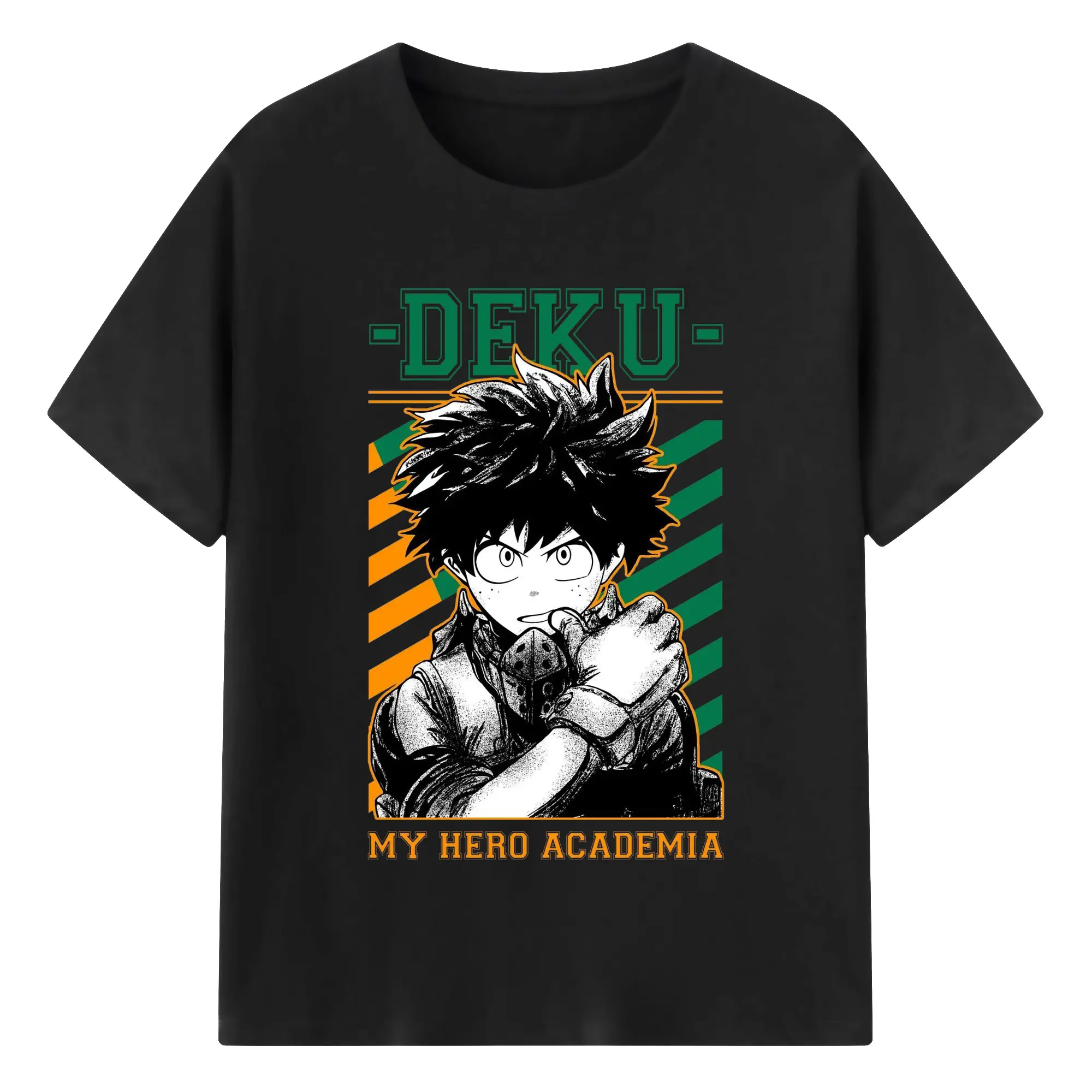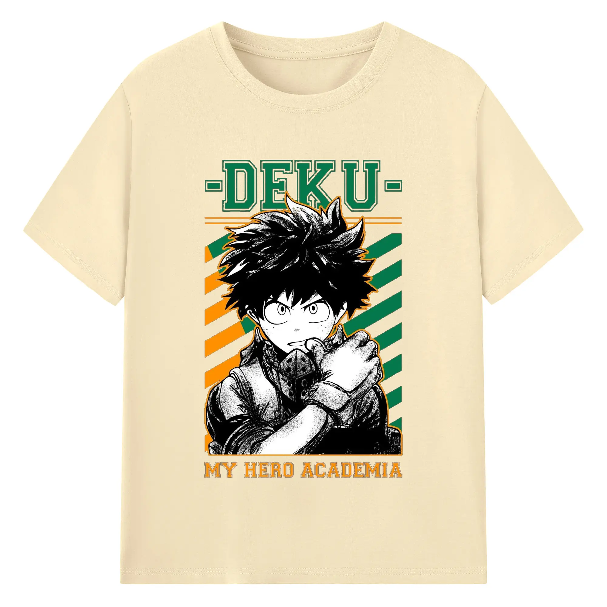 My Hero Academia Deku Retro Campus Style DIY - 180g Cotton T-Shirt With Front Heat Transfer Print – Soft, Lightweight, Fitted Design – Comfortable Casual Wear For Sports & Everyday Use