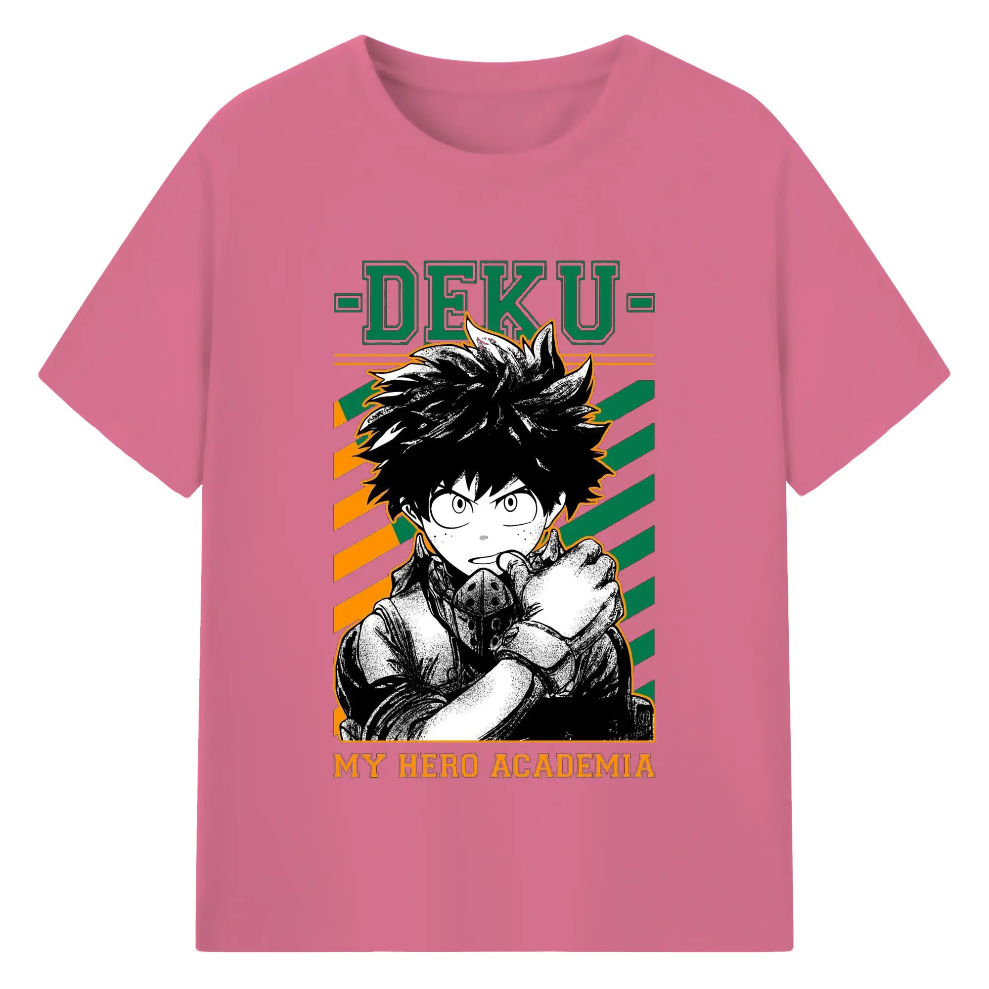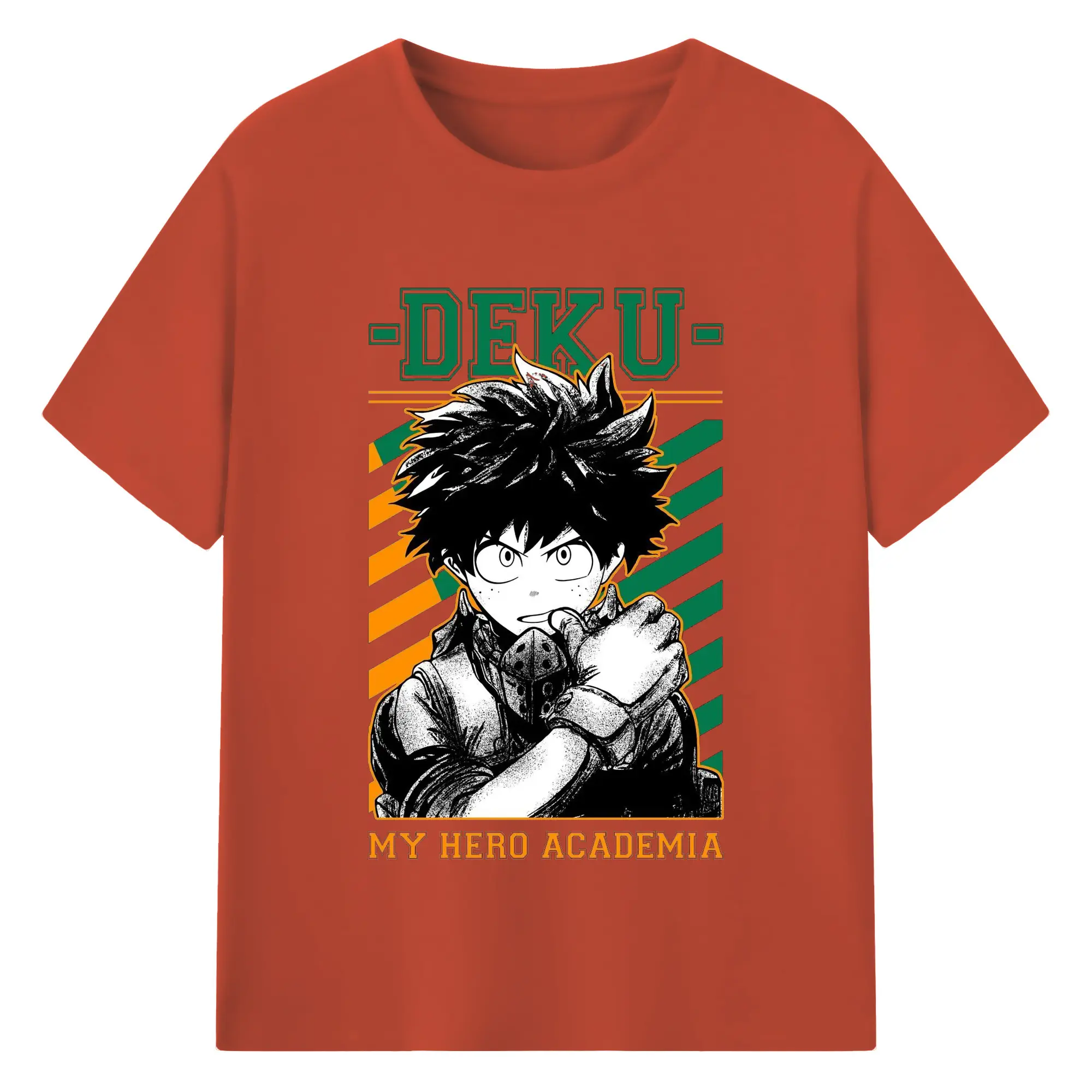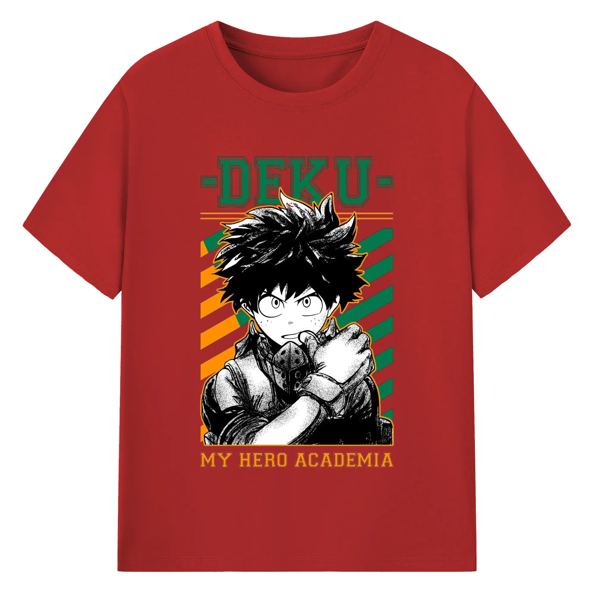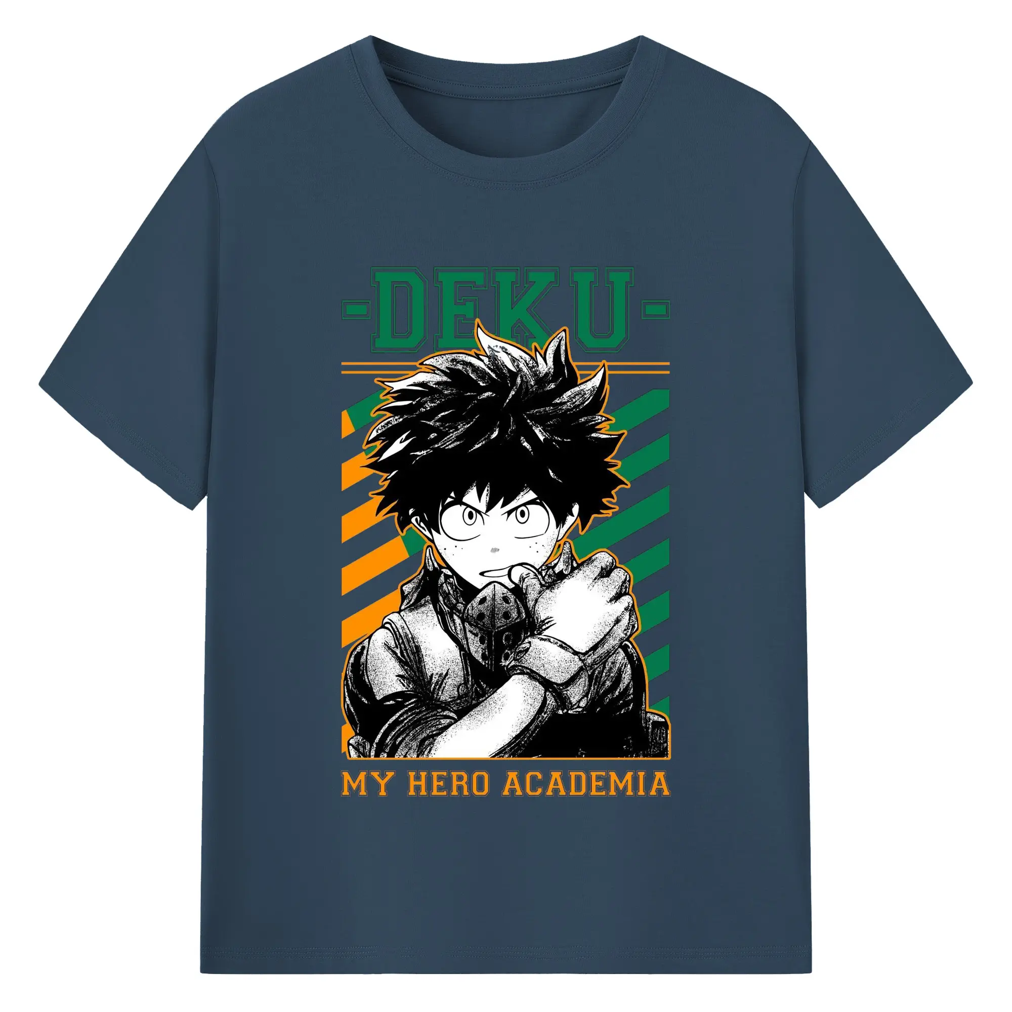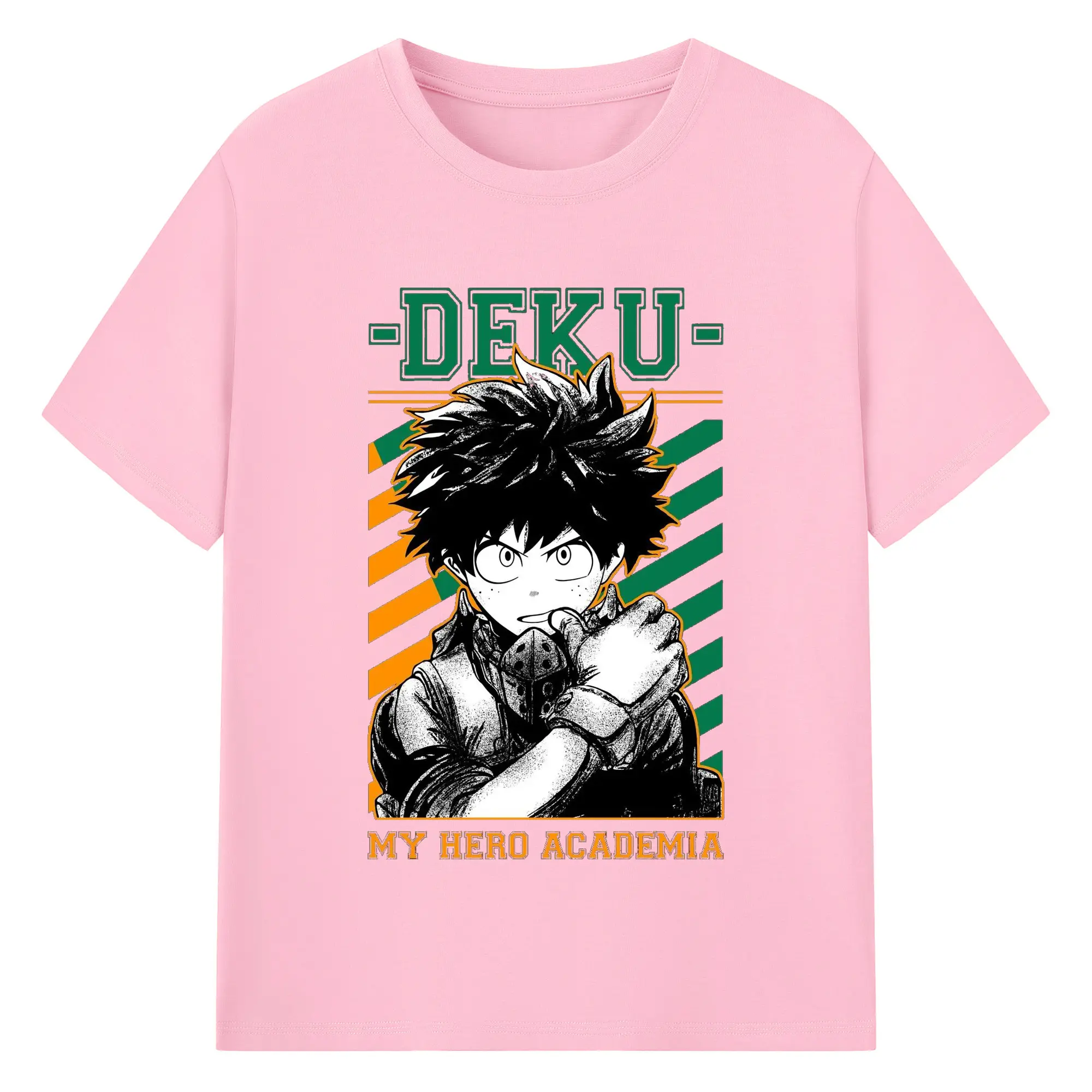 My Hero Academia Deku Retro Campus Style DIY - 180g Cotton T-Shirt With Front Heat Transfer Print – Soft, Lightweight, Fitted Design – Comfortable Casual Wear For Sports & Everyday Use