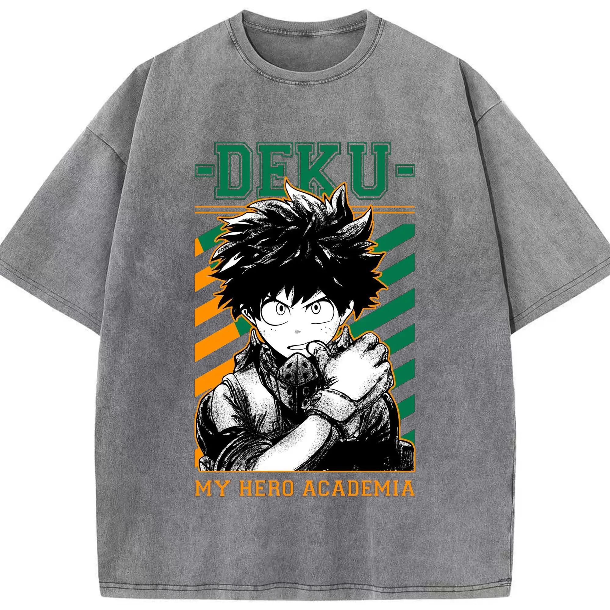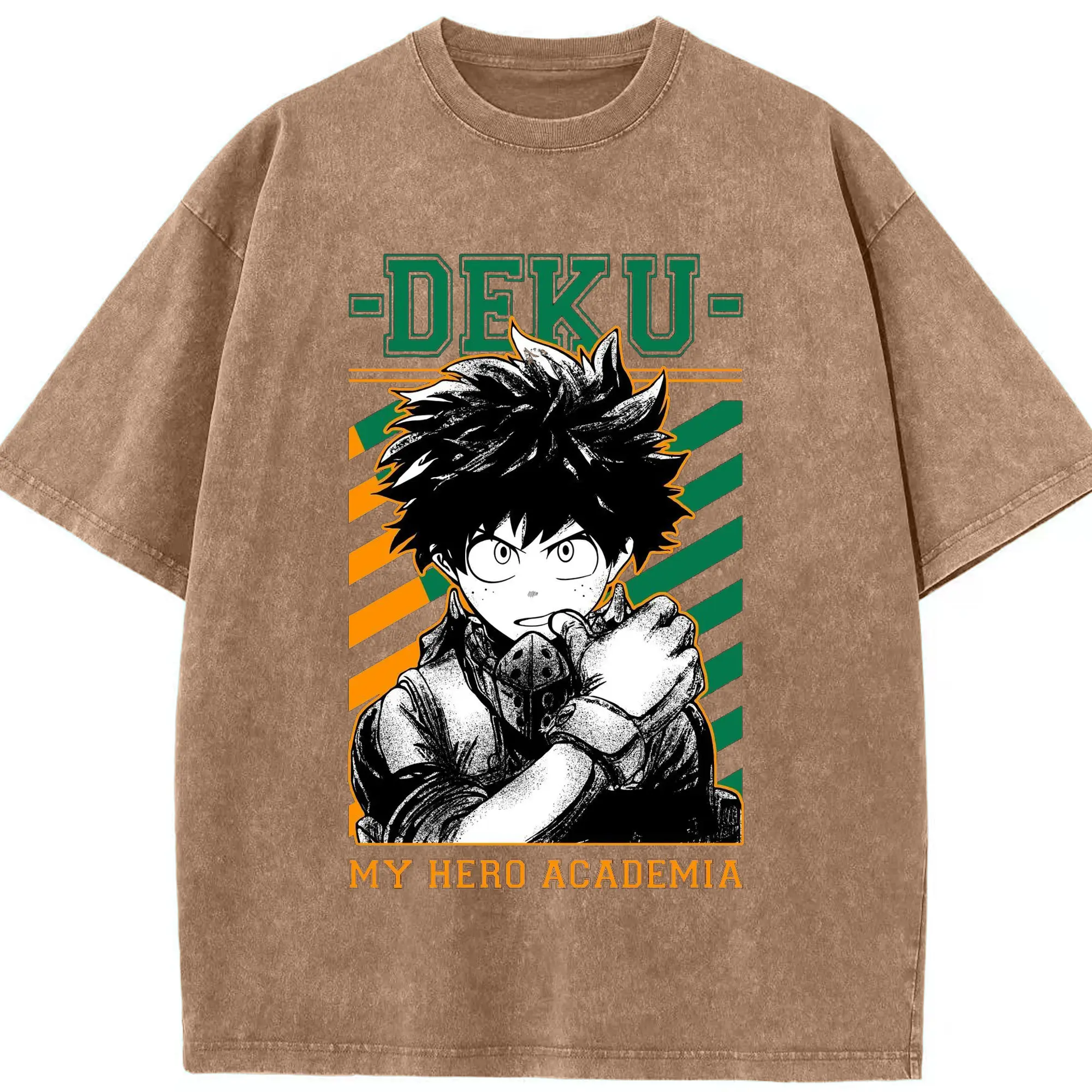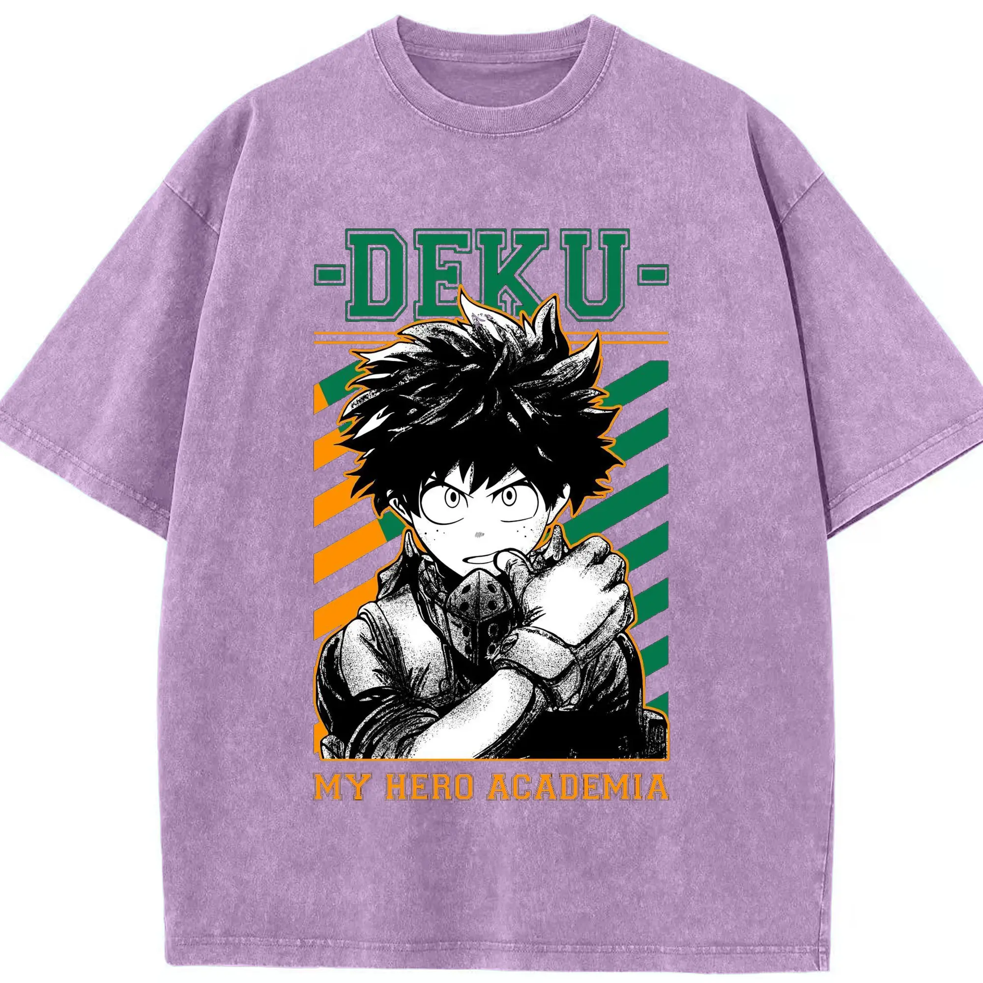 My Hero Academia Deku Retro Campus Style DIY - Washed Vintage Look 230g Cotton Oversized T-Shirt With Front Heat Transfer Print – Soft, Lightweight, Stylish Fit – Comfortable Casual Wear For Sports & Everyday Use