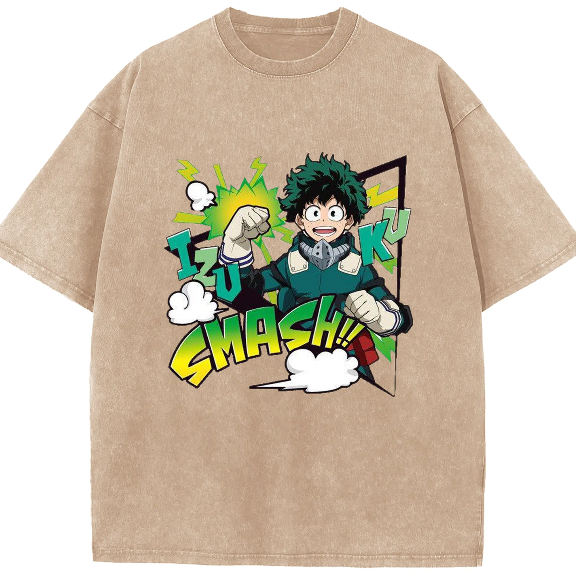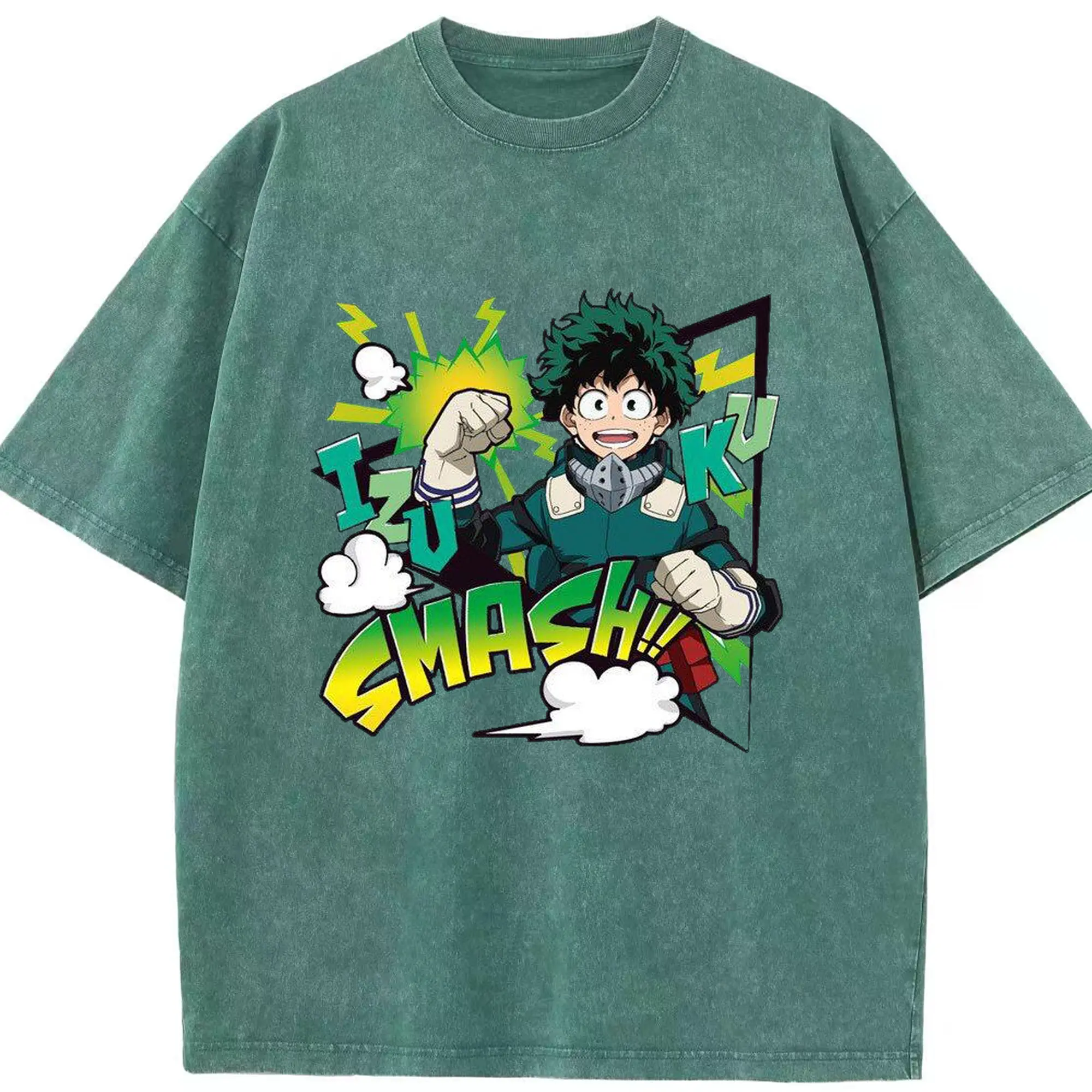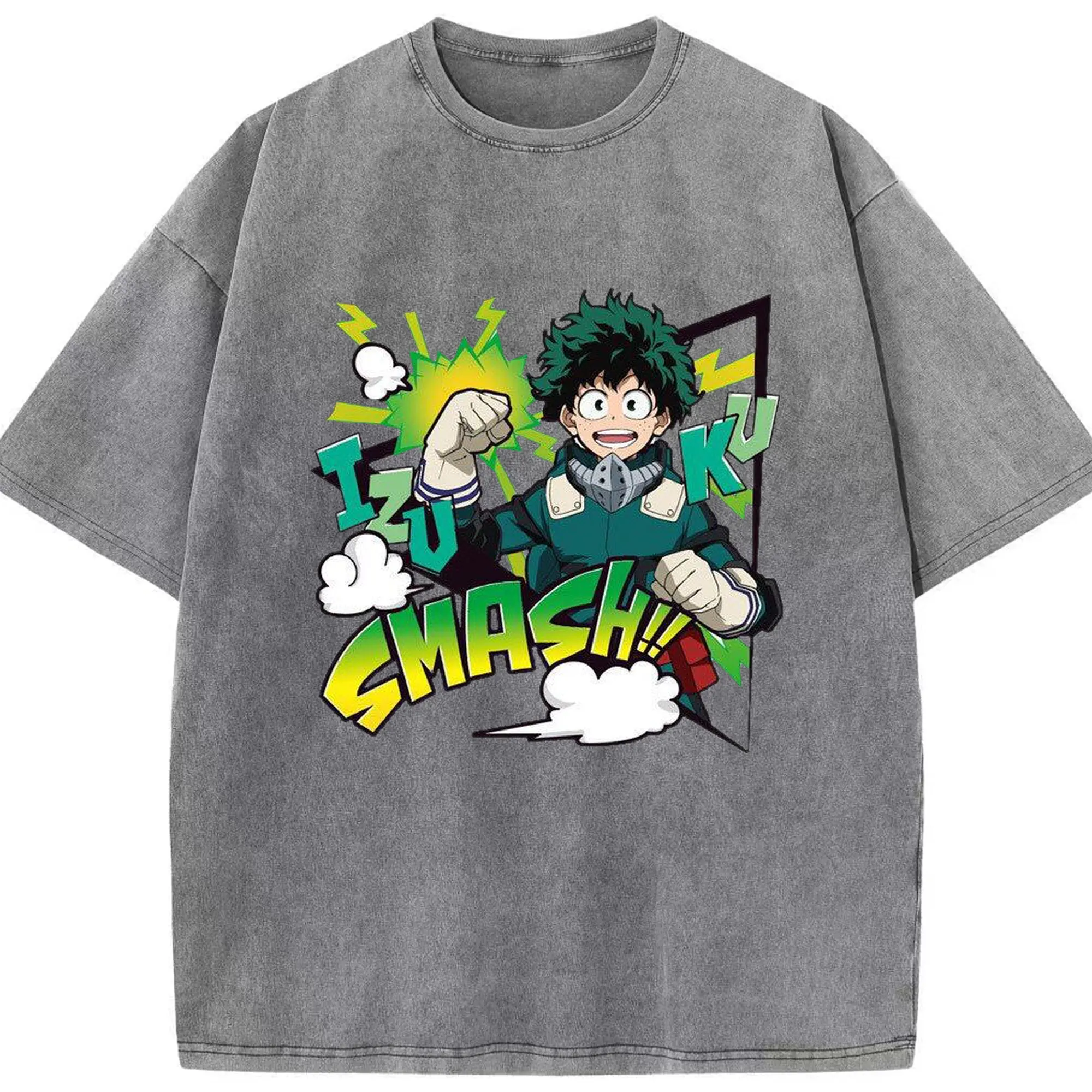 My Hero Academia Izuku Midoriya Smash DIY - Washed Vintage Look 230g Cotton Oversized T-Shirt With Front Heat Transfer Print – Soft, Lightweight, Stylish Fit – Comfortable Casual Wear For Sports & Everyday Use