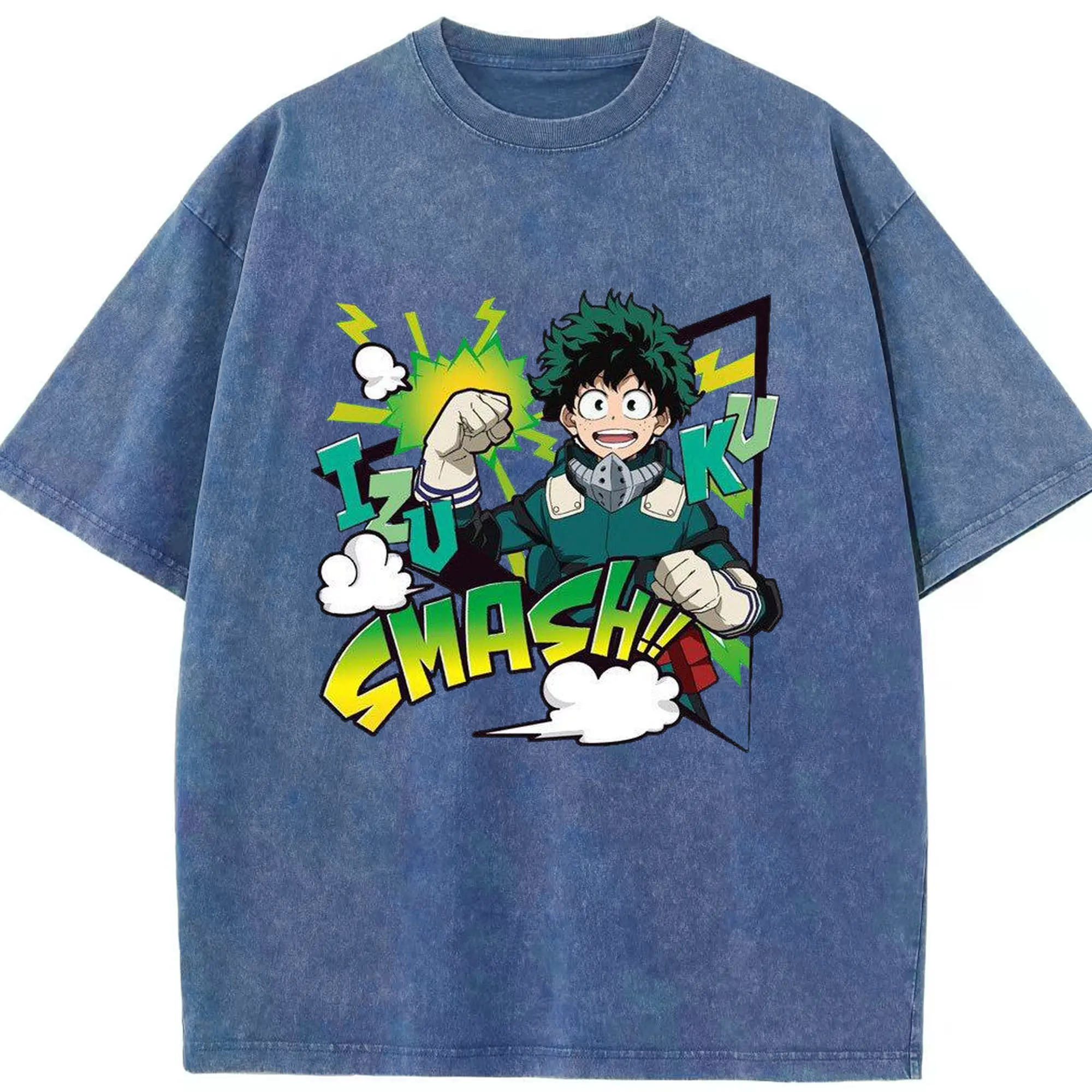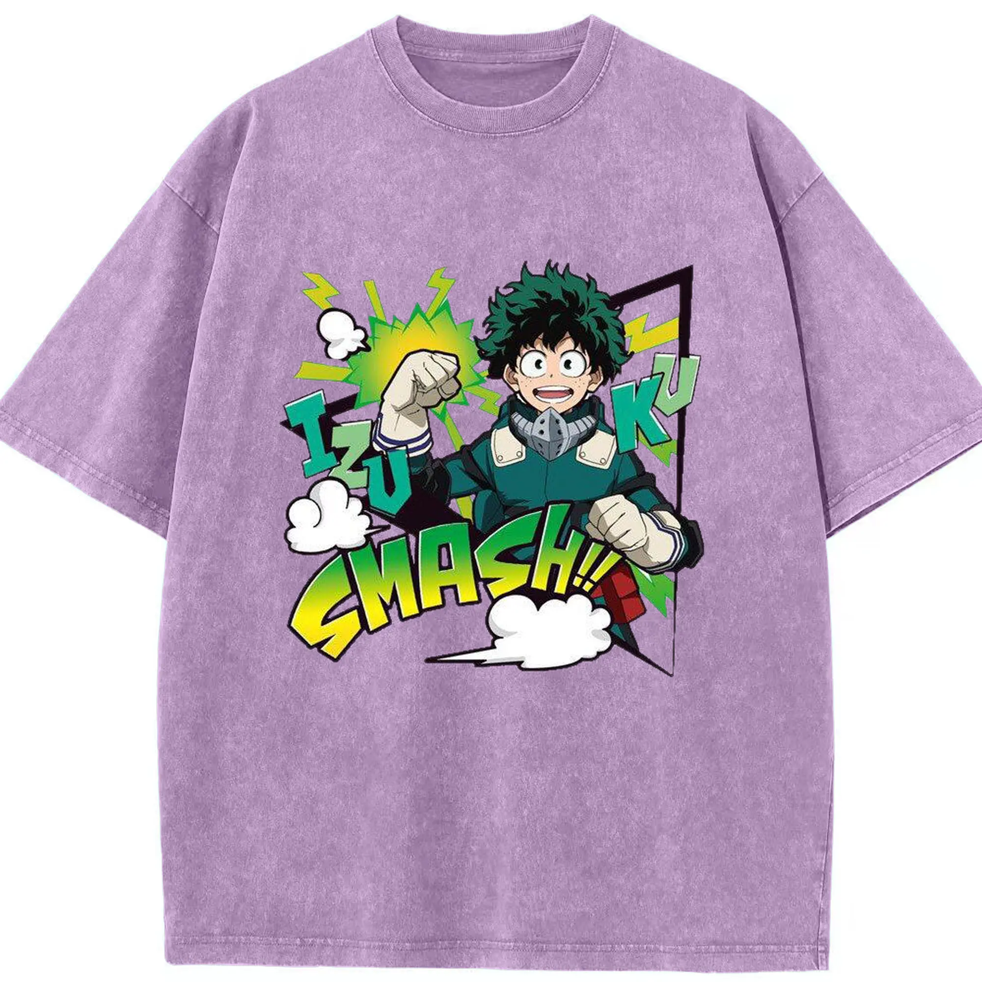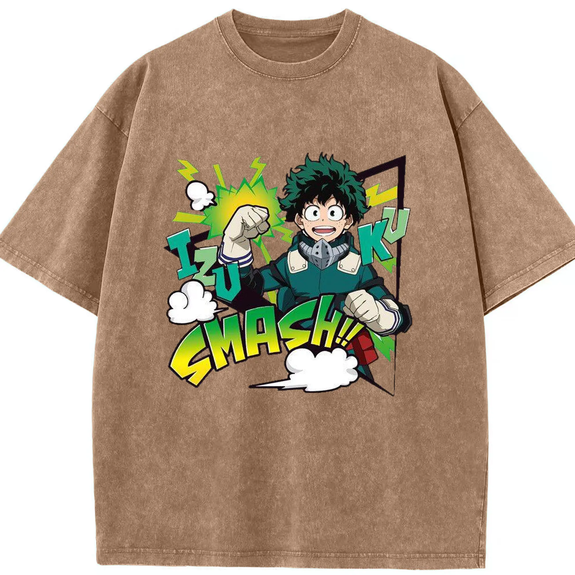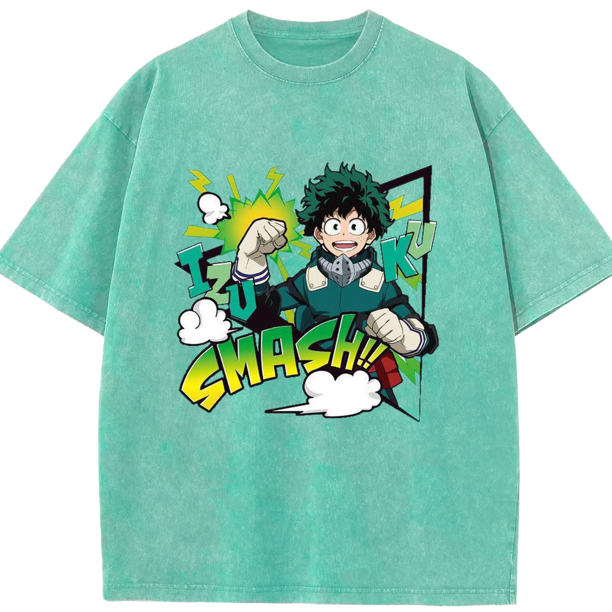 My Hero Academia Izuku Midoriya Smash DIY - Washed Vintage Look 230g Cotton Oversized T-Shirt With Front Heat Transfer Print – Soft, Lightweight, Stylish Fit – Comfortable Casual Wear For Sports & Everyday Use