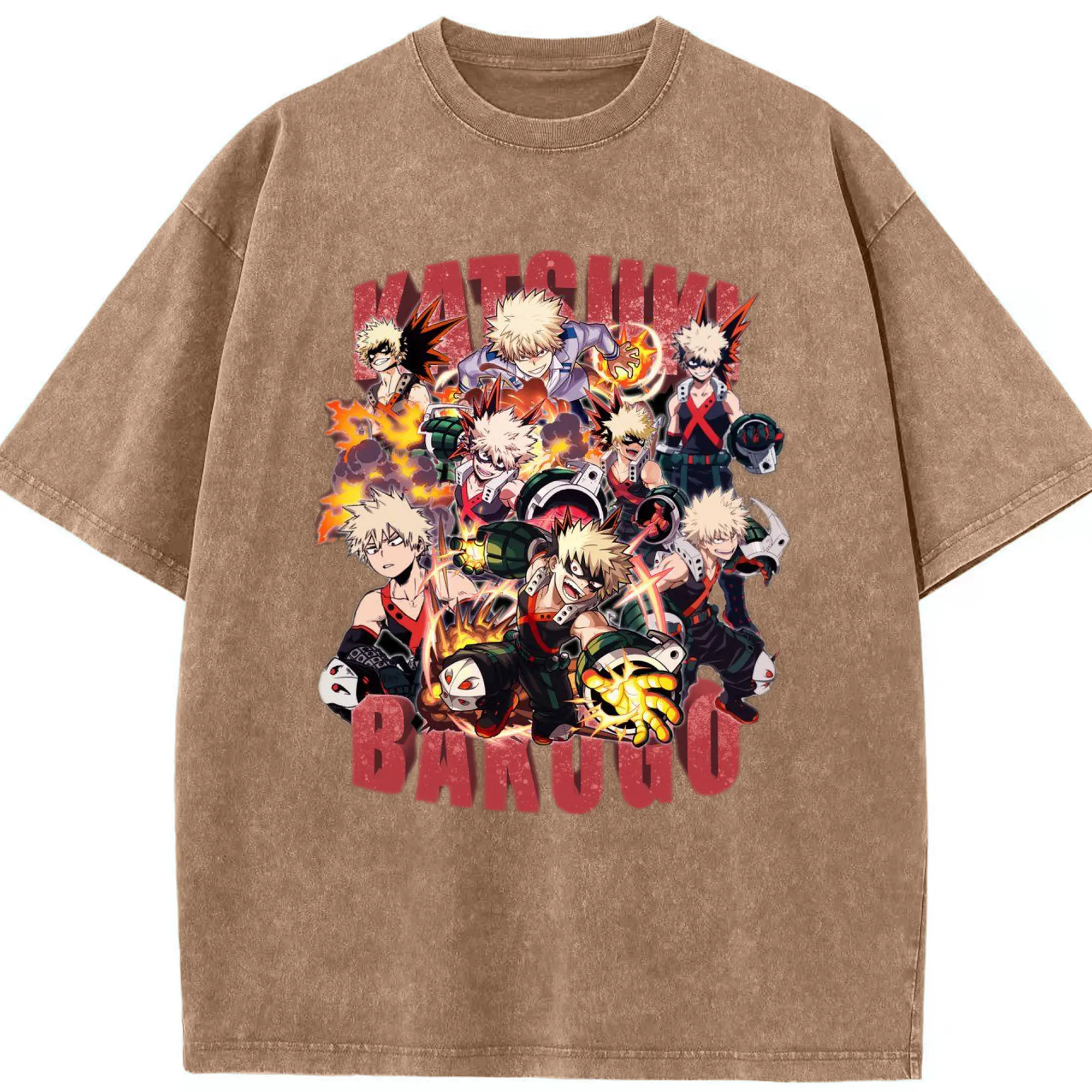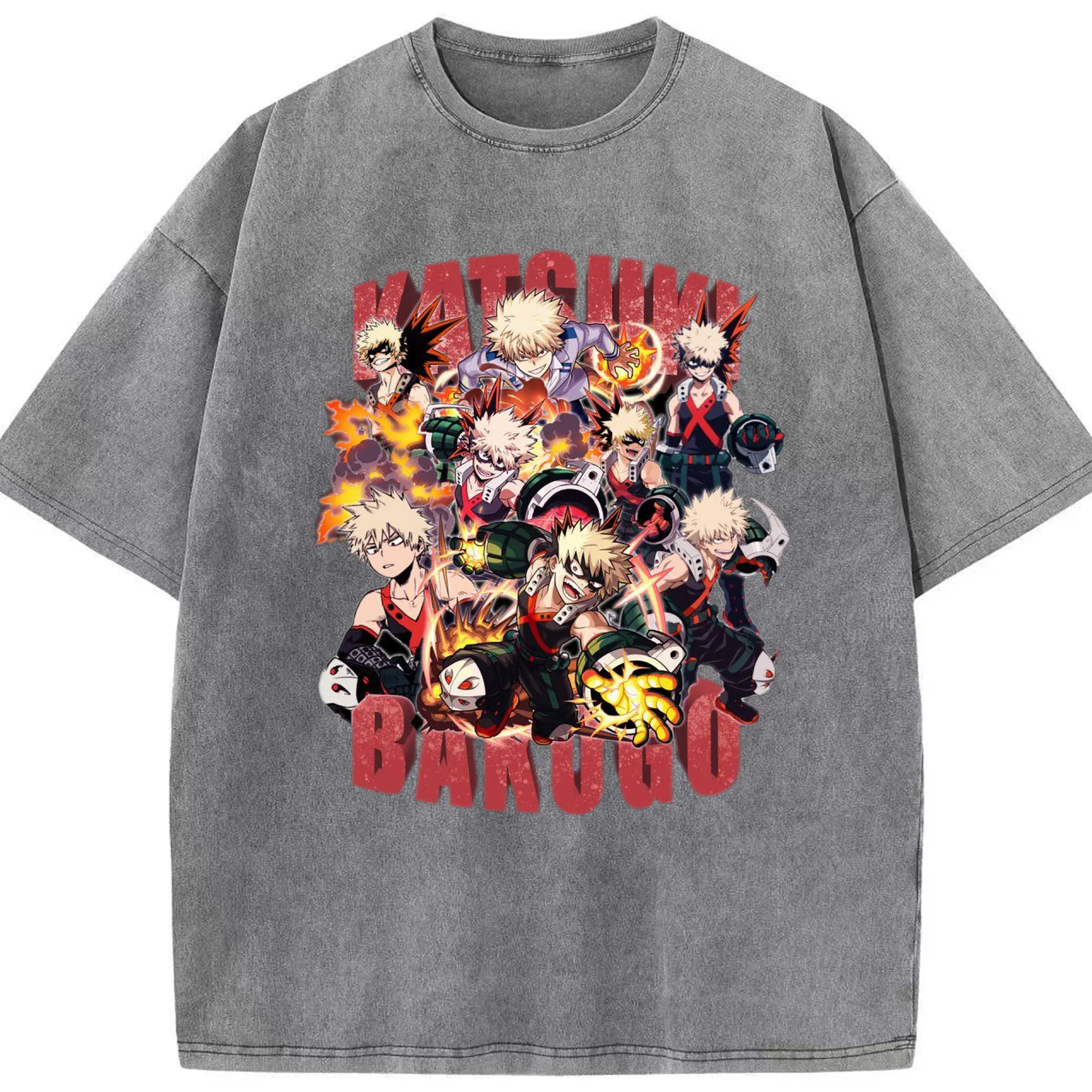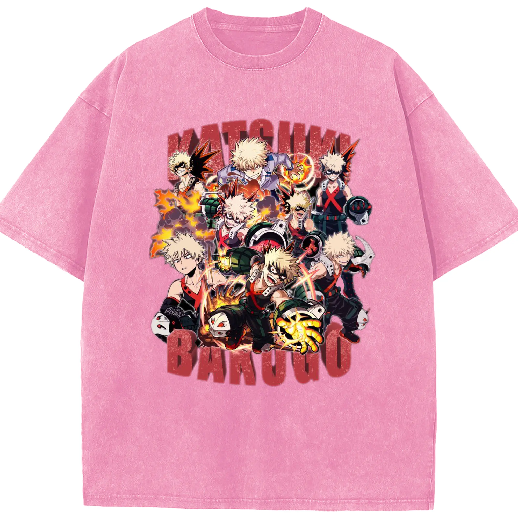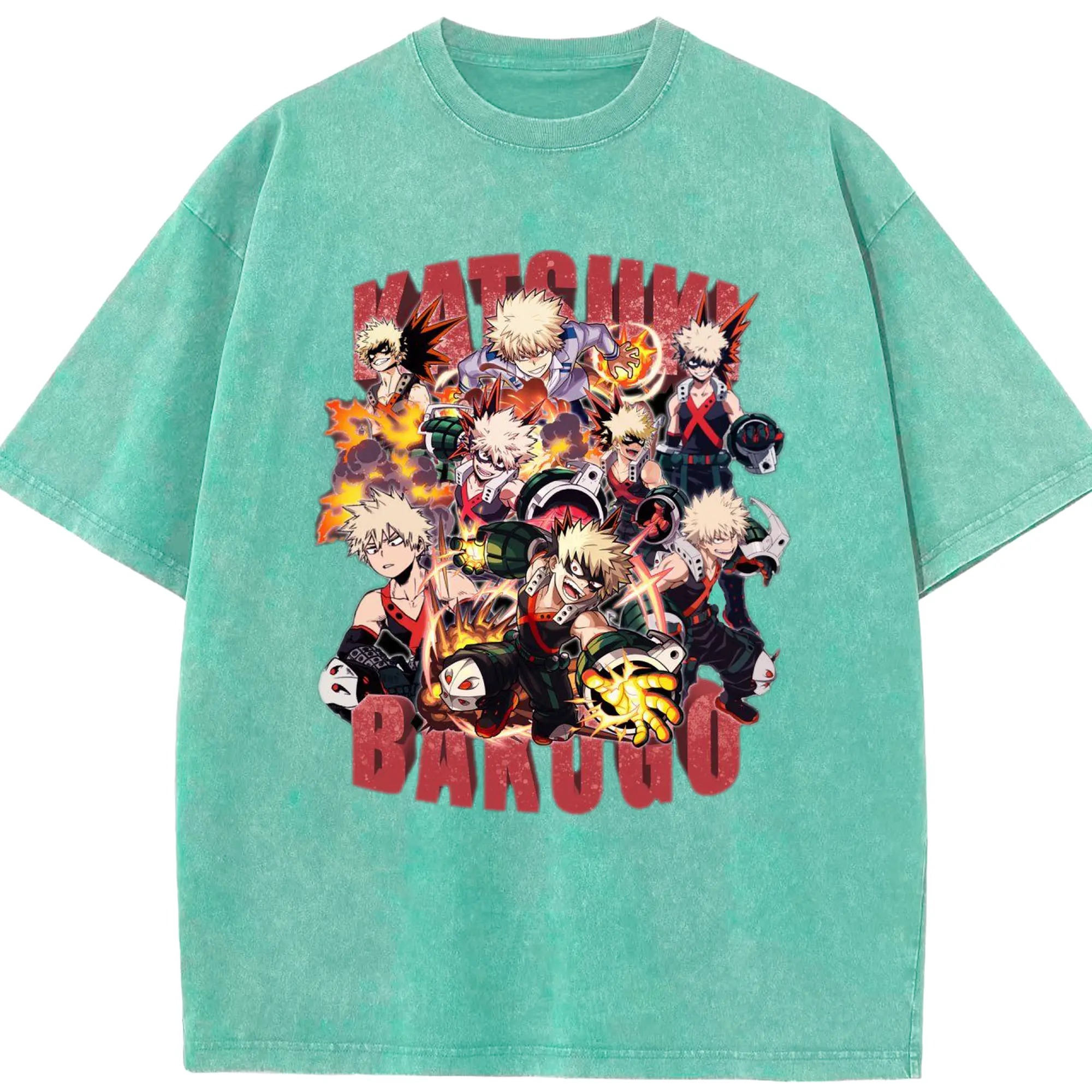 My Hero Academia Katsuki Bakugo DIY - Washed Vintage Look 230g Cotton Oversized T-Shirt With Front Heat Transfer Print – Soft, Lightweight, Stylish Fit – Comfortable Casual Wear For Sports & Everyday Use