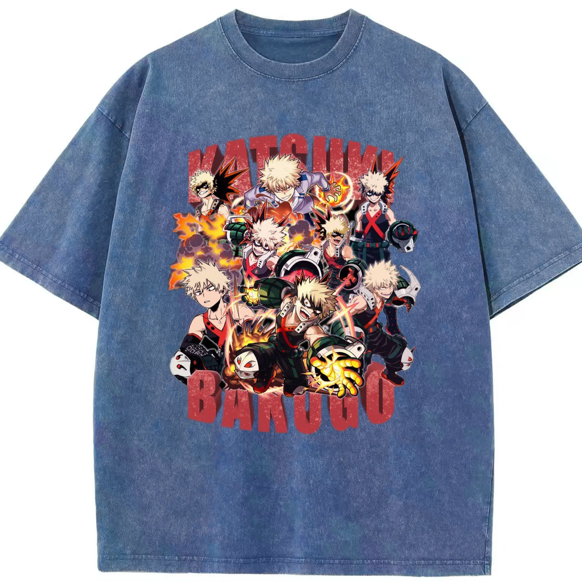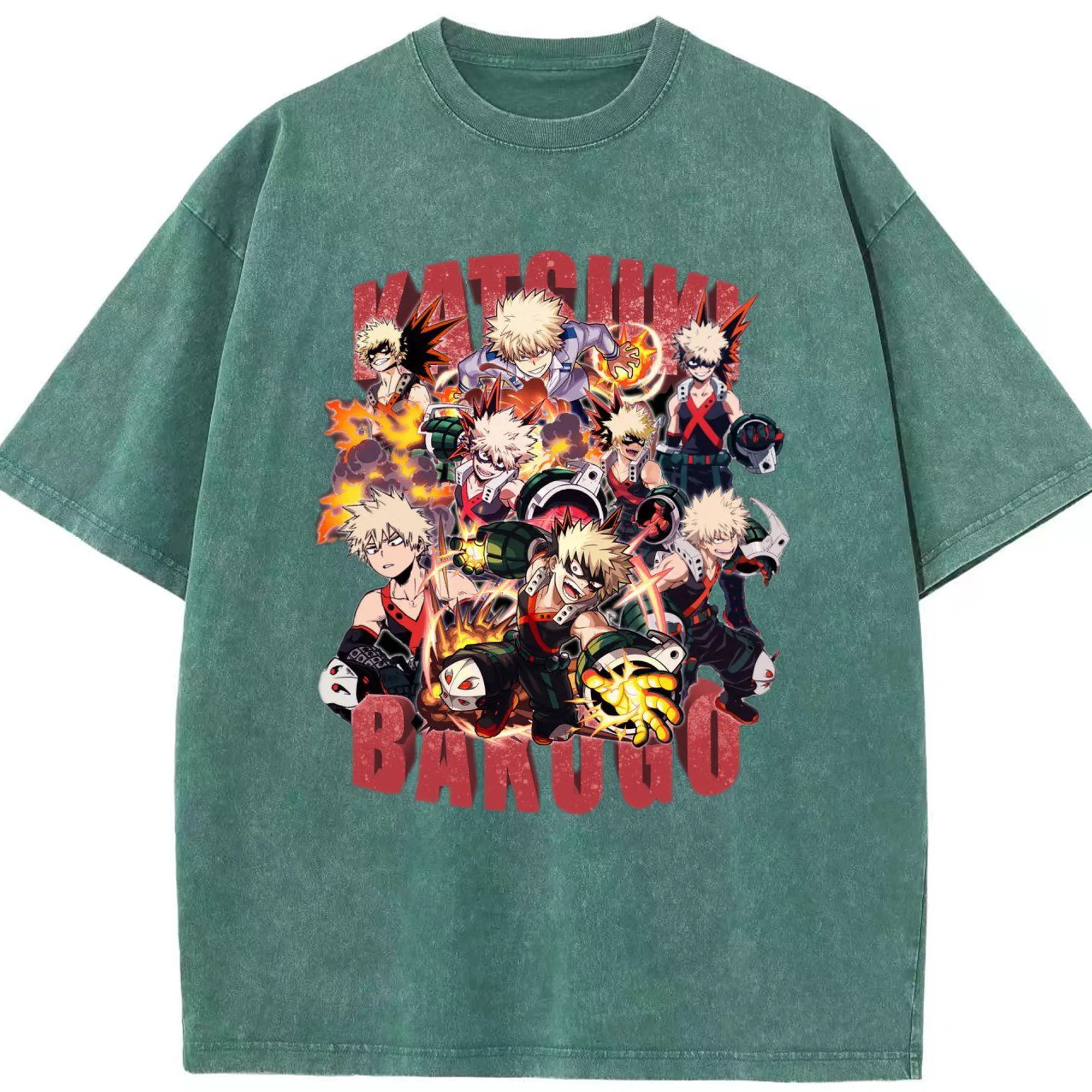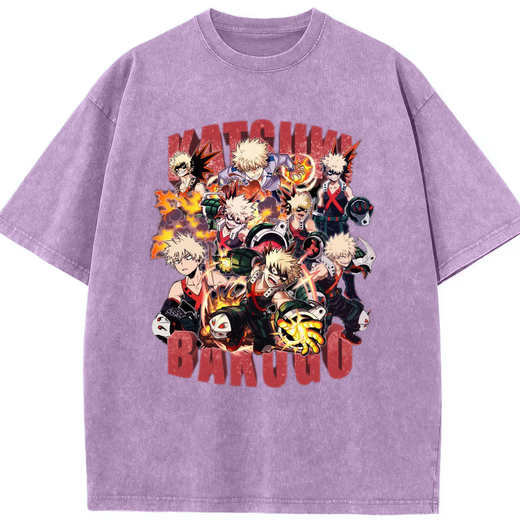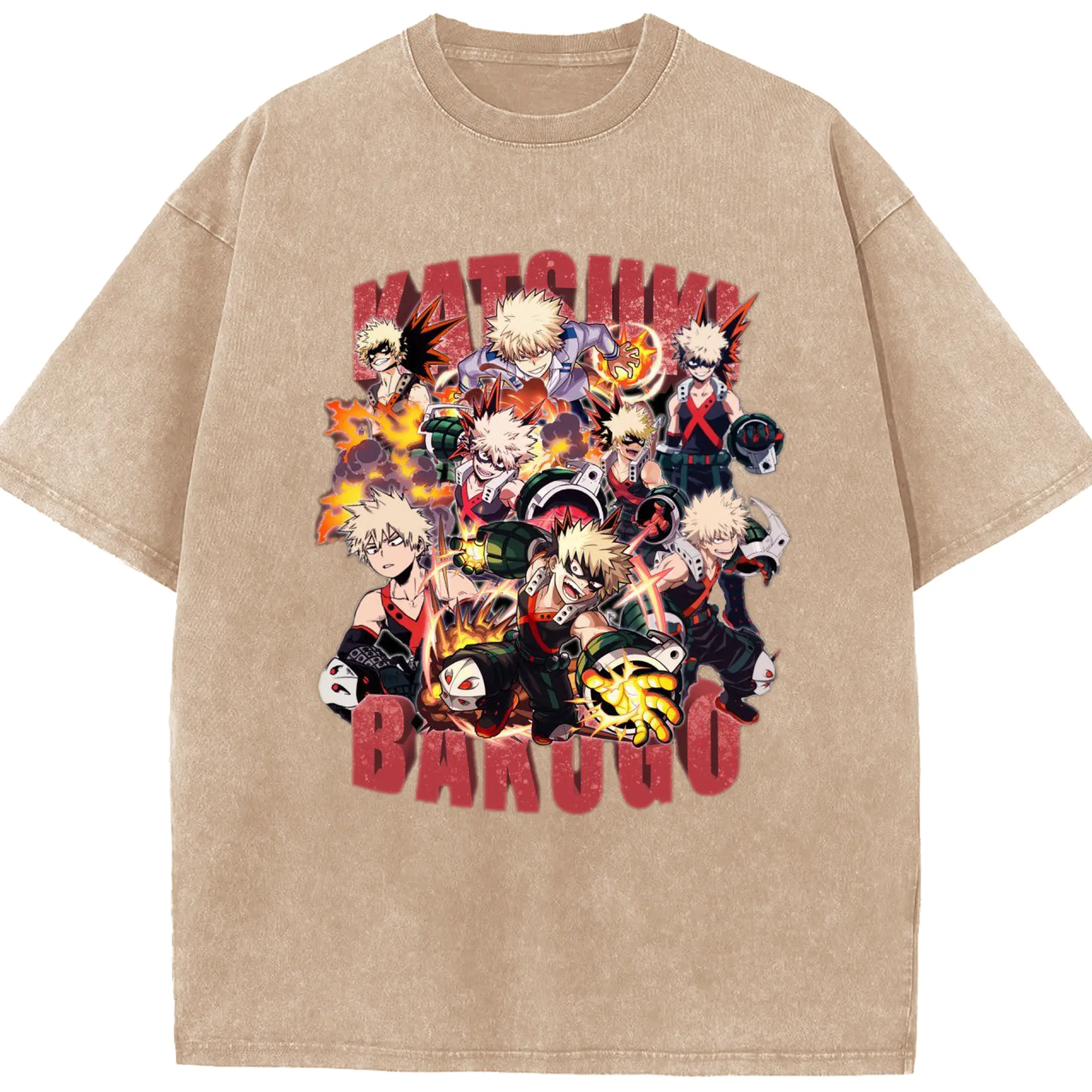 My Hero Academia Katsuki Bakugo DIY - Washed Vintage Look 230g Cotton Oversized T-Shirt With Front Heat Transfer Print – Soft, Lightweight, Stylish Fit – Comfortable Casual Wear For Sports & Everyday Use