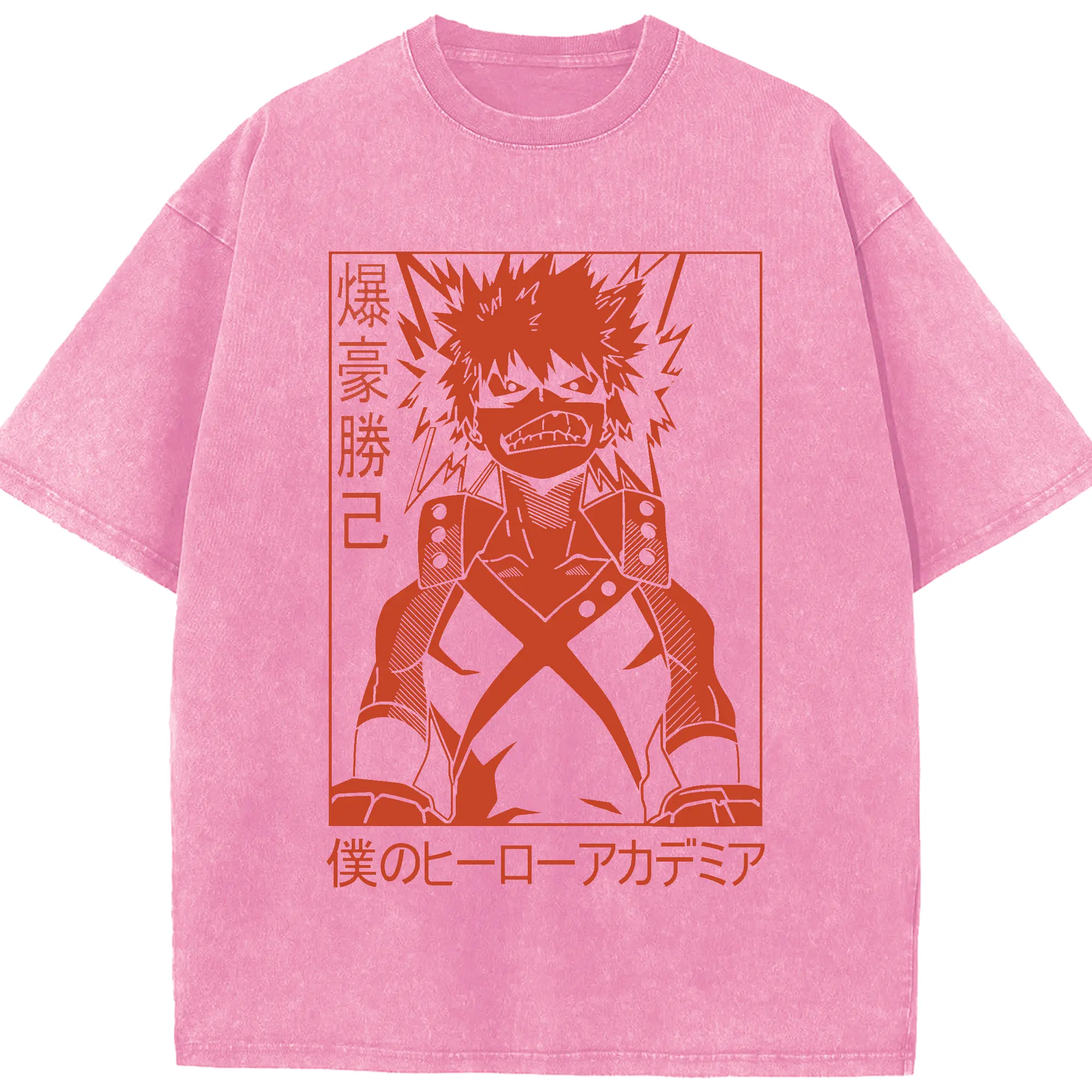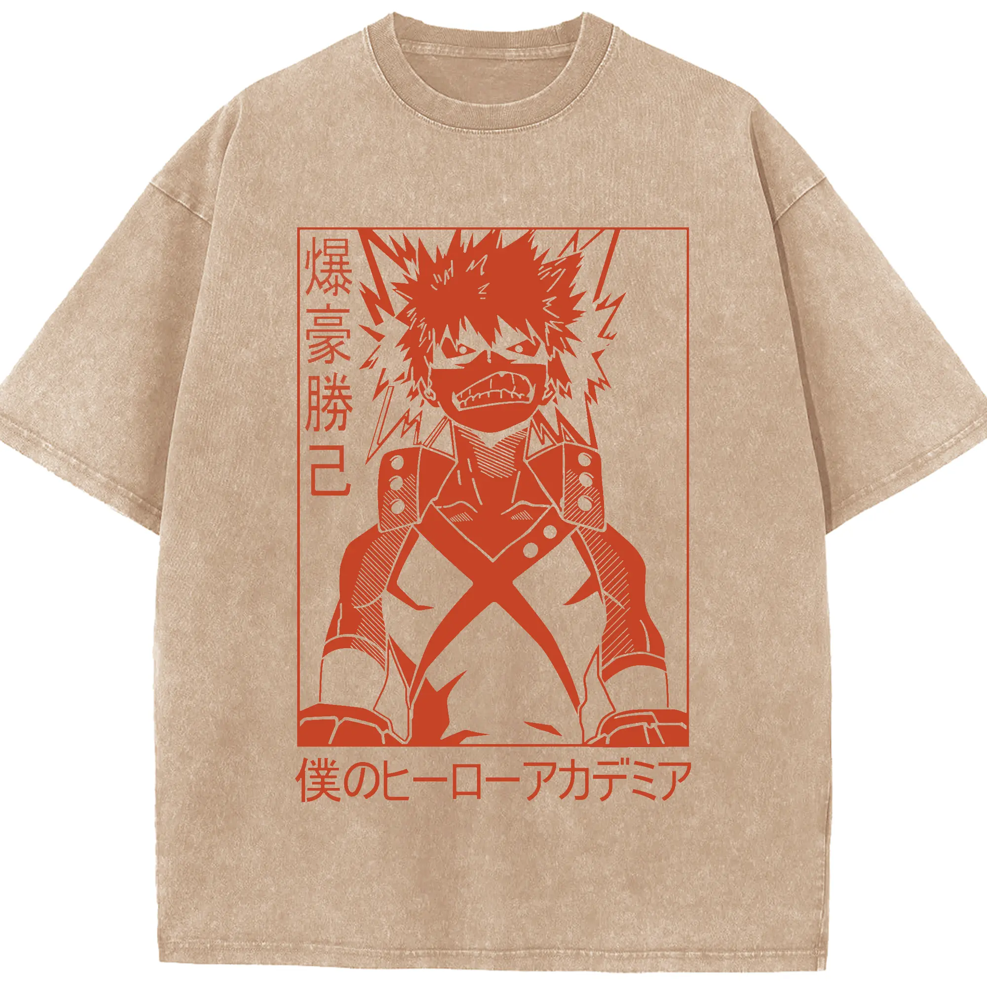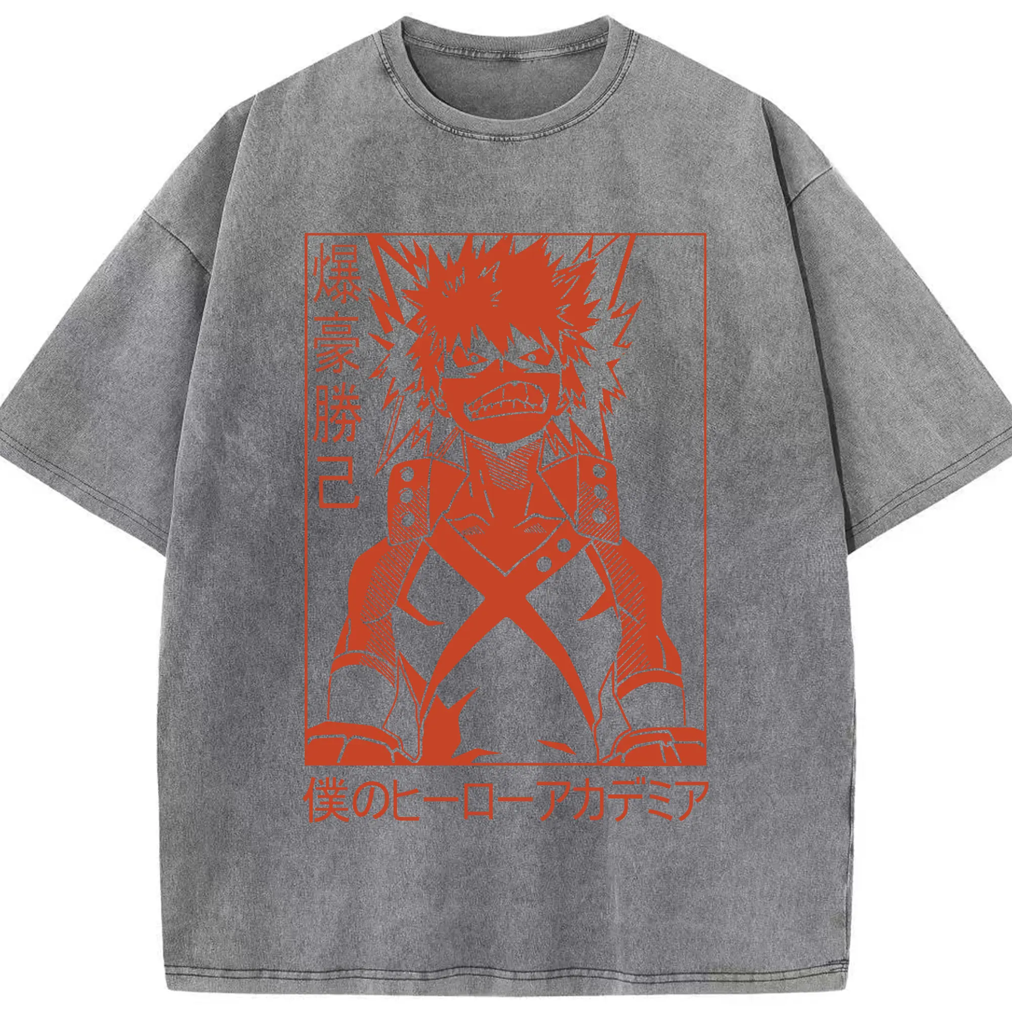 My Hero Academia Katsuki Bakugo Red Line Art DIY - Washed Vintage Look 230g Cotton Oversized T-Shirt With Front Heat Transfer Print – Soft, Lightweight, Stylish Fit – Comfortable Casual Wear For Sports & Everyday Use