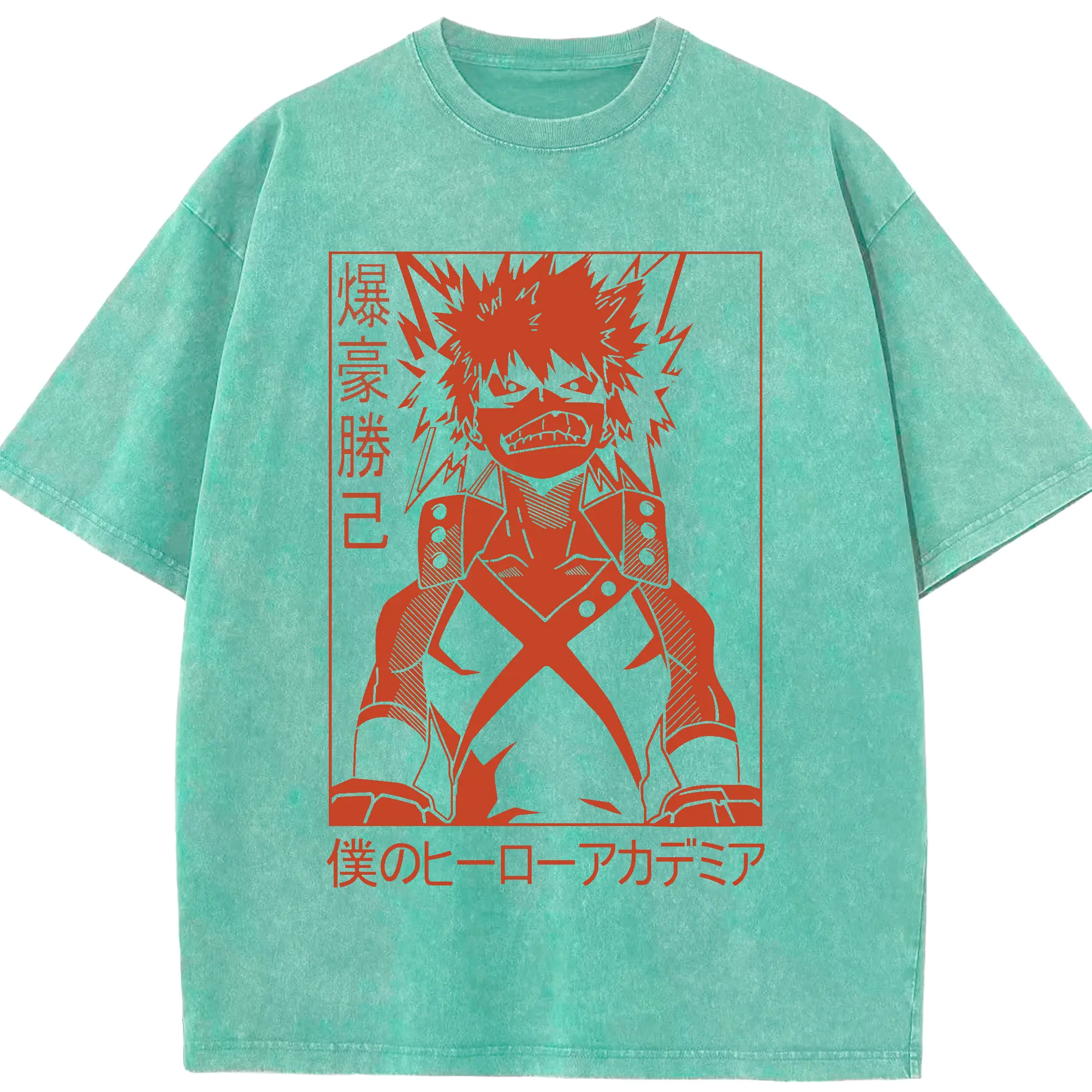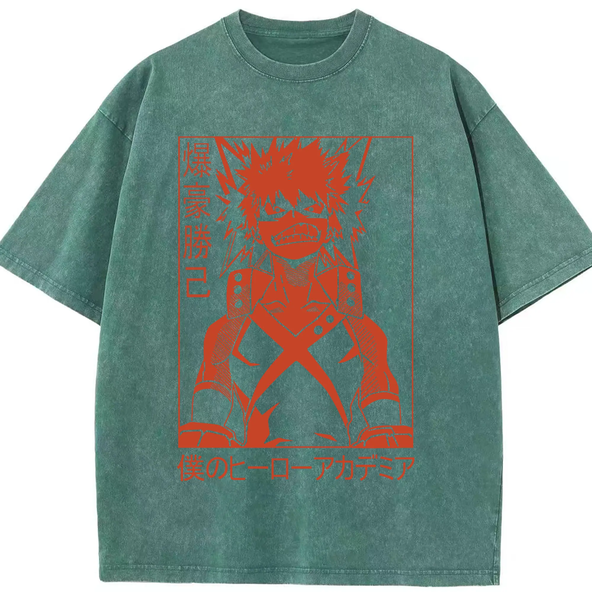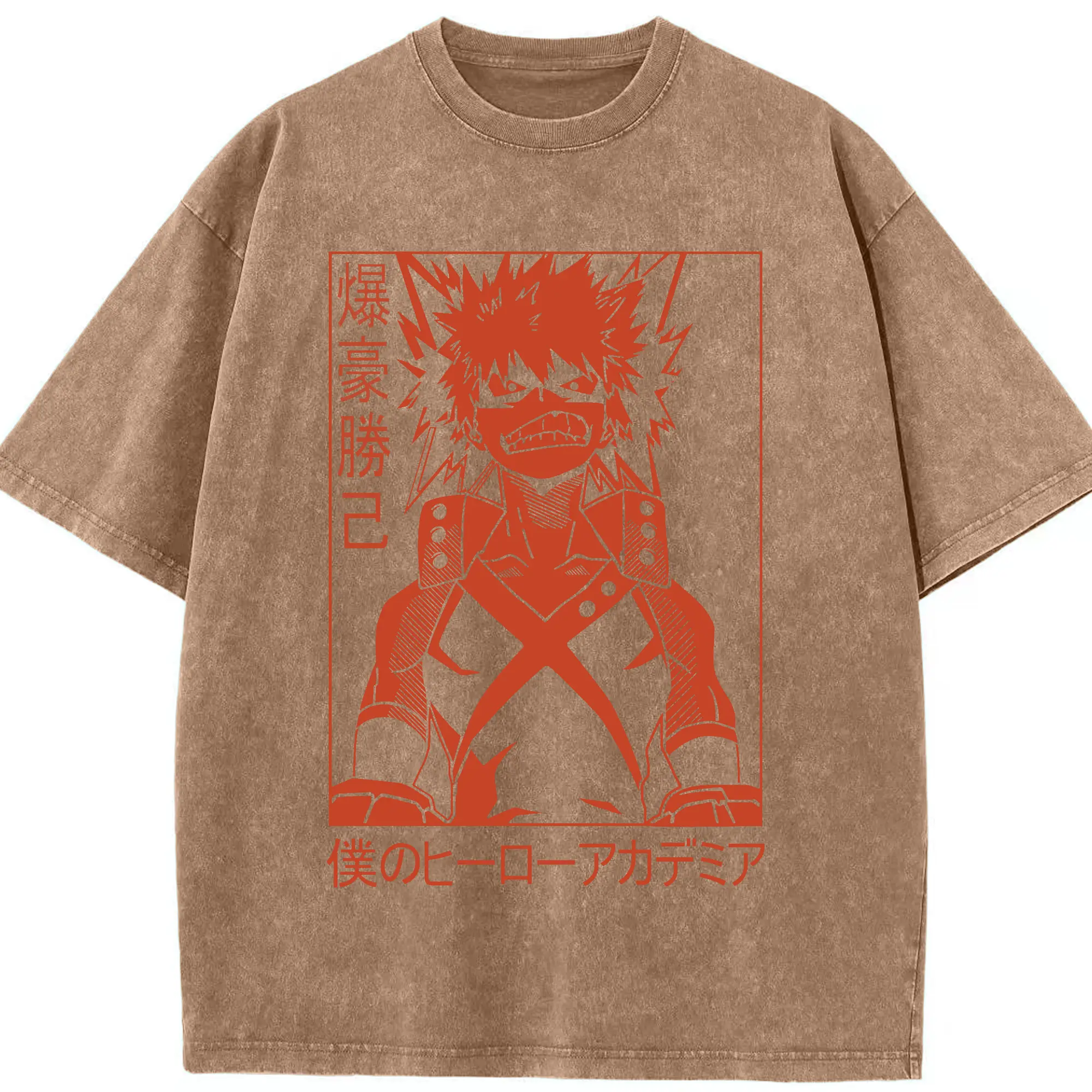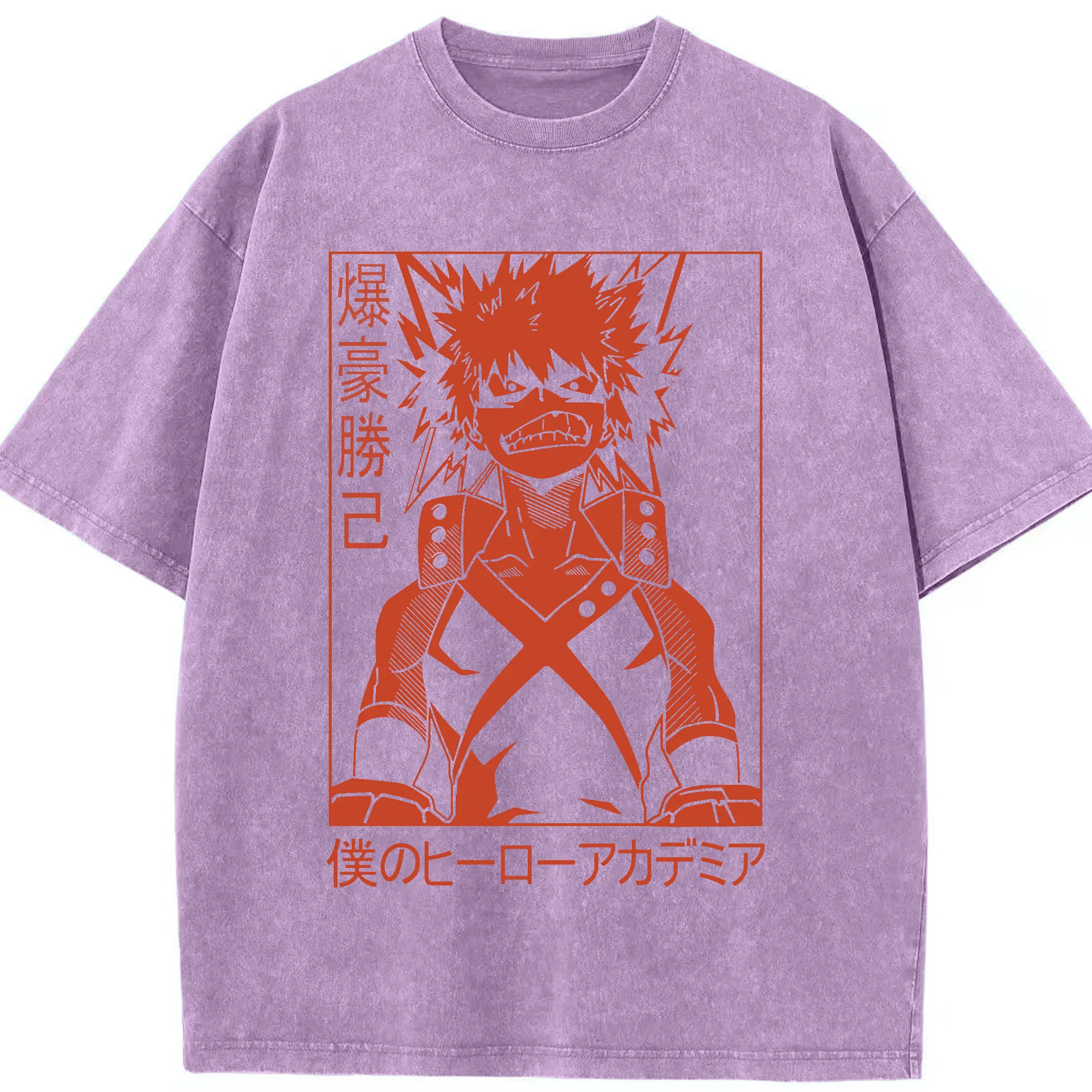 My Hero Academia Katsuki Bakugo Red Line Art DIY - Washed Vintage Look 230g Cotton Oversized T-Shirt With Front Heat Transfer Print – Soft, Lightweight, Stylish Fit – Comfortable Casual Wear For Sports & Everyday Use