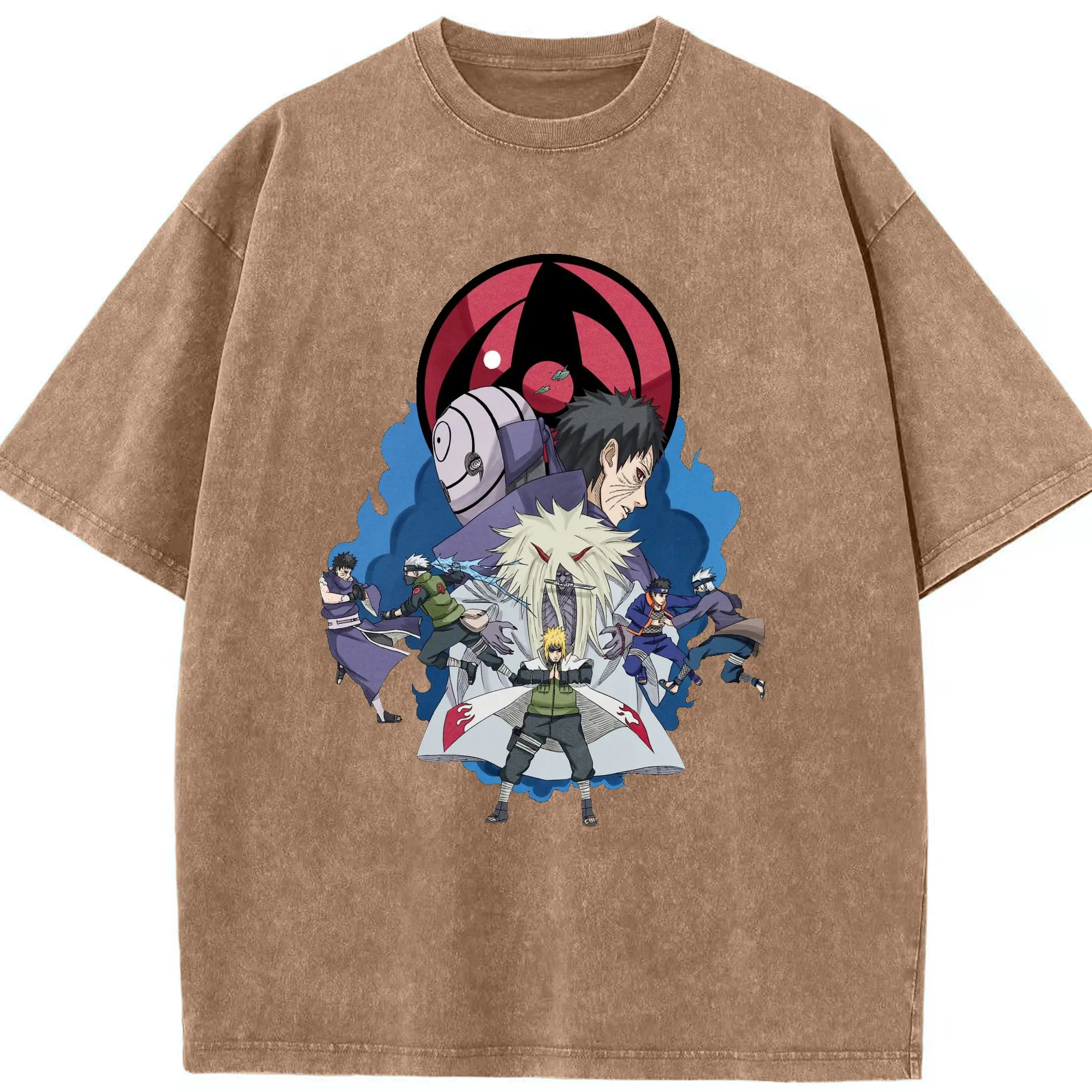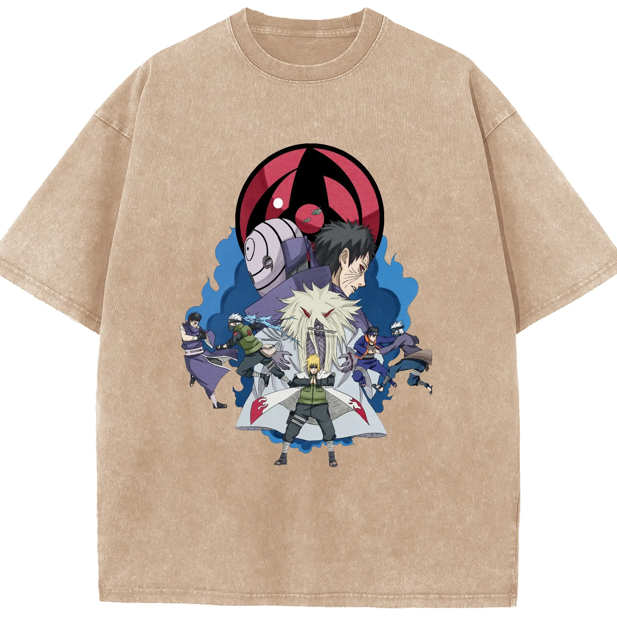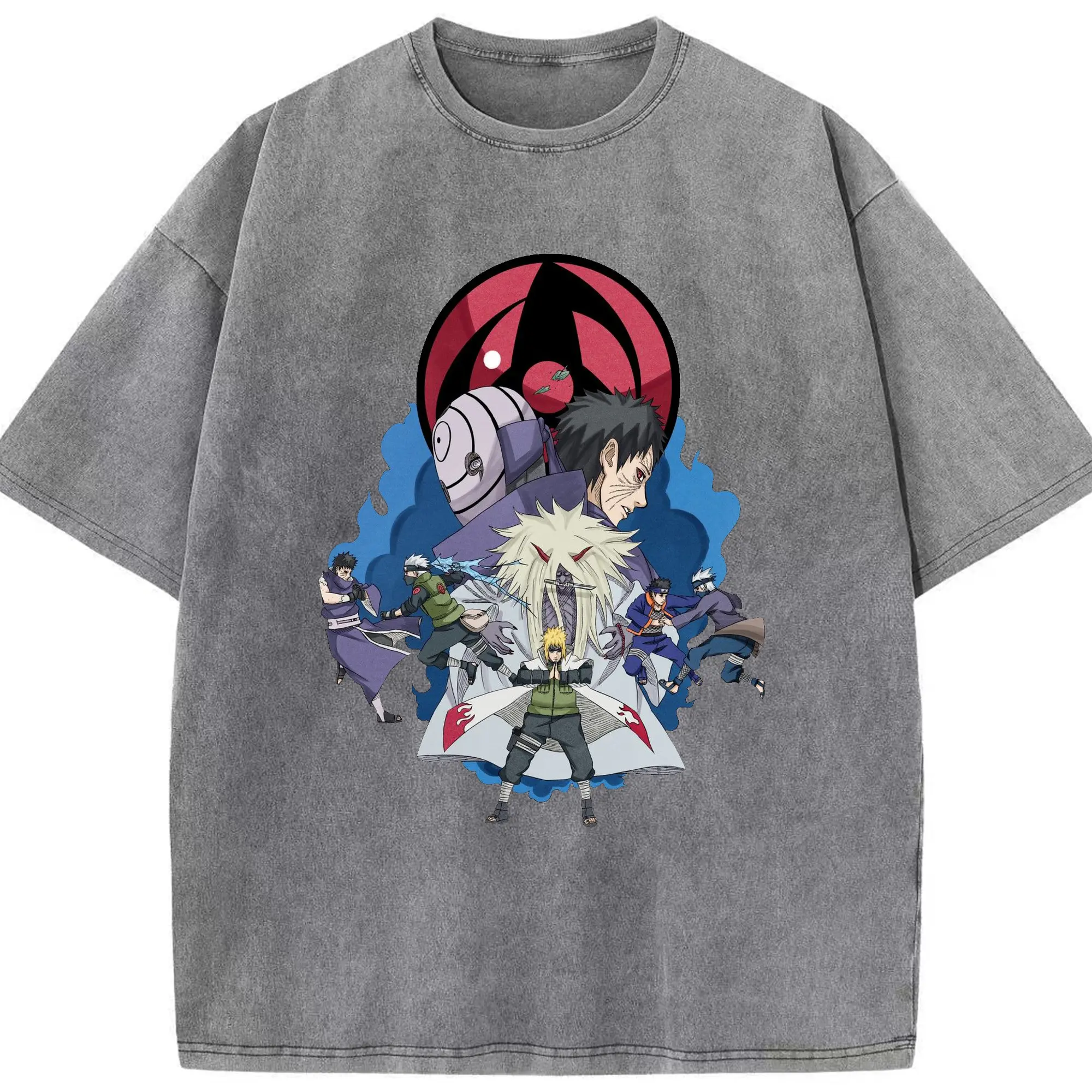 Naruto Battle Style with Sharingan & Rasengan DIY - Washed Vintage Look 230g Cotton Oversized T-Shirt With Front Heat Transfer Print – Soft, Lightweight, Stylish Fit – Comfortable Casual Wear For Sports & Everyday Use