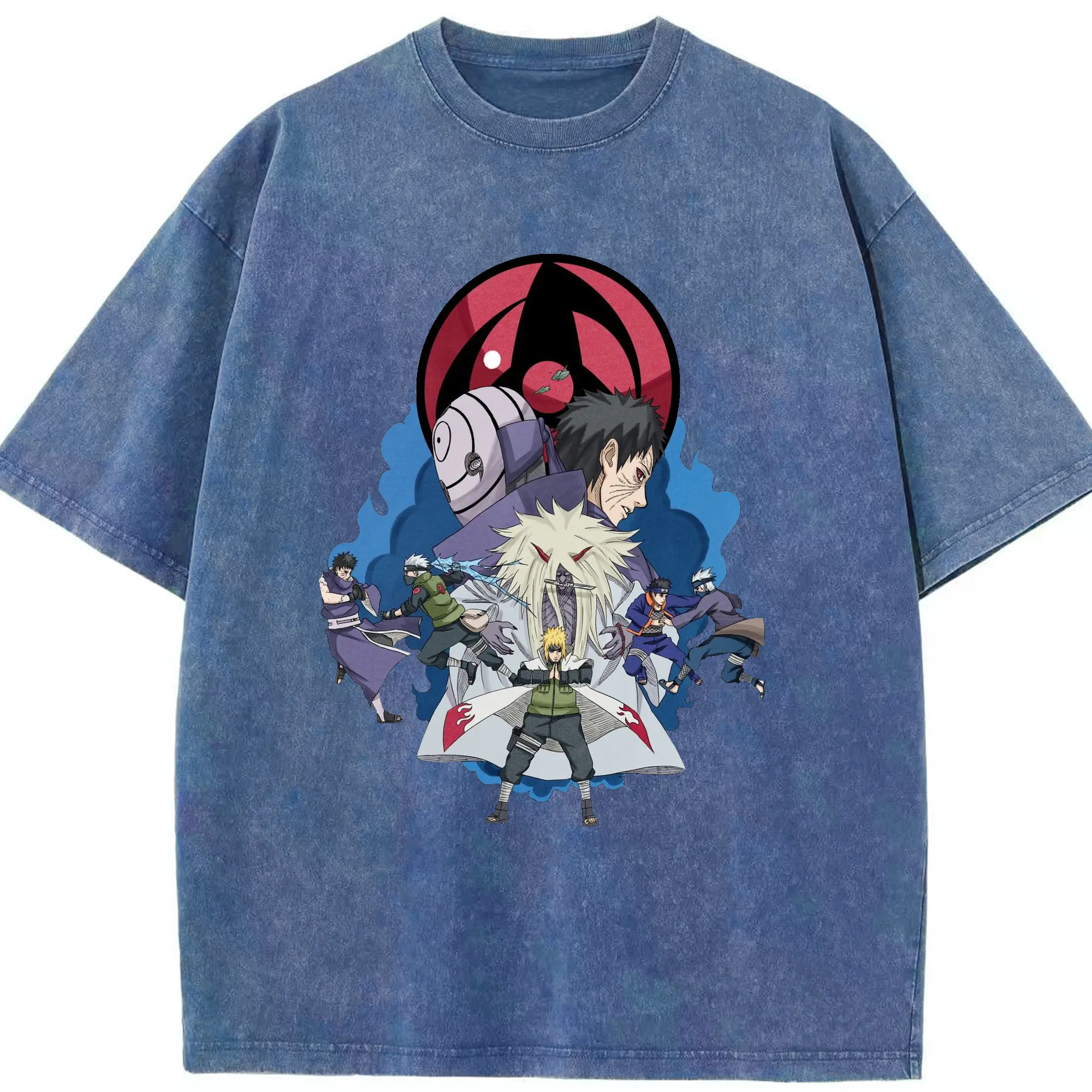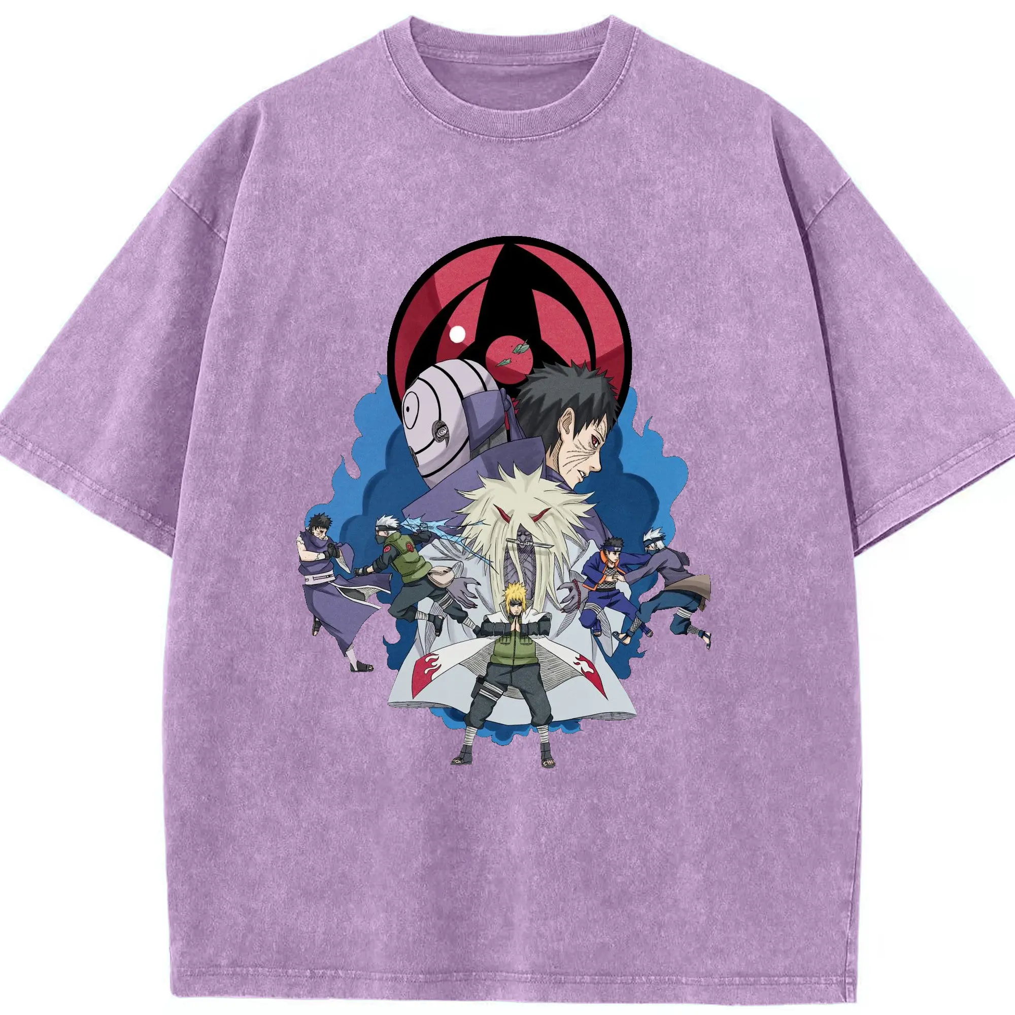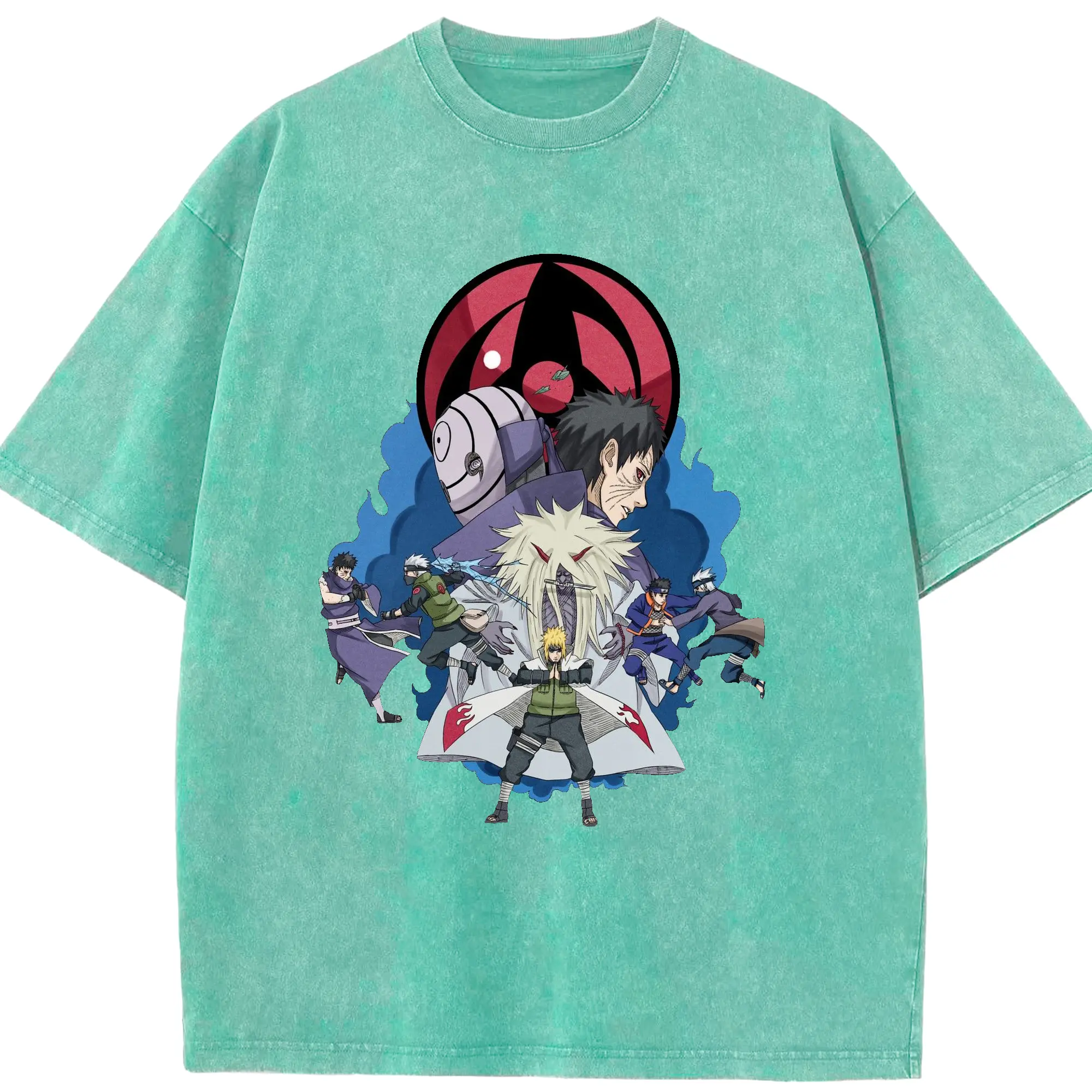 Naruto Battle Style with Sharingan & Rasengan DIY - Washed Vintage Look 230g Cotton Oversized T-Shirt With Front Heat Transfer Print – Soft, Lightweight, Stylish Fit – Comfortable Casual Wear For Sports & Everyday Use