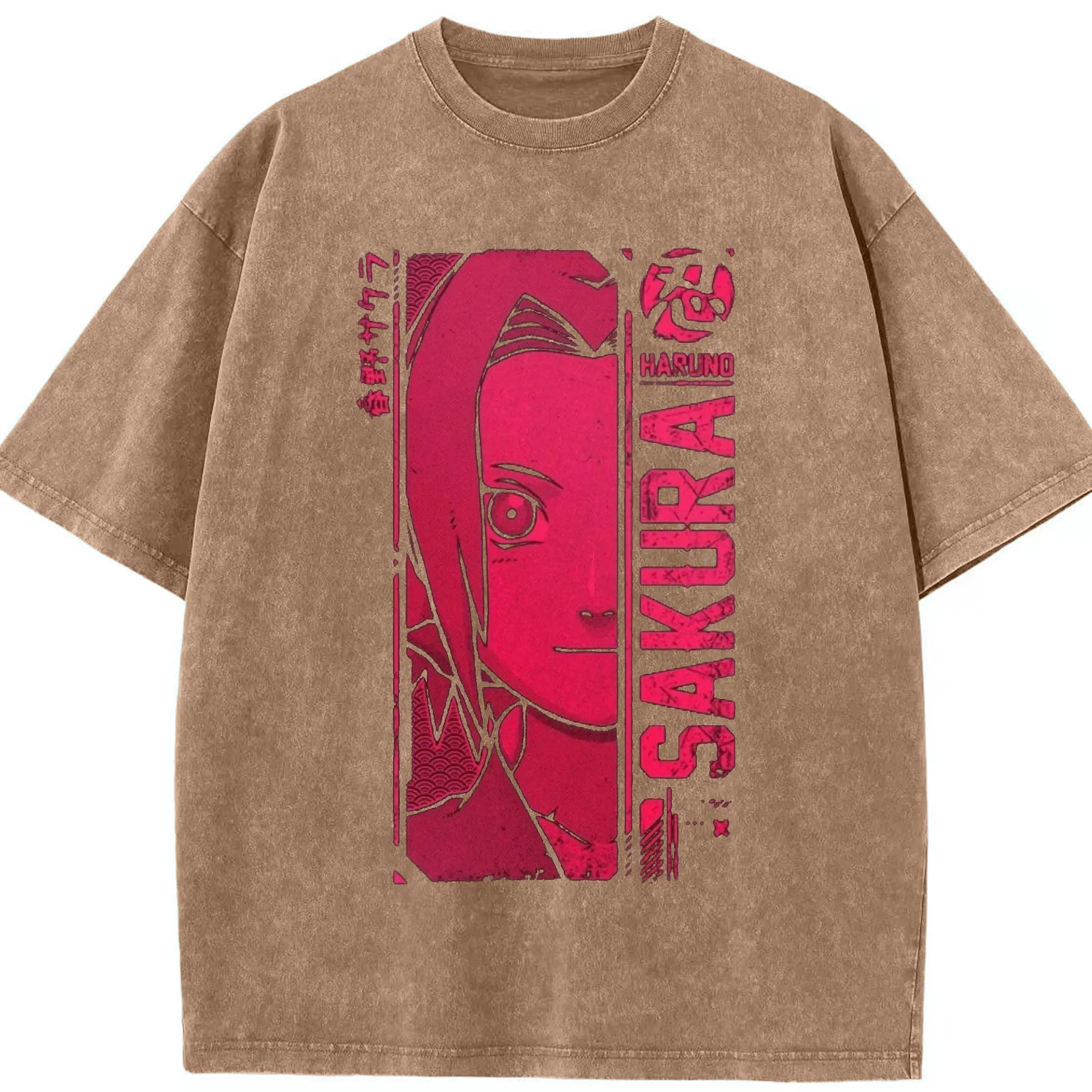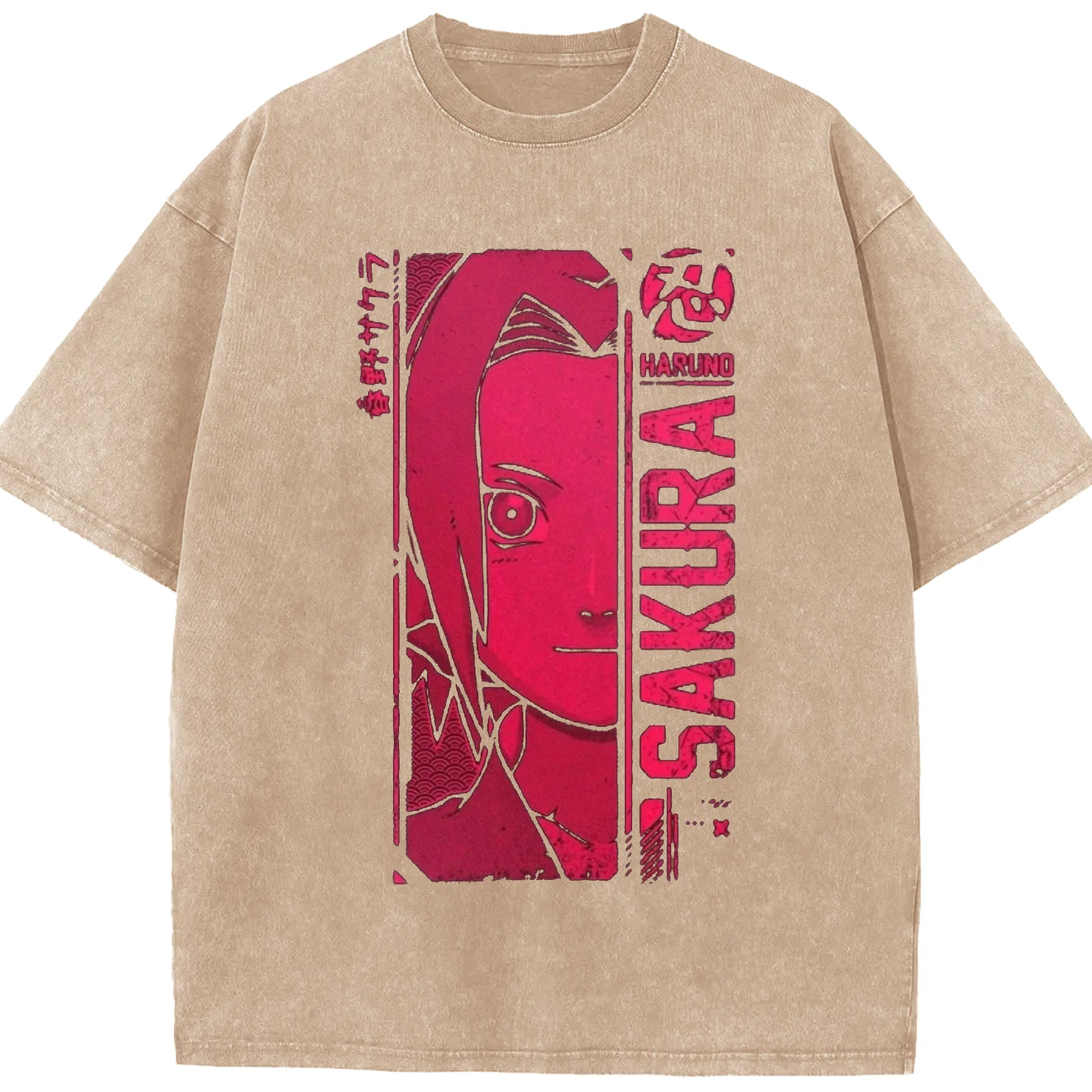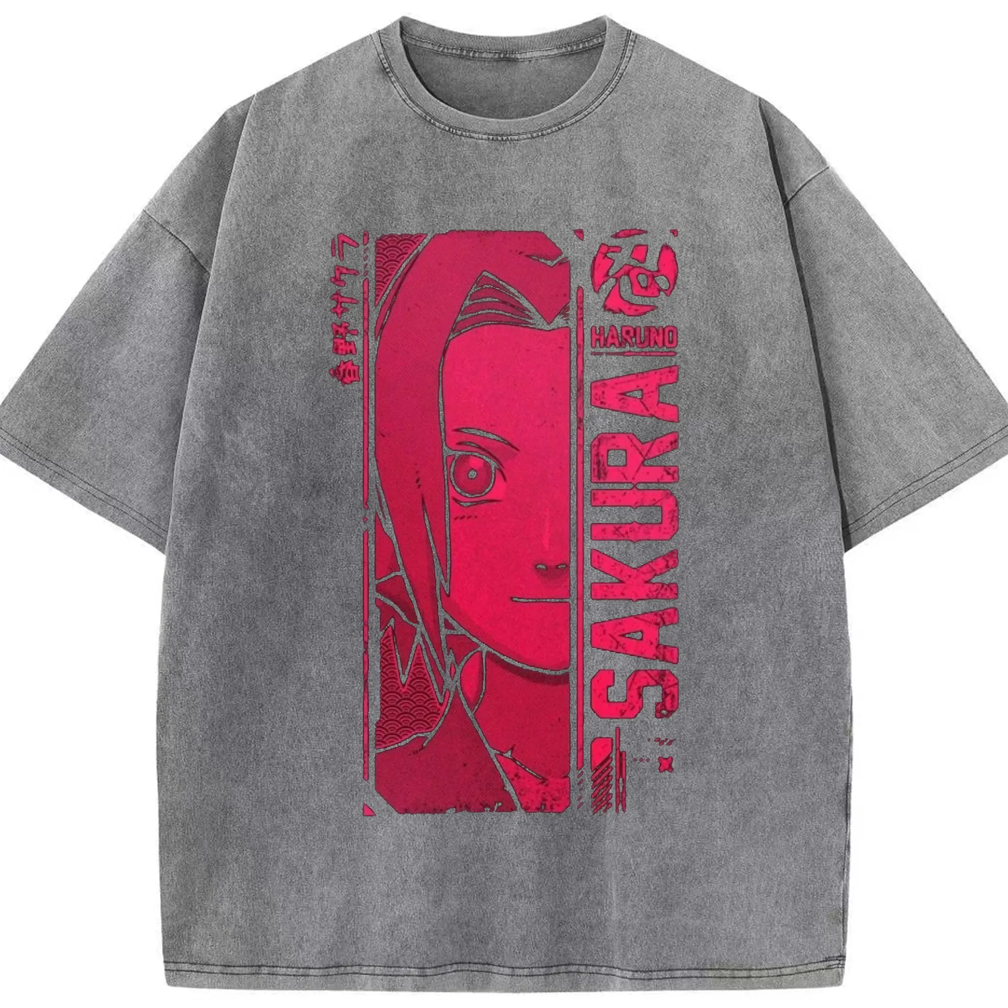 Naruto Haruno Sakura Pink Retro Anime DIY Shirt - Washed Vintage Look 230g Cotton Oversized T-Shirt With Front Heat Transfer Print – Soft, Lightweight, Stylish Fit – Comfortable Casual Wear For Sports & Everyday Use