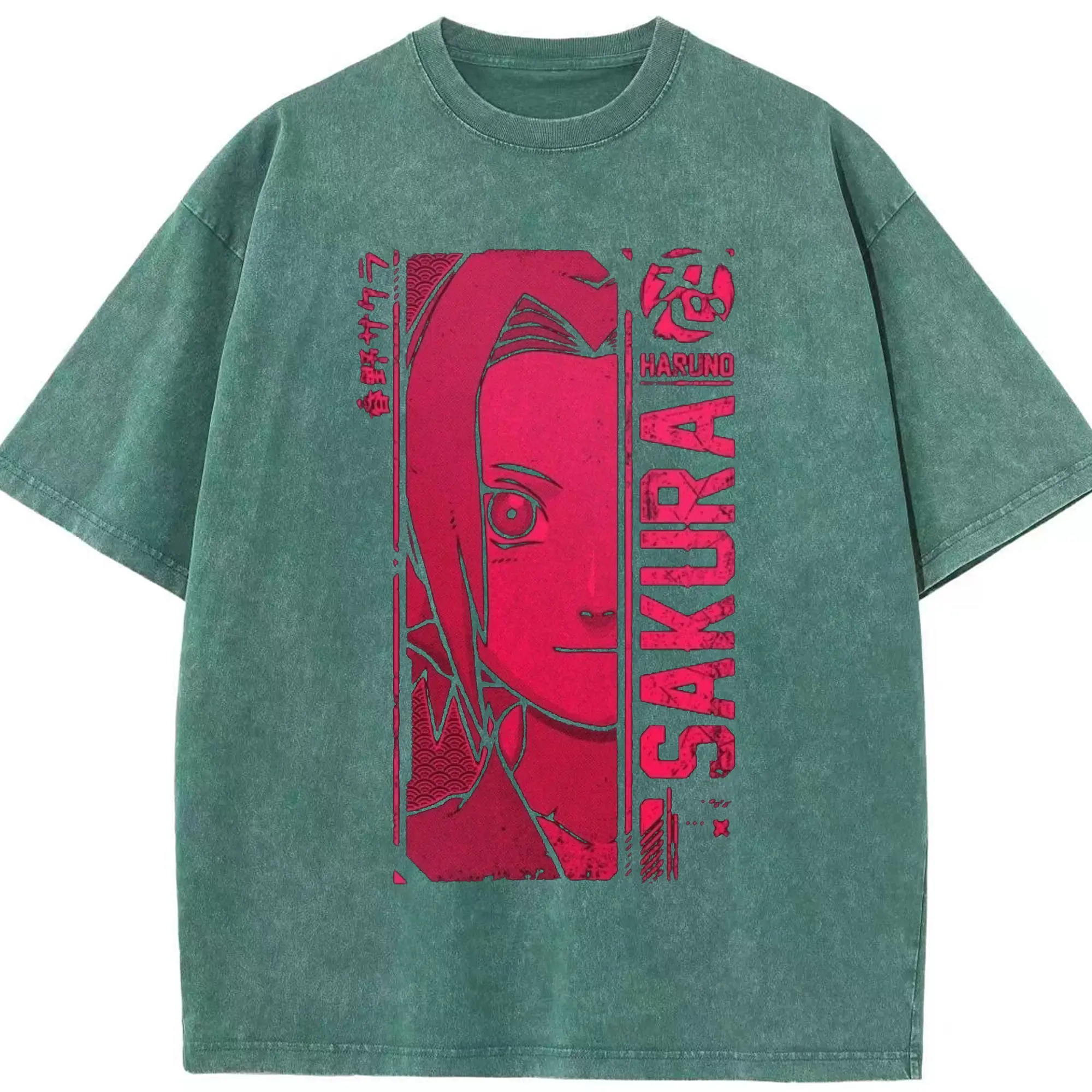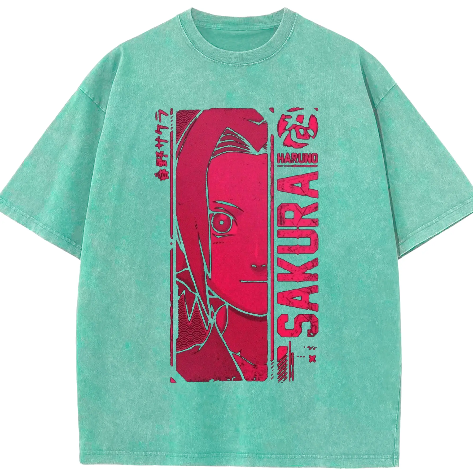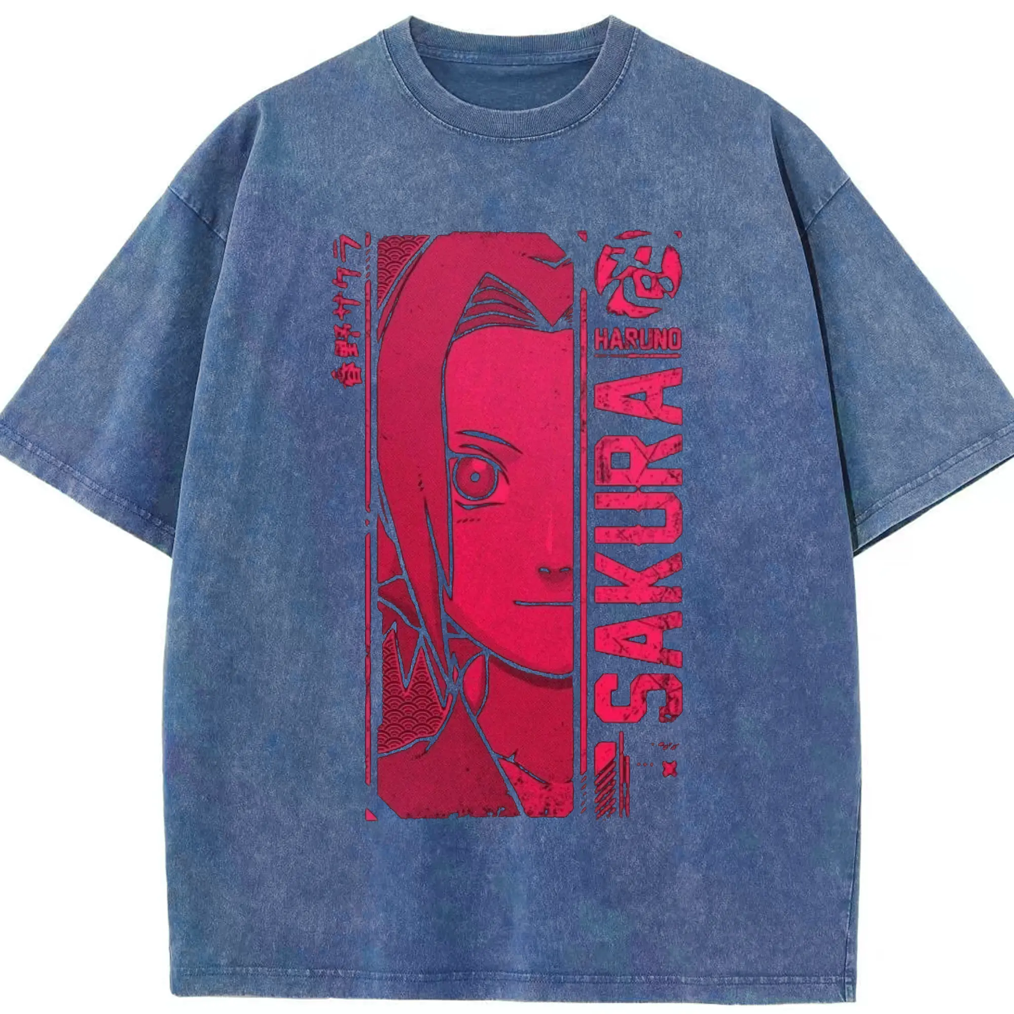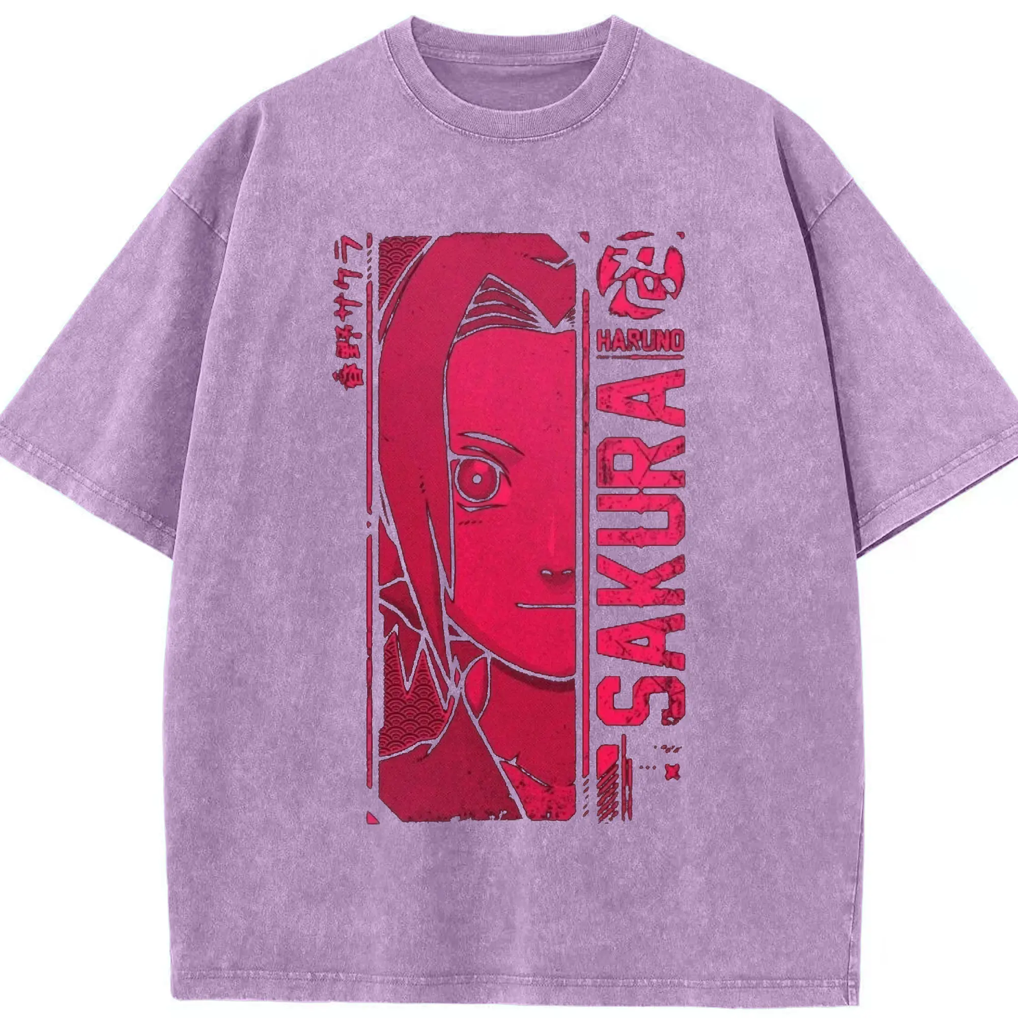 Naruto Haruno Sakura Pink Retro Anime DIY Shirt - Washed Vintage Look 230g Cotton Oversized T-Shirt With Front Heat Transfer Print – Soft, Lightweight, Stylish Fit – Comfortable Casual Wear For Sports & Everyday Use