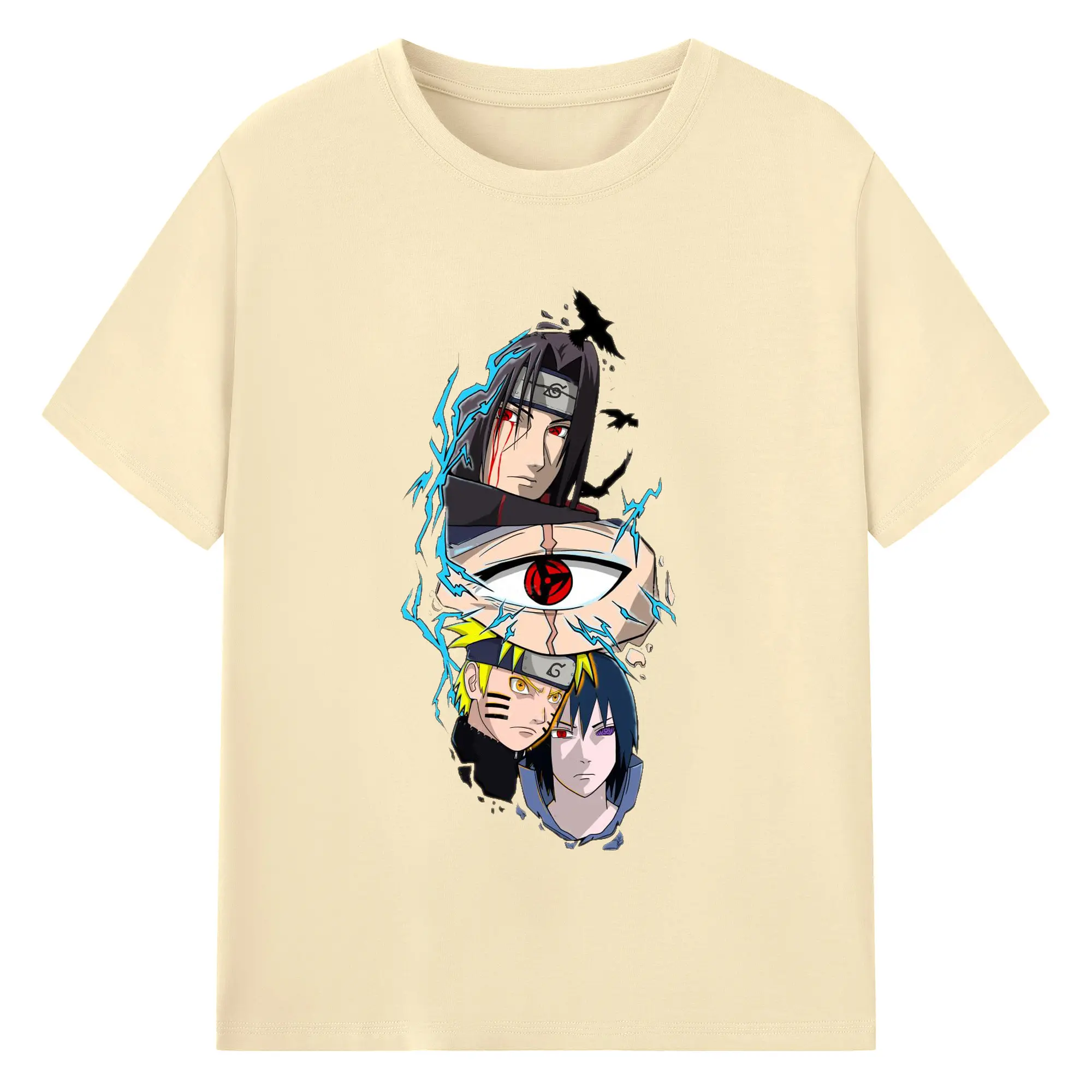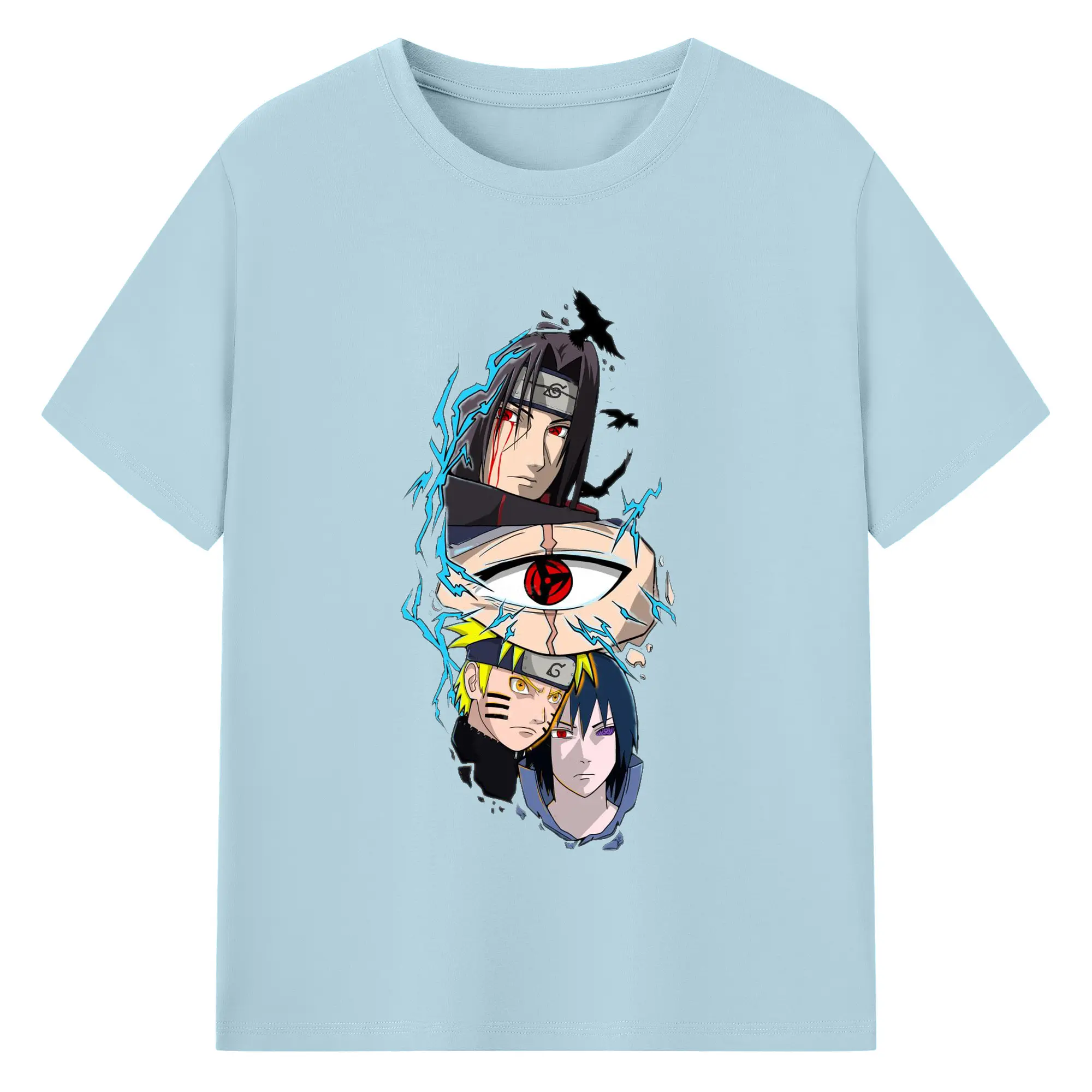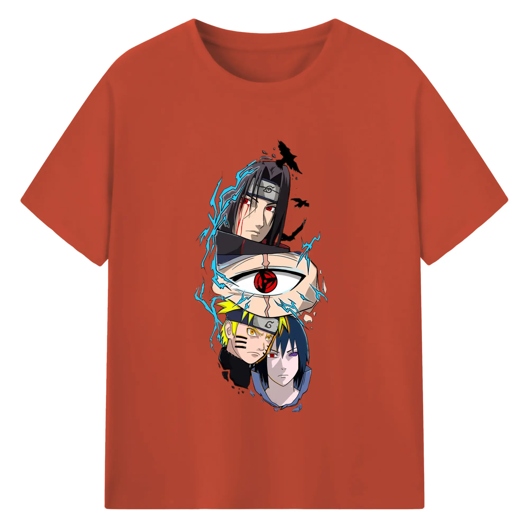 Naruto Itachi Sasuke Sharingan Anime DIY Shirt - 180g Cotton T-Shirt With Front Heat Transfer Print – Soft, Lightweight, Fitted Design – Comfortable Casual Wear For Sports & Everyday Use