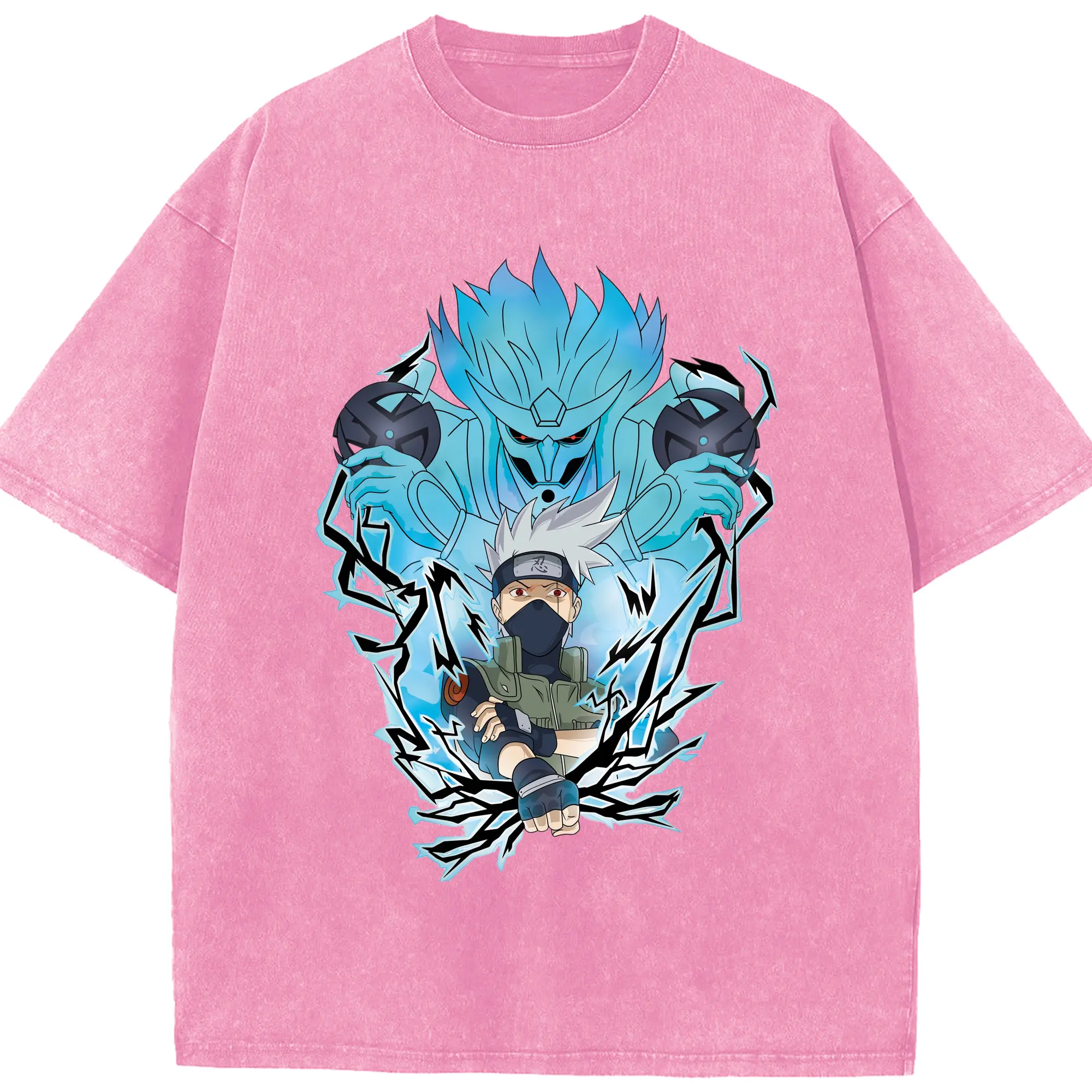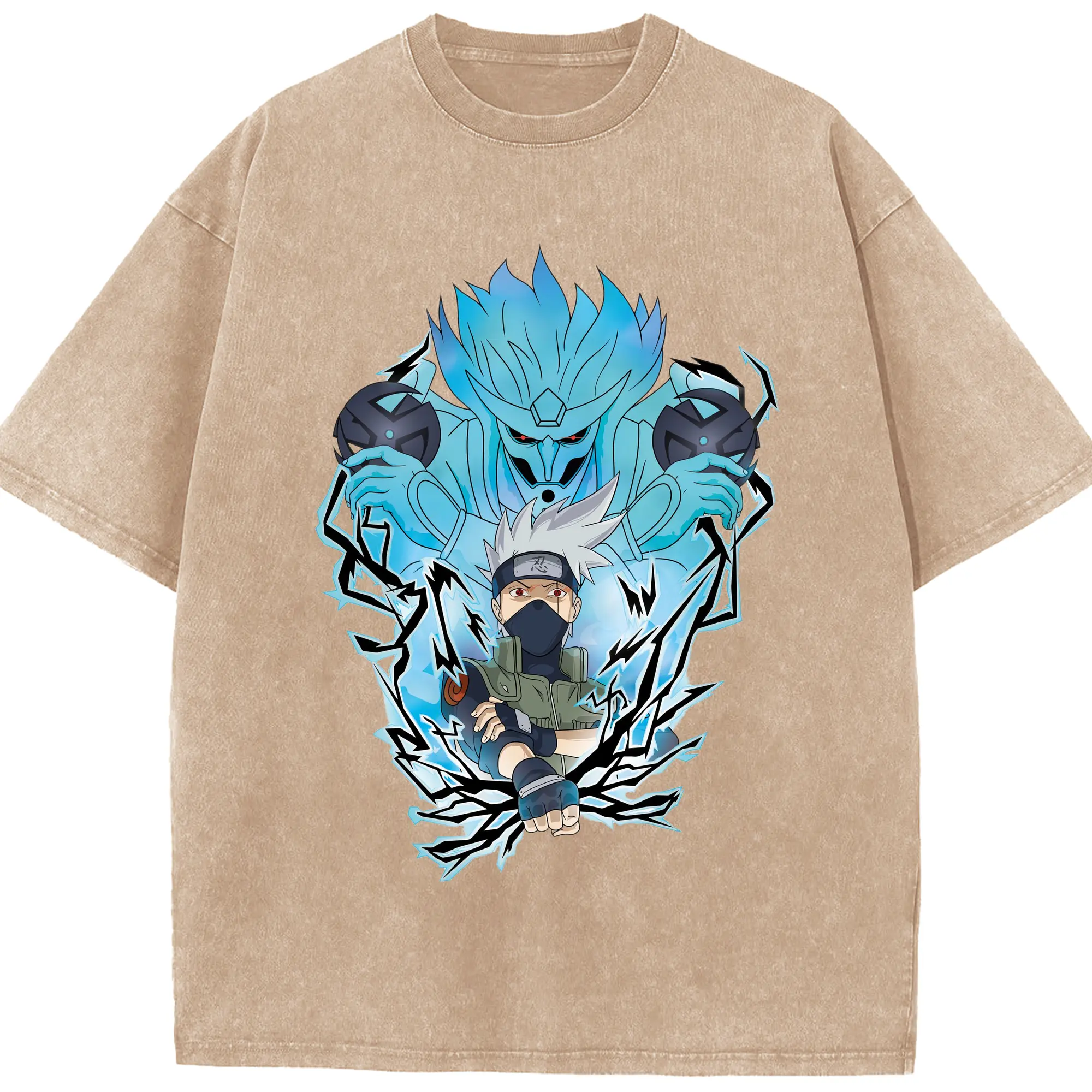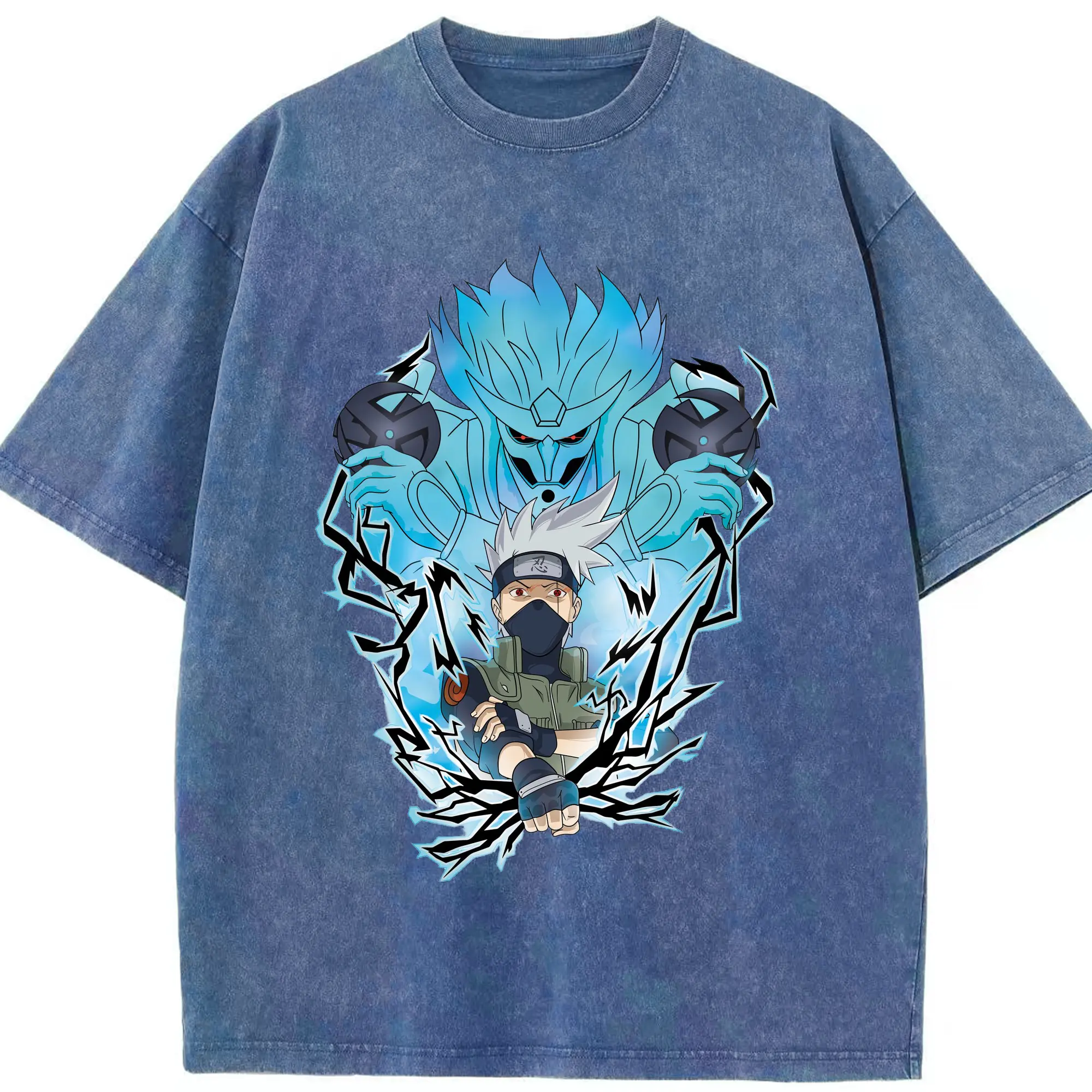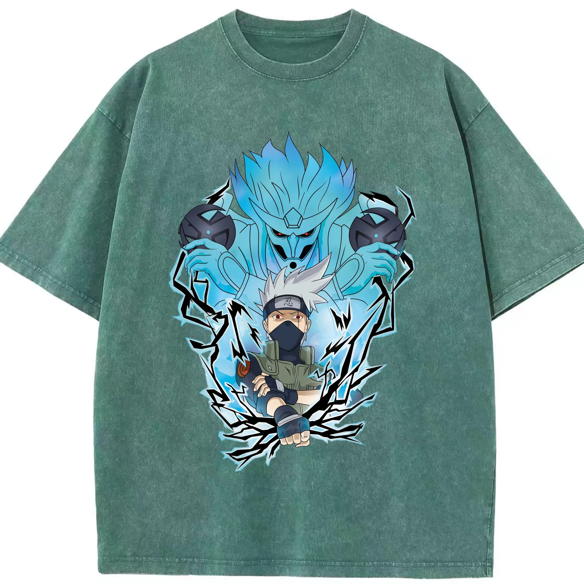 Naruto Kakashi Susanoo & Raikiri Anime DIY Shirt - Washed Vintage Look 230g Cotton Oversized T-Shirt With Front Heat Transfer Print – Soft, Lightweight, Stylish Fit – Comfortable Casual Wear For Sports & Everyday Use