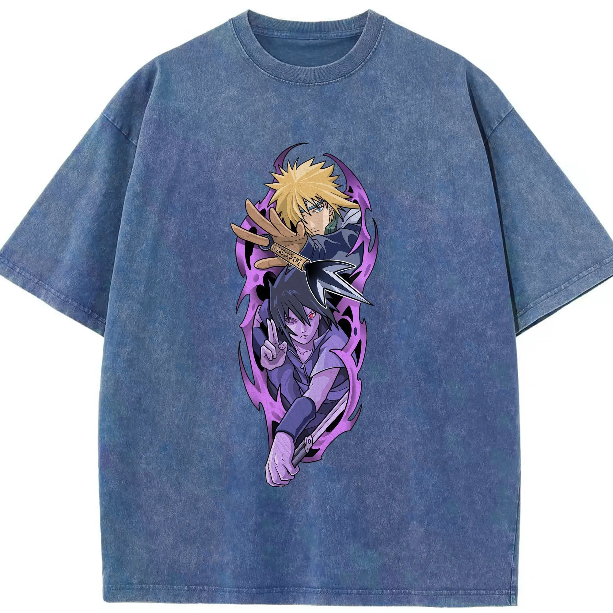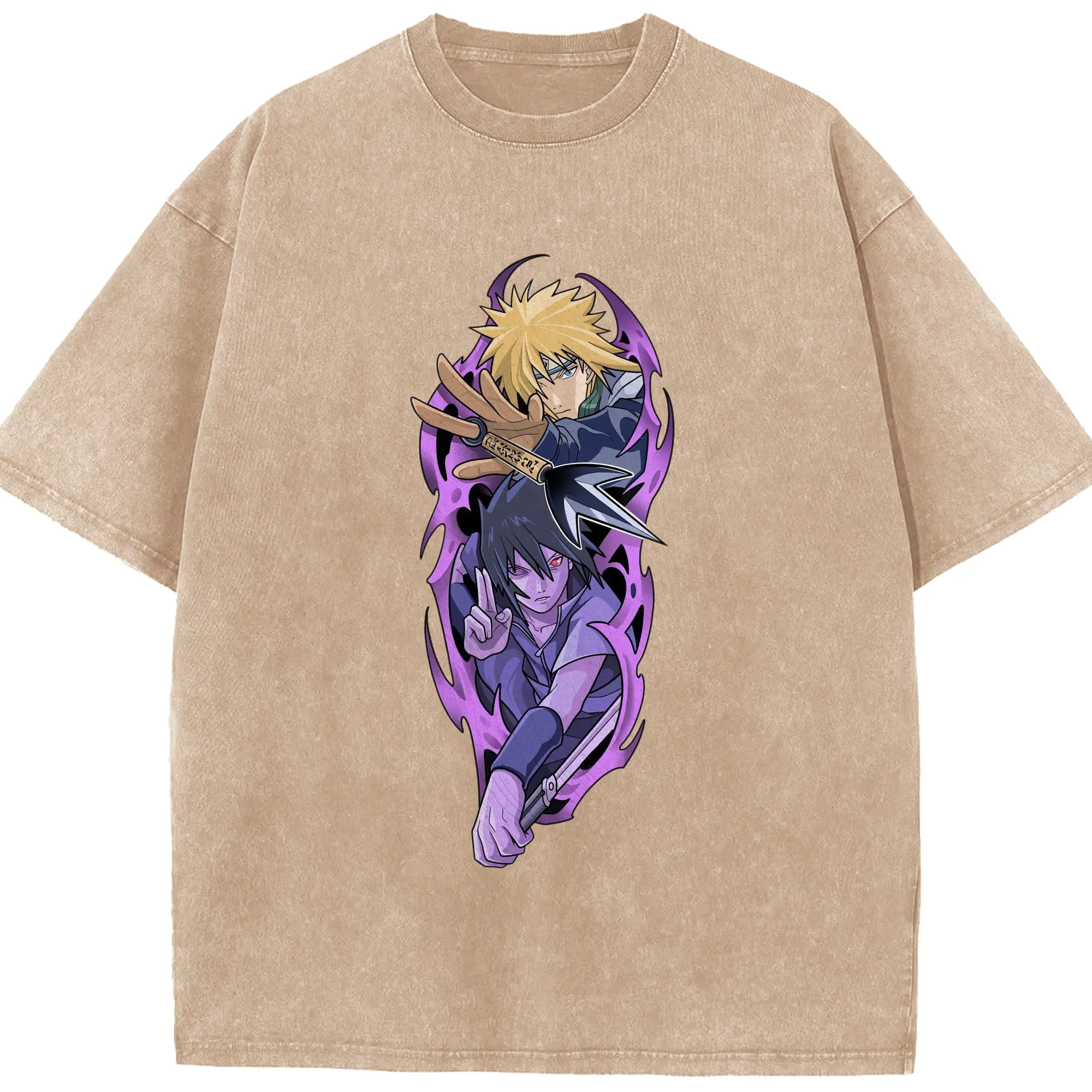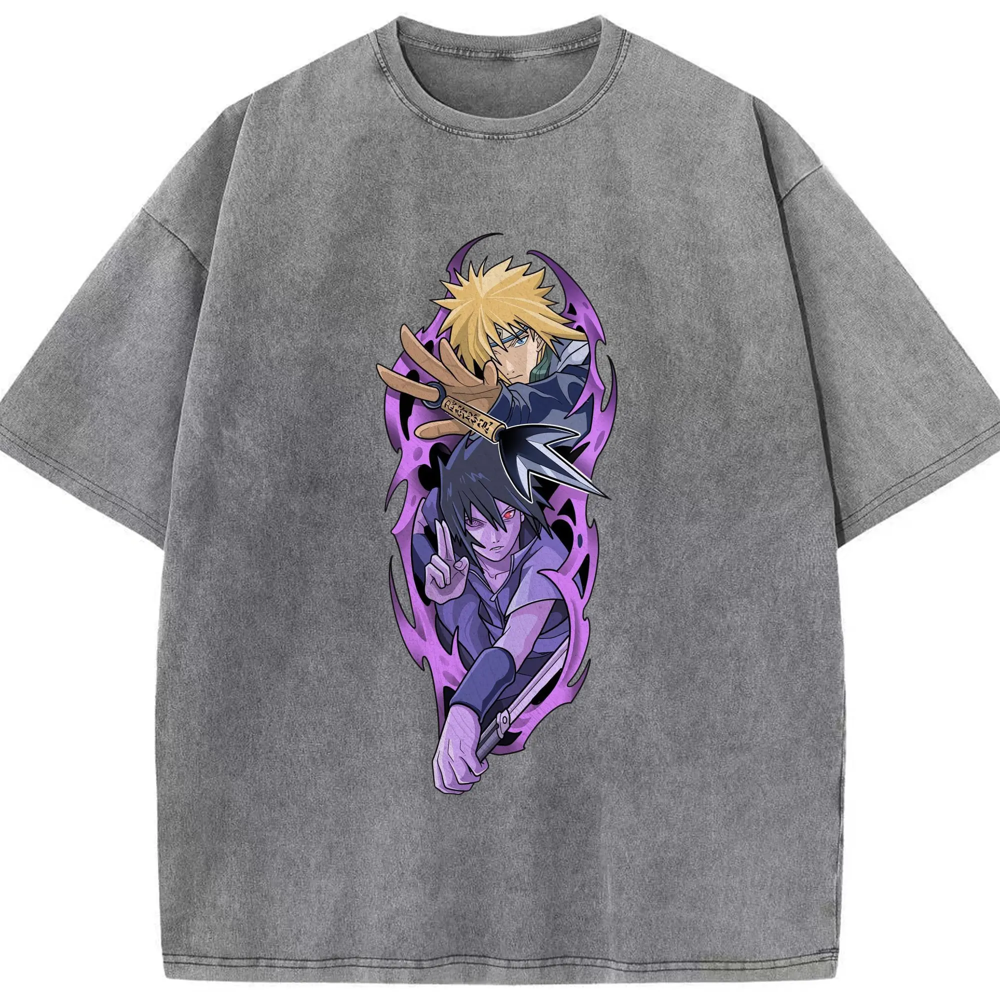 Naruto Minato & Sasuke Ninja Battle Anime DIY Shirt - Washed Vintage Look 230g Cotton Oversized T-Shirt With Front Heat Transfer Print – Soft, Lightweight, Stylish Fit – Comfortable Casual Wear For Sports & Everyday Use