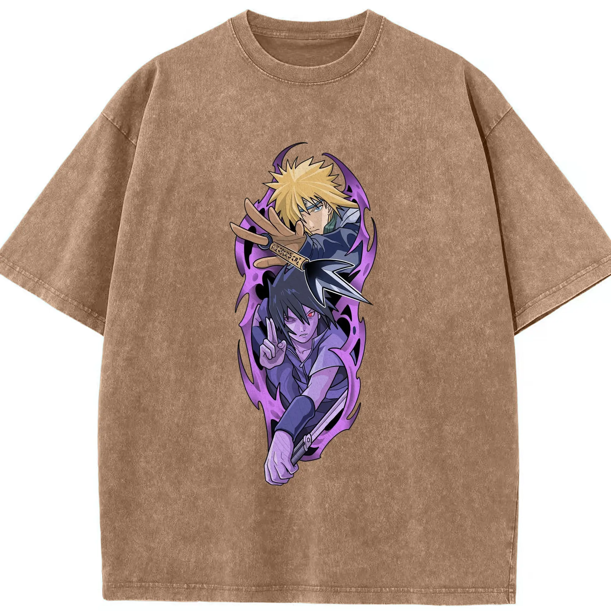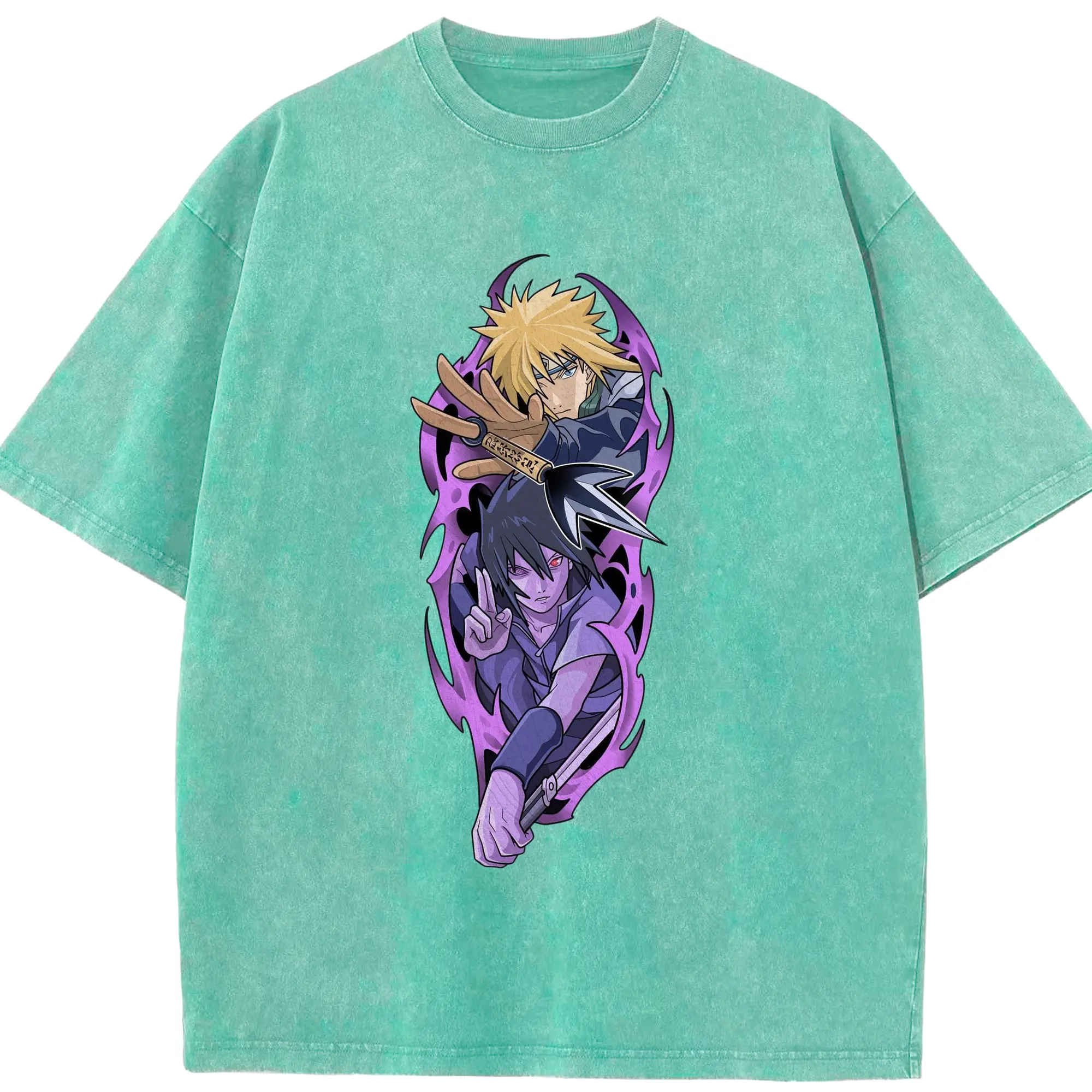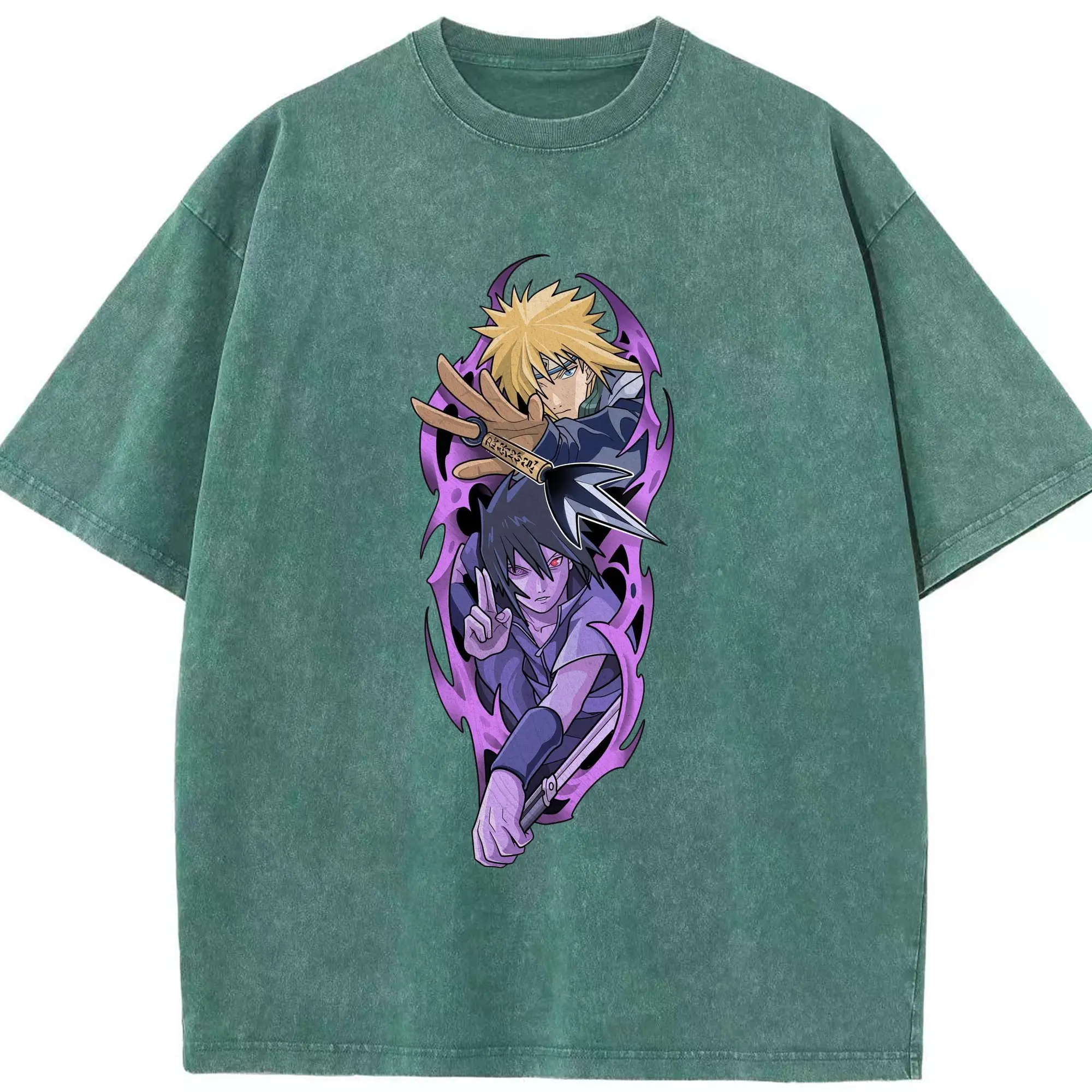 Naruto Minato & Sasuke Ninja Battle Anime DIY Shirt - Washed Vintage Look 230g Cotton Oversized T-Shirt With Front Heat Transfer Print – Soft, Lightweight, Stylish Fit – Comfortable Casual Wear For Sports & Everyday Use