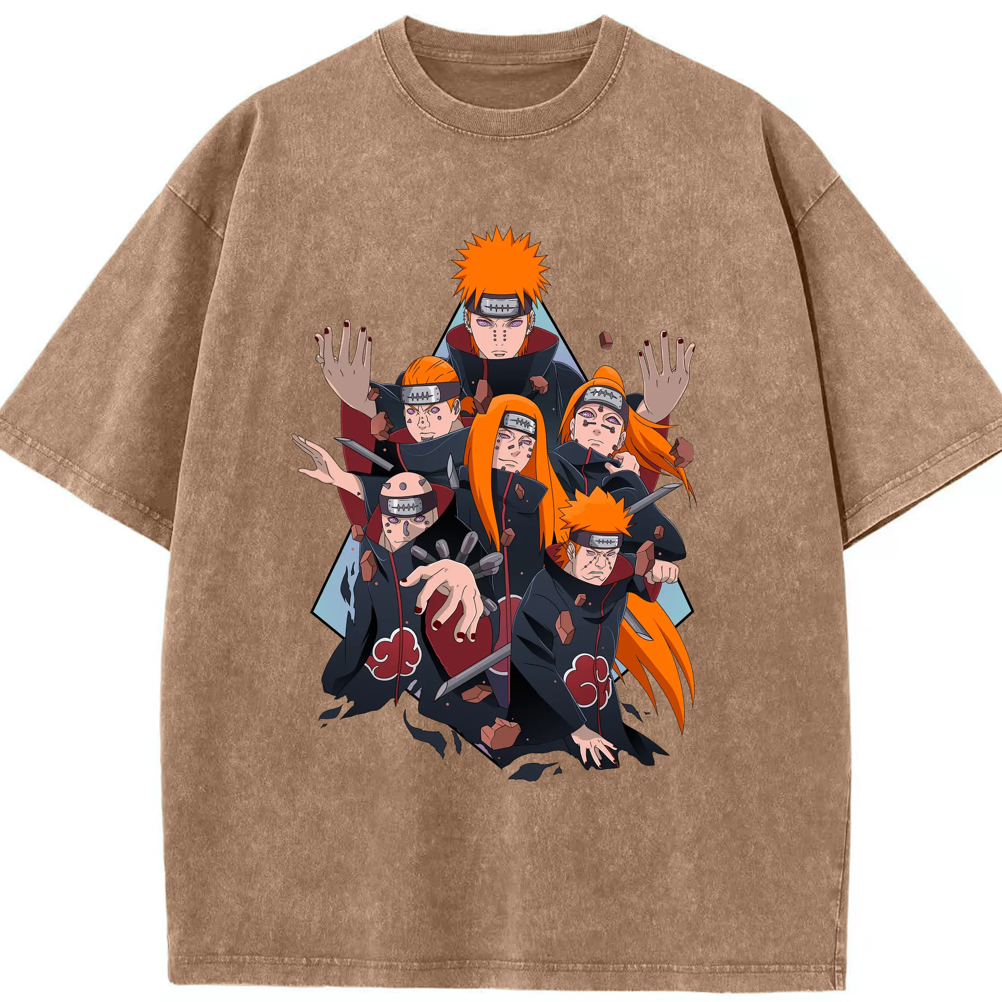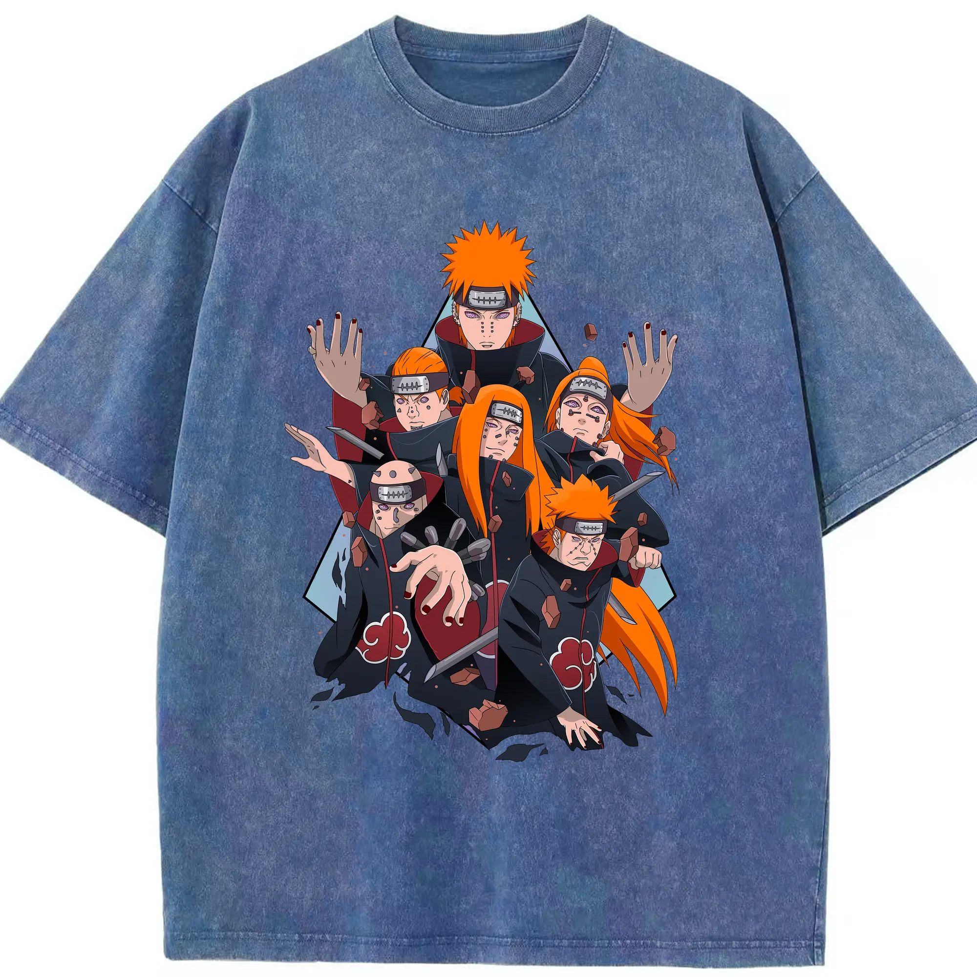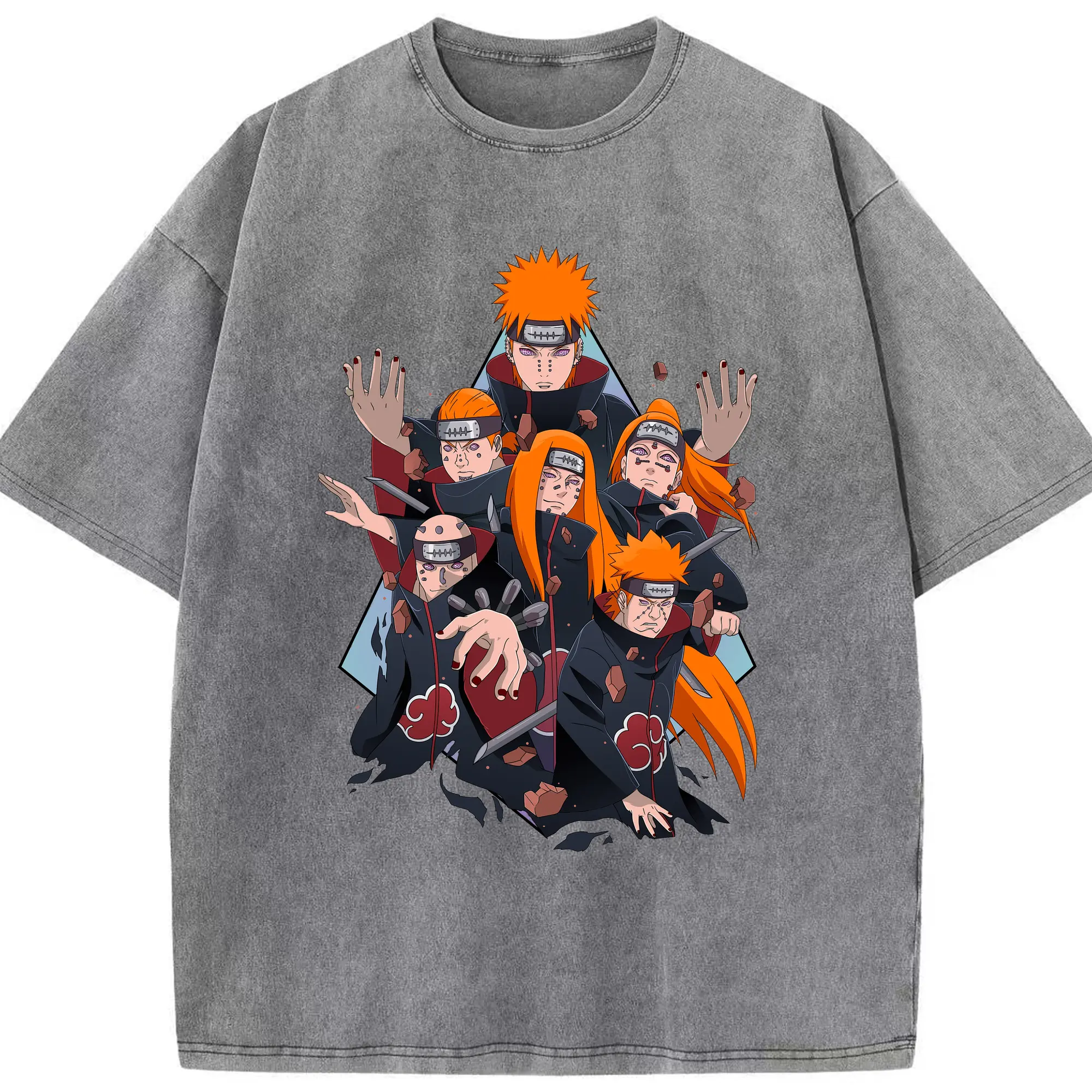 Naruto Pain Six Paths Akatsuki Anime DIY Shirt - Washed Vintage Look 230g Cotton Oversized T-Shirt With Front Heat Transfer Print – Soft, Lightweight, Stylish Fit – Comfortable Casual Wear For Sports & Everyday Use