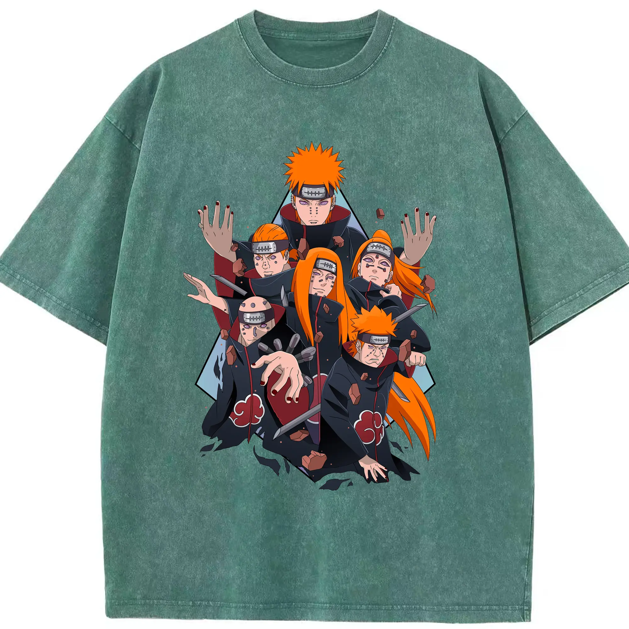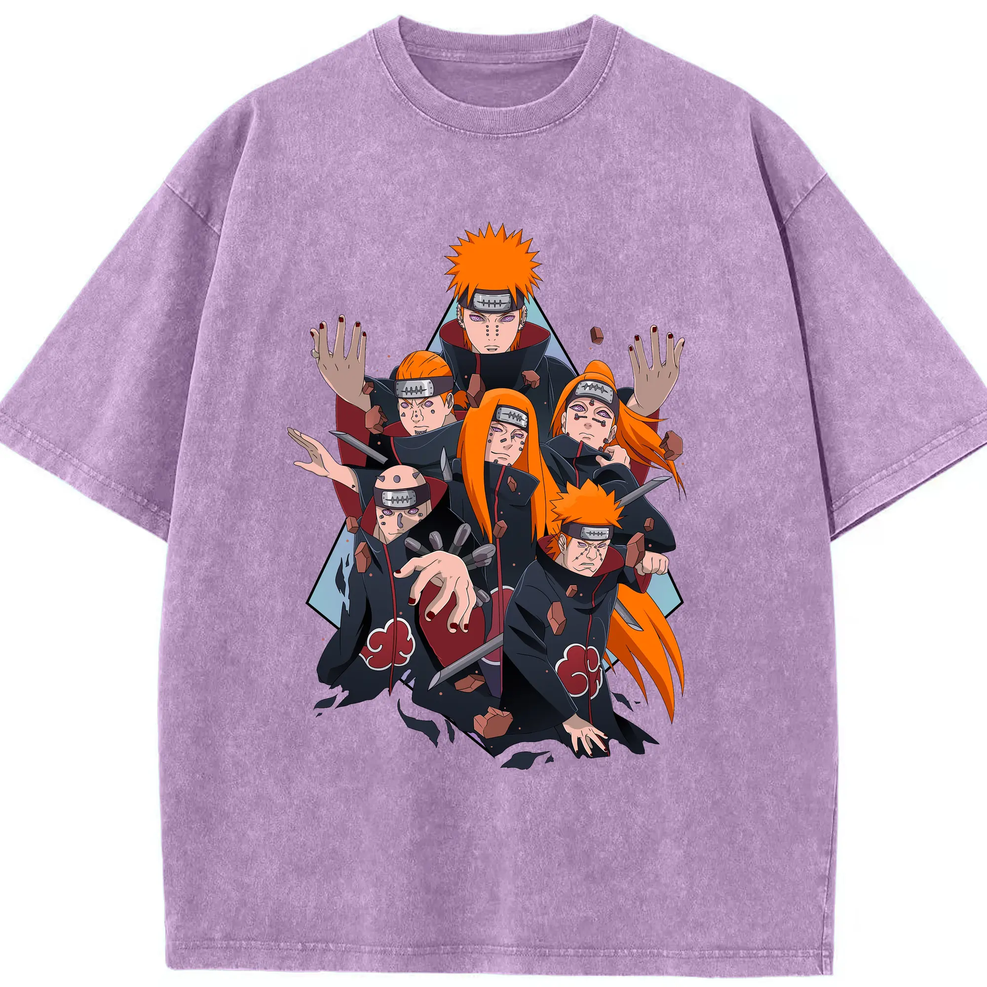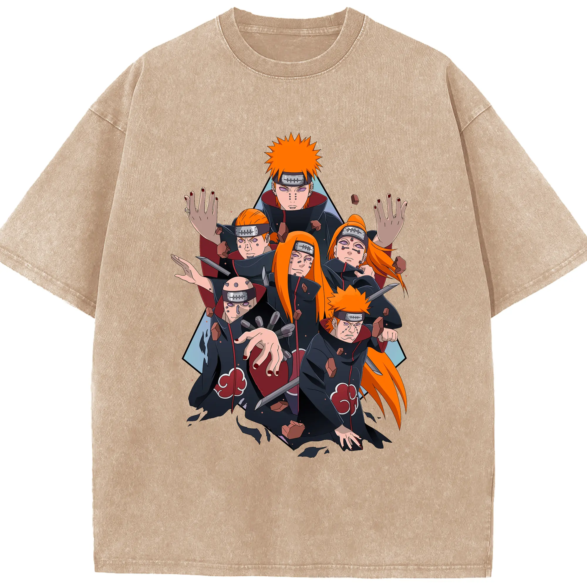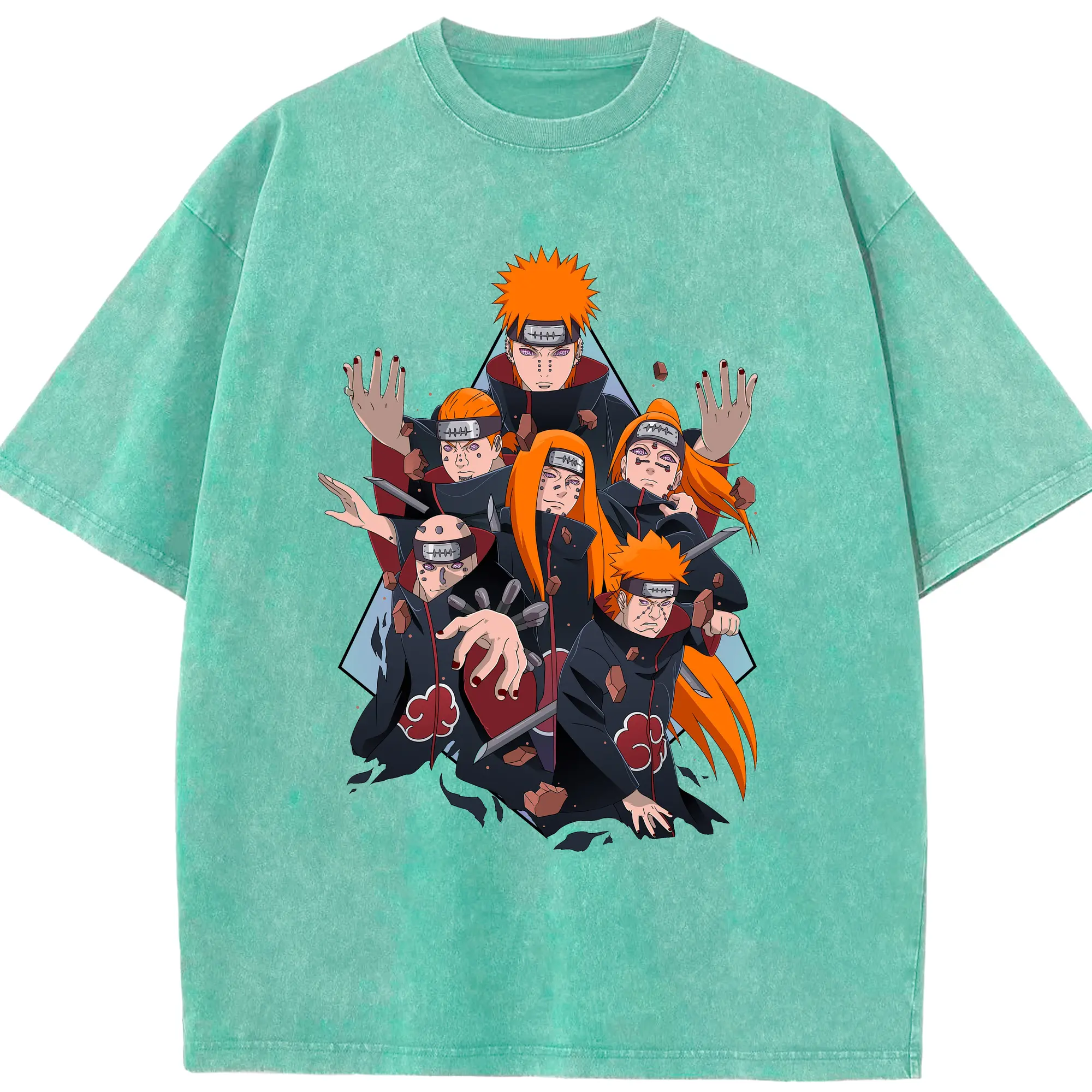 Naruto Pain Six Paths Akatsuki Anime DIY Shirt - Washed Vintage Look 230g Cotton Oversized T-Shirt With Front Heat Transfer Print – Soft, Lightweight, Stylish Fit – Comfortable Casual Wear For Sports & Everyday Use