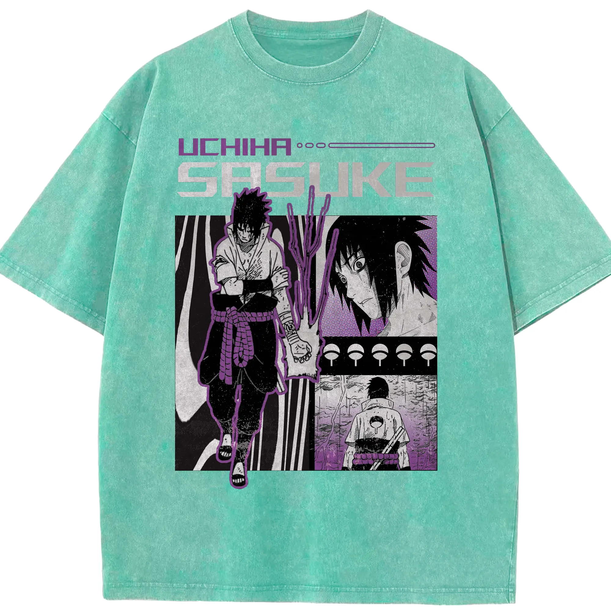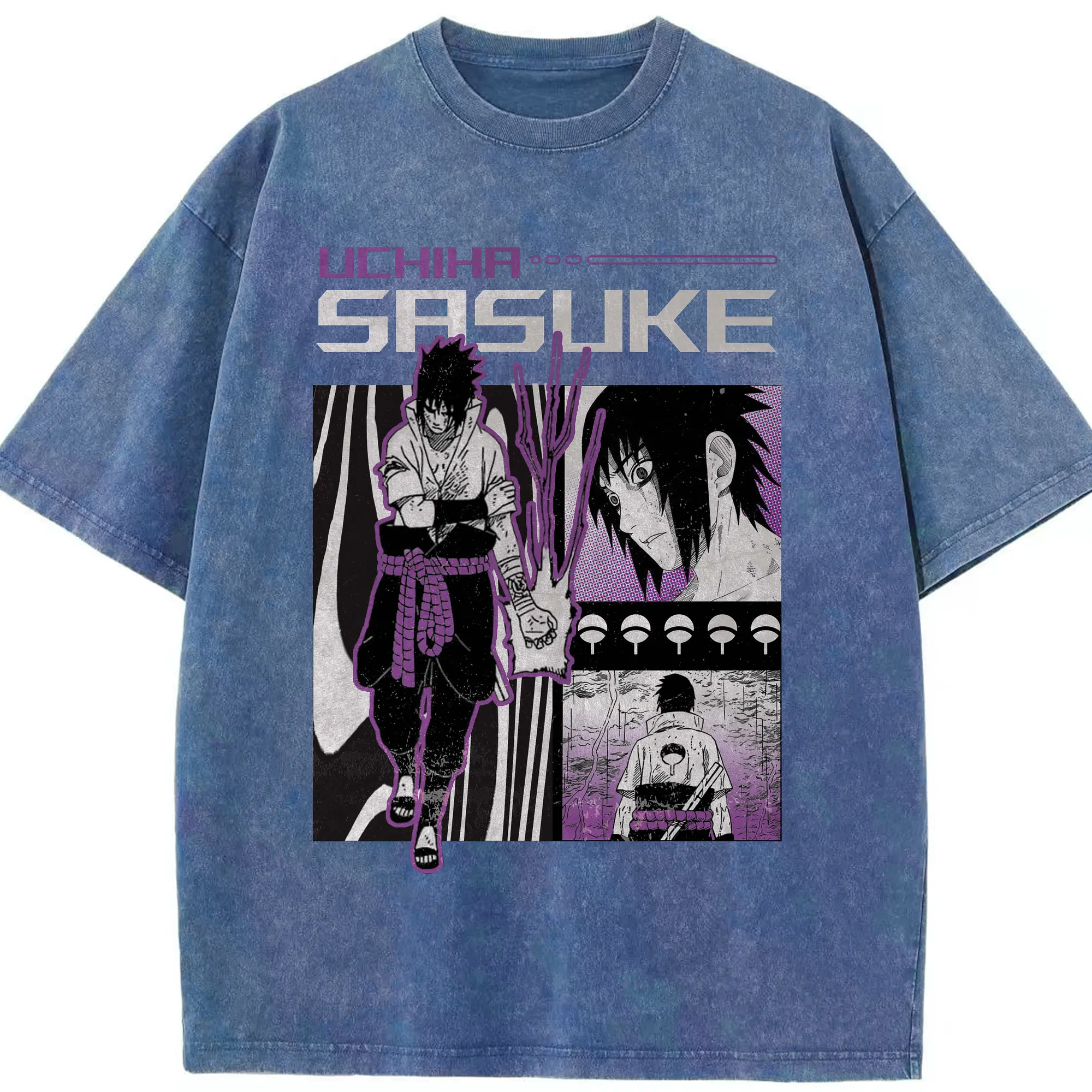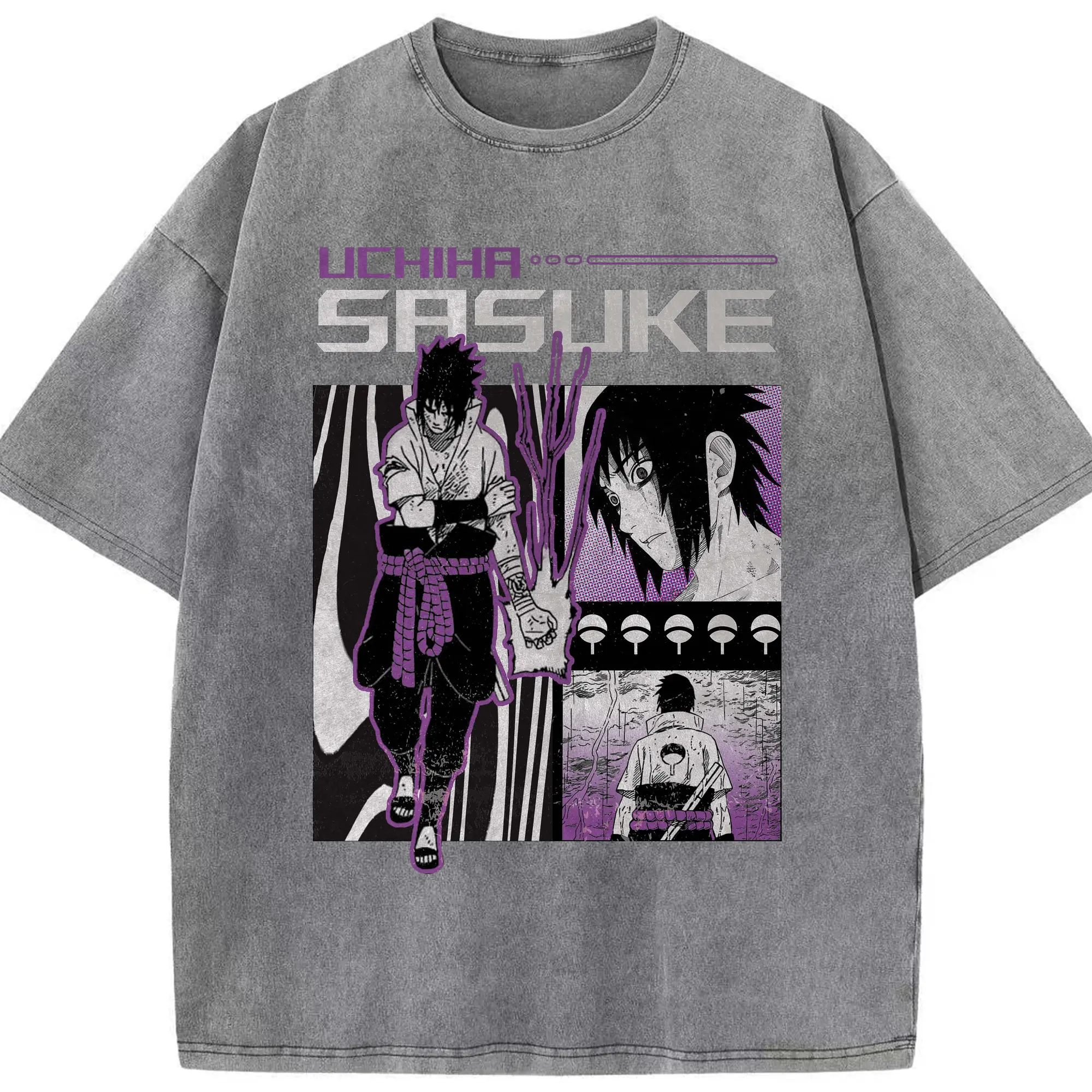 Naruto Uchiha Sasuke Retro Anime DIY Shirt - Washed Vintage Look 230g Cotton Oversized T-Shirt With Front Heat Transfer Print – Soft, Lightweight, Stylish Fit – Comfortable Casual Wear For Sports & Everyday Use