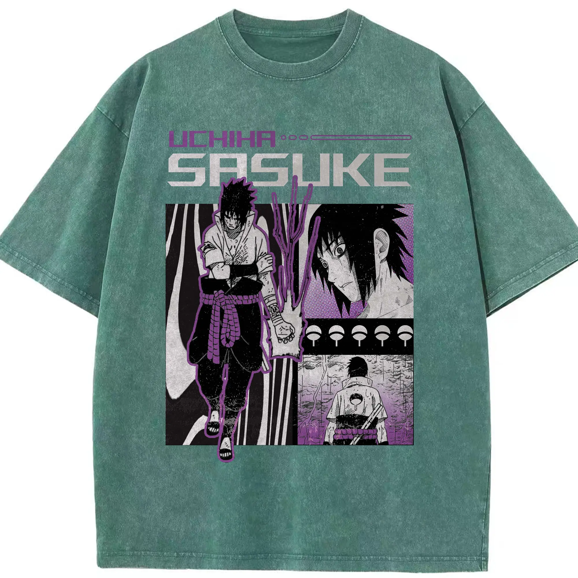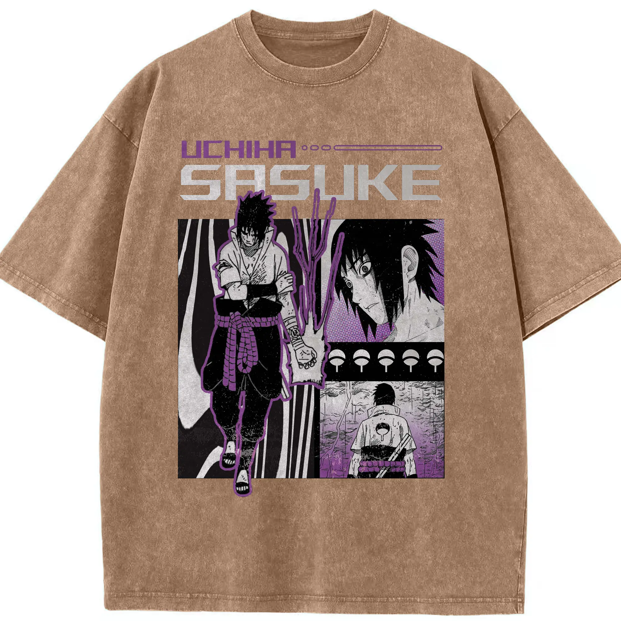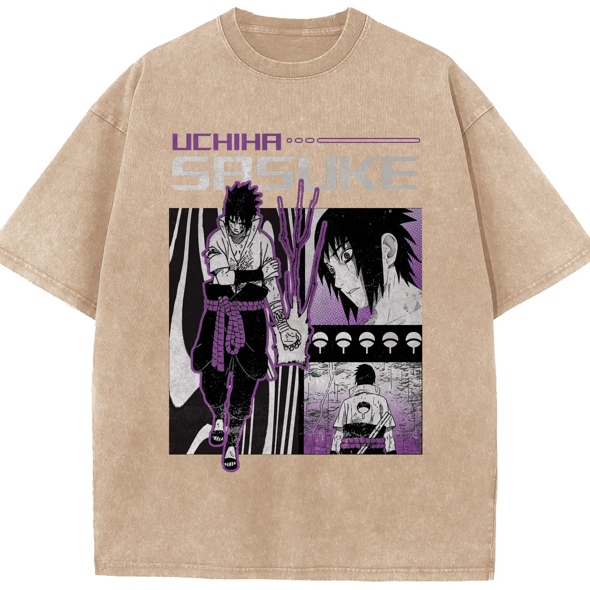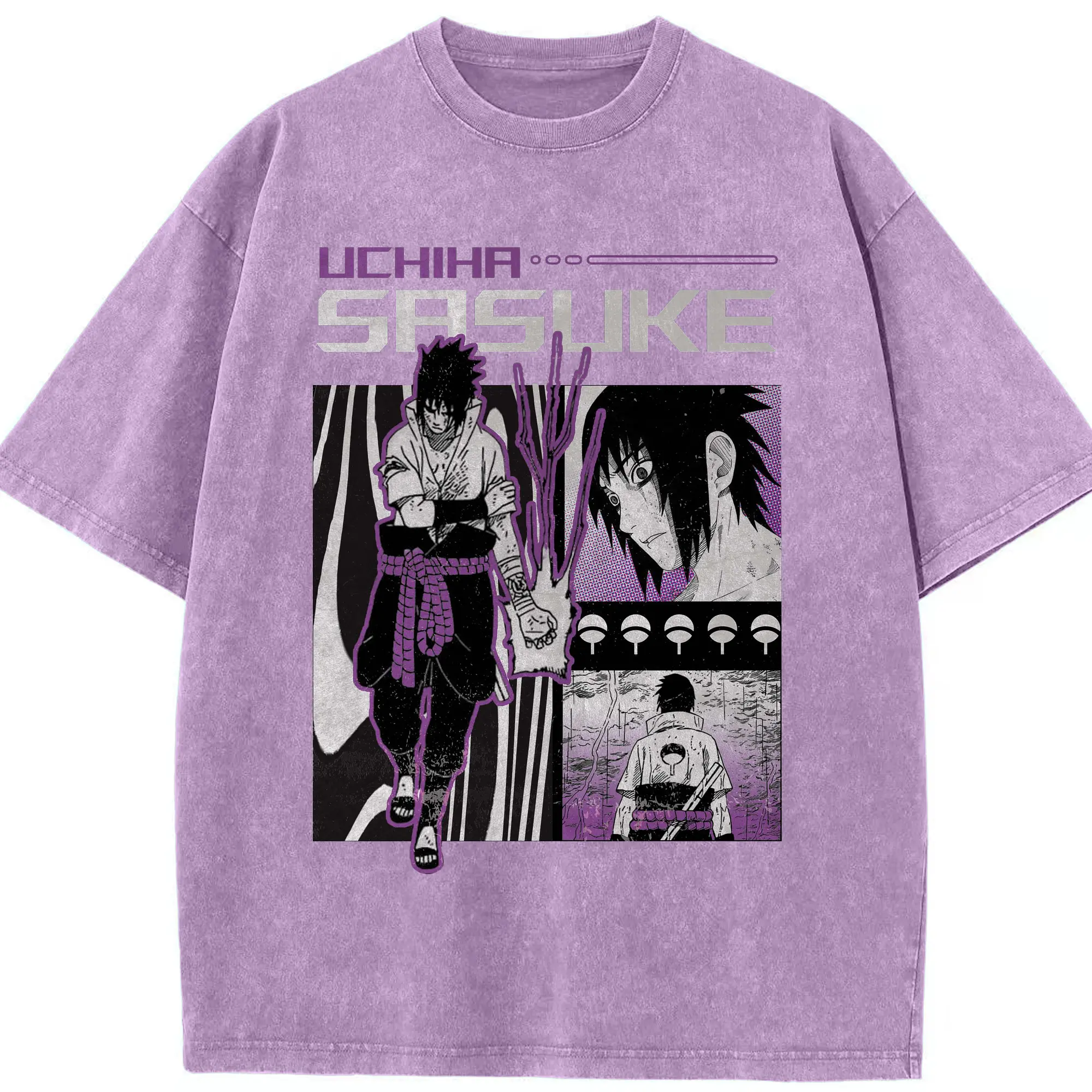 Naruto Uchiha Sasuke Retro Anime DIY Shirt - Washed Vintage Look 230g Cotton Oversized T-Shirt With Front Heat Transfer Print – Soft, Lightweight, Stylish Fit – Comfortable Casual Wear For Sports & Everyday Use