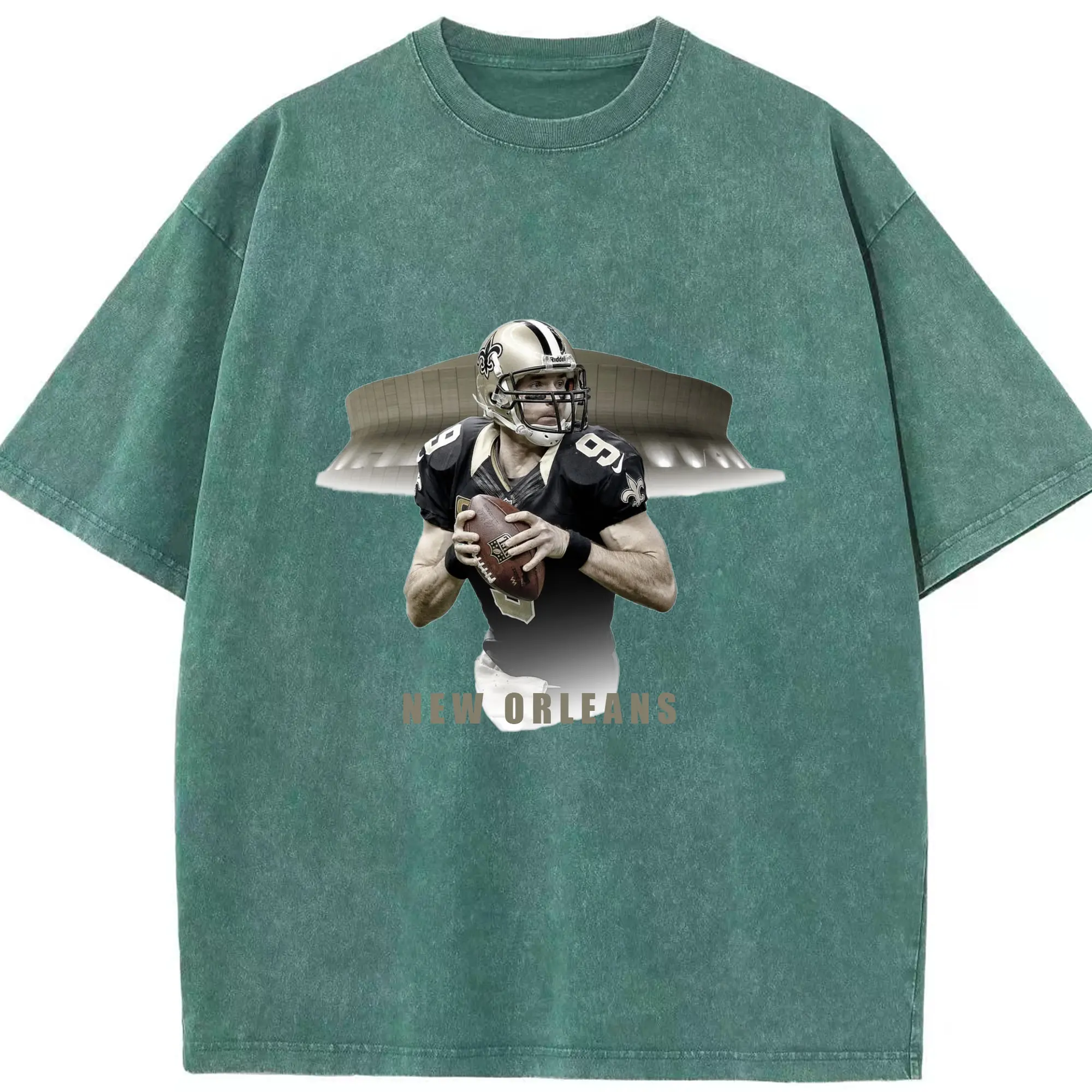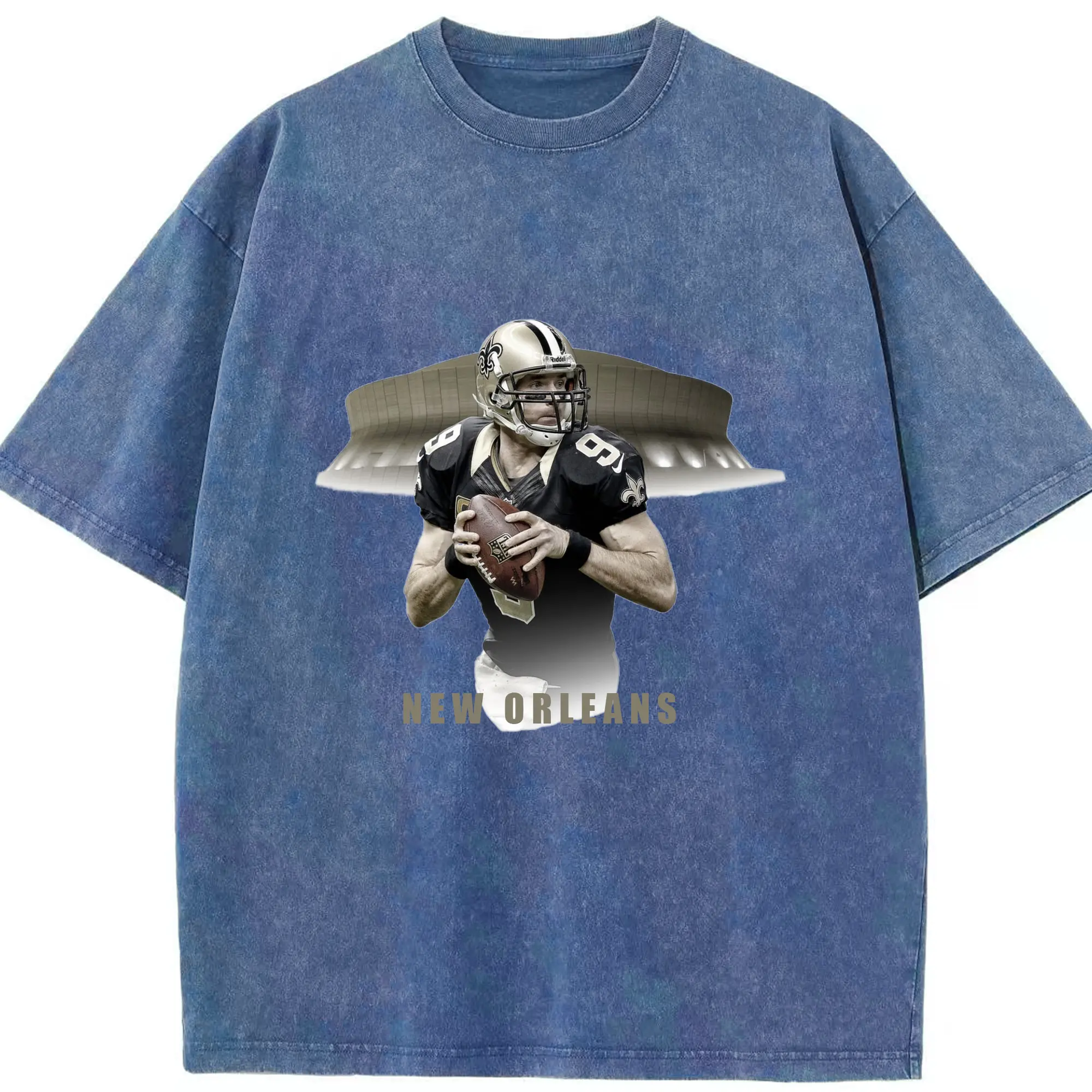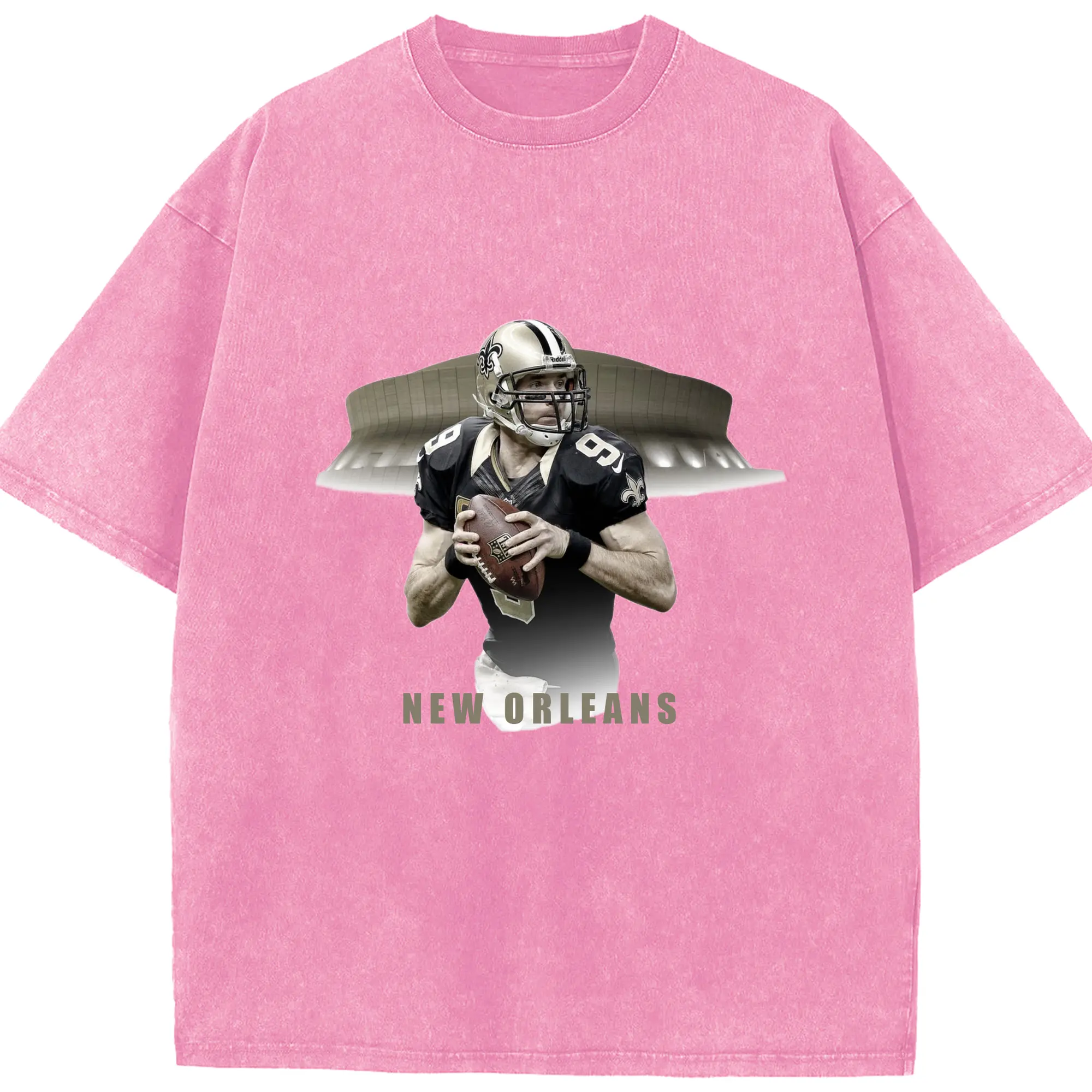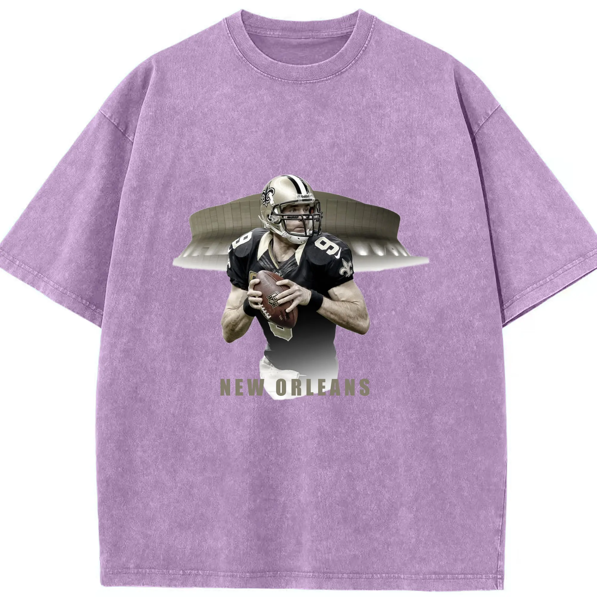 New Orleans Saints Drew Brees #9 NFL Star with Stadium DIY Shirt - Washed Vintage Look 230g Cotton Oversized T-Shirt With Front Heat Transfer Print – Soft, Lightweight, Stylish Fit – Comfortable Casual Wear For Sports & Everyday Use