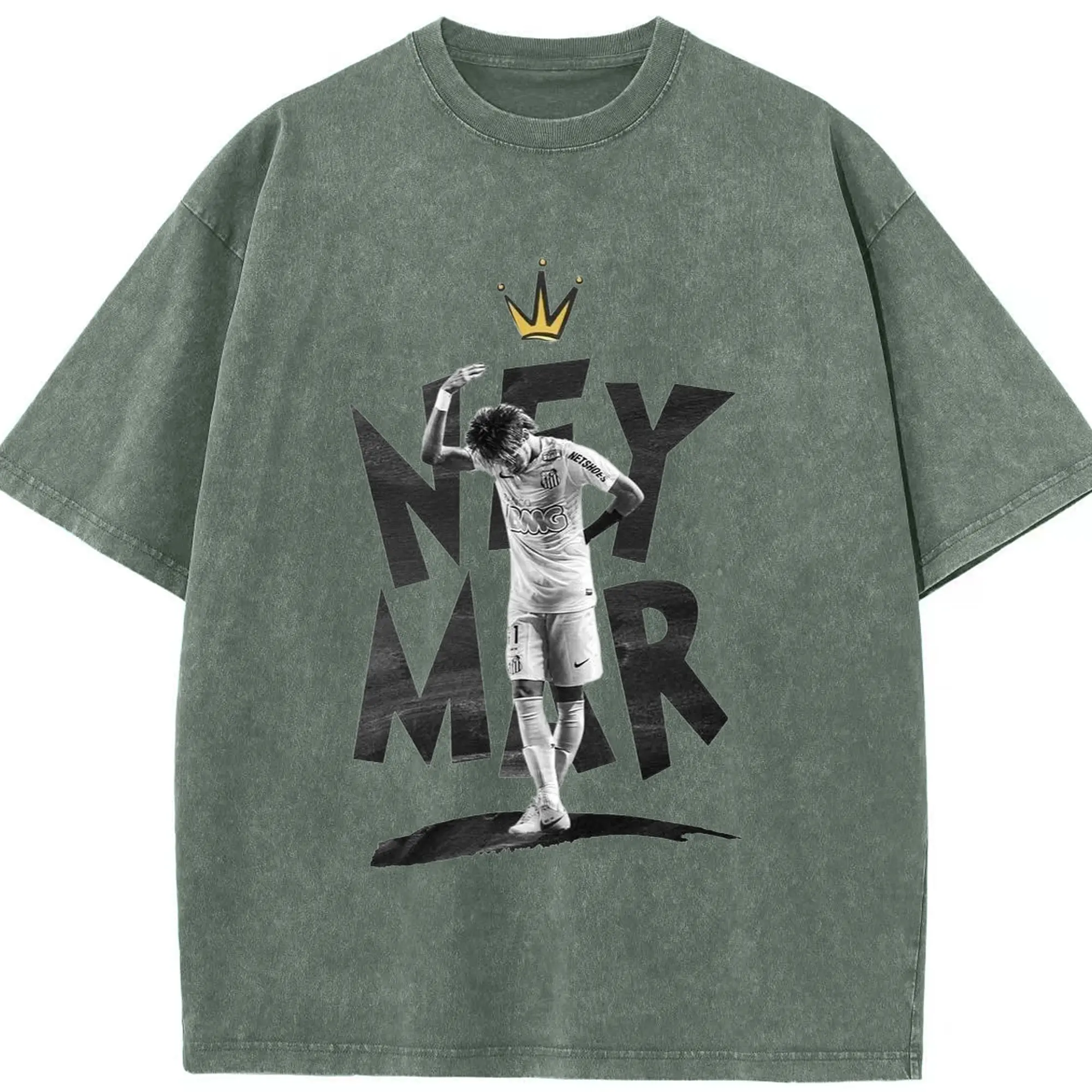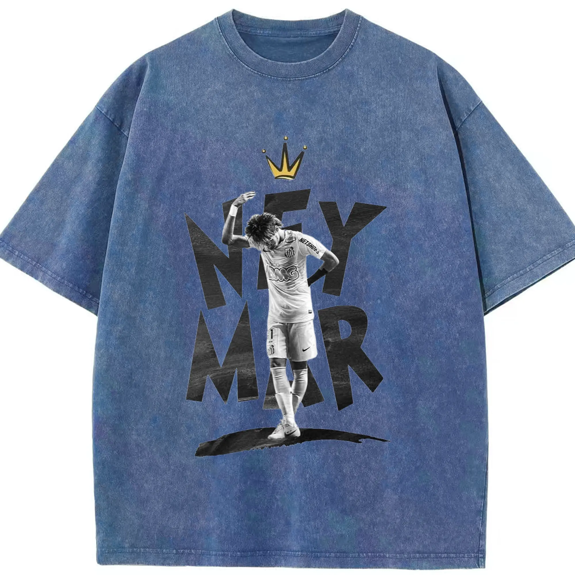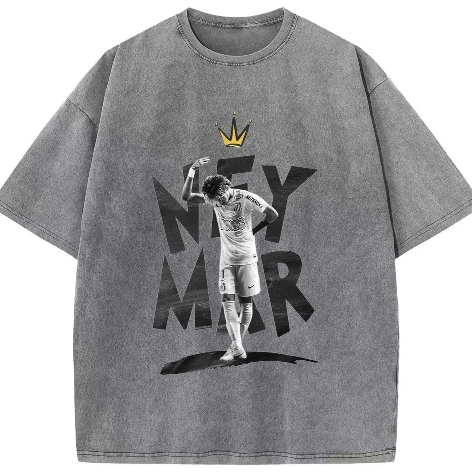 Neymar Santos FC King Style DIY Shirt - Washed Vintage Look 230g Cotton Oversized T-Shirt With Front Heat Transfer Print – Soft, Lightweight, Stylish Fit – Comfortable Casual Wear For Sports & Everyday Use