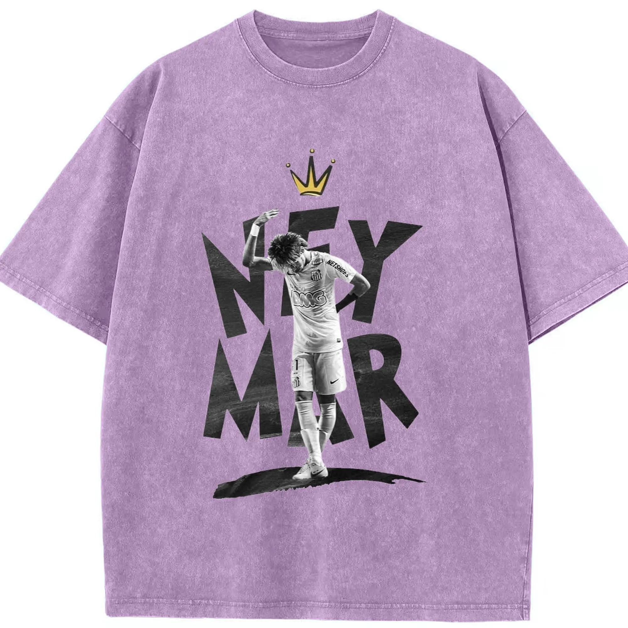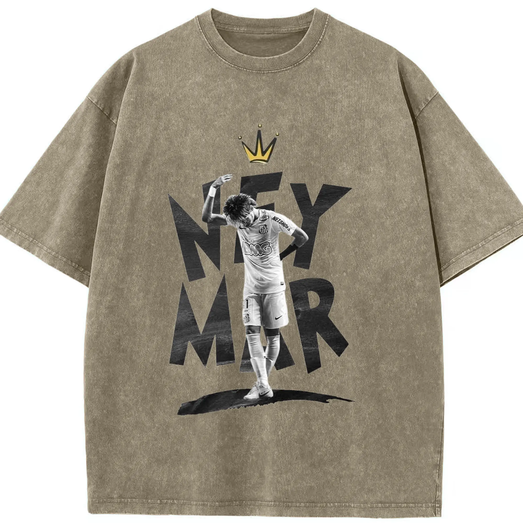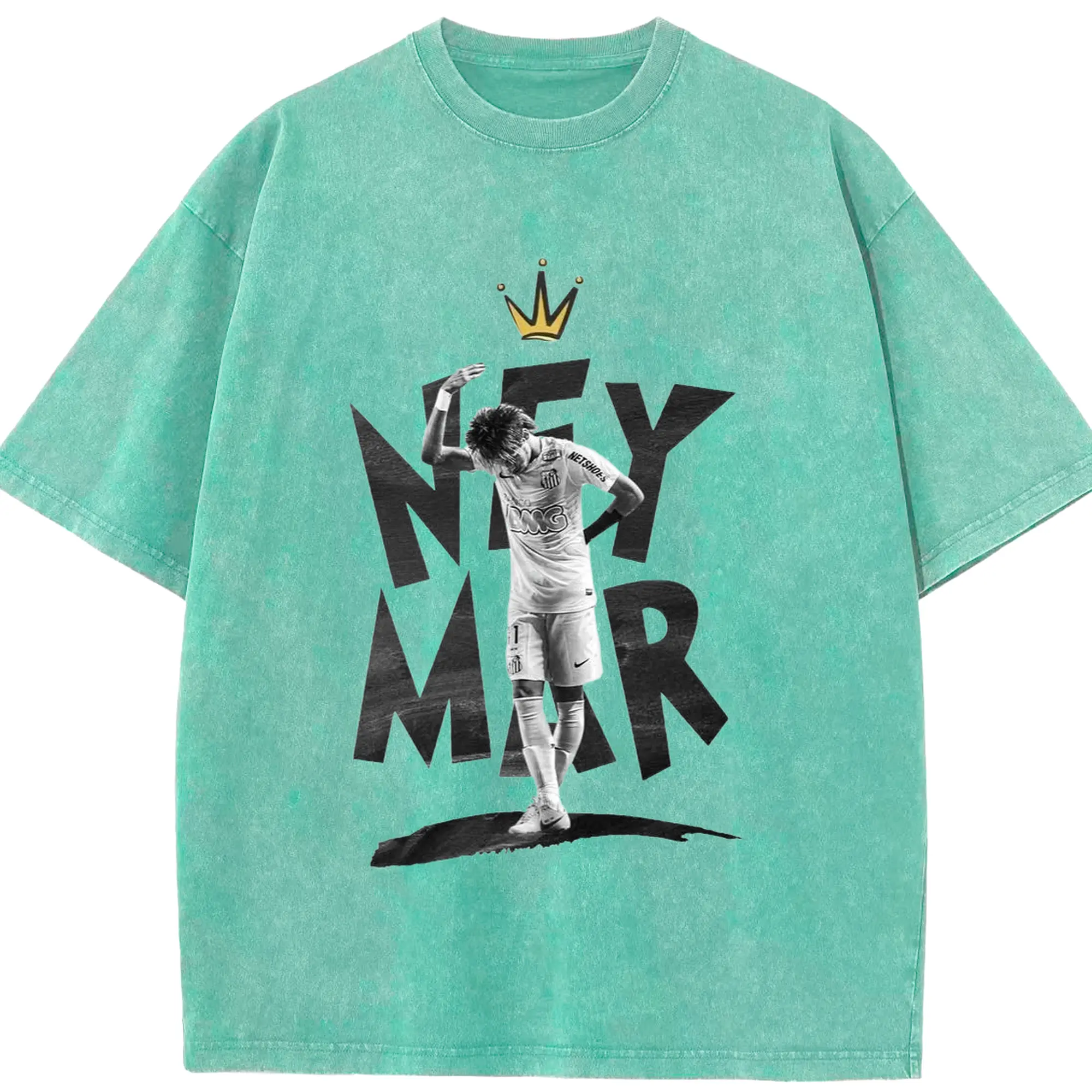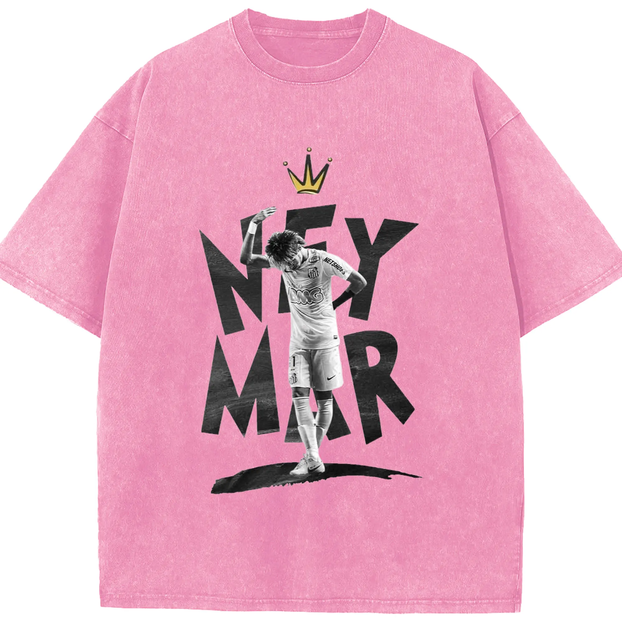 Neymar Santos FC King Style DIY Shirt - Washed Vintage Look 230g Cotton Oversized T-Shirt With Front Heat Transfer Print – Soft, Lightweight, Stylish Fit – Comfortable Casual Wear For Sports & Everyday Use