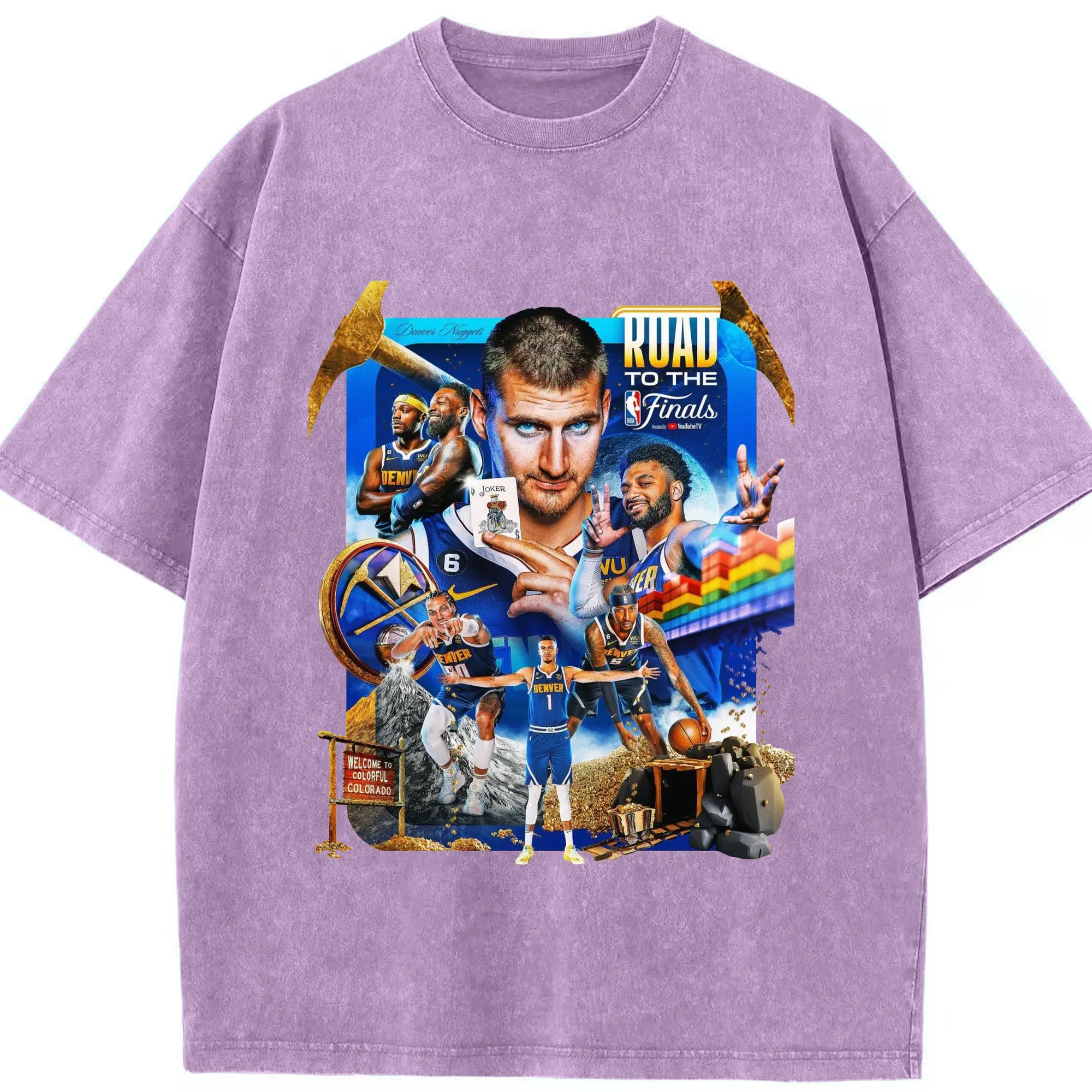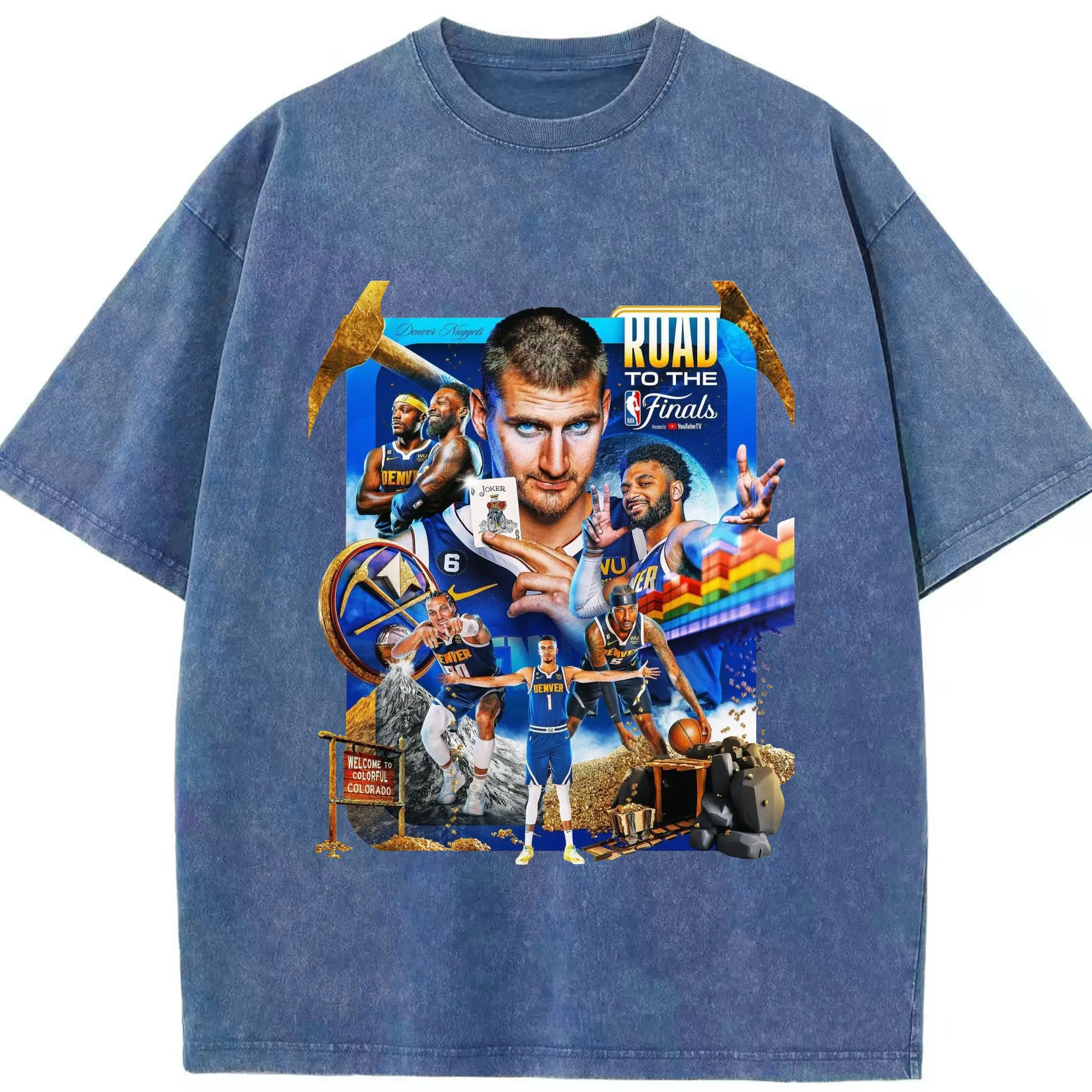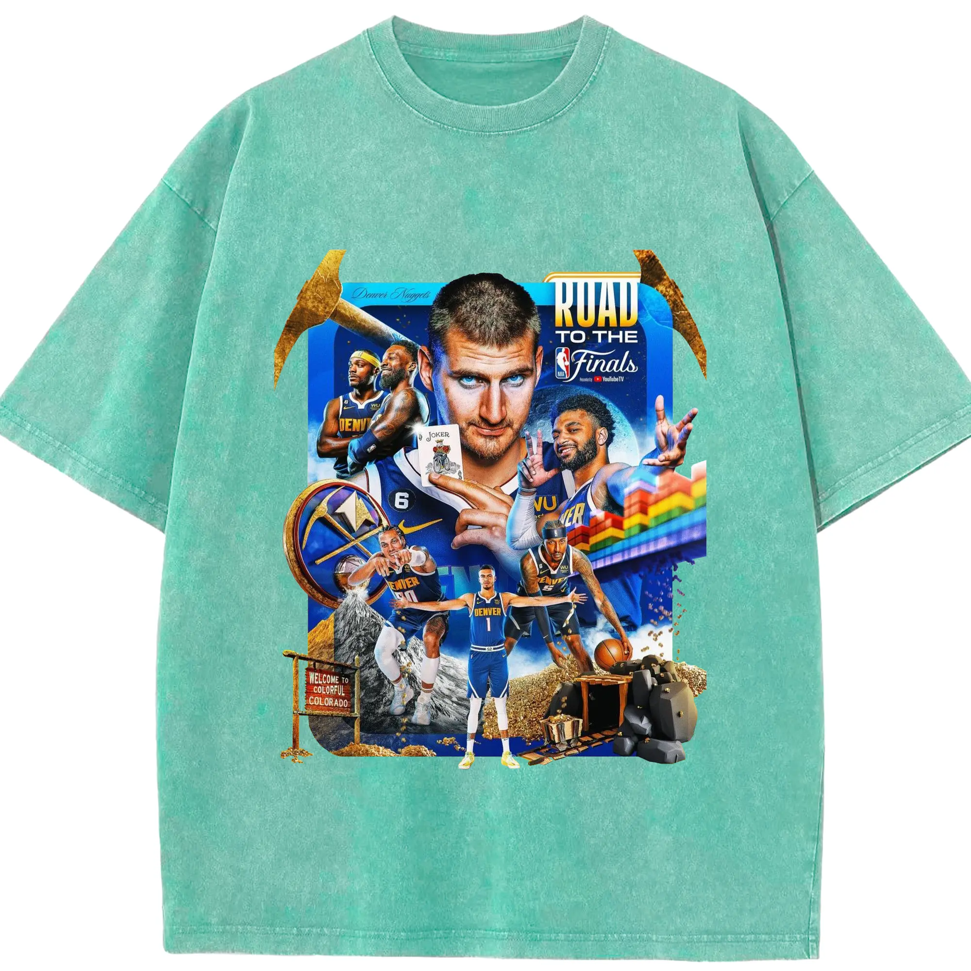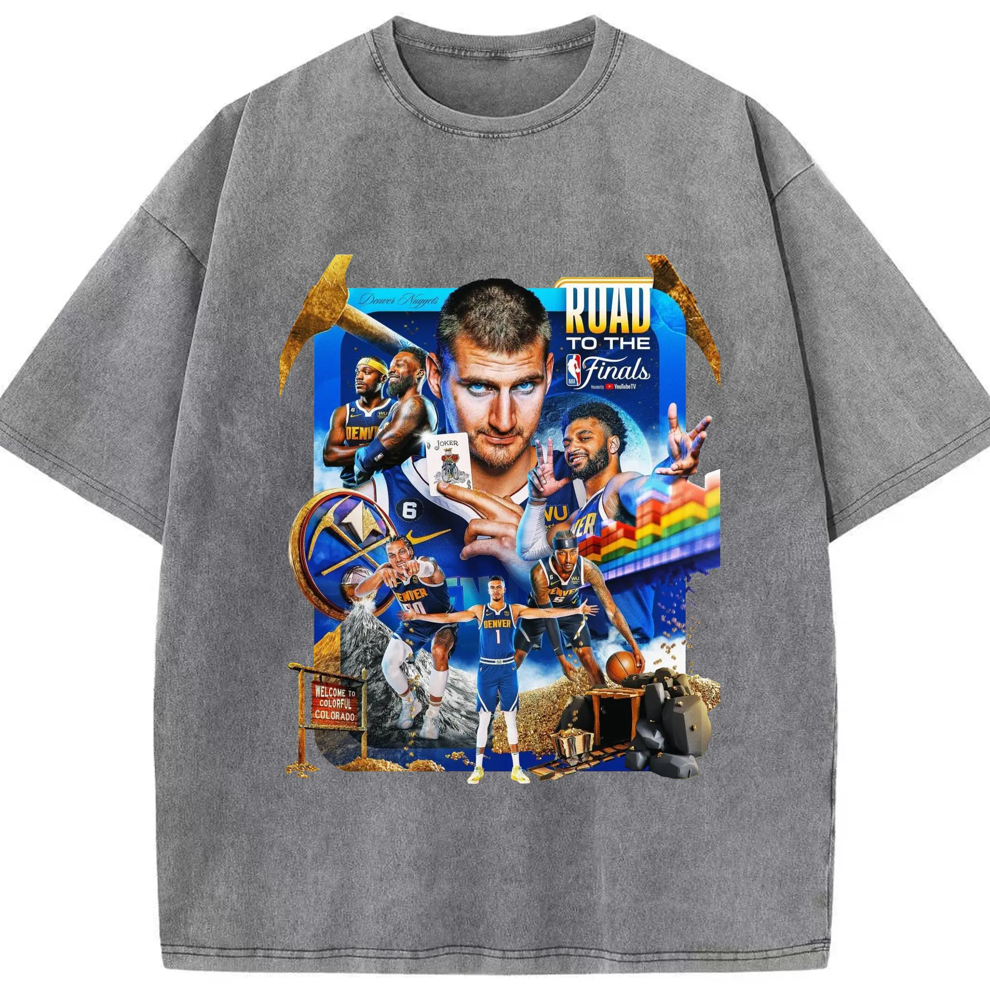 Nikola Jokić Denver Nuggets Road to the Finals Shirt - Washed Vintage Look 230g Cotton Oversized T-Shirt With Front Heat Transfer Print – Soft, Lightweight, Stylish Fit – Comfortable Casual Wear For Sports & Everyday Use