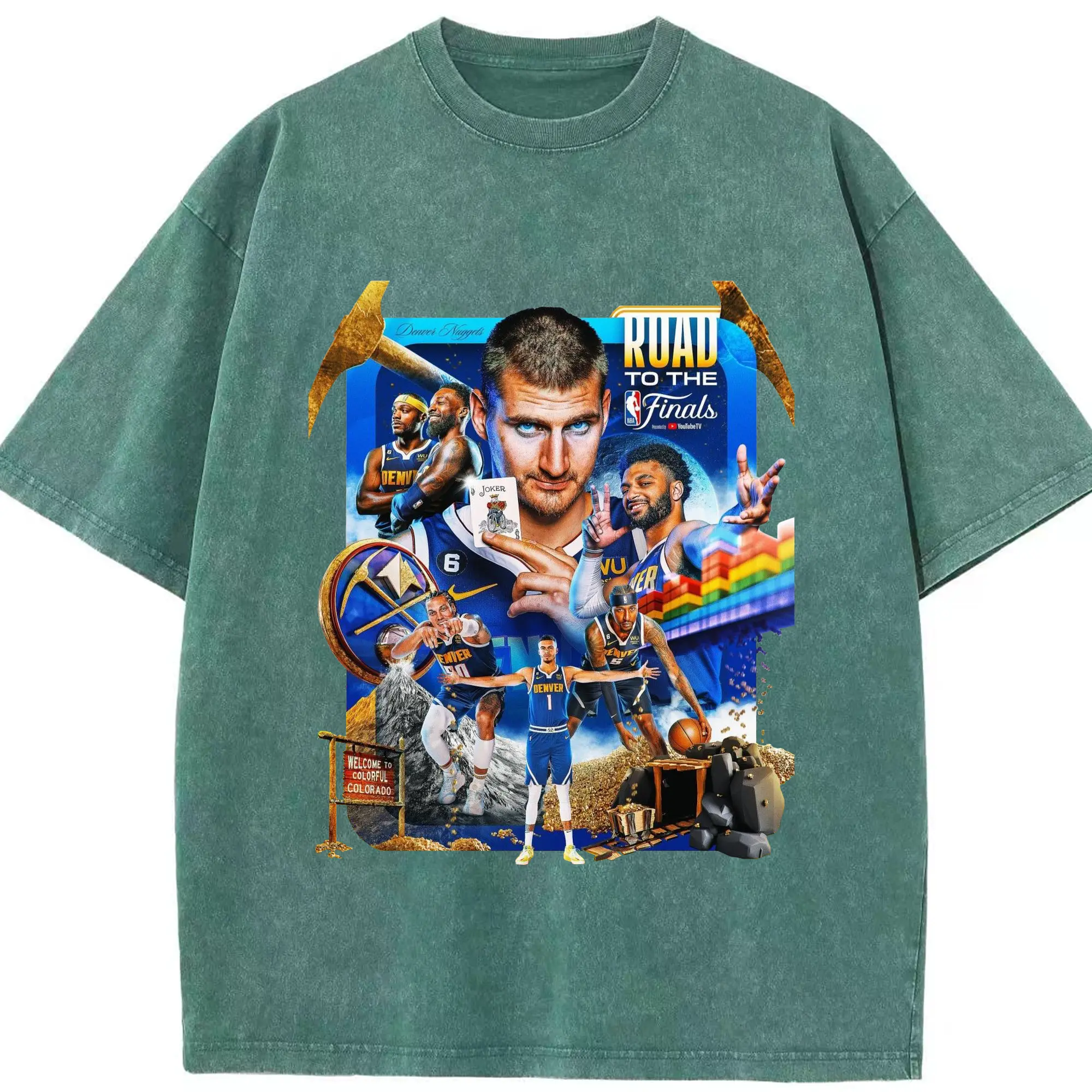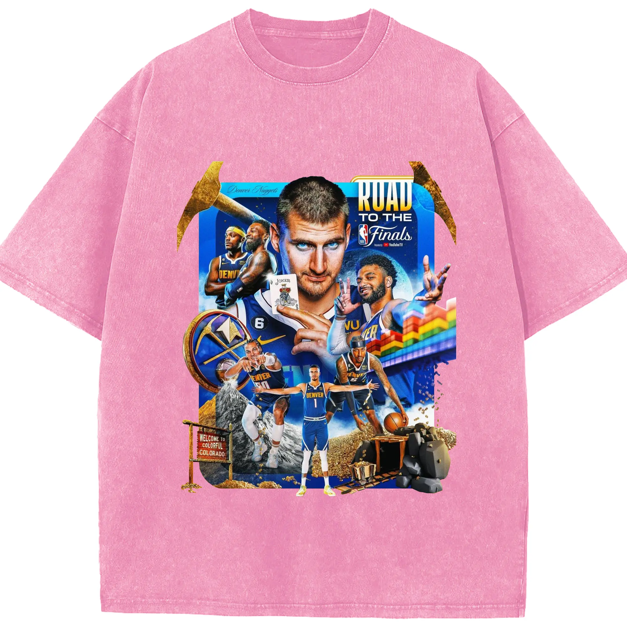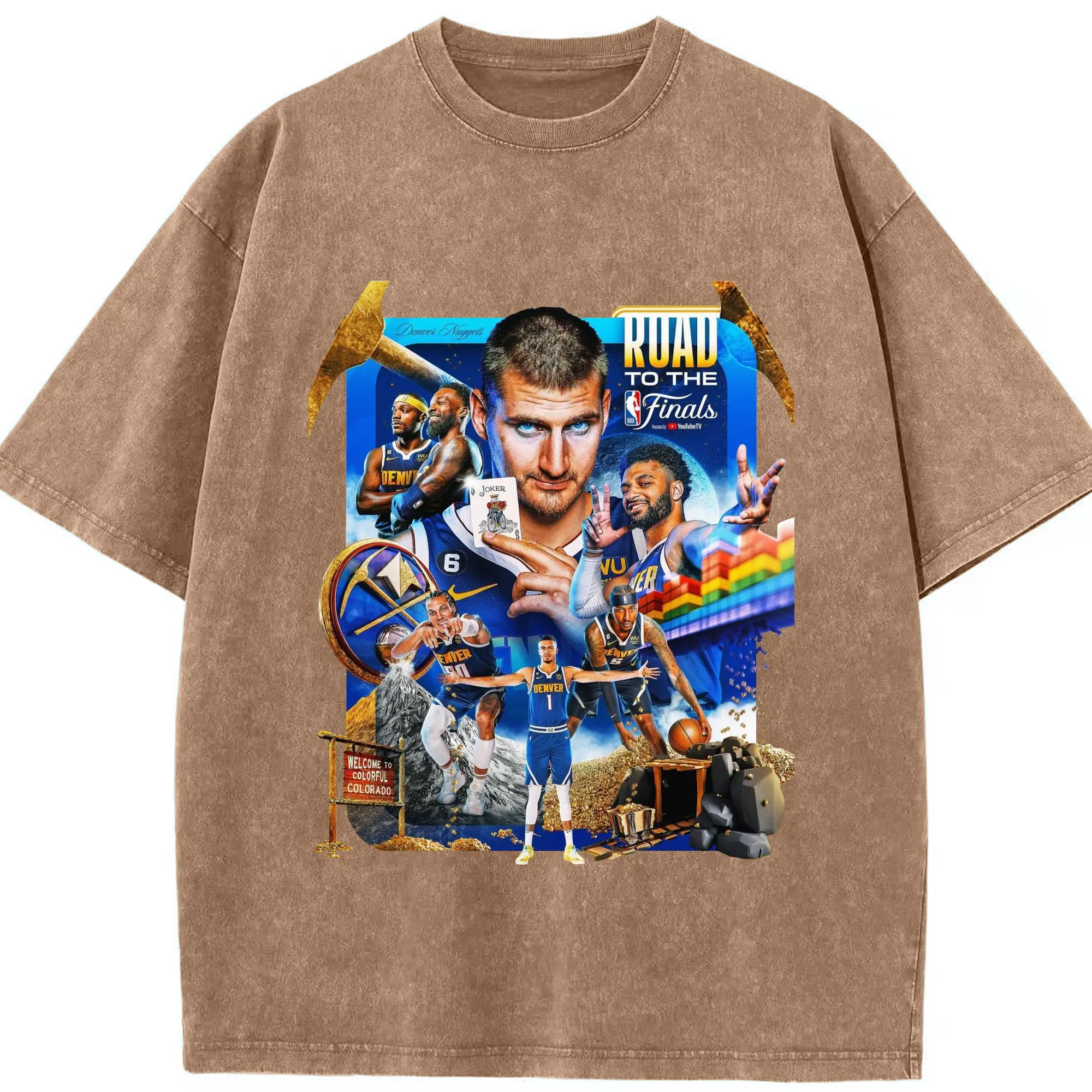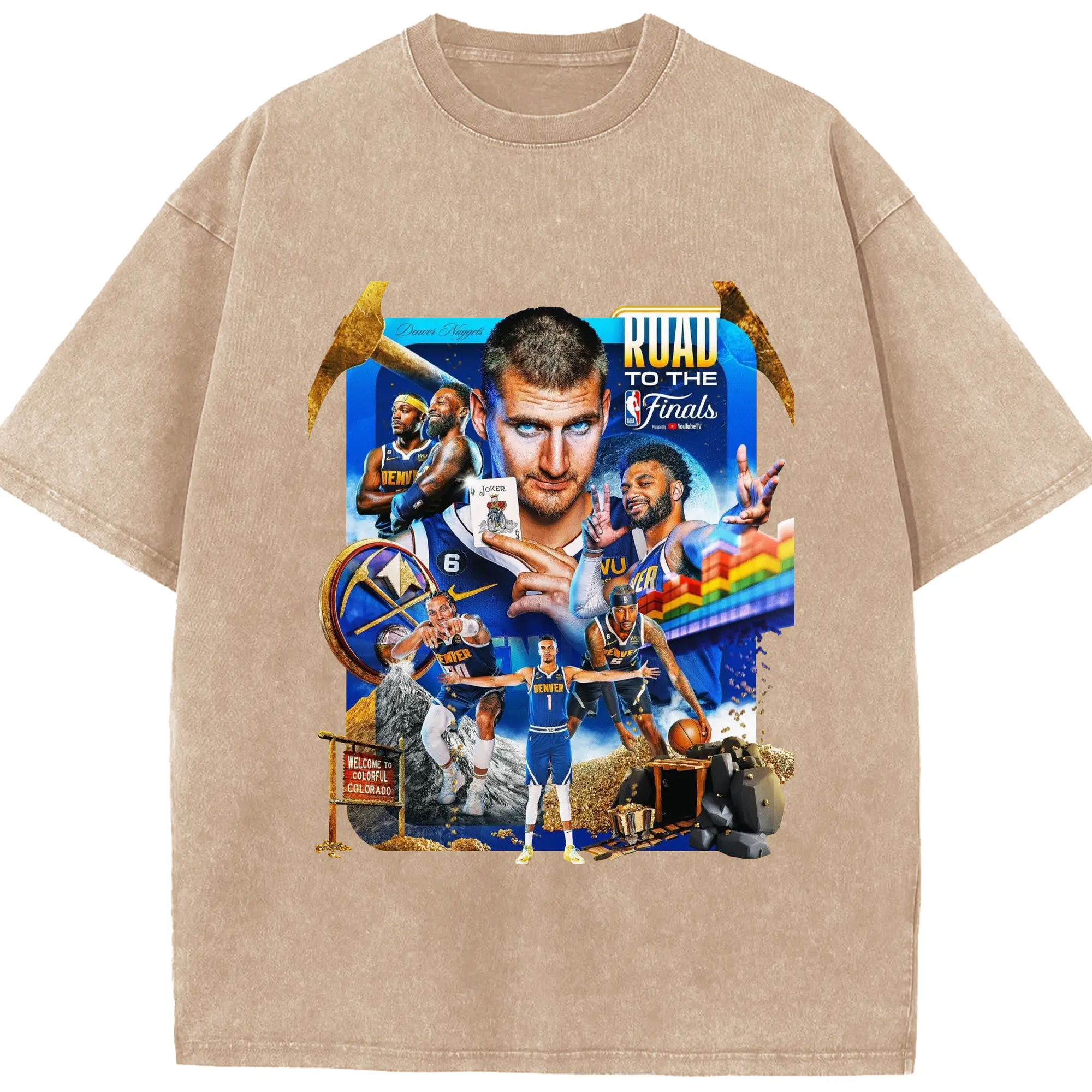 Nikola Jokić Denver Nuggets Road to the Finals Shirt - Washed Vintage Look 230g Cotton Oversized T-Shirt With Front Heat Transfer Print – Soft, Lightweight, Stylish Fit – Comfortable Casual Wear For Sports & Everyday Use