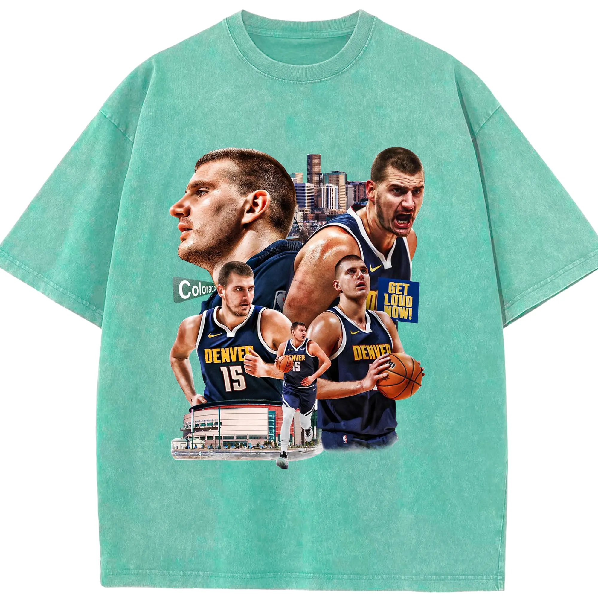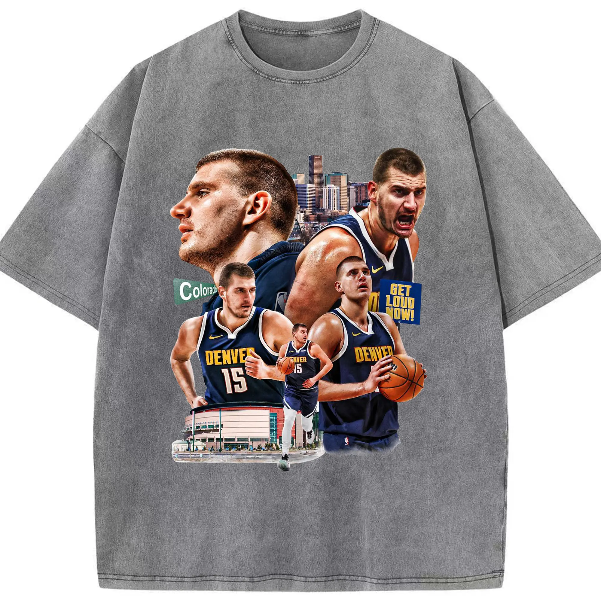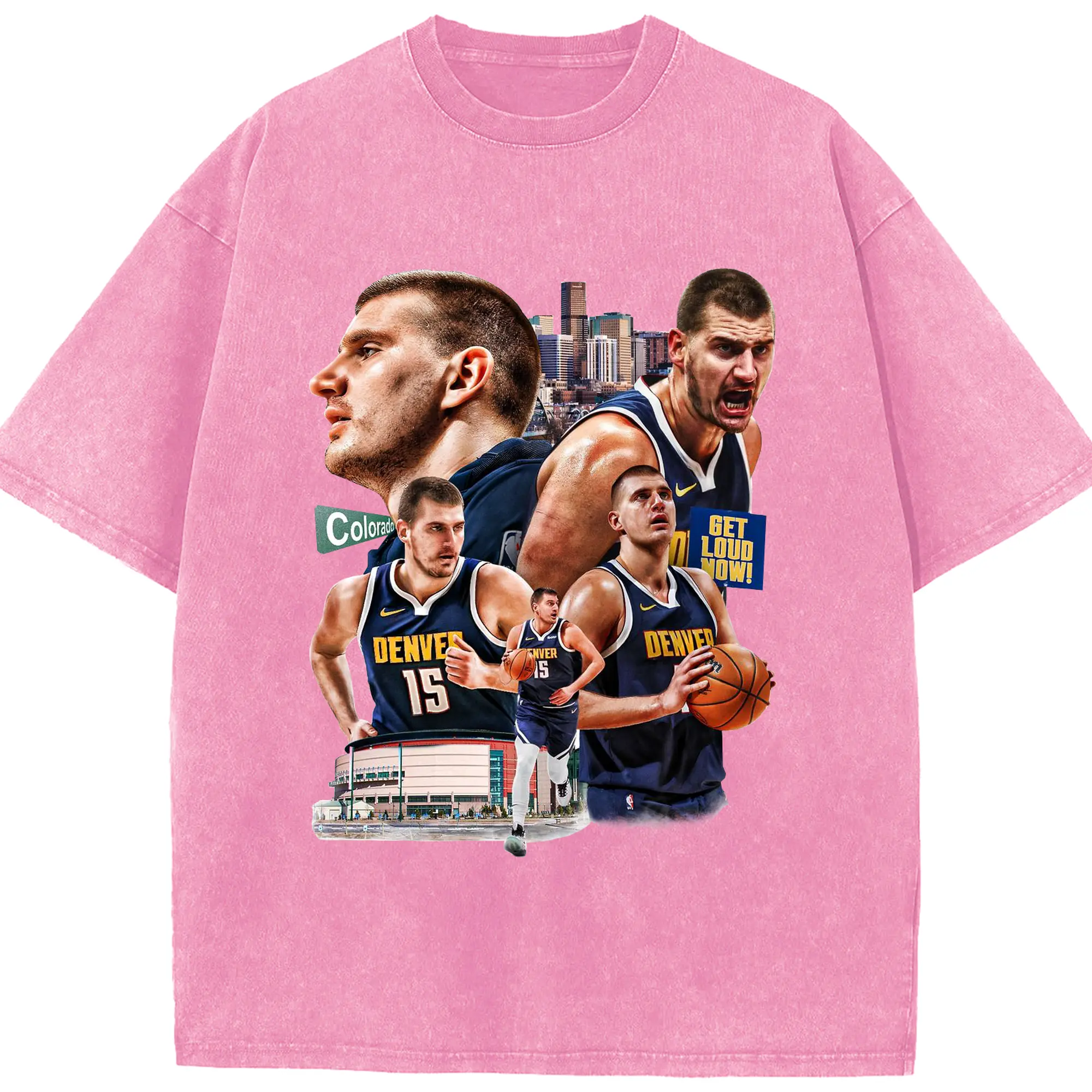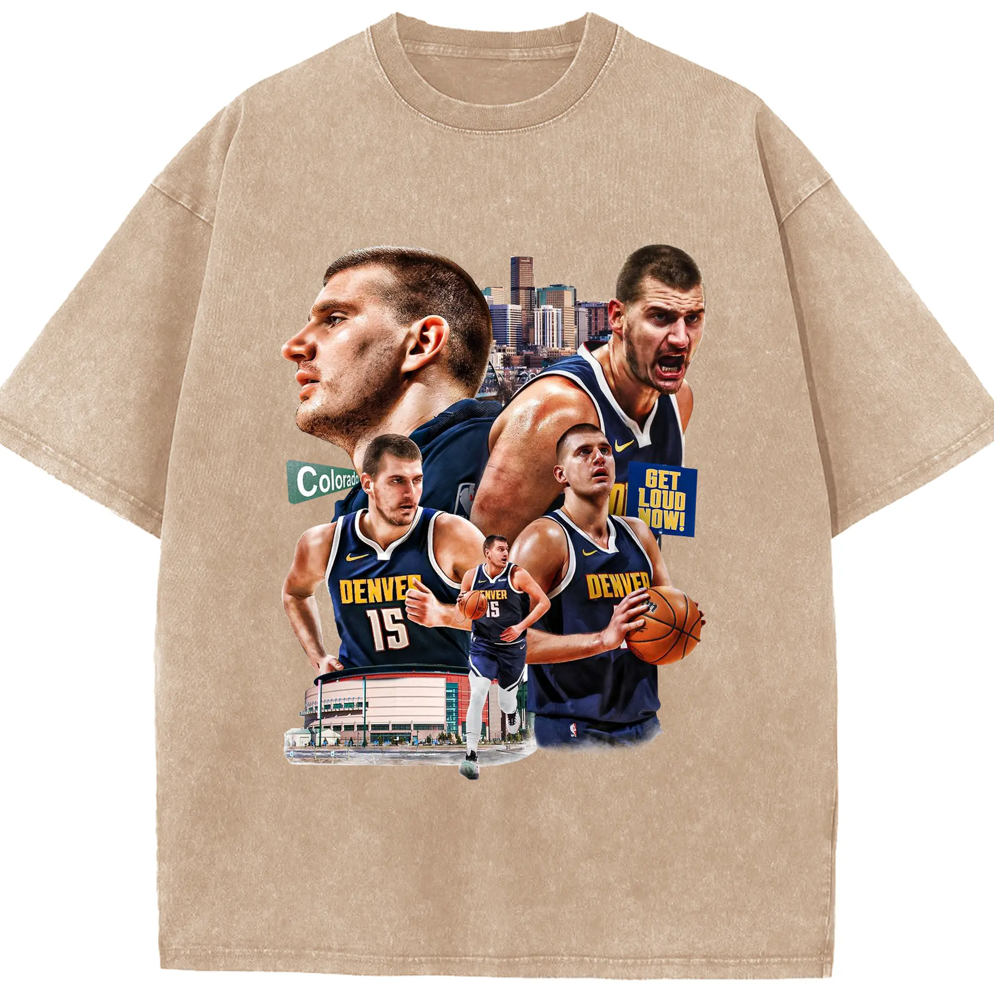Nikola Jokić Downtown Denver Backdrop Energy Shirt - Washed Vintage Look 230g Cotton Oversized T-Shirt With Front Heat Transfer Print – Soft, Lightweight, Stylish Fit – Comfortable Casual Wear For Sports & Everyday Use
