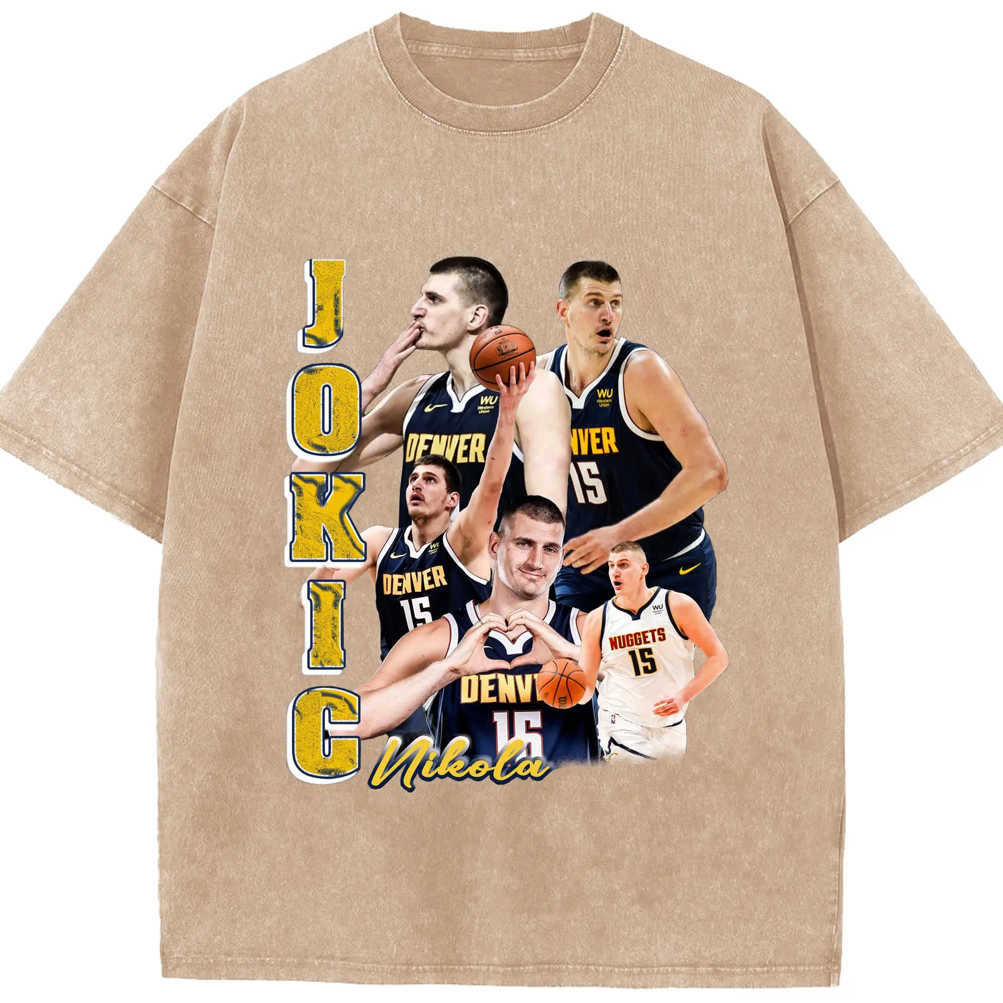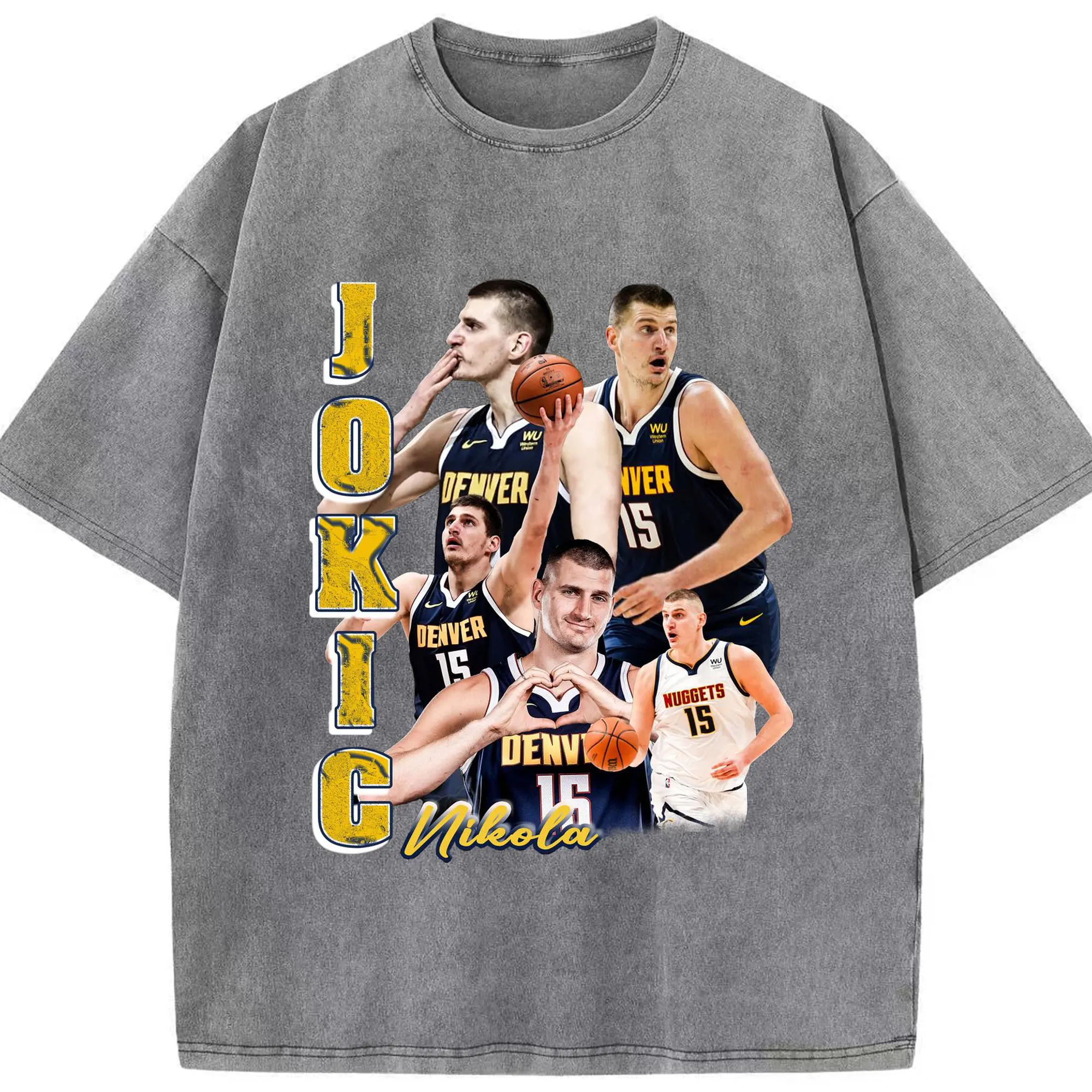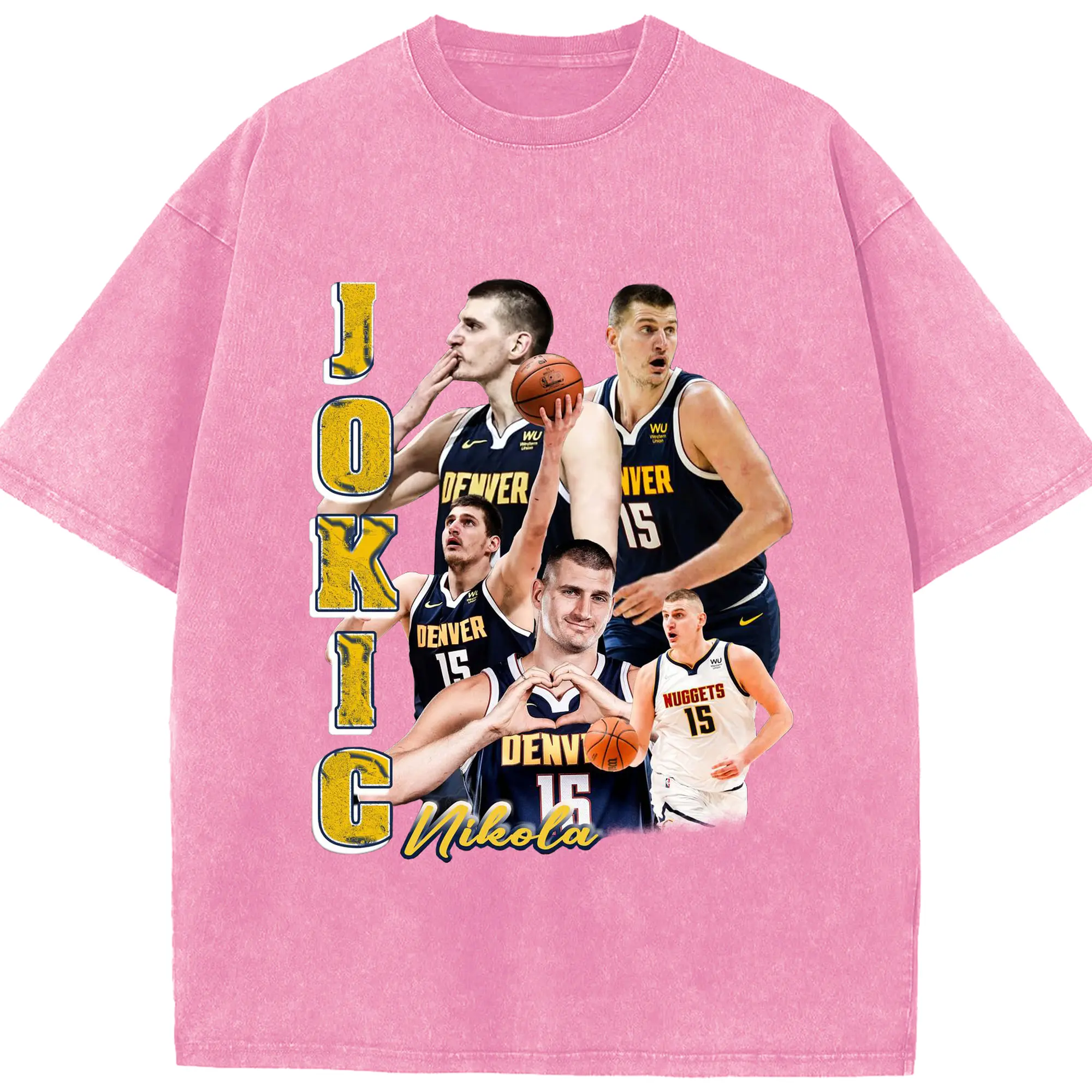 Nikola Jokić “Heart Hands” Tribute Shirt - Washed Vintage Look 230g Cotton Oversized T-Shirt With Front Heat Transfer Print – Soft, Lightweight, Stylish Fit – Comfortable Casual Wear For Sports & Everyday Use