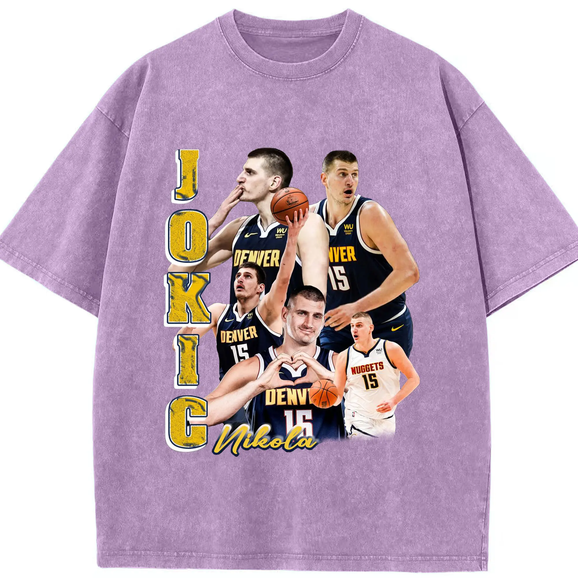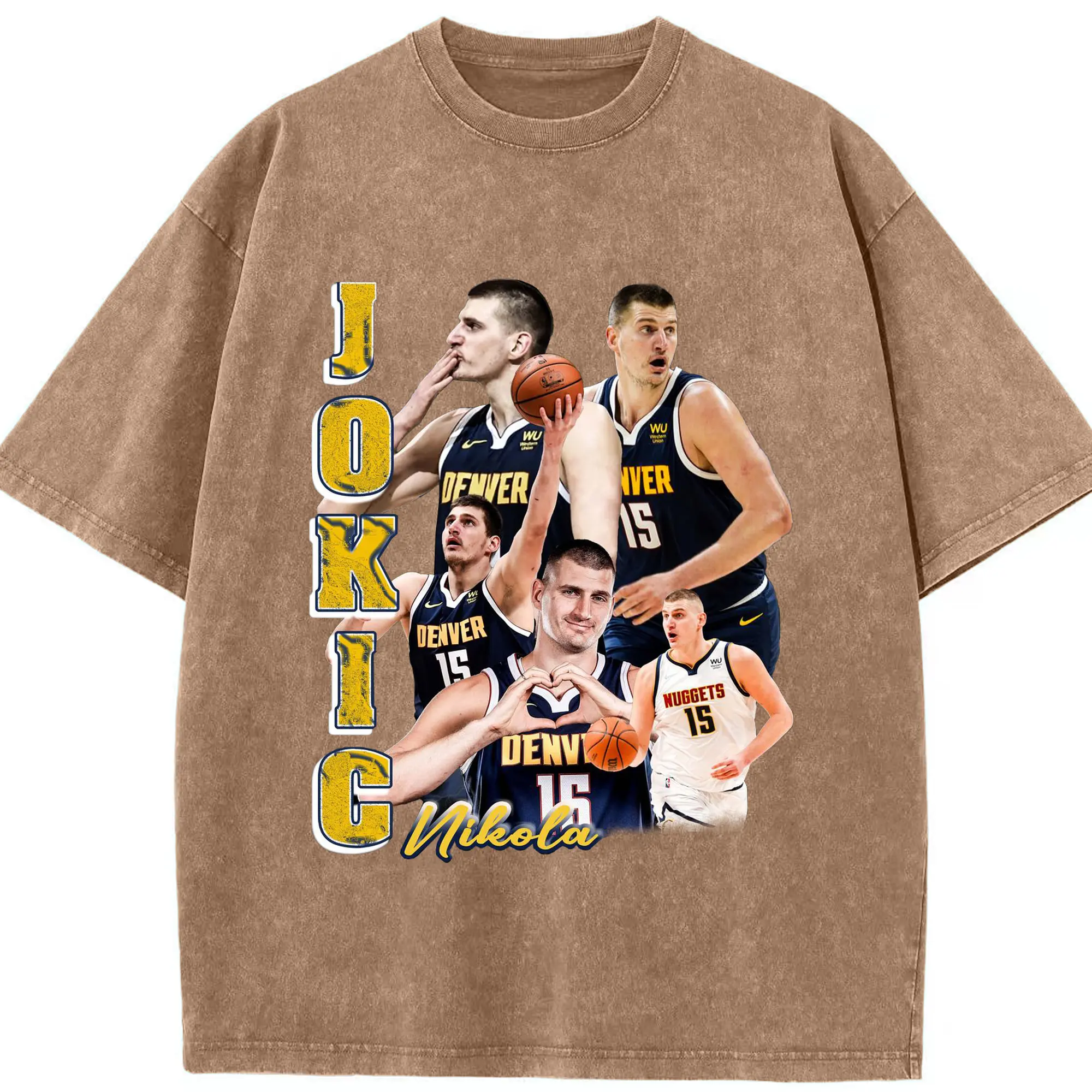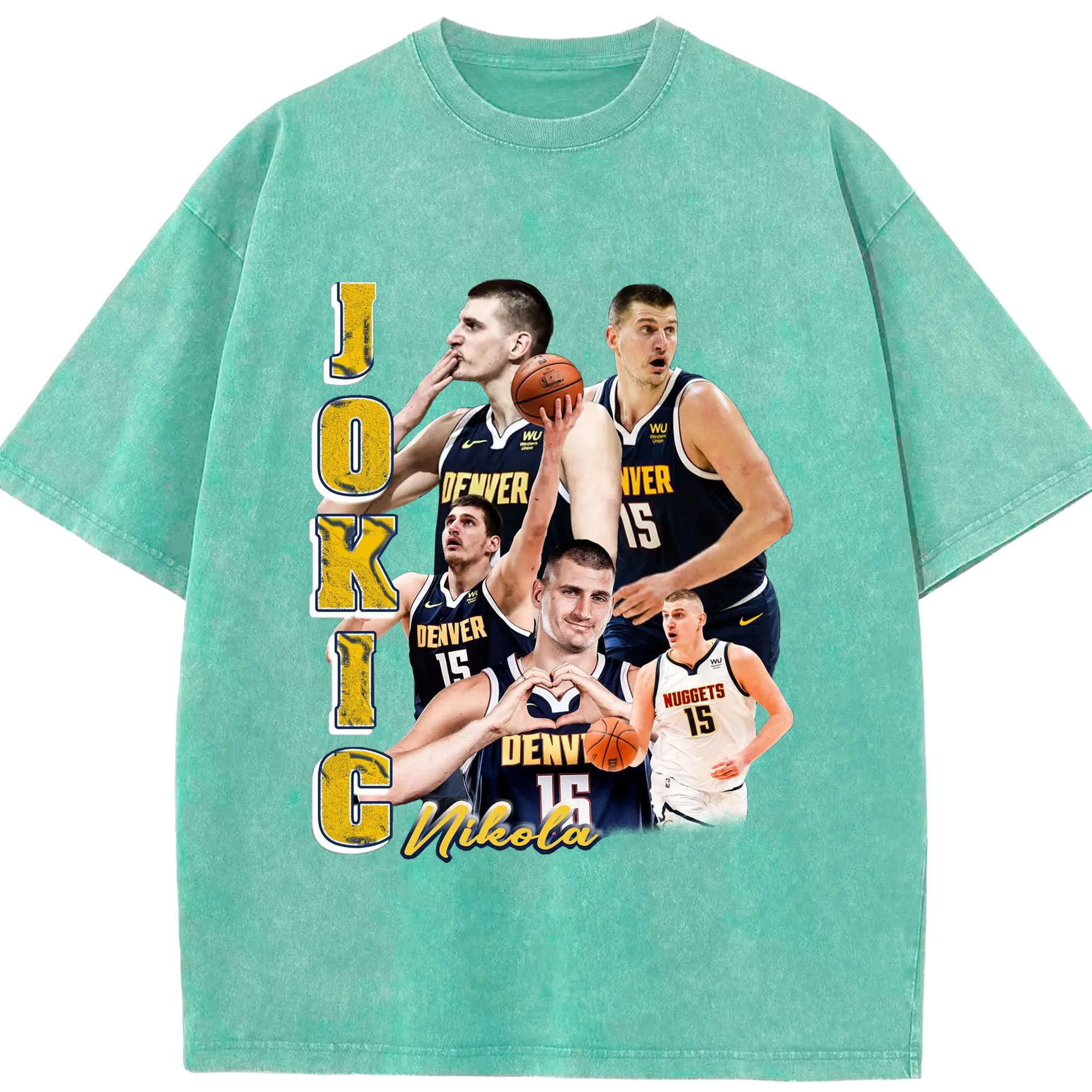 Nikola Jokić “Heart Hands” Tribute Shirt - Washed Vintage Look 230g Cotton Oversized T-Shirt With Front Heat Transfer Print – Soft, Lightweight, Stylish Fit – Comfortable Casual Wear For Sports & Everyday Use