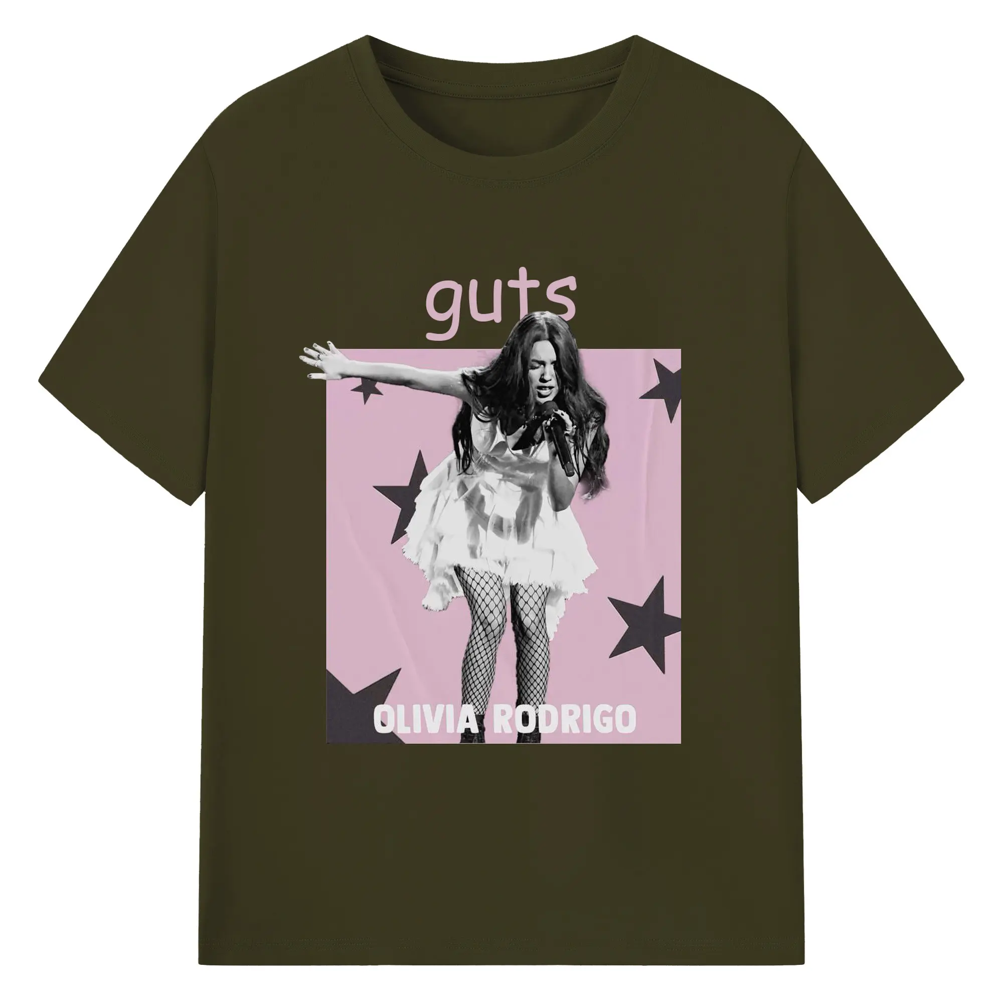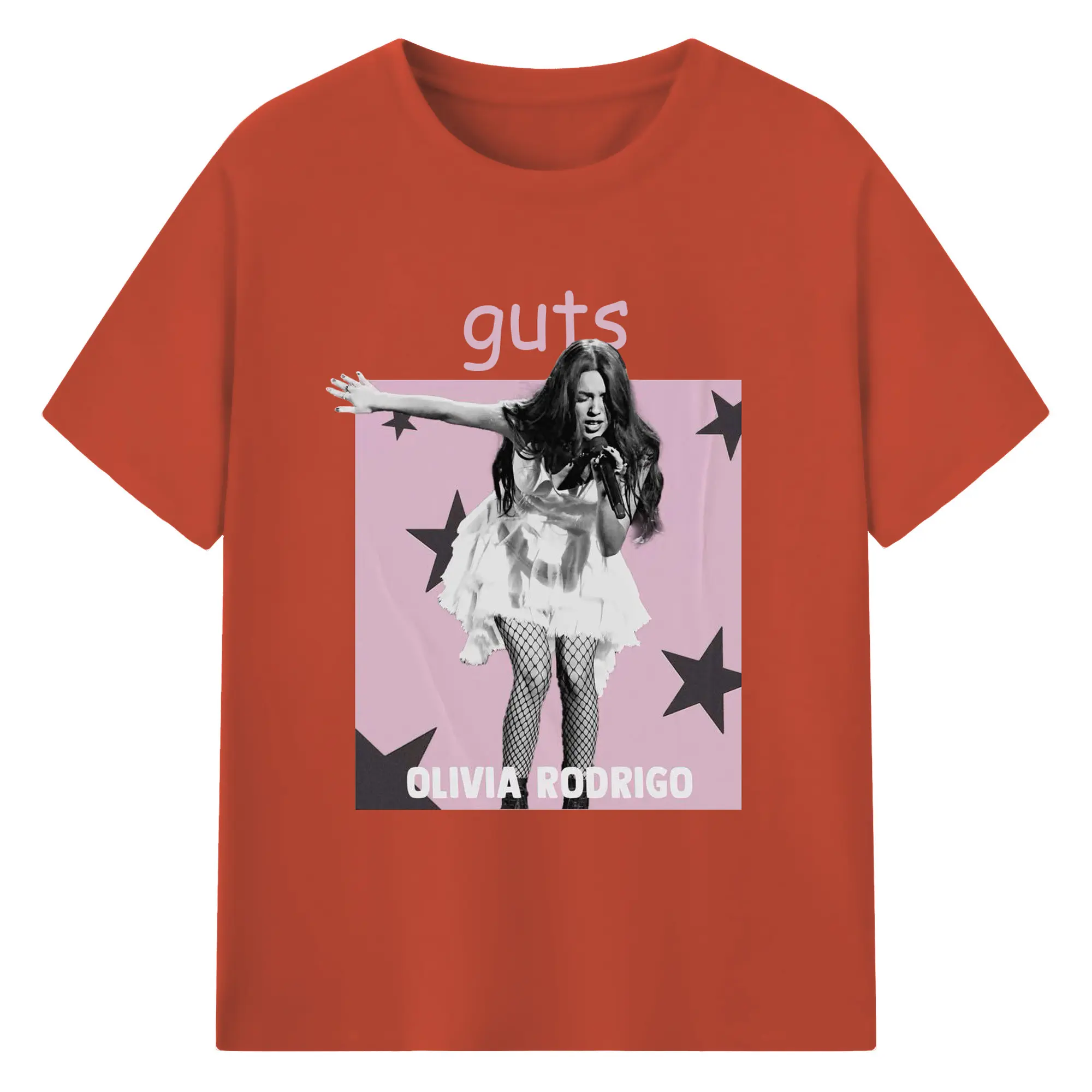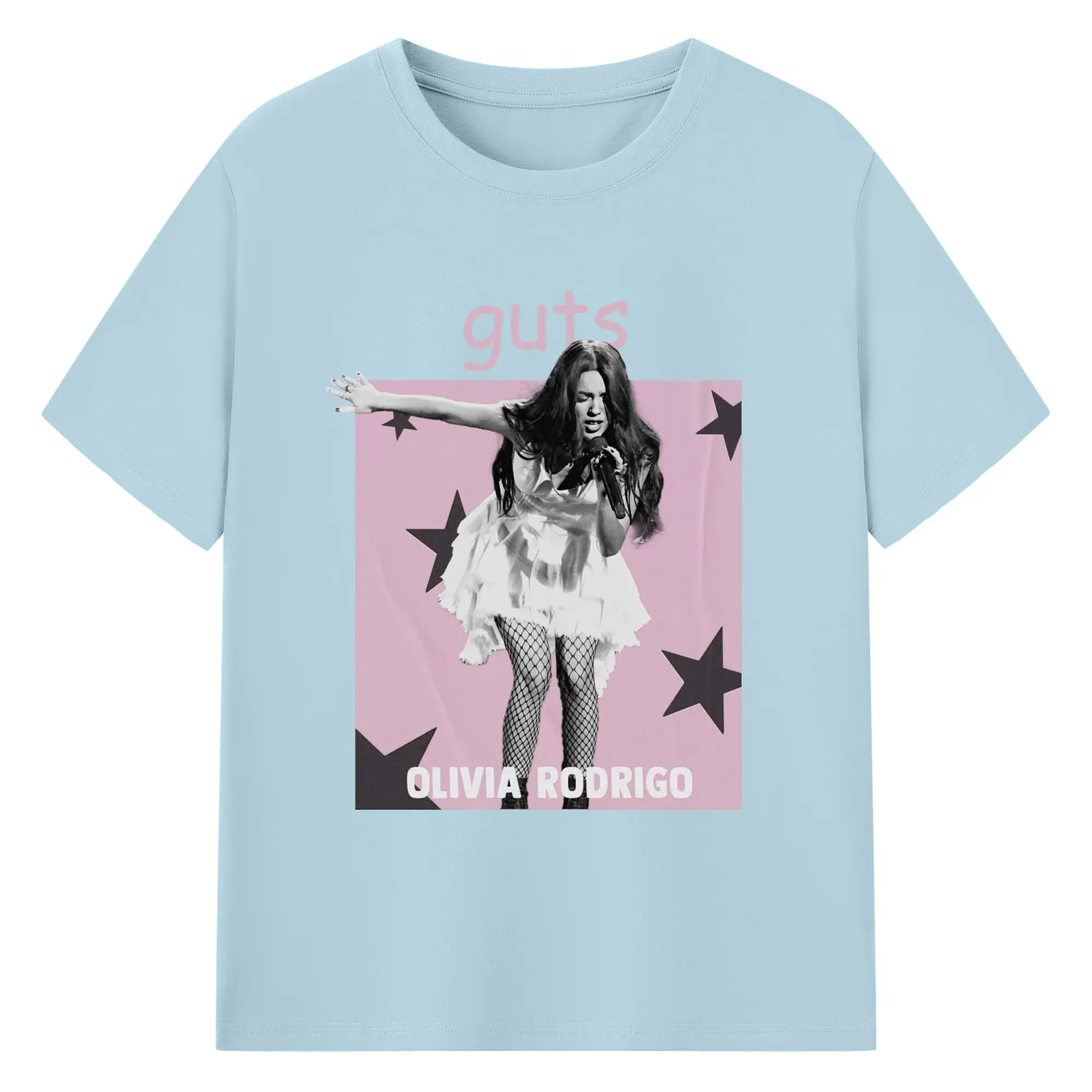 Olivia Rodrigo Guts Album DIY - 180g Cotton T-Shirt With Front Heat Transfer Print – Soft, Lightweight, Fitted Design – Comfortable Casual Wear For Sports & Everyday Use