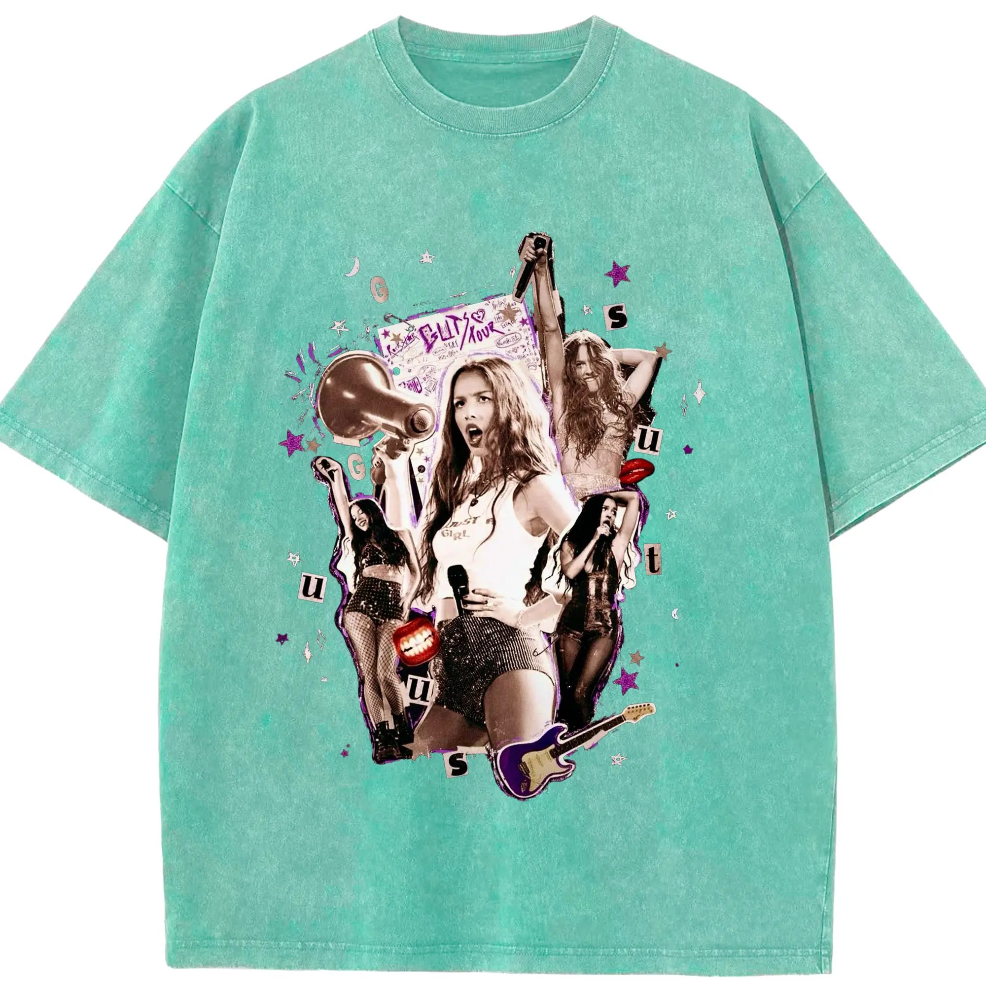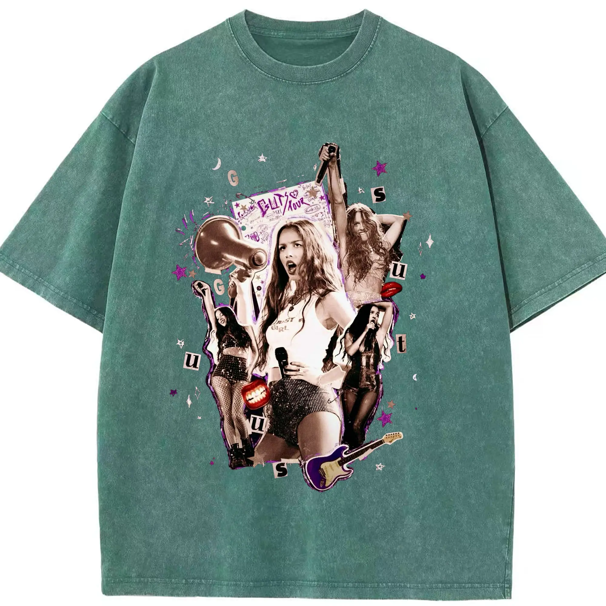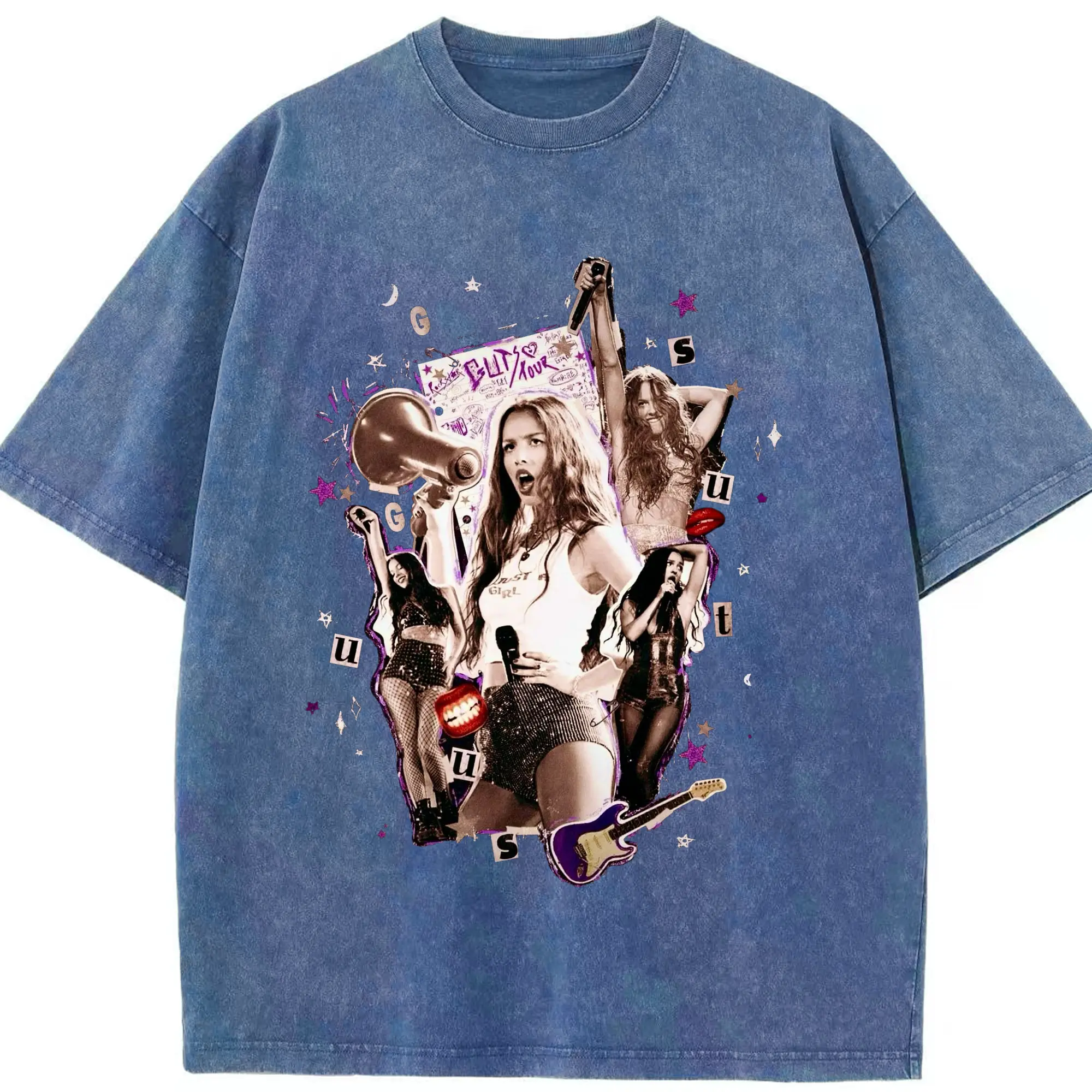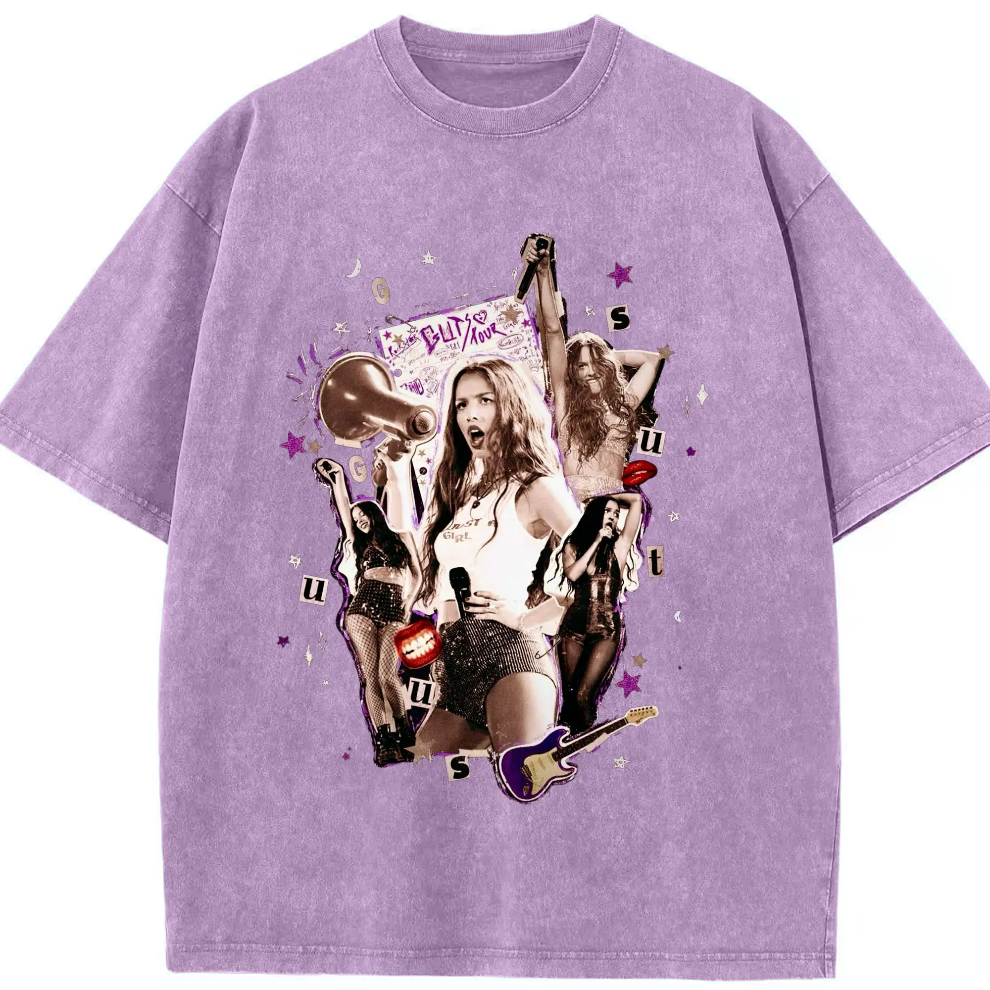 Olivia Rodrigo GUTS Tour Collage DIY - Washed Vintage Look 230g Cotton Oversized T-Shirt With Front Heat Transfer Print – Soft, Lightweight, Stylish Fit – Comfortable Casual Wear For Sports & Everyday Use