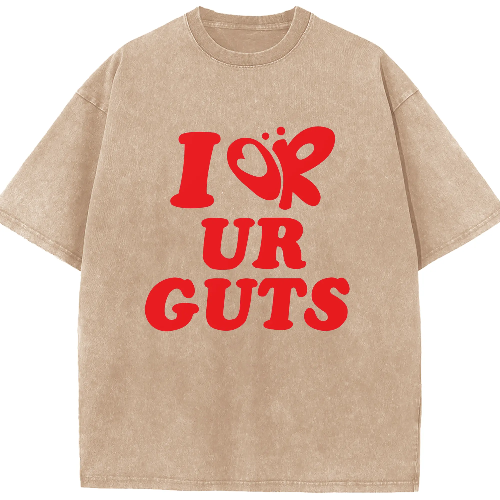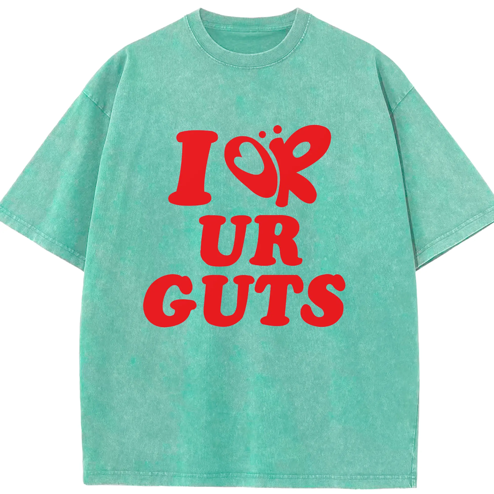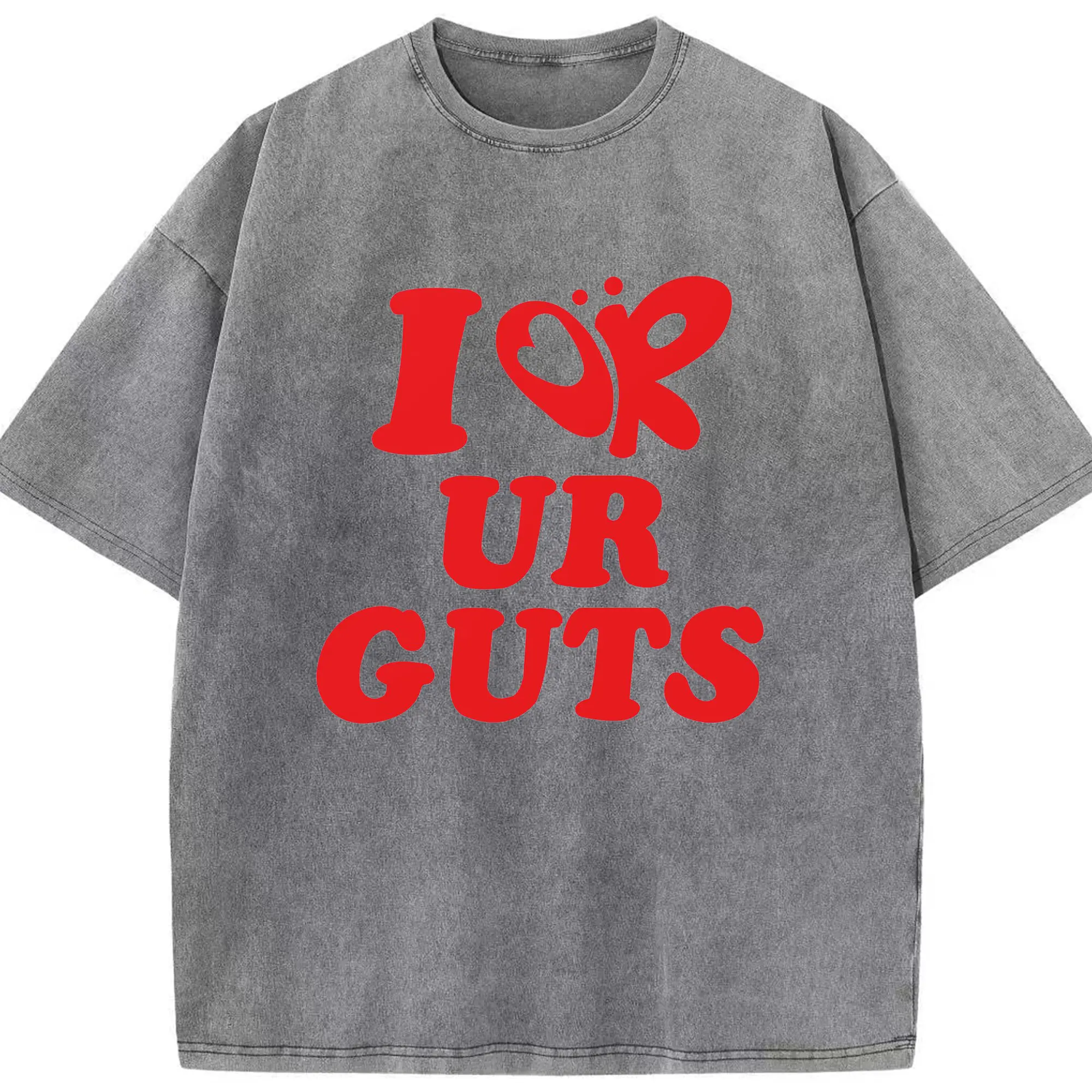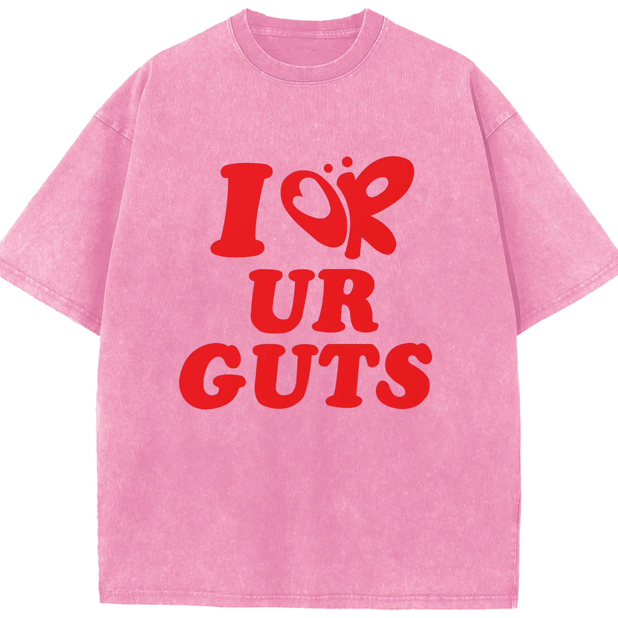 Olivia Rodrigo “I ❤️ UR GUTS” DIY - Washed Vintage Look 230g Cotton Oversized T-Shirt With Front Heat Transfer Print – Soft, Lightweight, Stylish Fit – Comfortable Casual Wear For Sports & Everyday Use