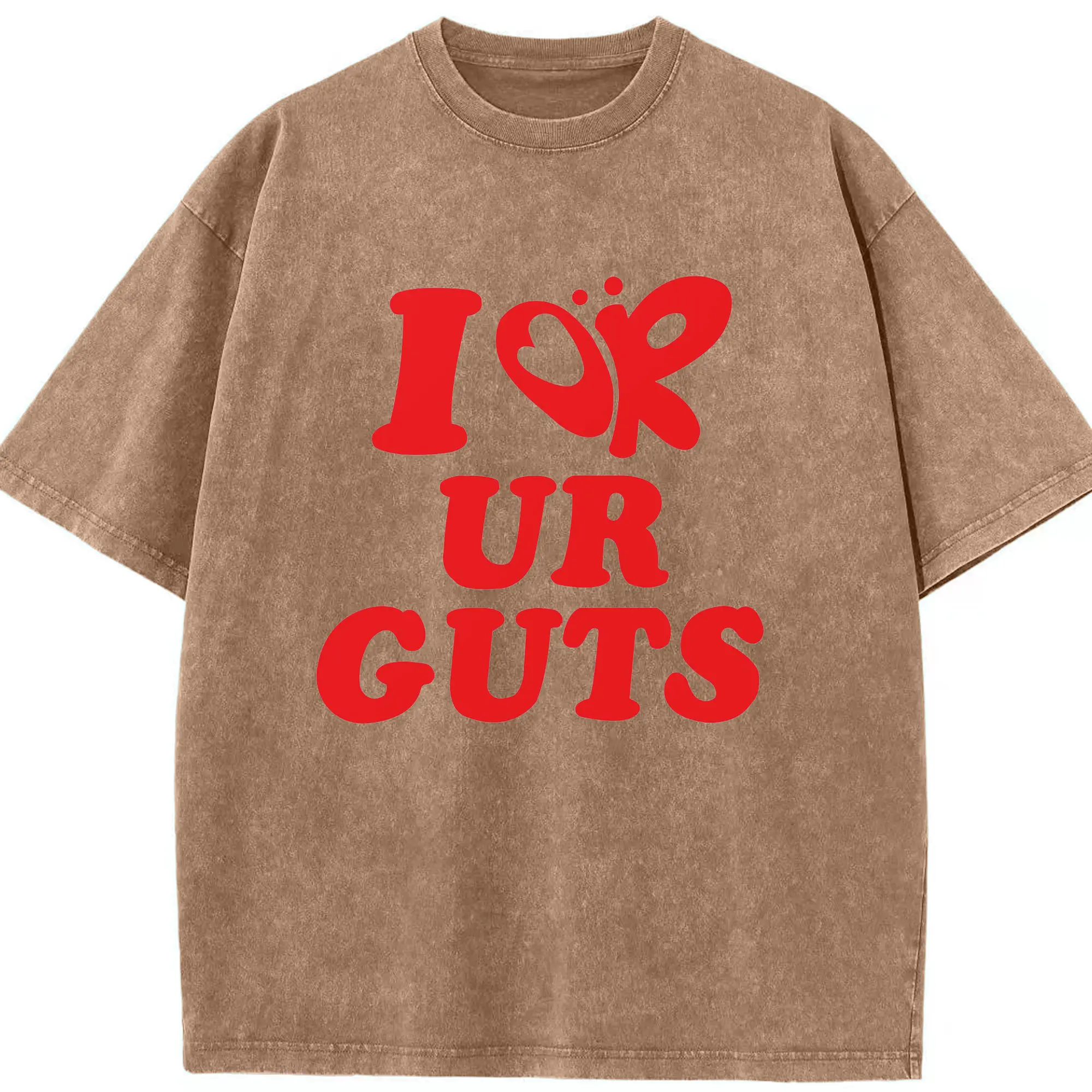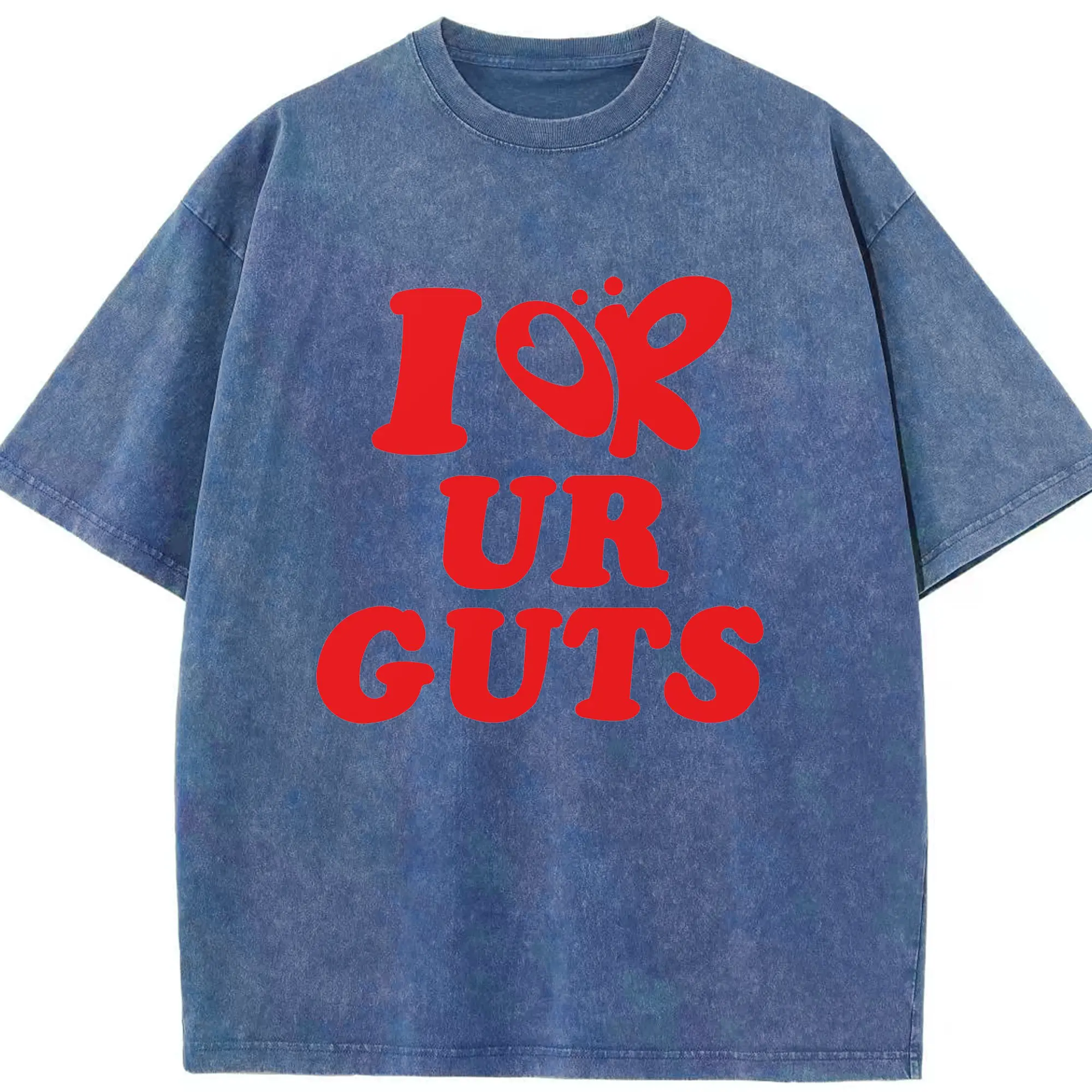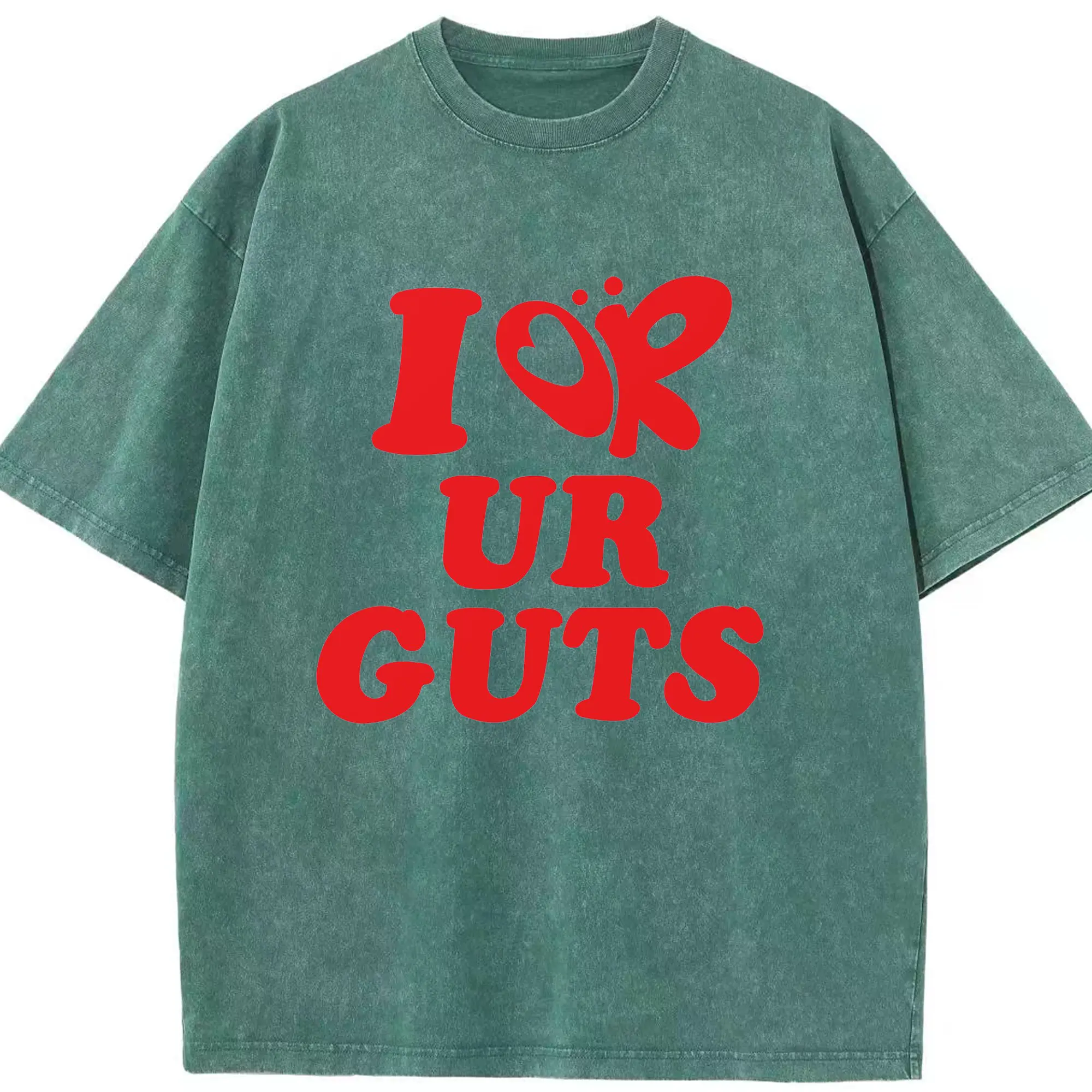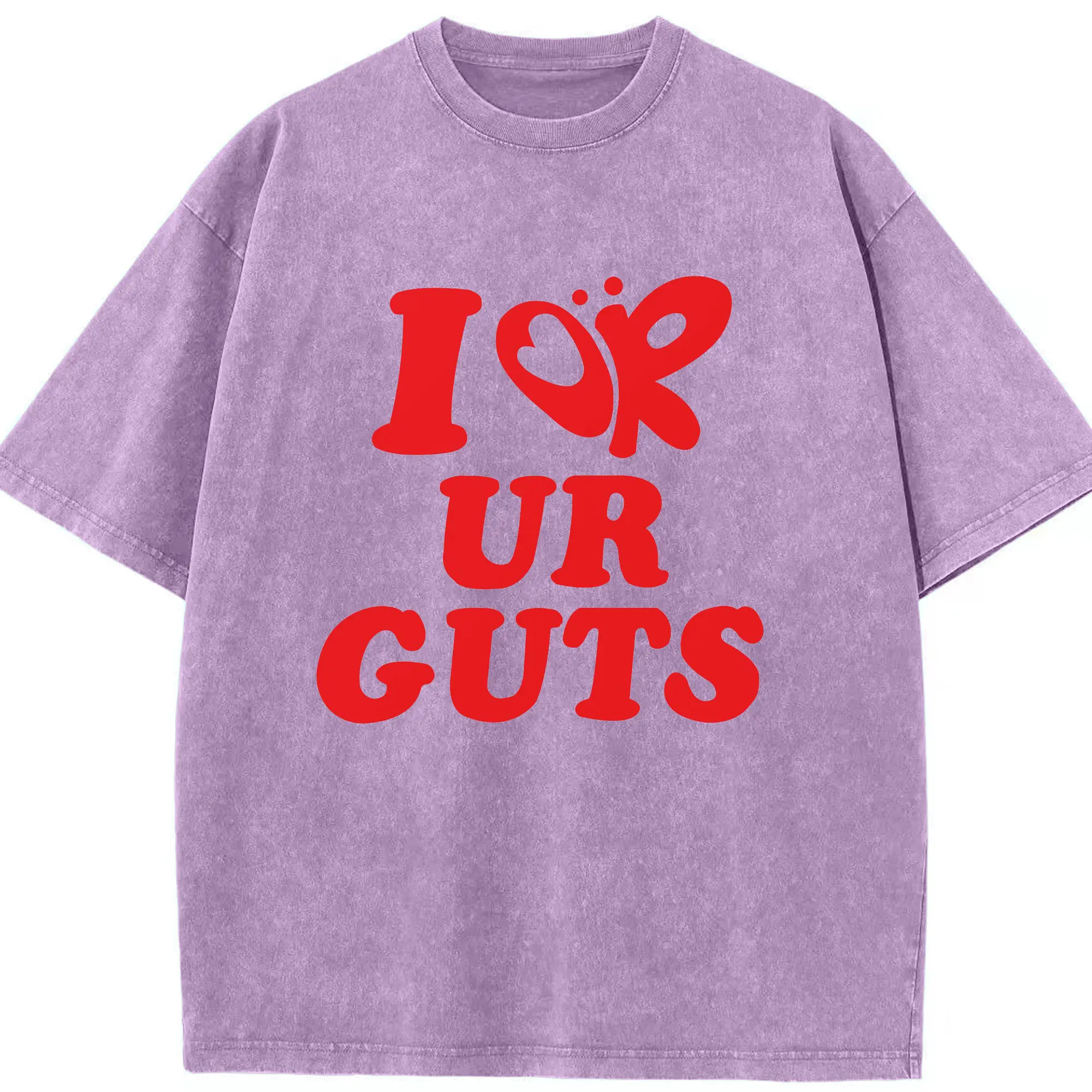 Olivia Rodrigo “I ❤️ UR GUTS” DIY - Washed Vintage Look 230g Cotton Oversized T-Shirt With Front Heat Transfer Print – Soft, Lightweight, Stylish Fit – Comfortable Casual Wear For Sports & Everyday Use