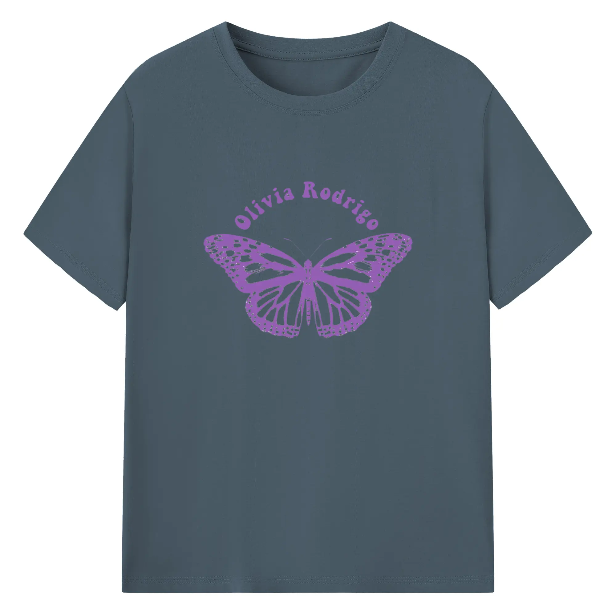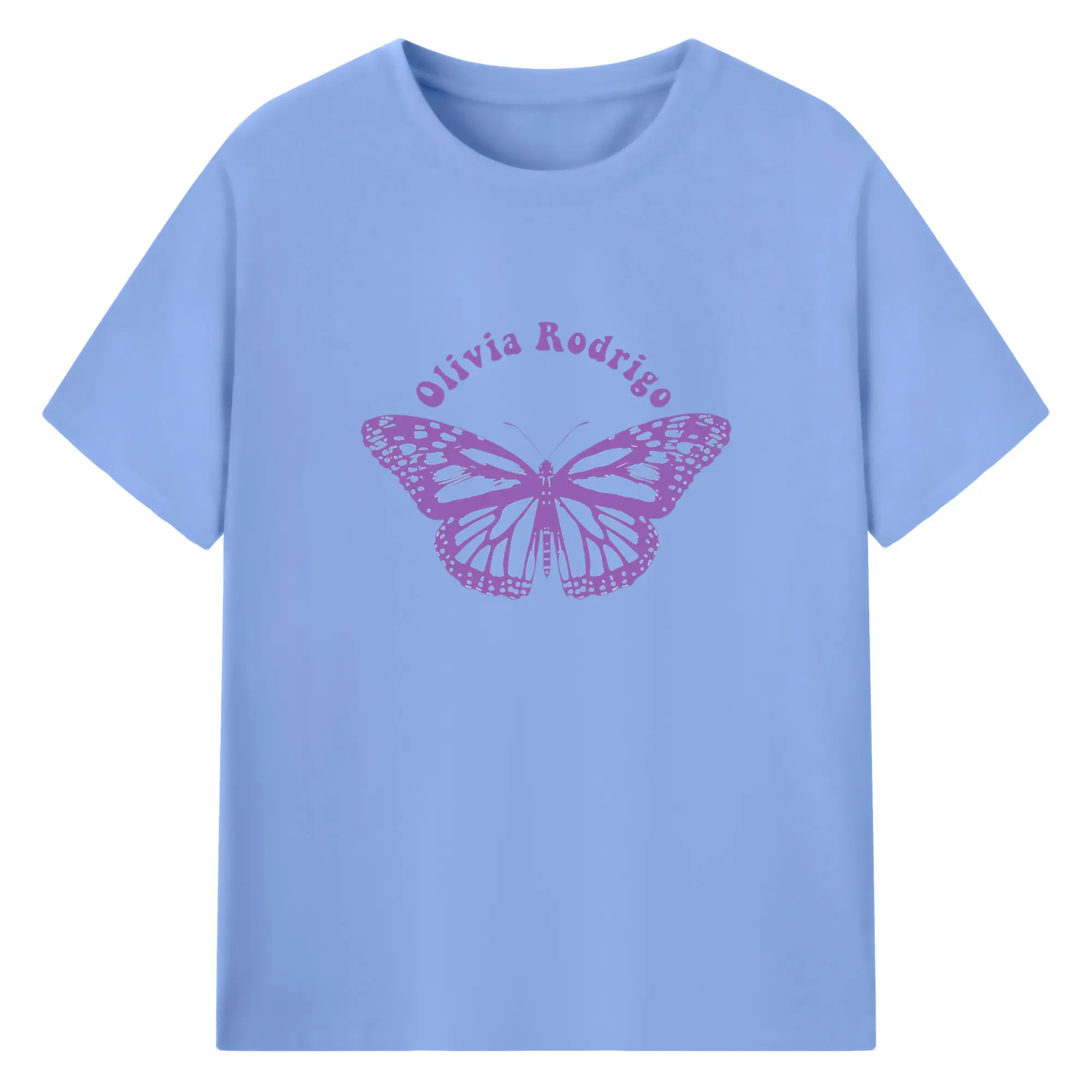 Olivia Rodrigo Purple Butterfly DIY - 180g Cotton T-Shirt With Front Heat Transfer Print – Soft, Lightweight, Fitted Design – Comfortable Casual Wear For Sports & Everyday Use