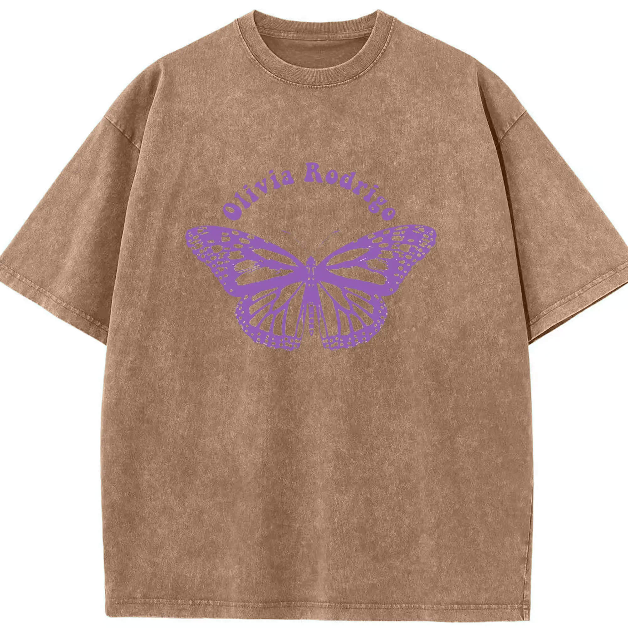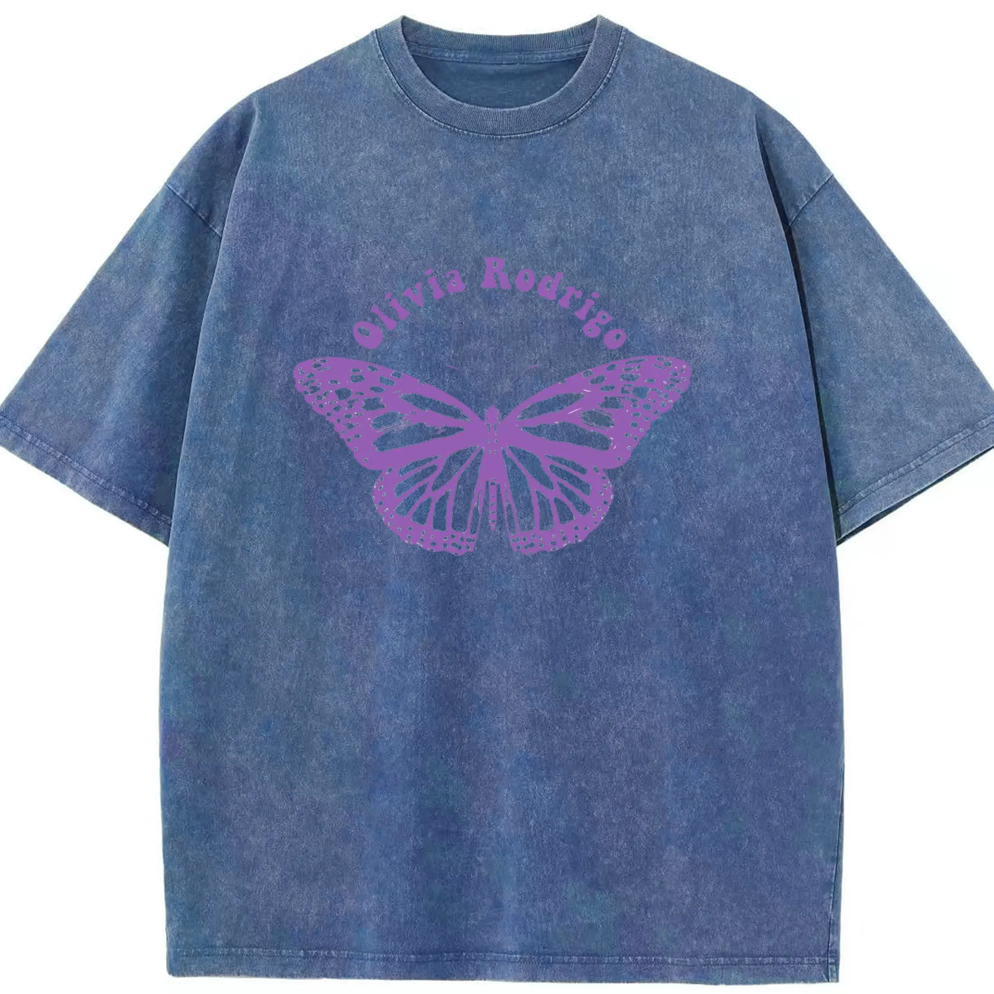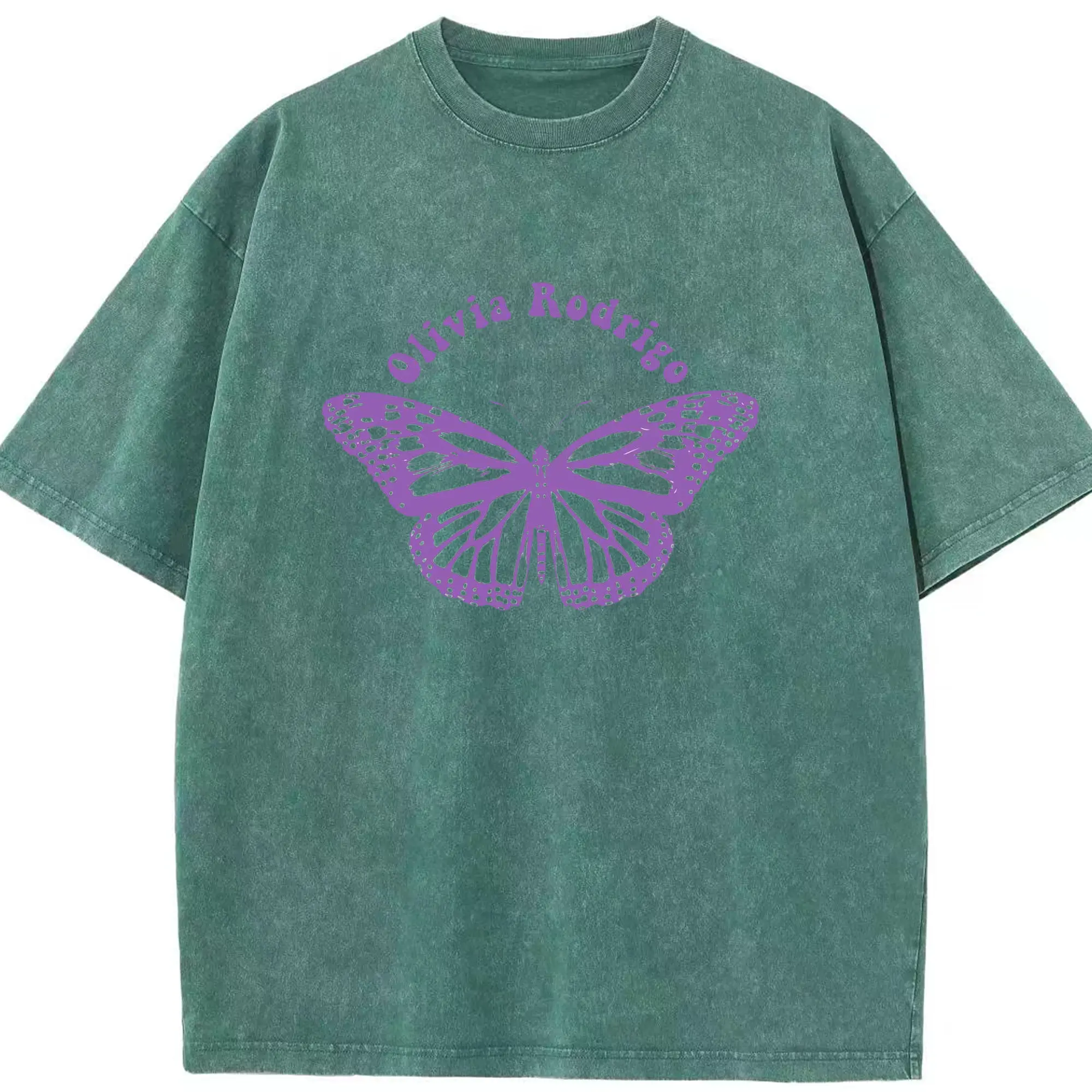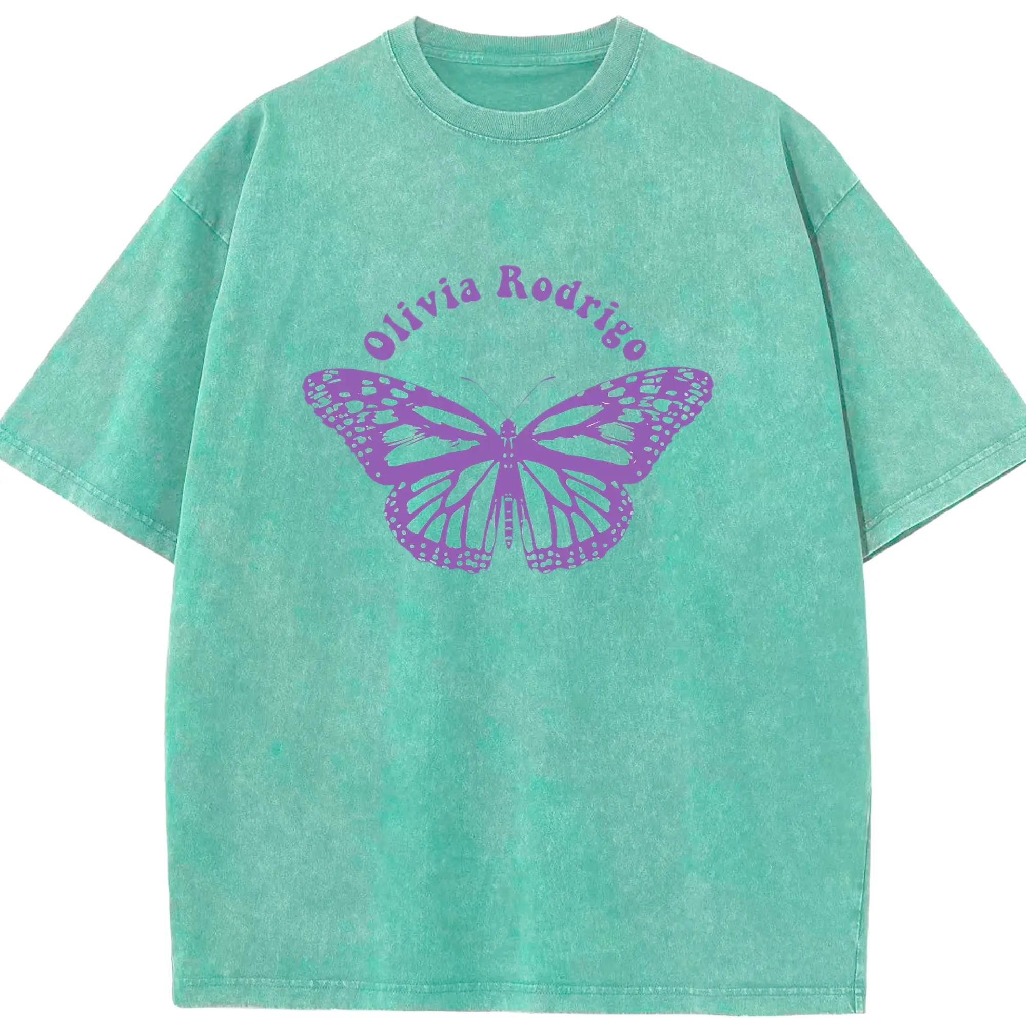 Olivia Rodrigo Purple Butterfly DIY - Washed Vintage Look 230g Cotton Oversized T-Shirt With Front Heat Transfer Print – Soft, Lightweight, Stylish Fit – Comfortable Casual Wear For Sports & Everyday Use