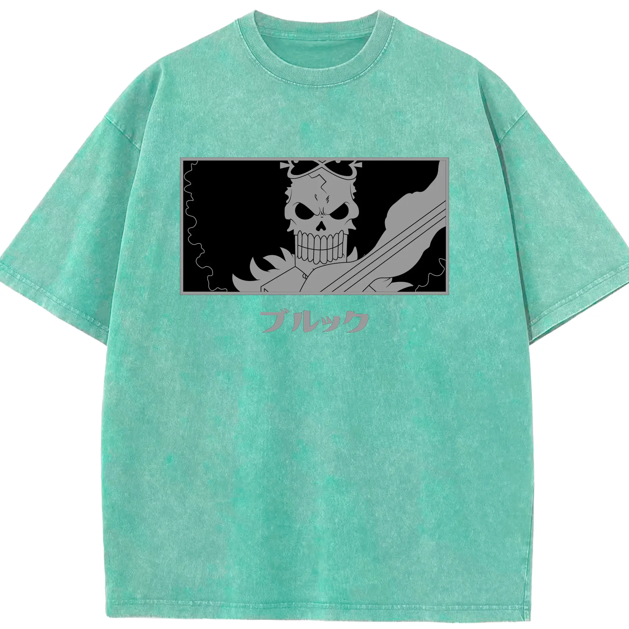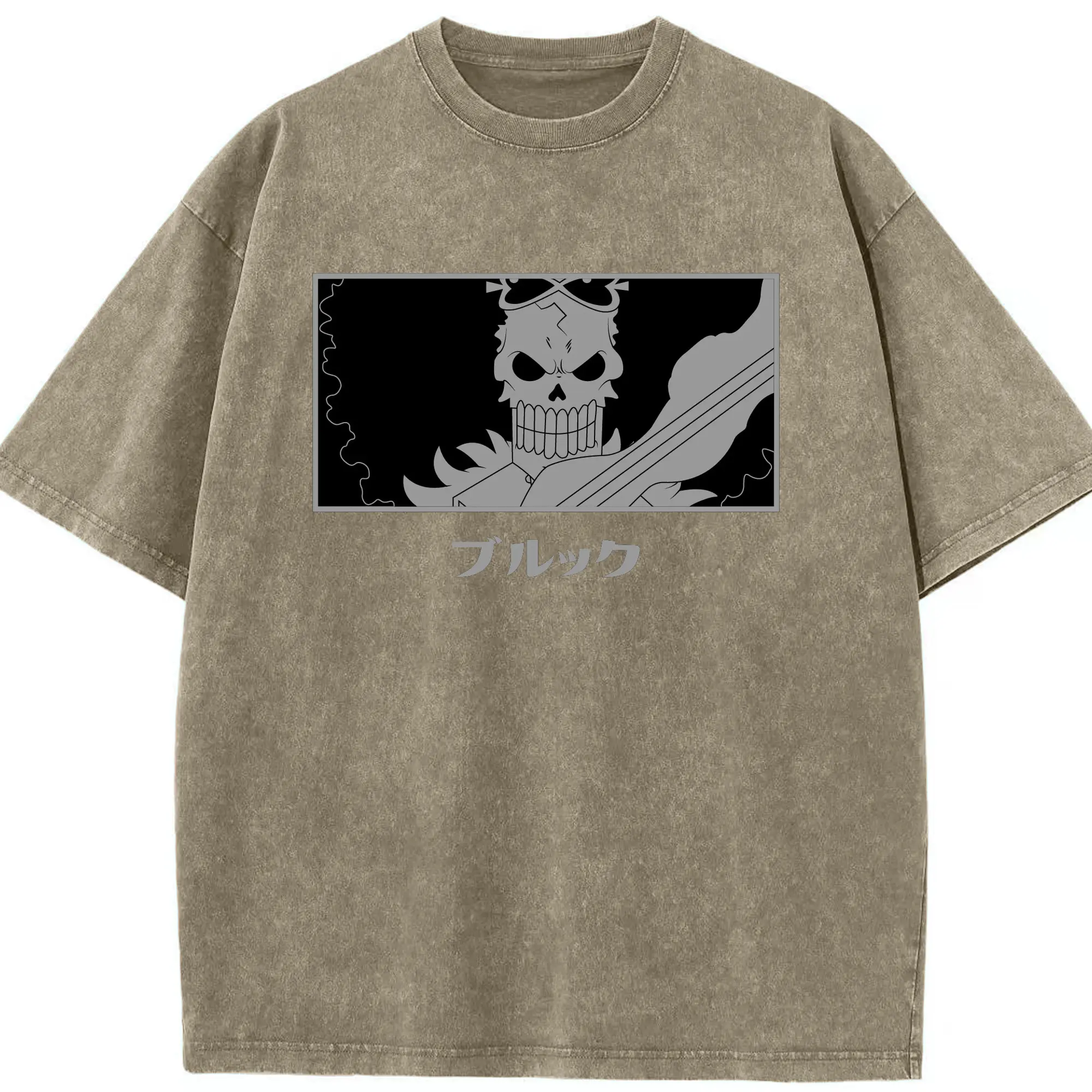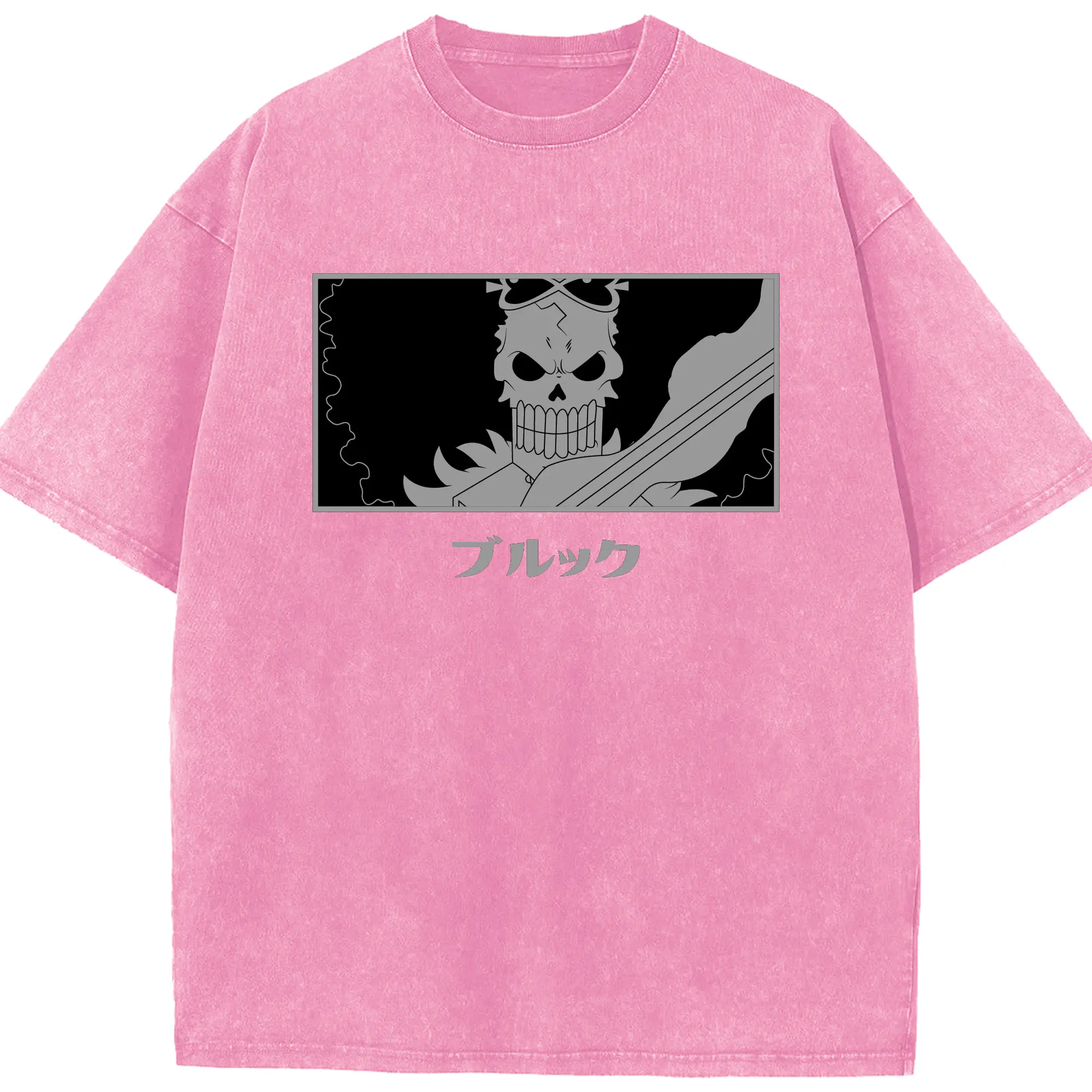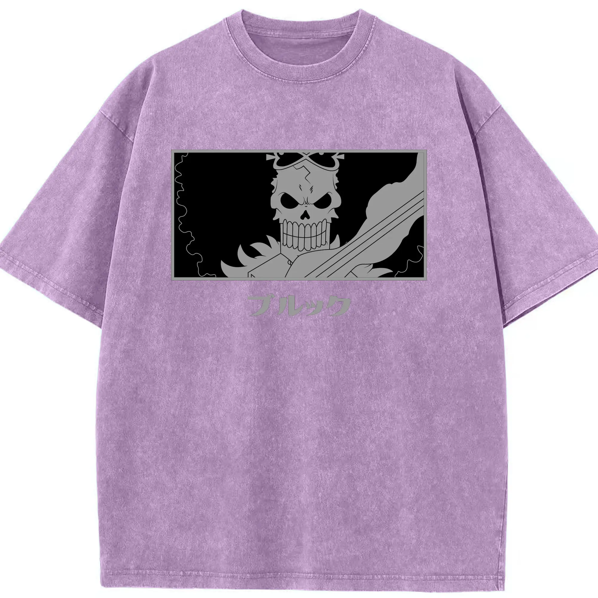 One Piece Brook Monochrome Skull Anime DIY Shirt - Washed Vintage Look 230g Cotton Oversized T-Shirt With Front Heat Transfer Print – Soft, Lightweight, Stylish Fit – Comfortable Casual Wear For Sports & Everyday Use