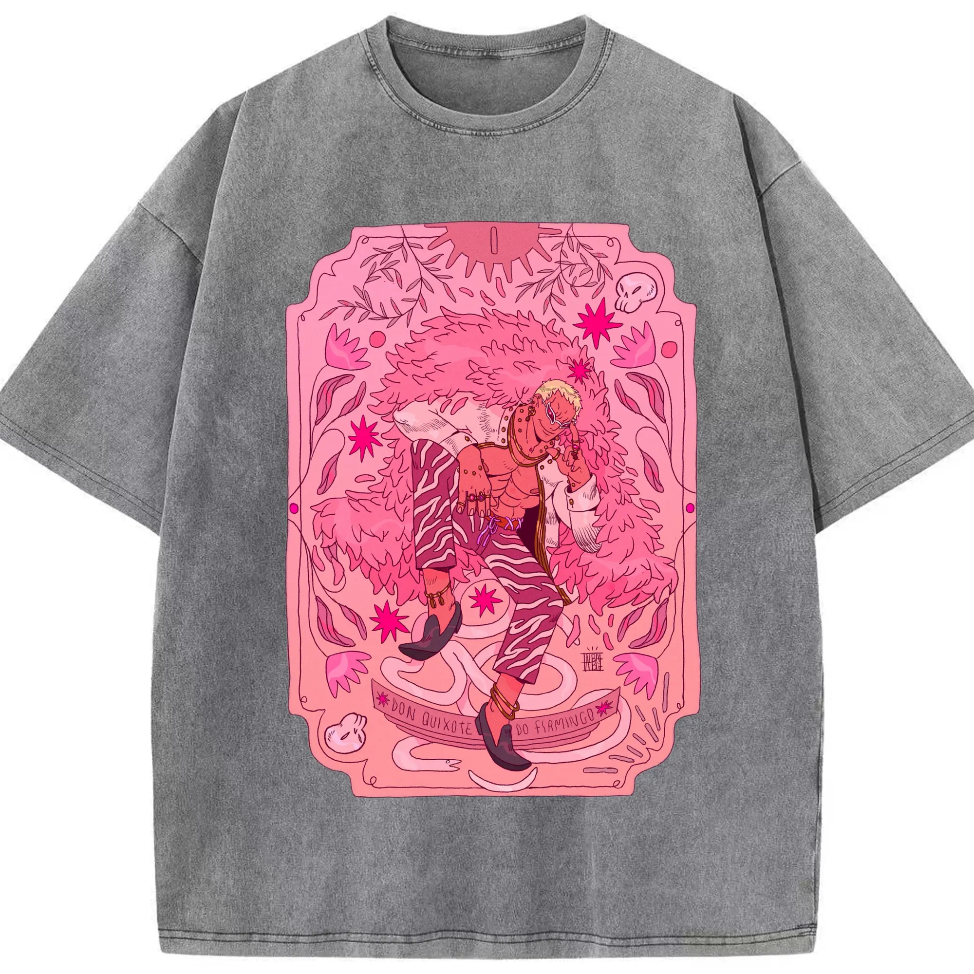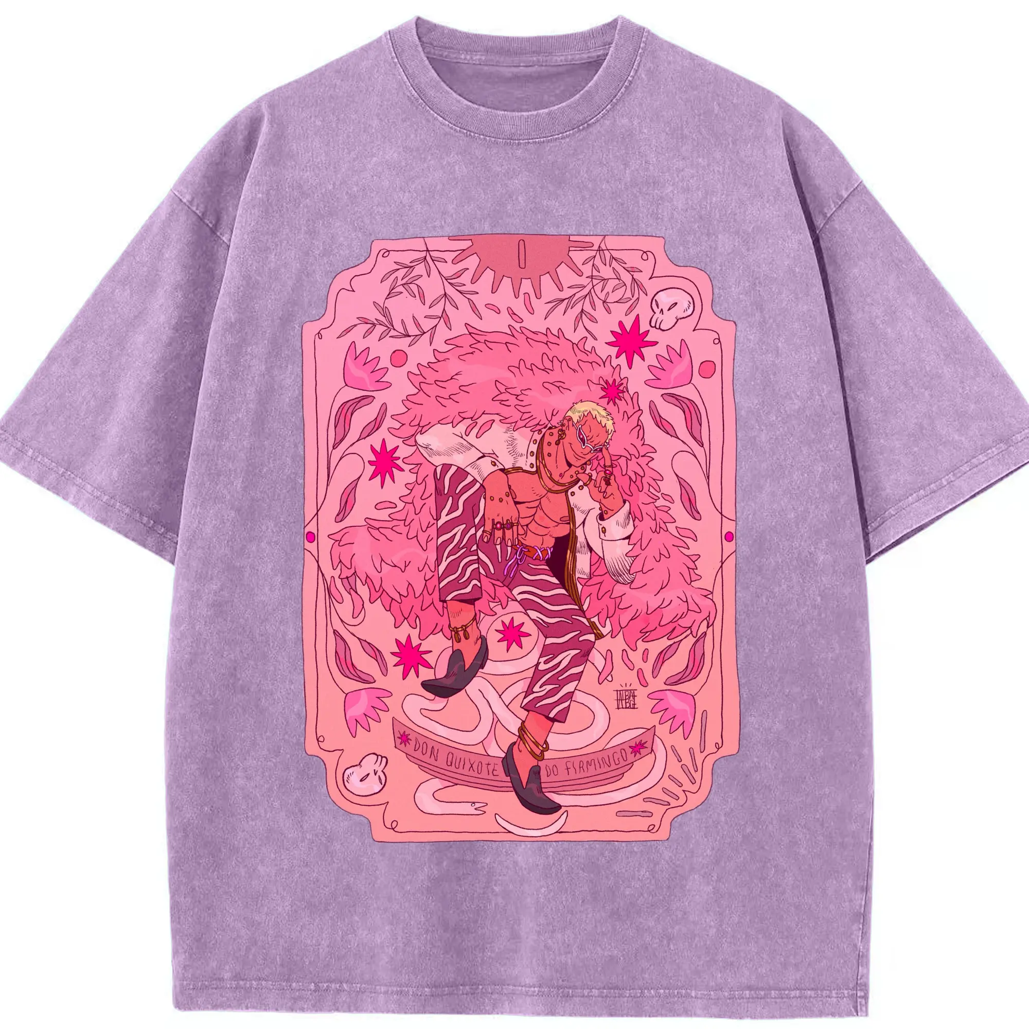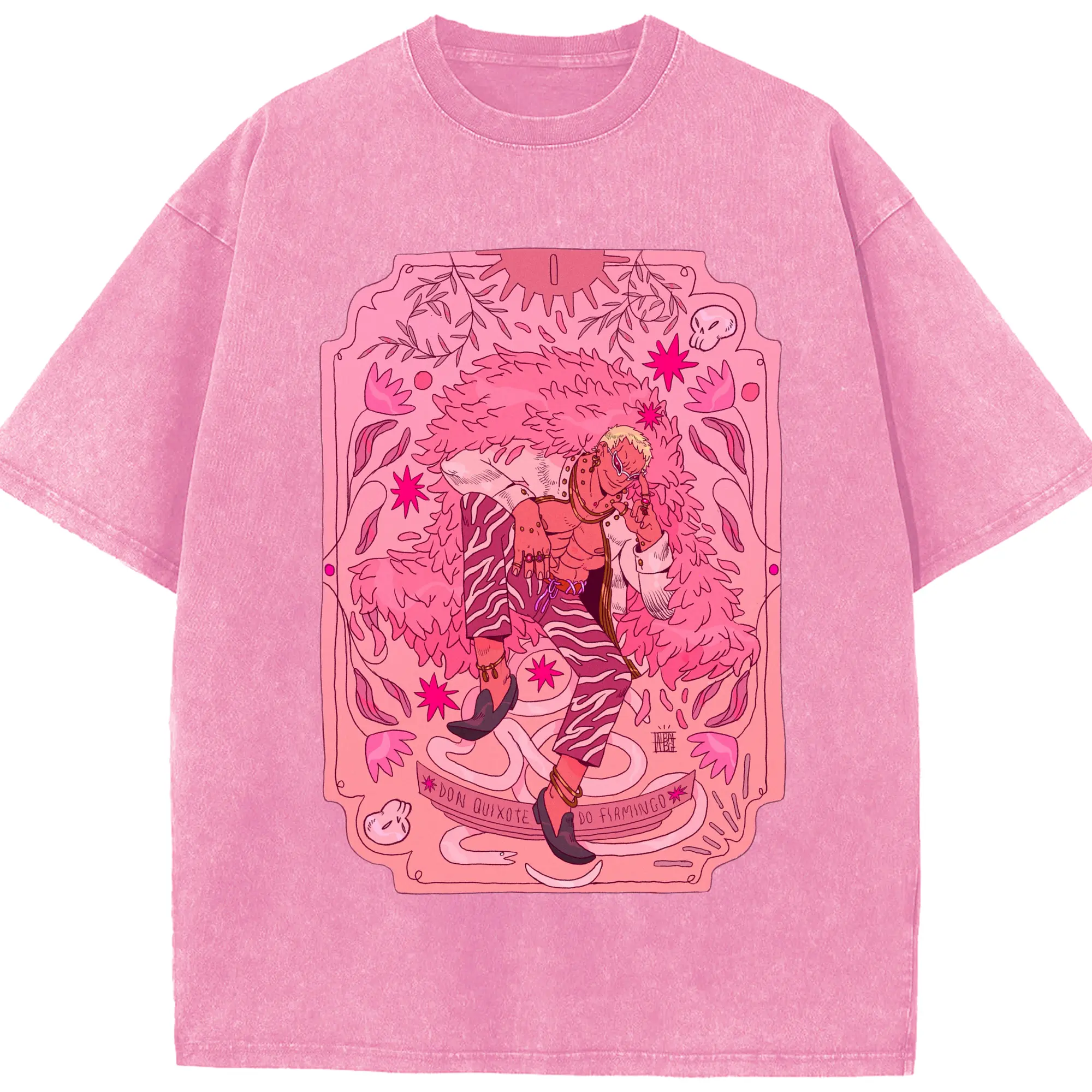 One Piece Donquixote Doflamingo Pink Art DIY Shirt - Washed Vintage Look 230g Cotton Oversized T-Shirt With Front Heat Transfer Print – Soft, Lightweight, Stylish Fit – Comfortable Casual Wear For Sports & Everyday Use