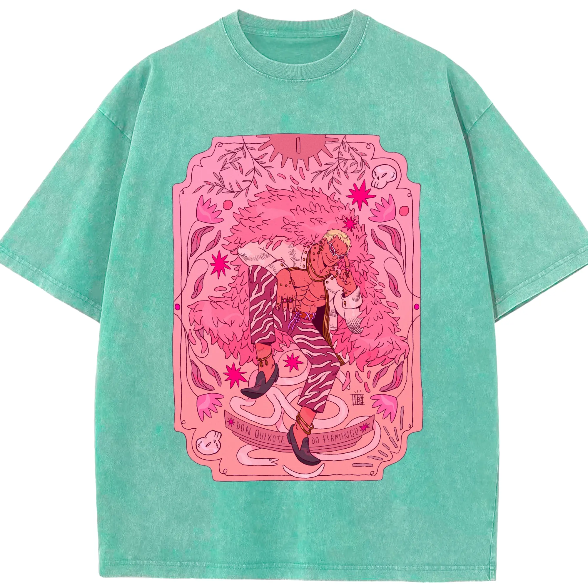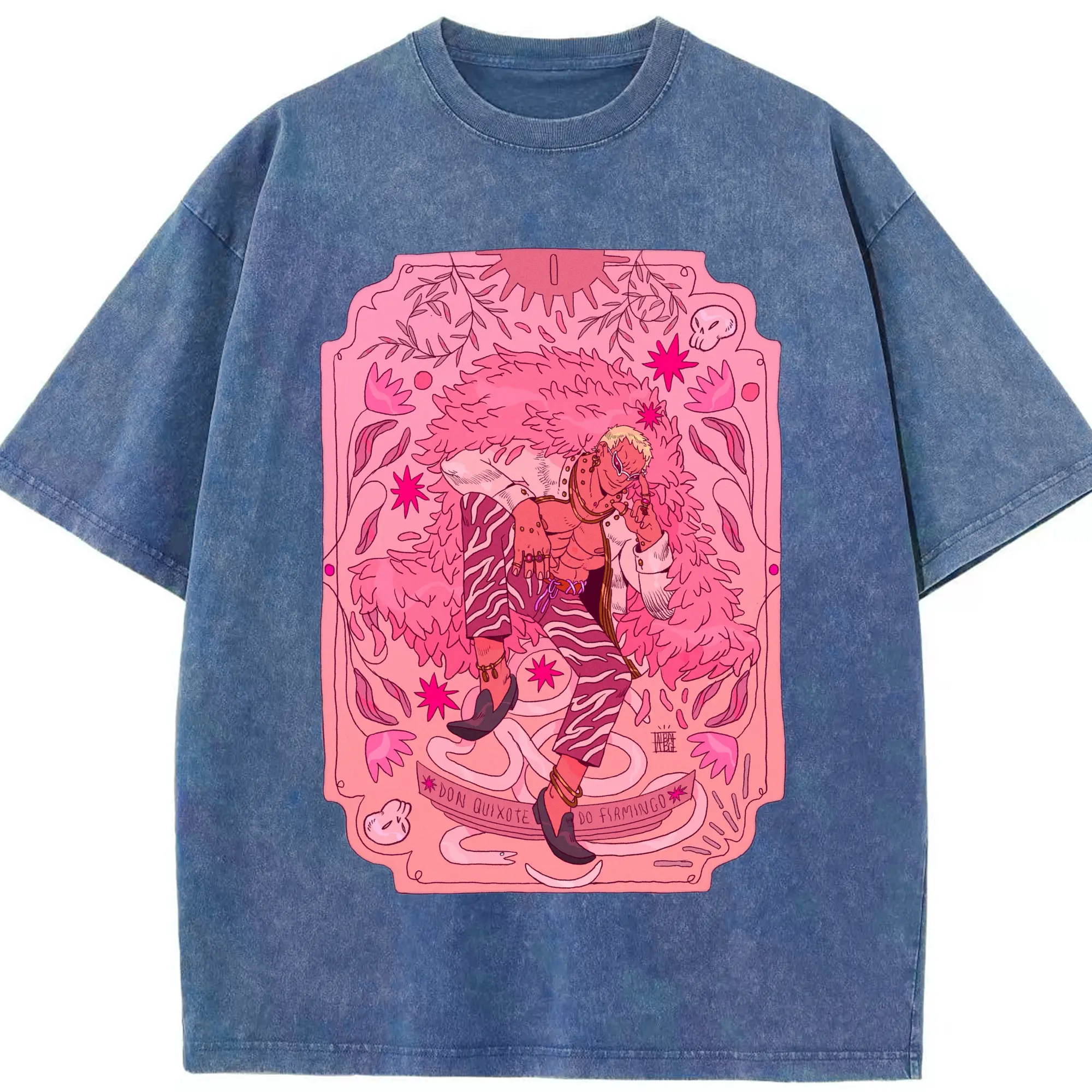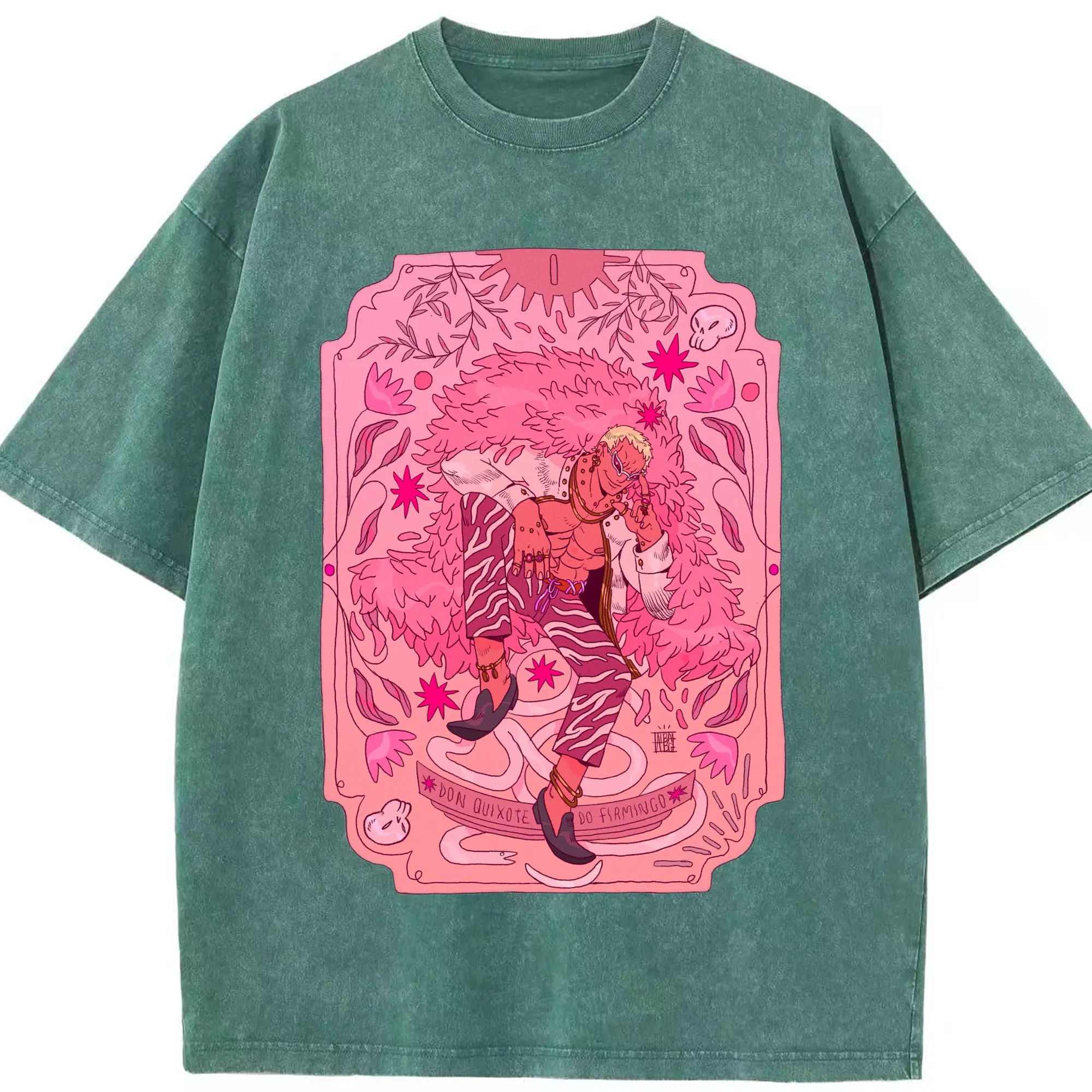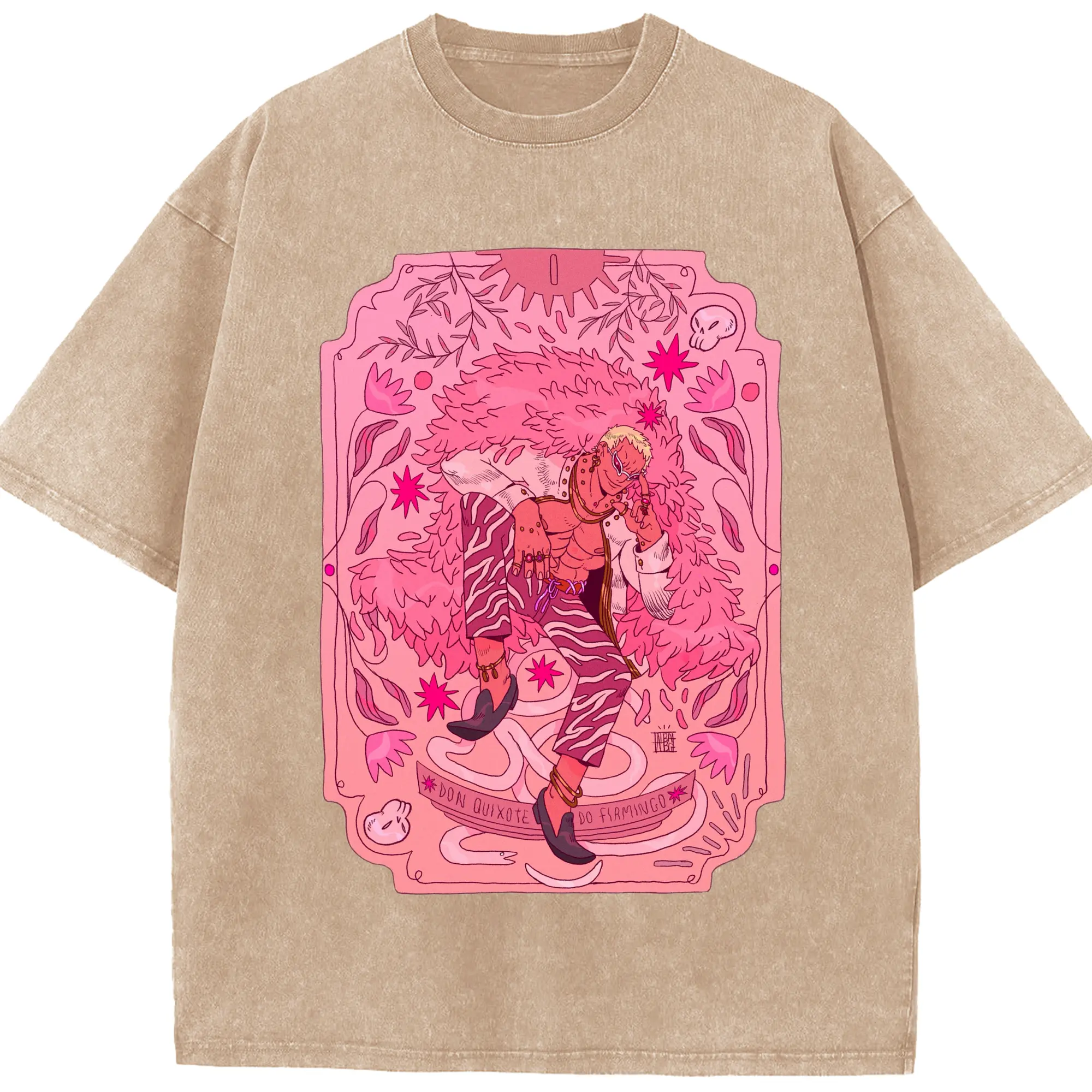 One Piece Donquixote Doflamingo Pink Art DIY Shirt - Washed Vintage Look 230g Cotton Oversized T-Shirt With Front Heat Transfer Print – Soft, Lightweight, Stylish Fit – Comfortable Casual Wear For Sports & Everyday Use