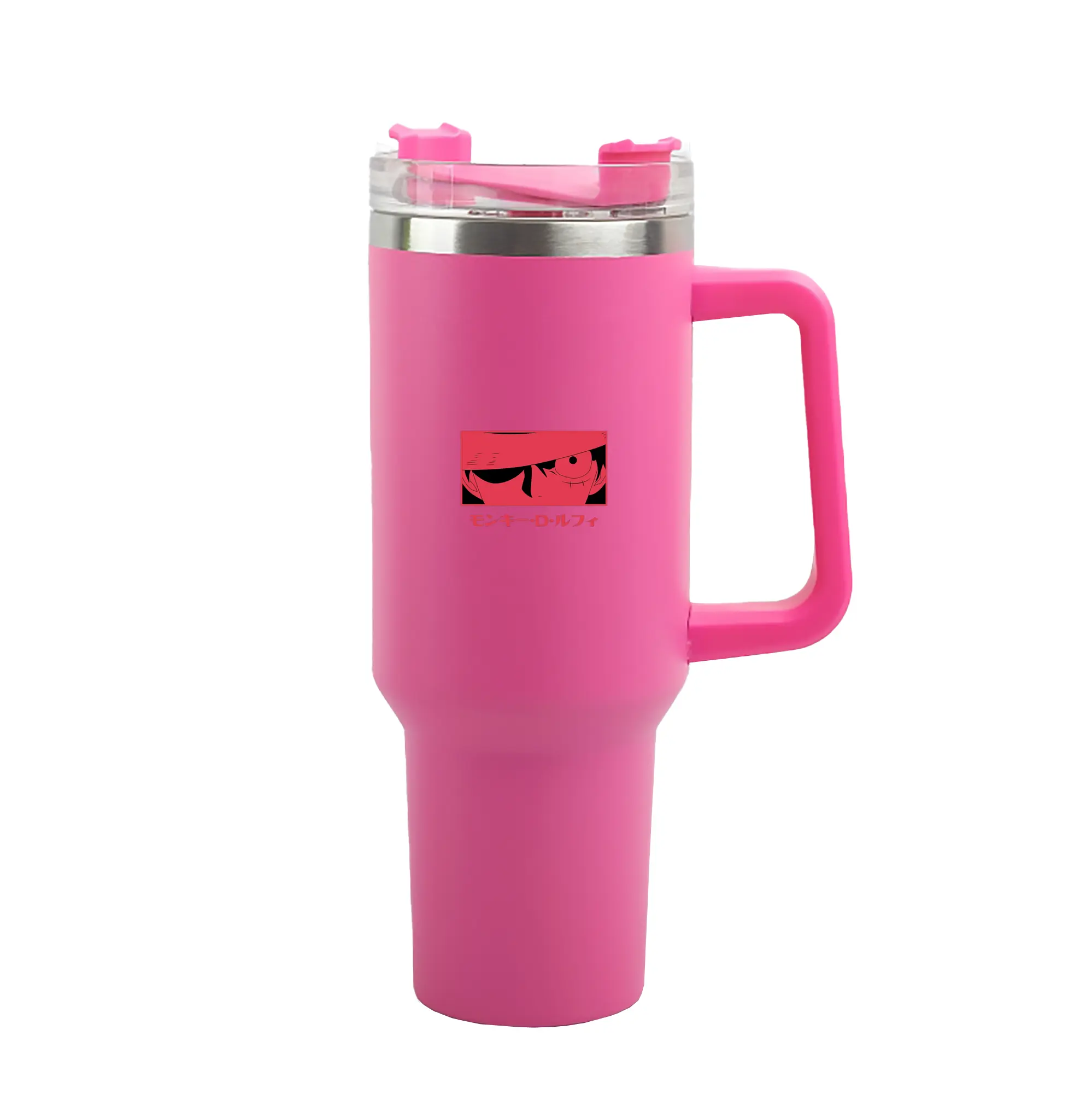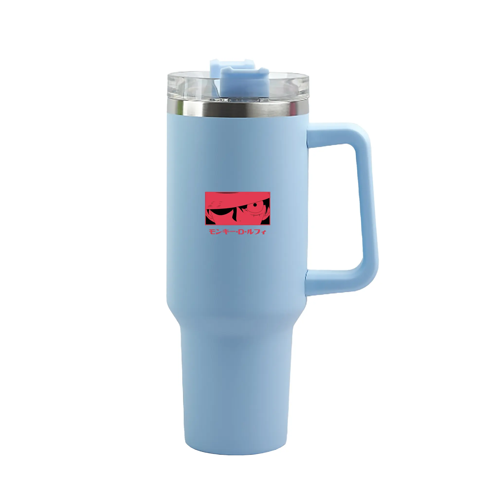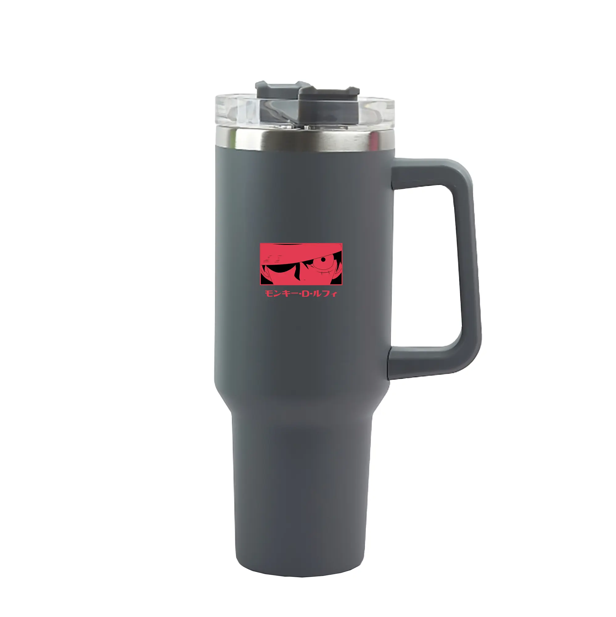 One Piece Monkey D. Luffy Red Anime DIY Shirt - 40oz Handle Car Tumbler – Durable Stainless Steel Travel Mug With UV Print – Double Wall Insulated, Fits Most Car Cup Holders