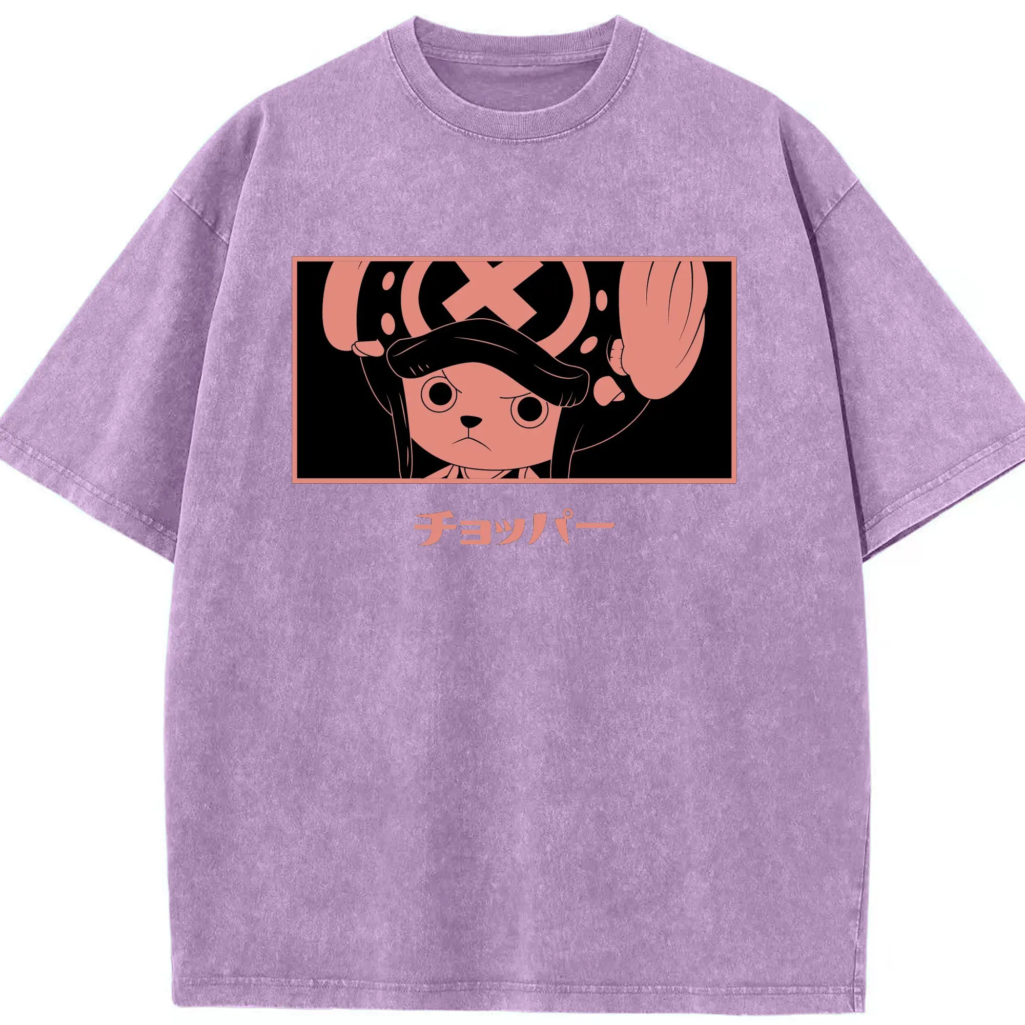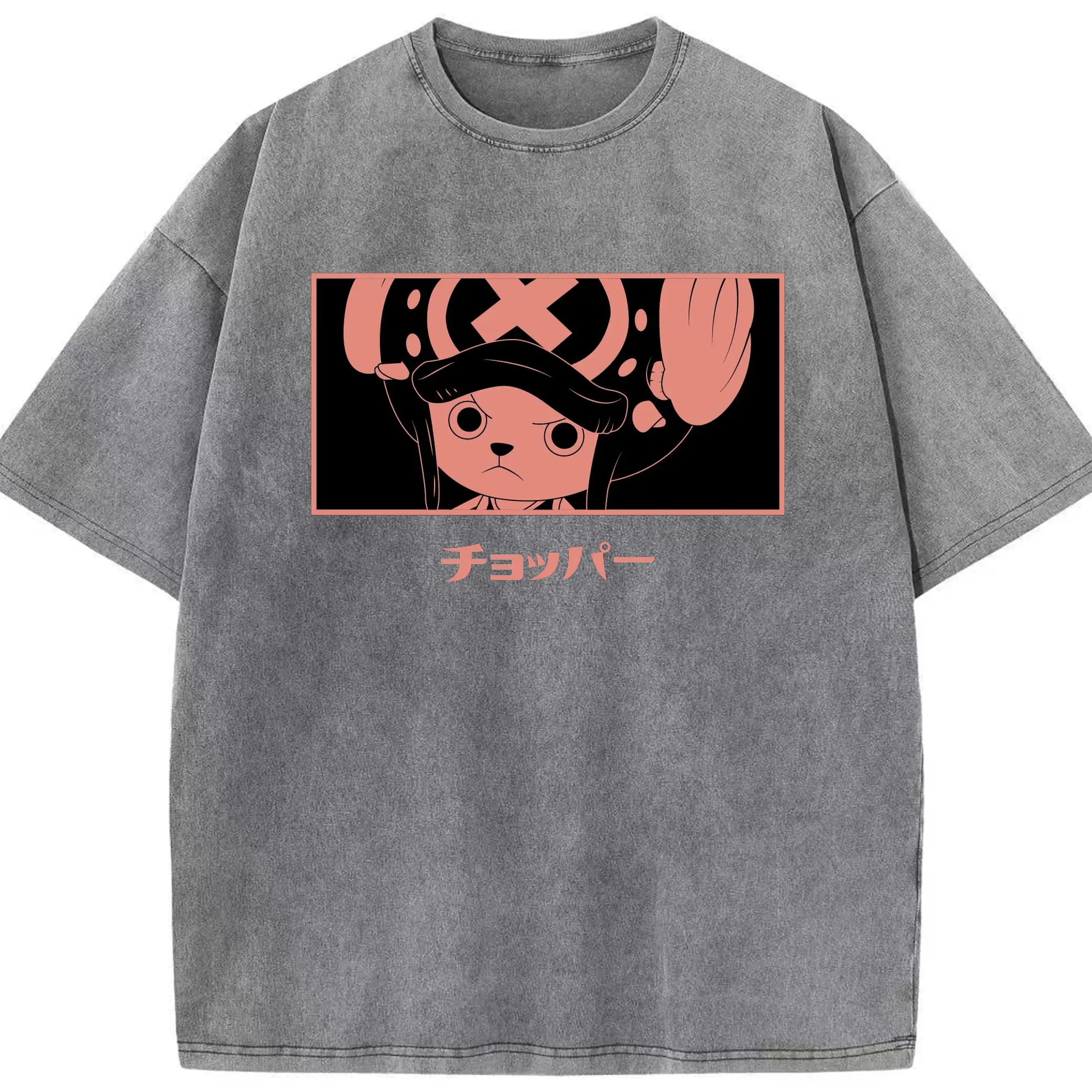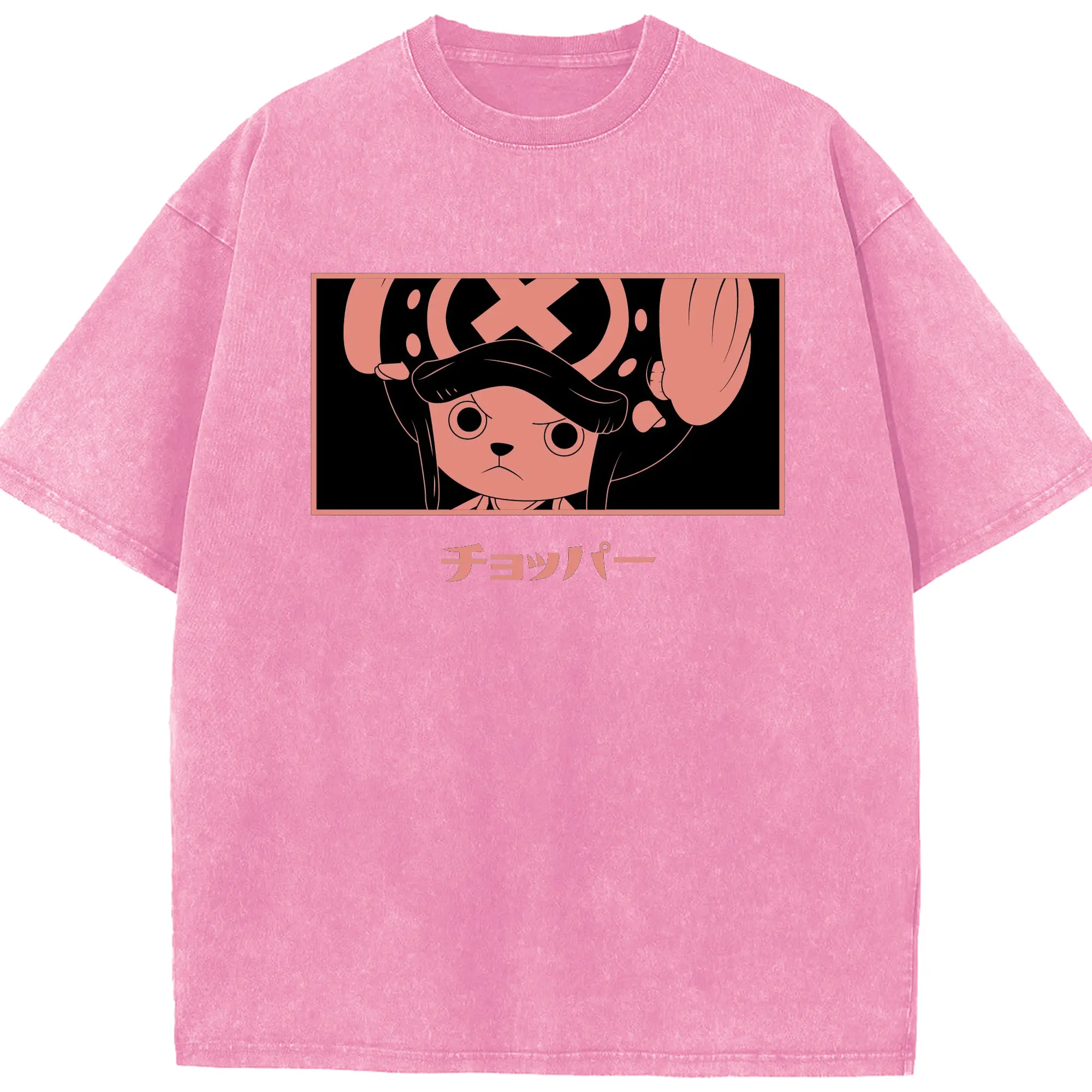 One Piece Tony Tony Chopper Pink Anime DIY Shirt - Washed Vintage Look 230g Cotton Oversized T-Shirt With Front Heat Transfer Print – Soft, Lightweight, Stylish Fit – Comfortable Casual Wear For Sports & Everyday Use