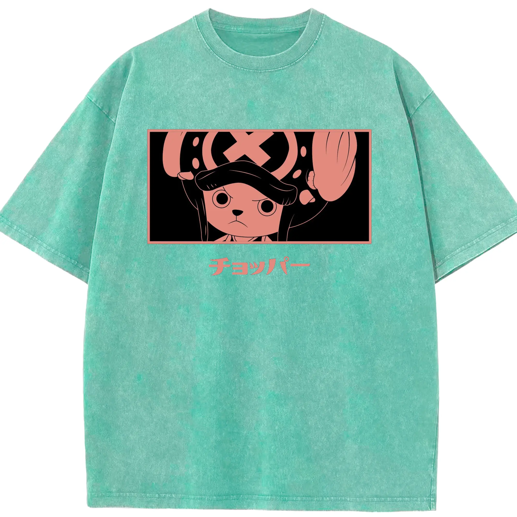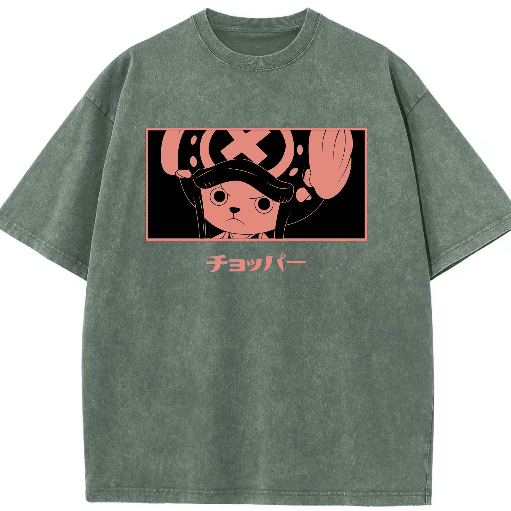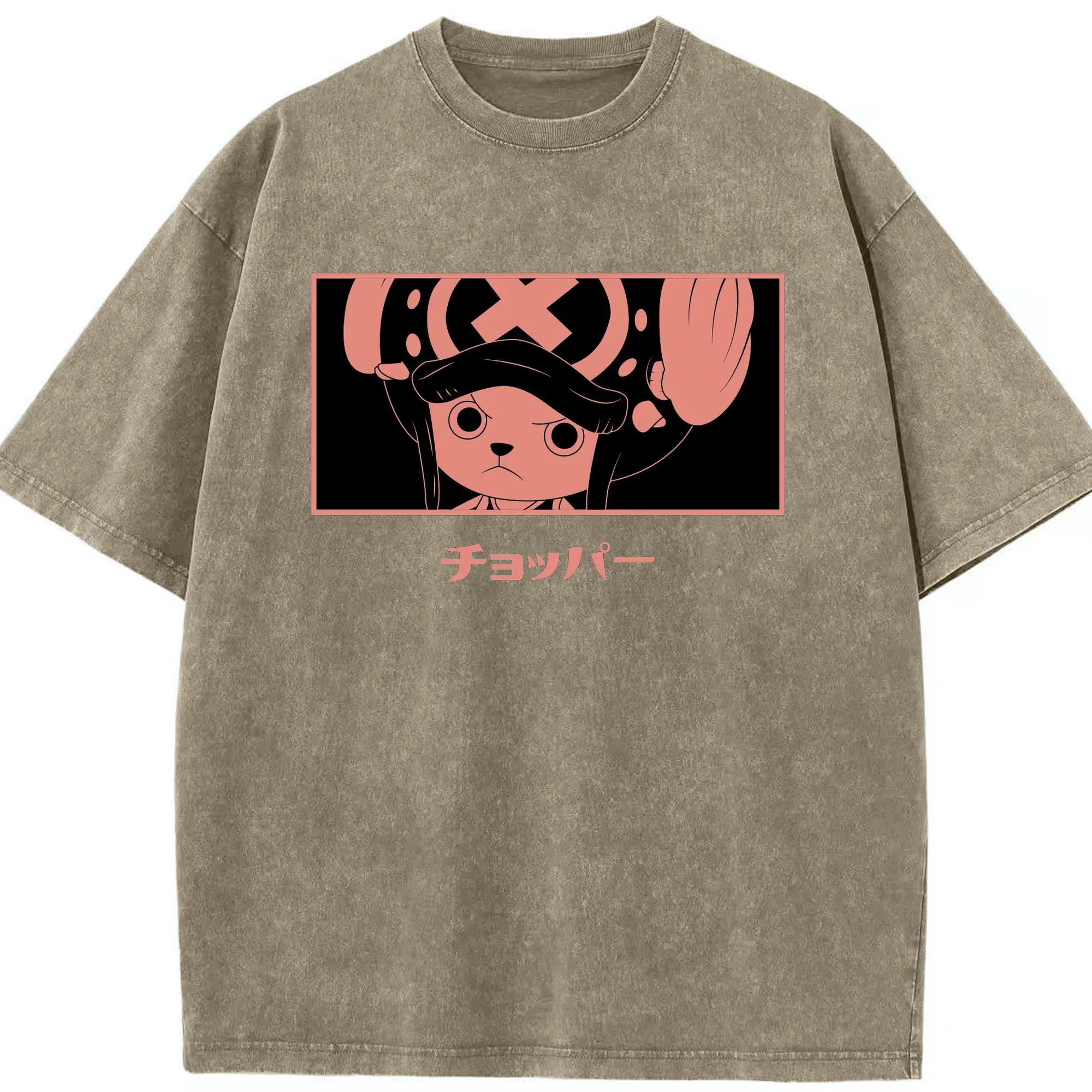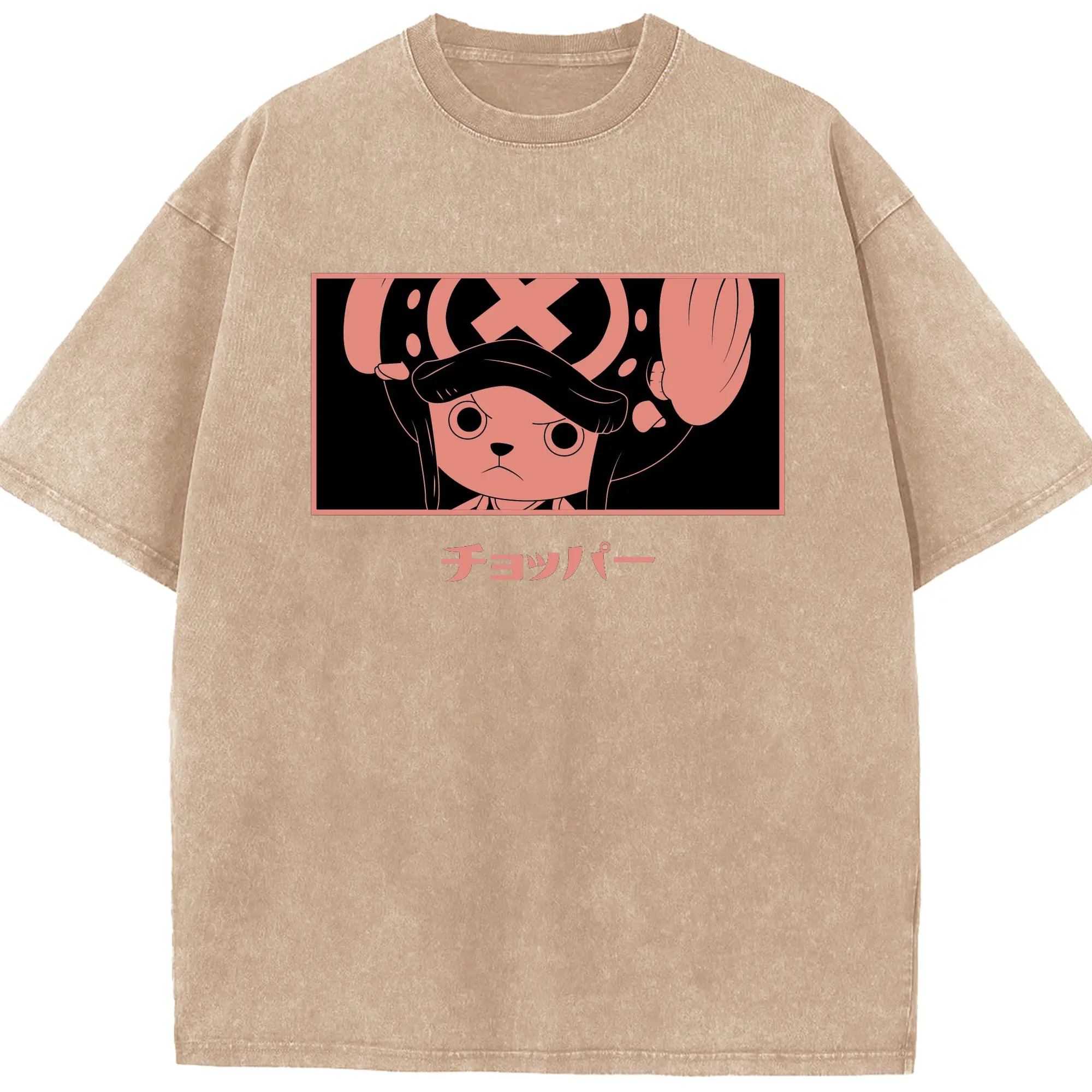 One Piece Tony Tony Chopper Pink Anime DIY Shirt - Washed Vintage Look 230g Cotton Oversized T-Shirt With Front Heat Transfer Print – Soft, Lightweight, Stylish Fit – Comfortable Casual Wear For Sports & Everyday Use