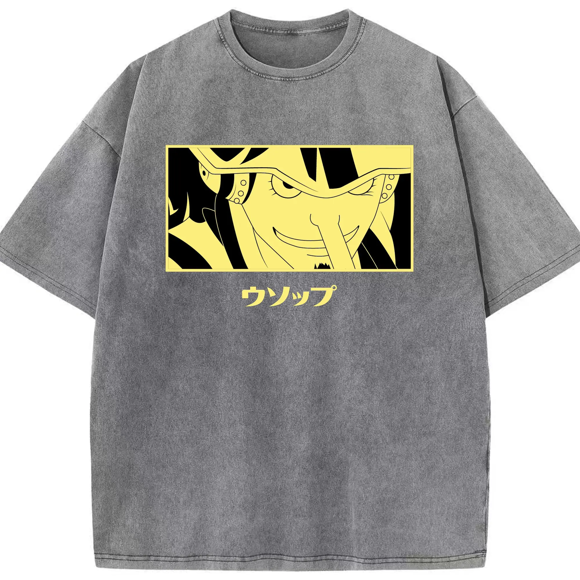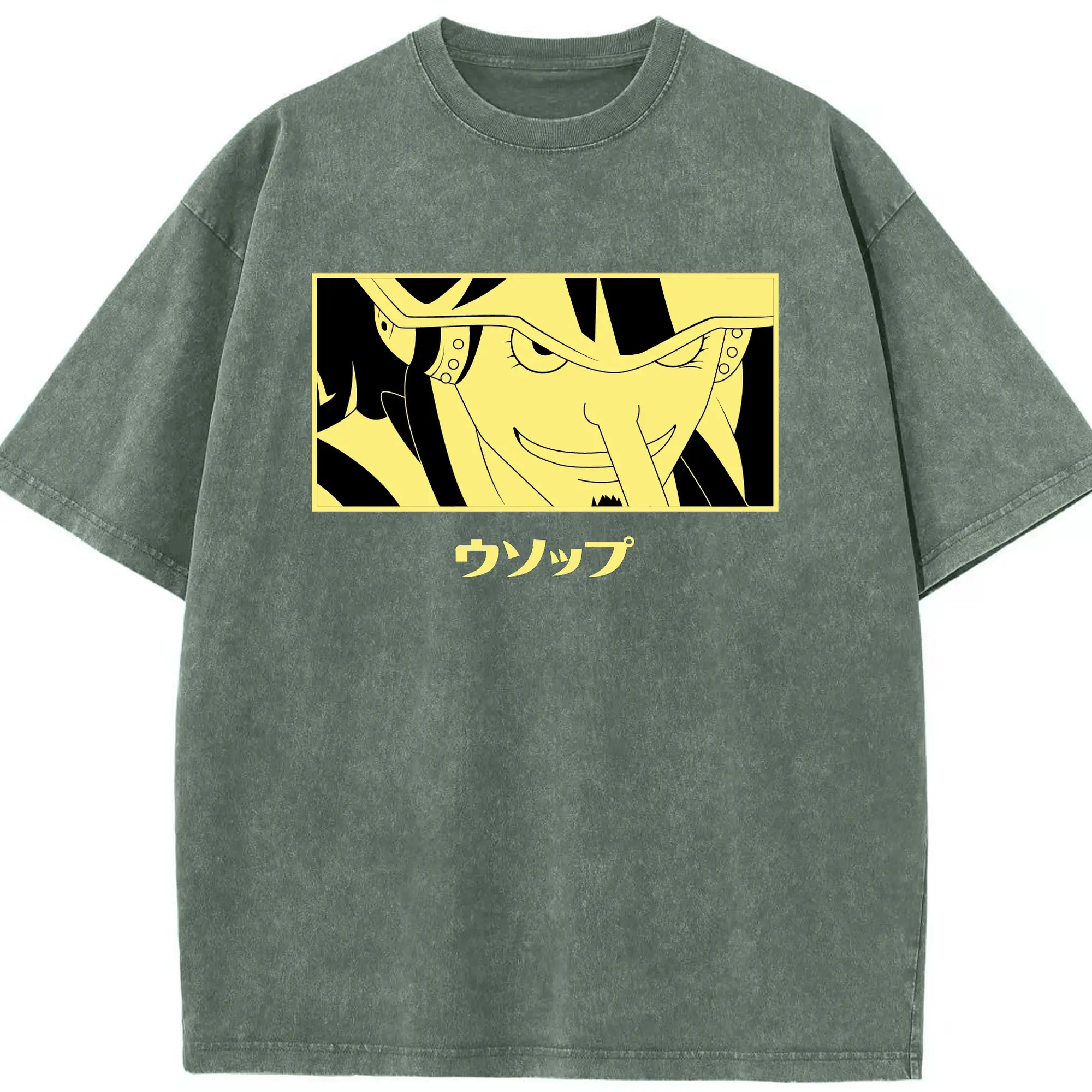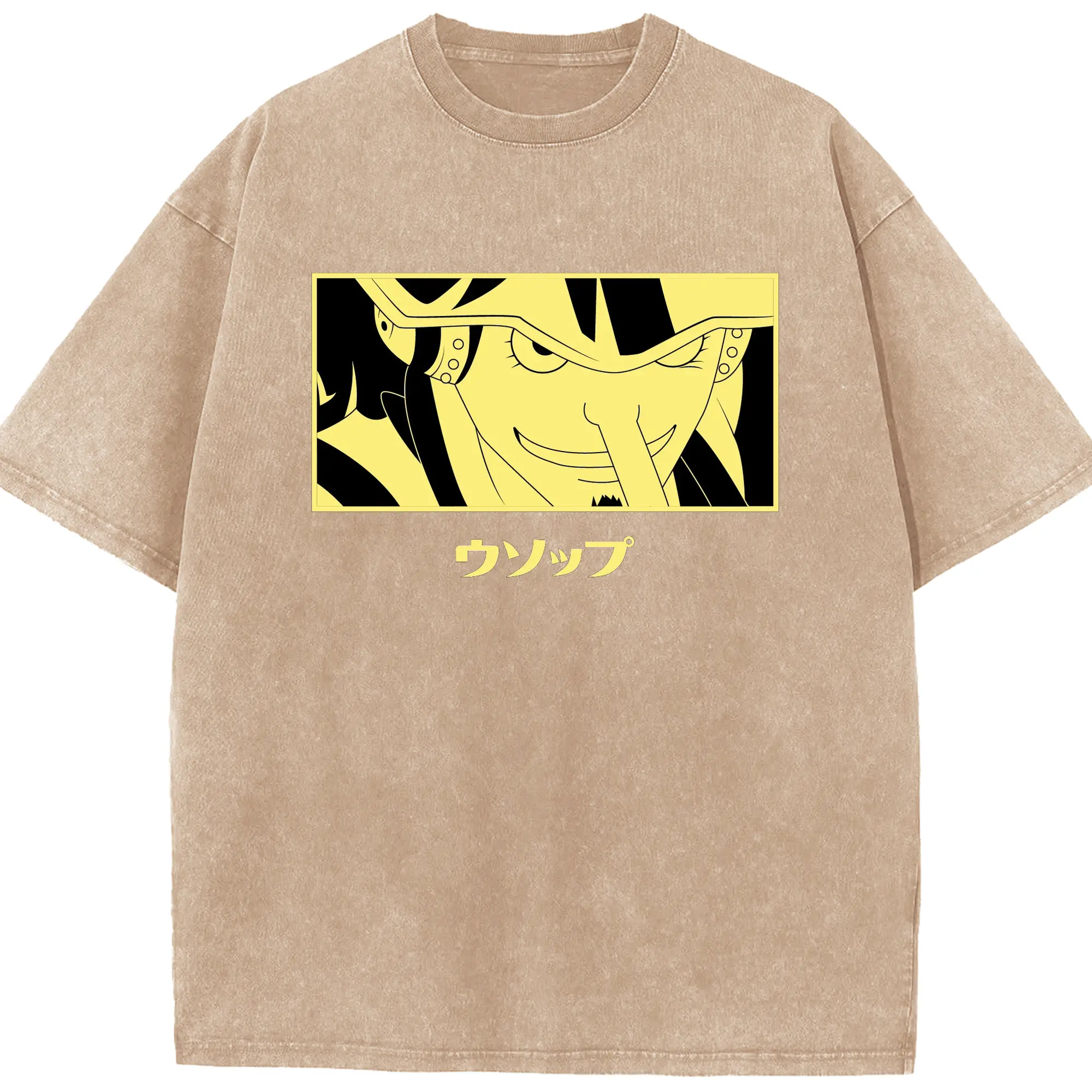 One Piece Usopp Yellow Anime DIY Shirt - Washed Vintage Look 230g Cotton Oversized T-Shirt With Front Heat Transfer Print – Soft, Lightweight, Stylish Fit – Comfortable Casual Wear For Sports & Everyday Use